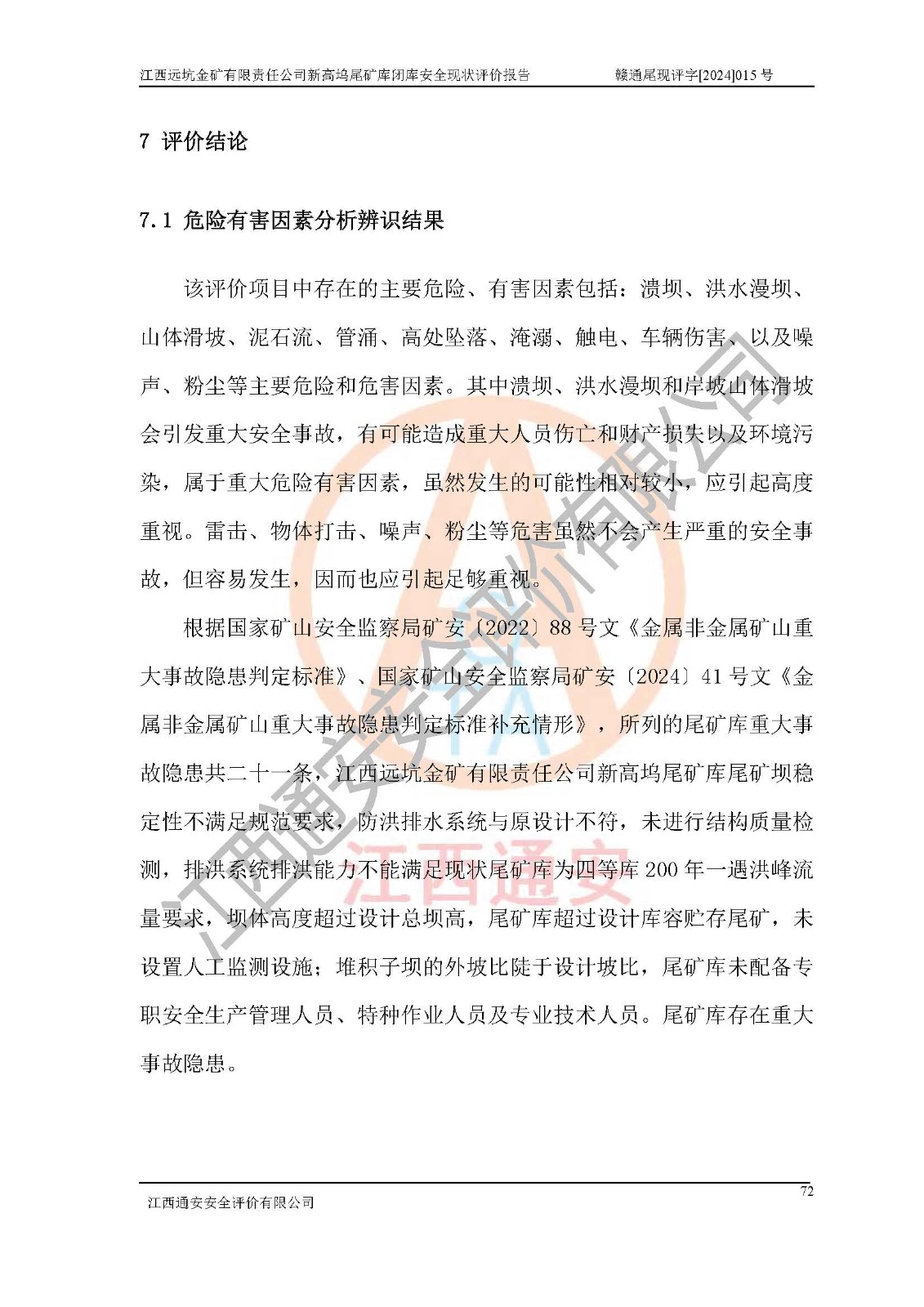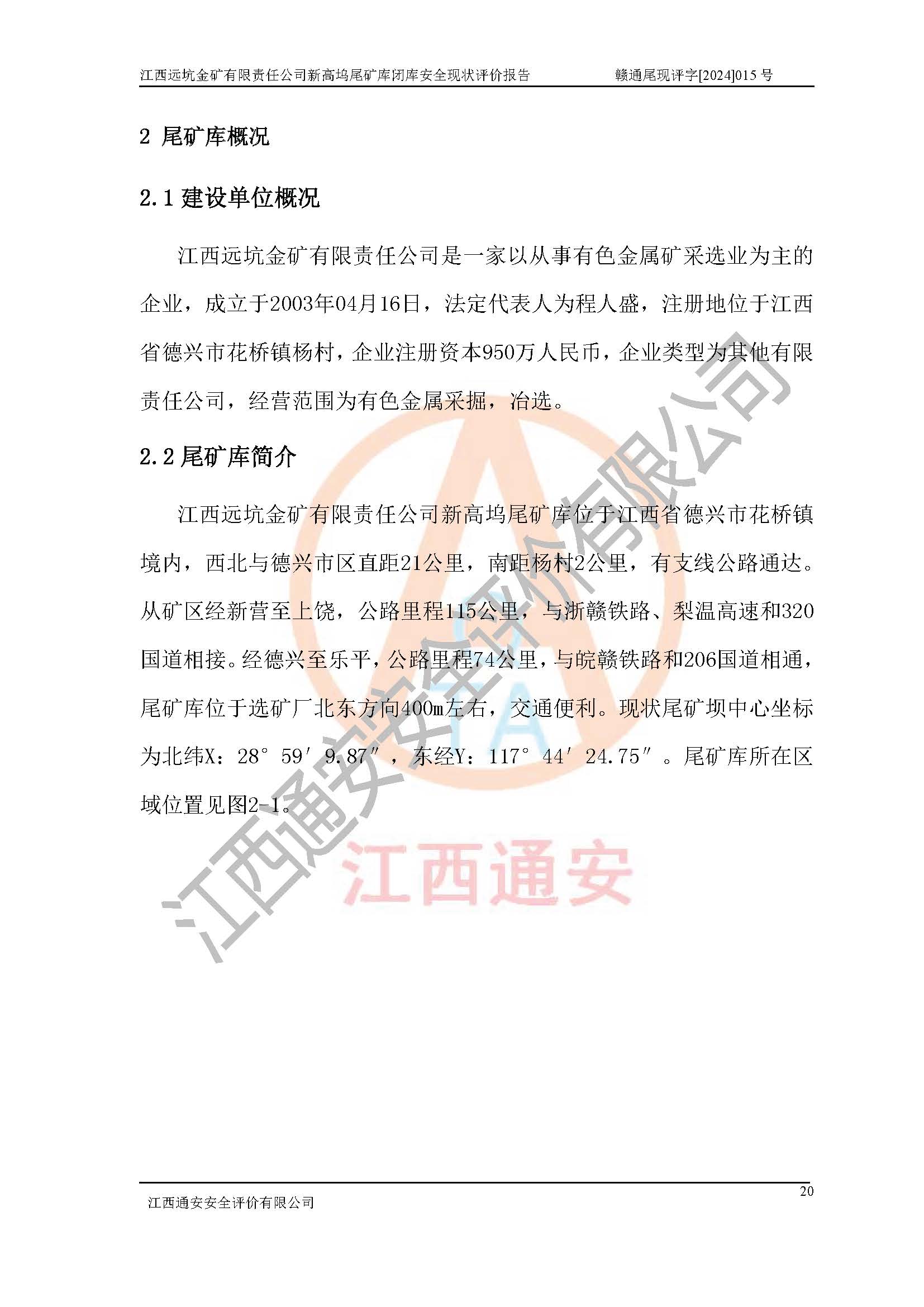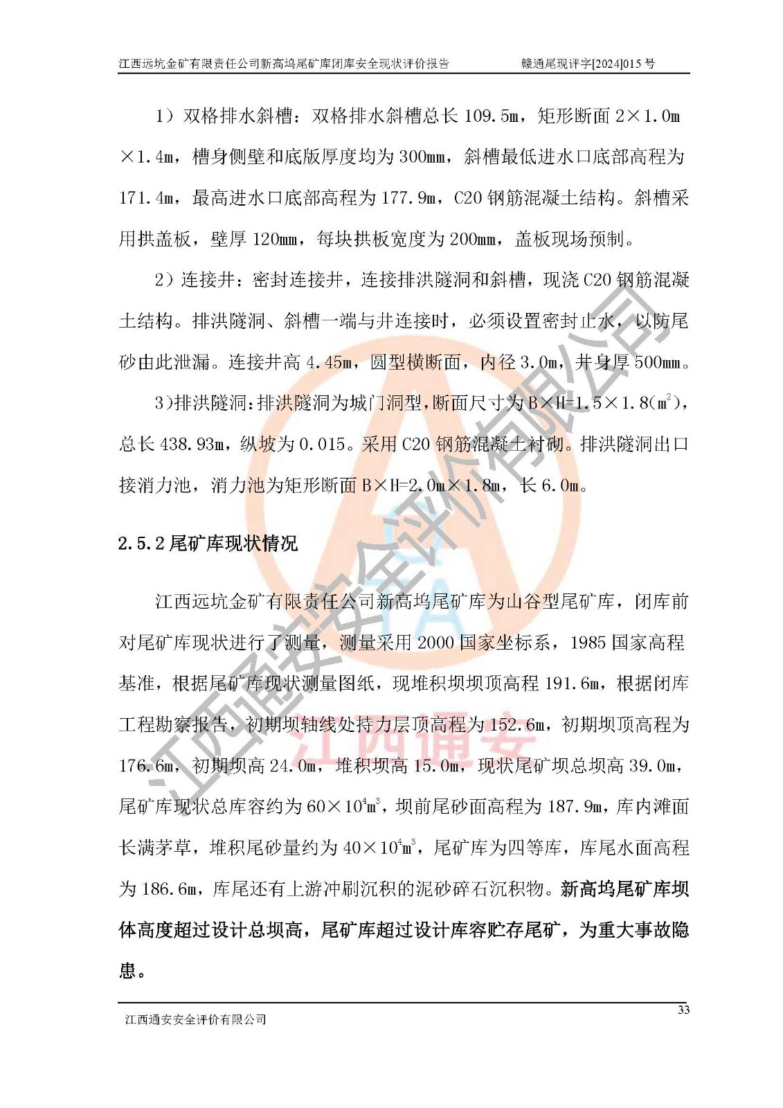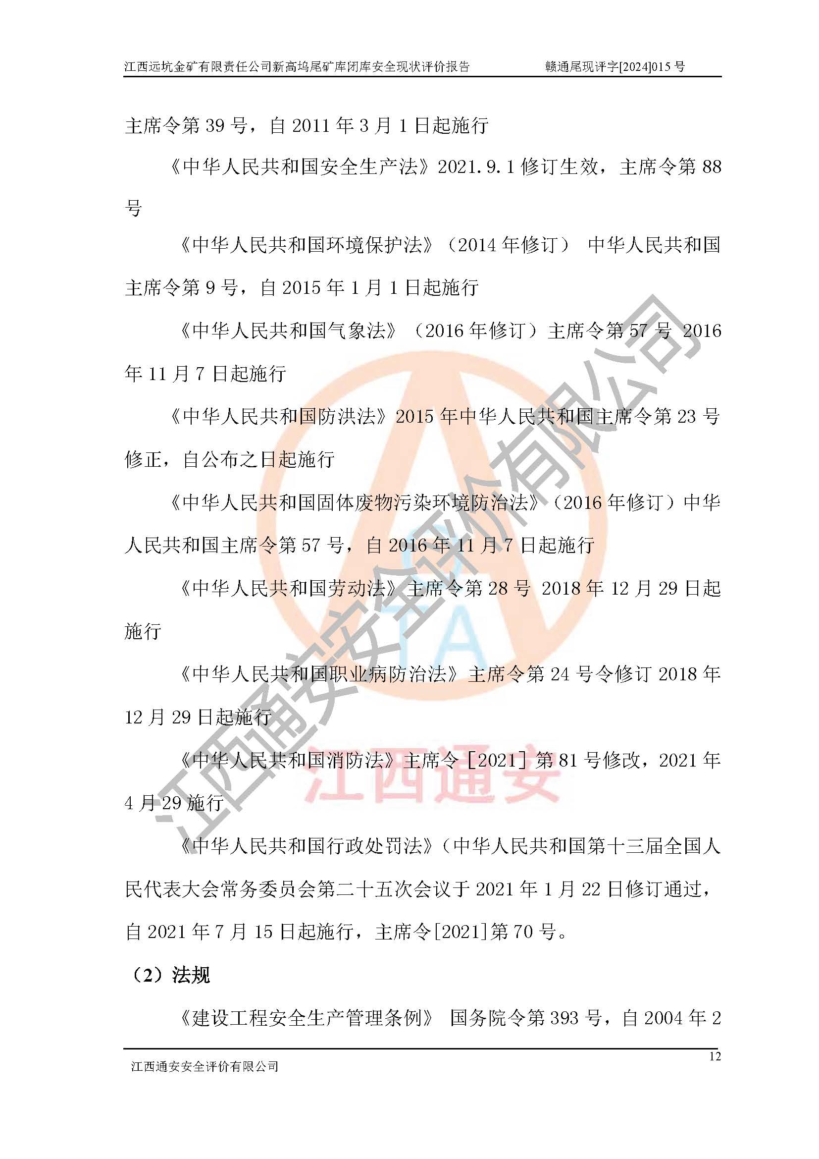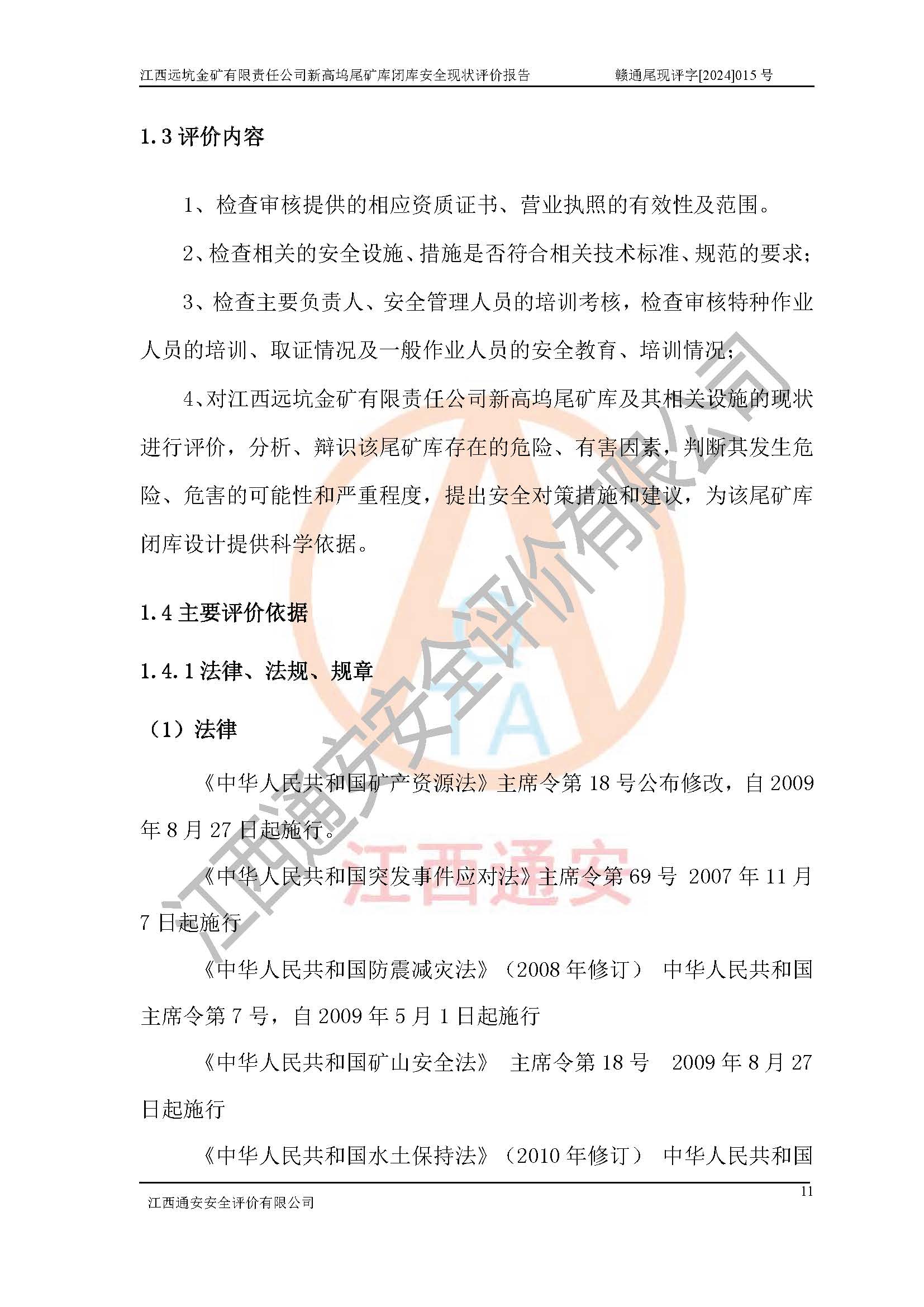 評價報告名稱 | 江西遠坑金礦有限責(zé)任公司新高塢尾礦庫閉庫現(xiàn)狀評價報告 | |||