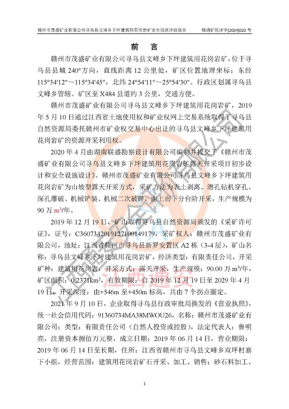 項(xiàng)目名稱 | 贛州市茂盛礦業(yè)有限公司尋烏縣文峰鄉(xiāng)下坪建筑用花崗巖礦報(bào)告 | ||||