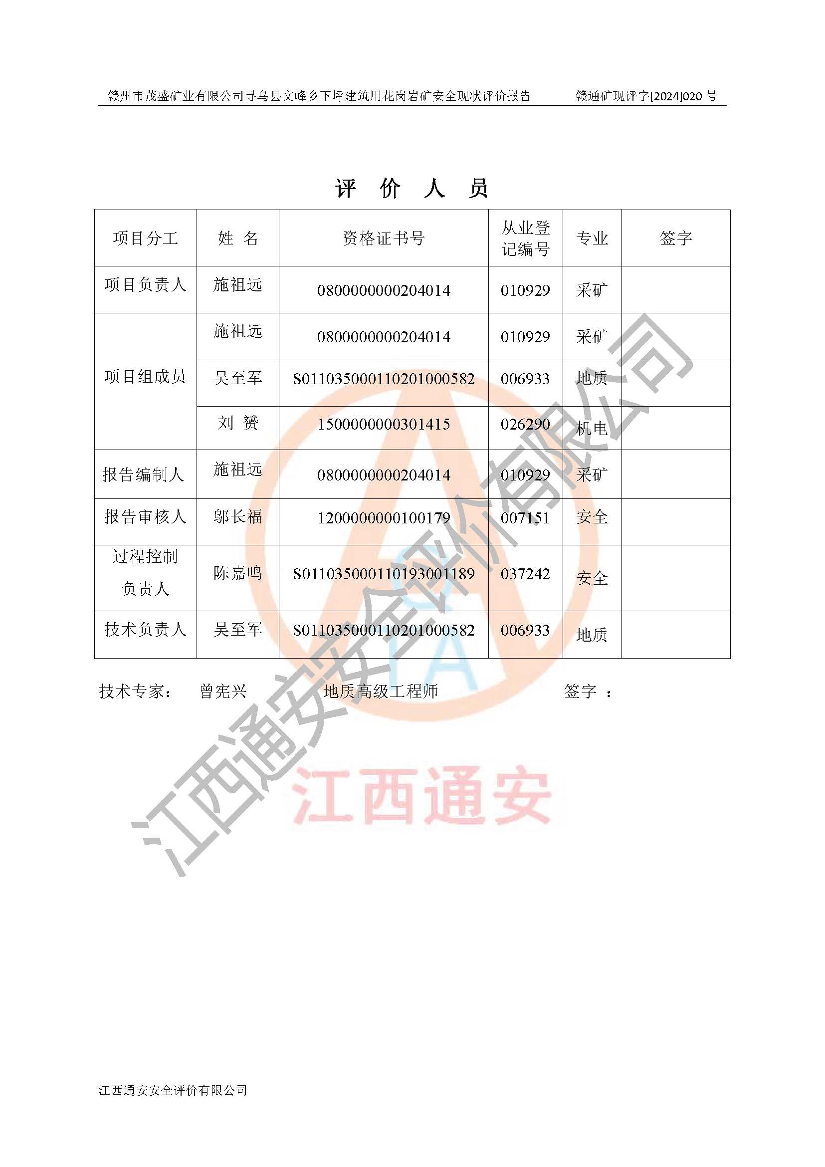 技術(shù)負(fù)責(zé)人 | 吳至軍 | 注冊(cè)安全工程師 | —— | ||