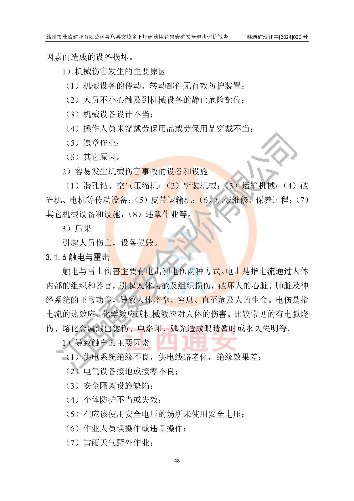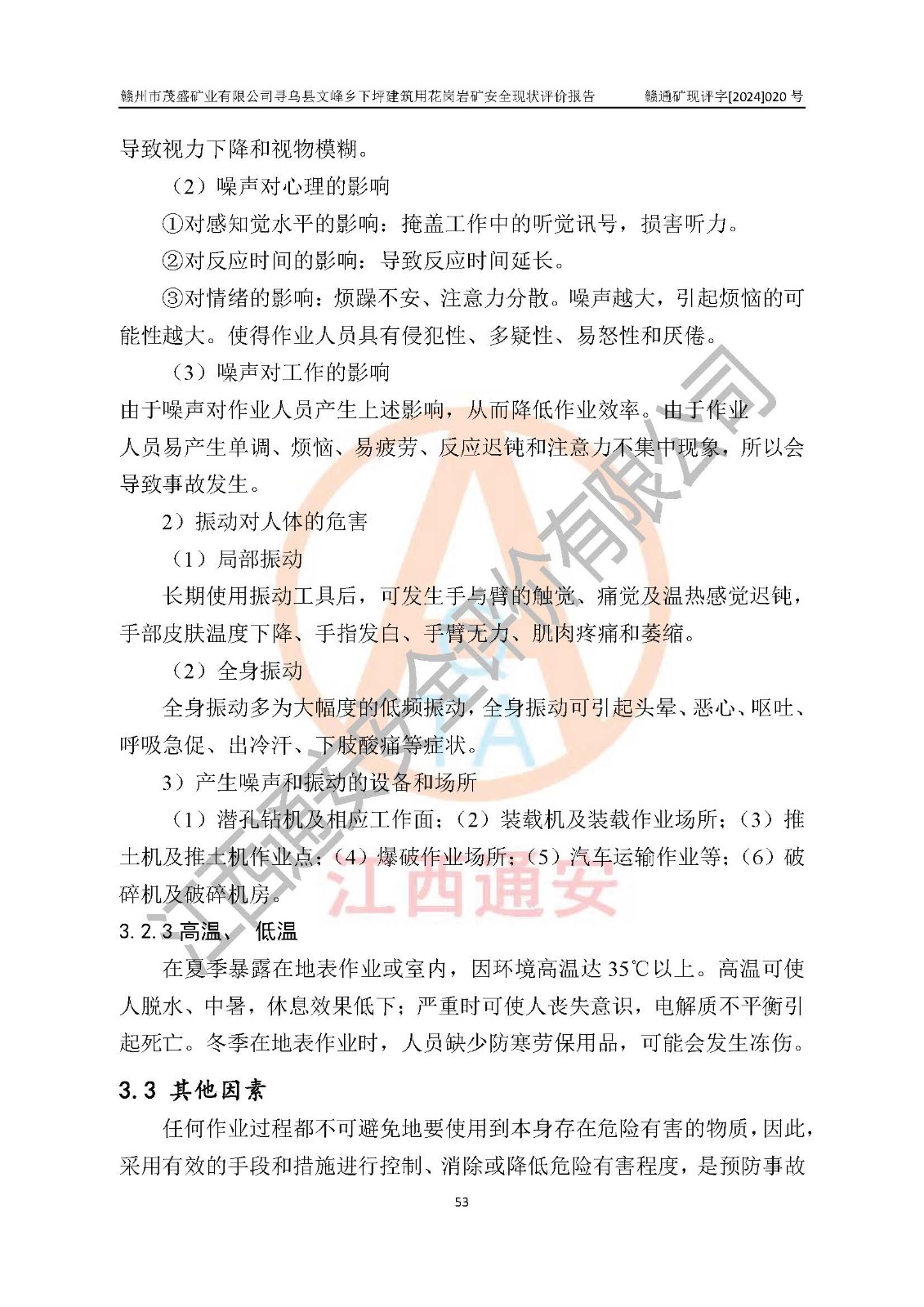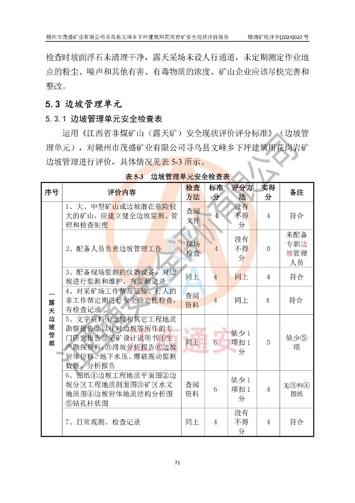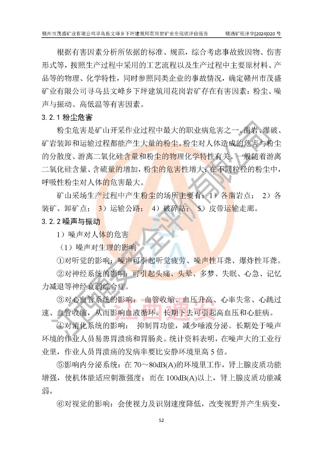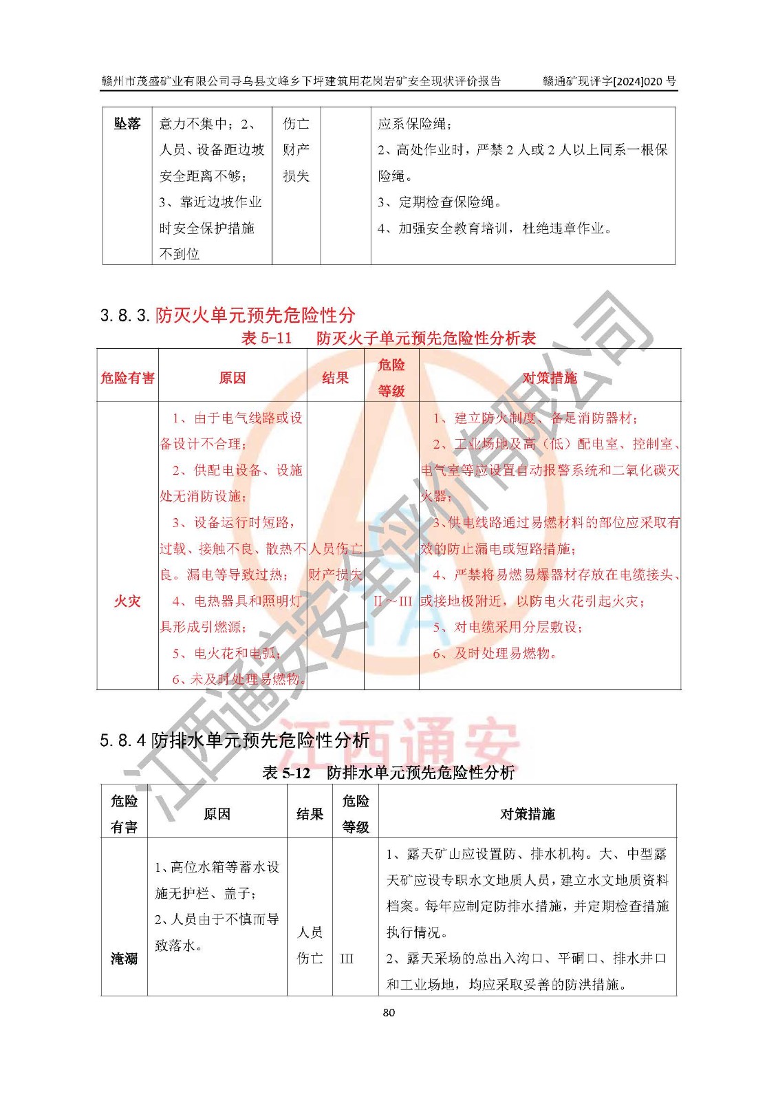 其它 | 1、該評(píng)價(jià)項(xiàng)目中存在的主要危險(xiǎn)因素:火藥爆炸、爆破傷害、容器爆炸、觸電與雷電、坍塌、機(jī)械傷害、**傷害、火災(zāi)、高處墜落、物體打擊、滑坡、泥石流、淹溺、中毒和窒息等危險(xiǎn)有害因素。 2、該評(píng)價(jià)項(xiàng)目中存在的有害因素包括:粉塵、噪聲與振動(dòng)、不良作業(yè)環(huán)境,如高溫、雷擊對(duì)礦山人員的傷害和其他不利的環(huán)境因素等。 3、該評(píng)價(jià)項(xiàng)目為非金屬露天礦山,無瓦斯和自燃發(fā)火危險(xiǎn),礦區(qū)范圍內(nèi)及周邊無較大水系,礦區(qū)水文地質(zhì)條件簡(jiǎn)單。該評(píng)價(jià)項(xiàng)目只是對(duì)建筑用花崗巖進(jìn)行露天開采,不使用有毒有害危險(xiǎn)化學(xué)品藥劑,該評(píng)價(jià)項(xiàng)目涉及的危險(xiǎn)物品主要為民用爆破器材,根據(jù)業(yè)主介紹,爆破器材采用配送制。該評(píng)價(jià)項(xiàng)目使用的壓力容器為空壓機(jī)儲(chǔ)氣罐,其工作介質(zhì)為空氣,屬**性、非易燃介質(zhì)。綜合上述分析,本評(píng)價(jià)項(xiàng)目不存在重大危險(xiǎn)源。 上述主要危險(xiǎn)、有害因素在采取本報(bào)告第六章中提出的安全對(duì)策措施及建議后,能得到**控制。該項(xiàng)目從安全生產(chǎn)角度符合**有關(guān)安全生產(chǎn)法律、法規(guī)、規(guī)章和技術(shù)標(biāo)準(zhǔn)的要求。 | ||||