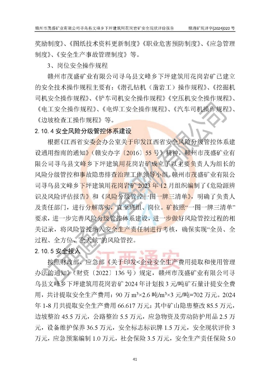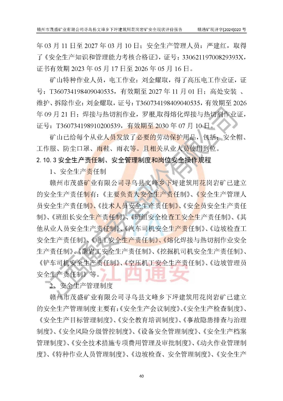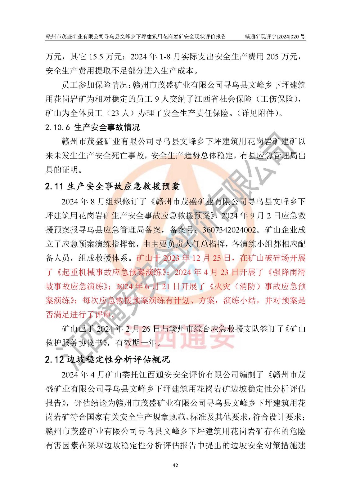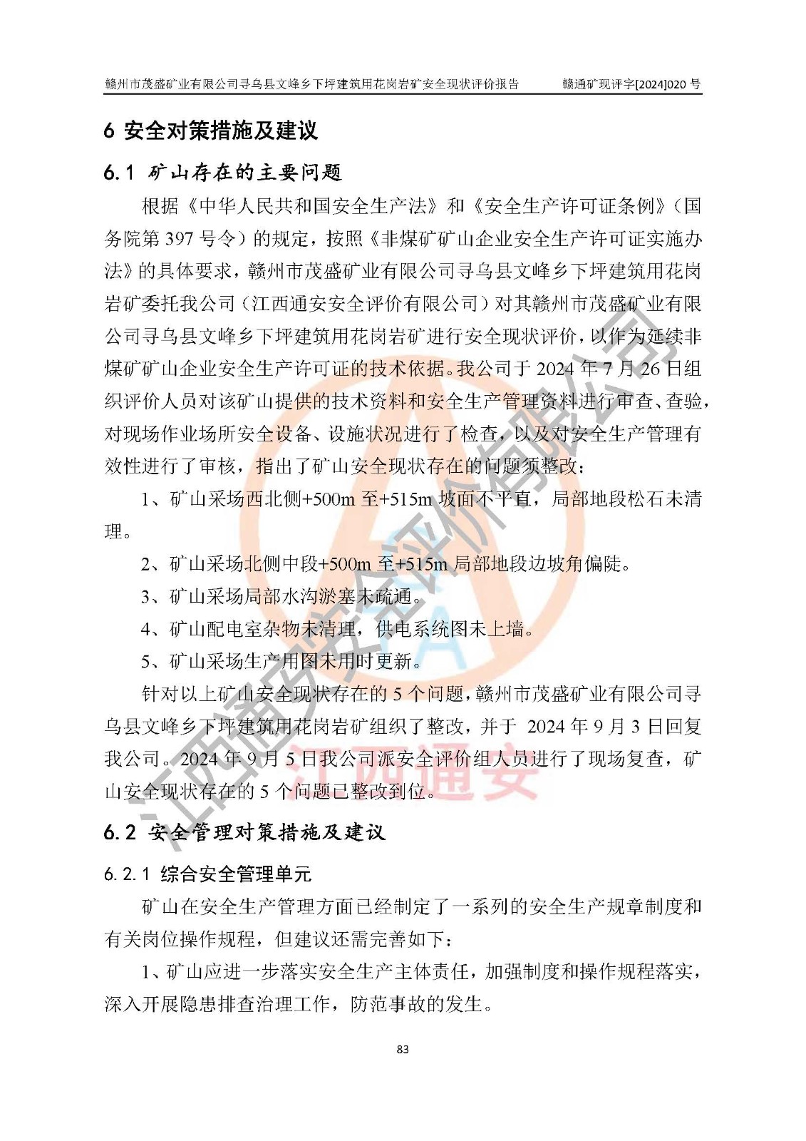 項(xiàng)目簡(jiǎn)介 | 贛州市茂盛礦業(yè)有限公司尋烏縣文峰鄉(xiāng)下坪建筑用花崗巖礦,位于尋烏縣縣城240°方向,直線距離12**處,行政區(qū)劃隸屬尋烏縣文峰鄉(xiāng)管轄。礦區(qū)位置地理坐標(biāo):東經(jīng)115°34′12″~115°34′45″,北緯24°54′11″~25°54′30″。礦區(qū)至X484縣道約3**,交通方便。 礦山采用開拓公路汽車運(yùn)輸,礦山上山公路從礦區(qū)東側(cè)工業(yè)場(chǎng)地開始修建,經(jīng)過礦區(qū)北部(+470m)折返至礦區(qū)中部再到礦區(qū)北側(cè)山頂+530m、+515m 、+500m臺(tái)階;礦山經(jīng)過多年的開采,自上而形成了+530m、 +515m 、+500m共3個(gè)開采臺(tái)階,其中+530m、+515m臺(tái)階已到設(shè)計(jì)*終邊坡,+530m、+515m為安全平臺(tái),平臺(tái)寬度6m,臺(tái)階**8m/15m(剝離8m,開采15m),剝離坡面角約45°,開采坡面角約65°。 2022年4月12日,礦山取得贛州市應(yīng)急管理局頒發(fā)的安全生產(chǎn)標(biāo)準(zhǔn)化三級(jí)企業(yè)(非煤礦山)證書,證書編號(hào):贛市AQBKSⅢ[2023]15號(hào),**期至2026年4月11日。 | ||||