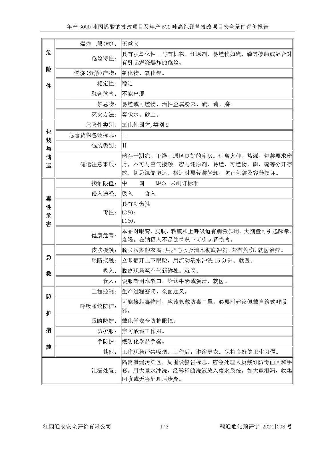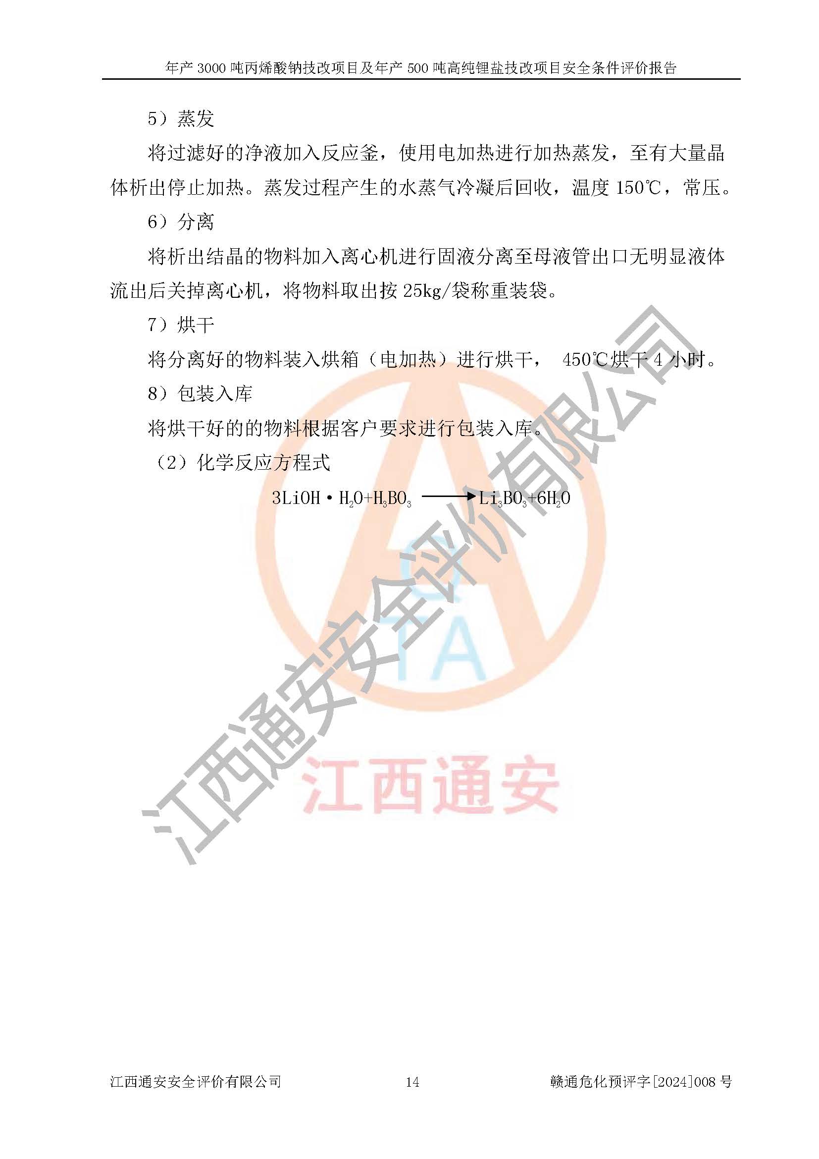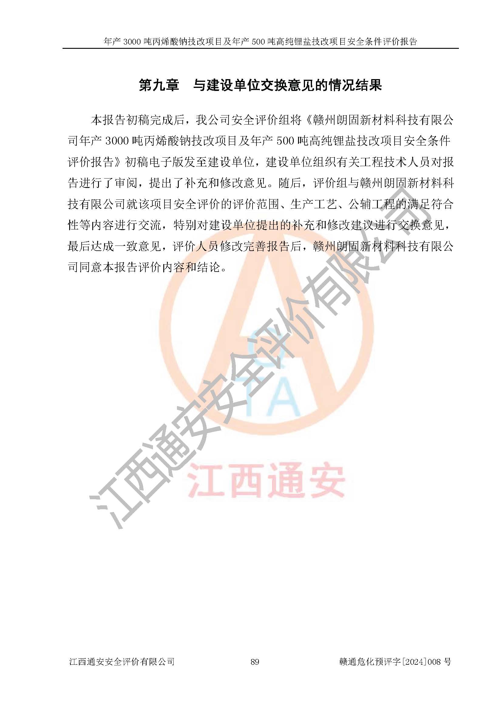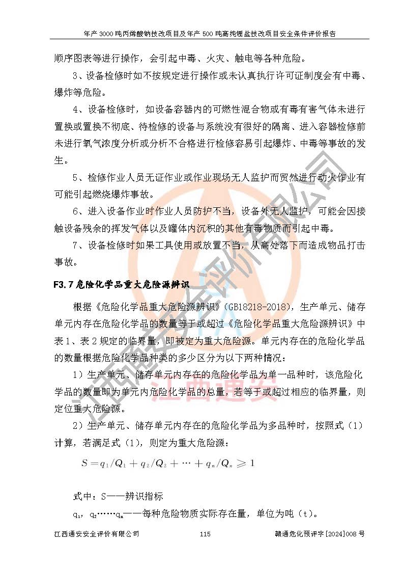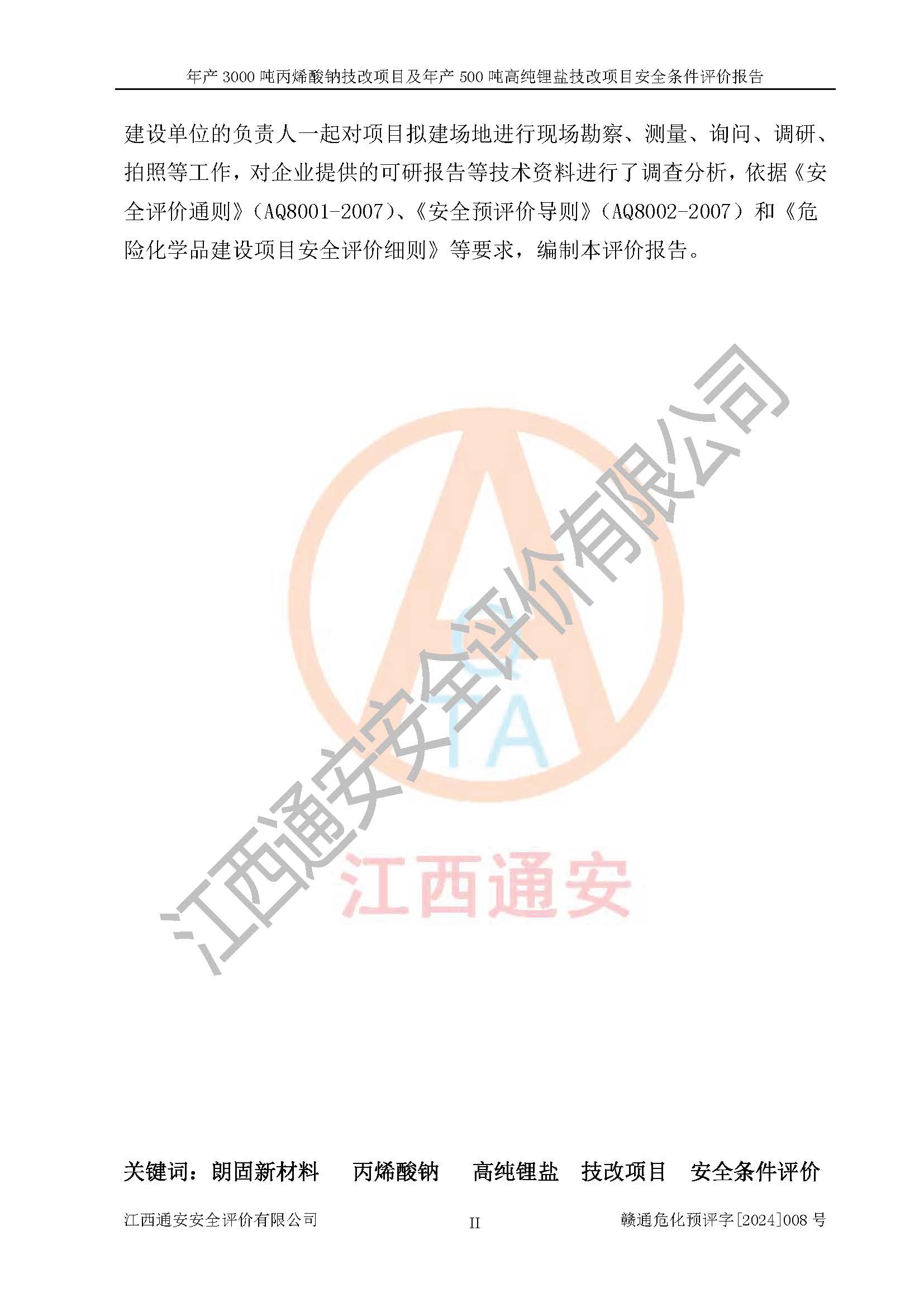 評價報告名稱 | 贛州朗固新材料科技有限公司年產(chǎn)3000噸丙烯酸鈉技改項目及年產(chǎn)500噸高純鋰鹽技改項目安全條件評價報告 | |||