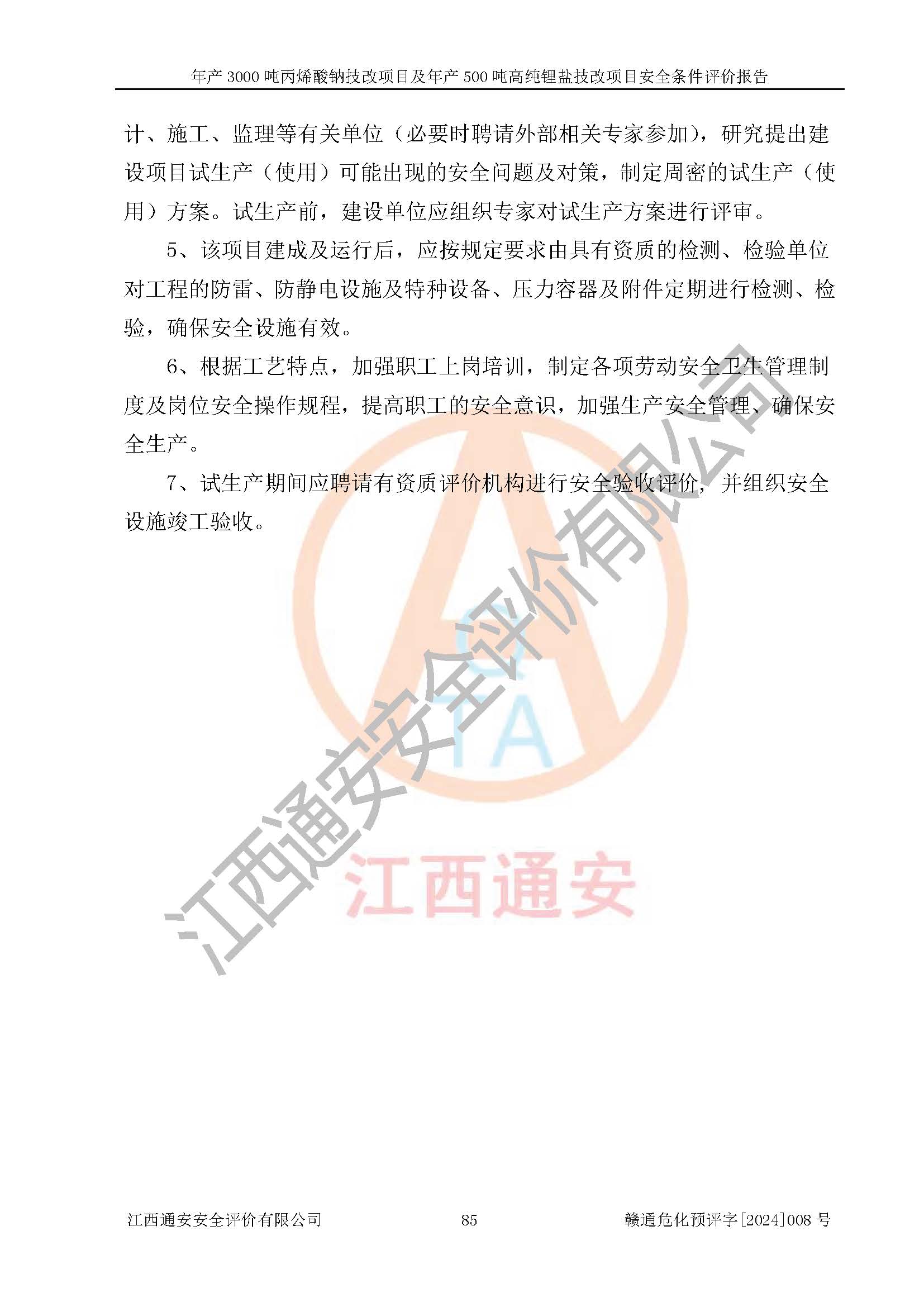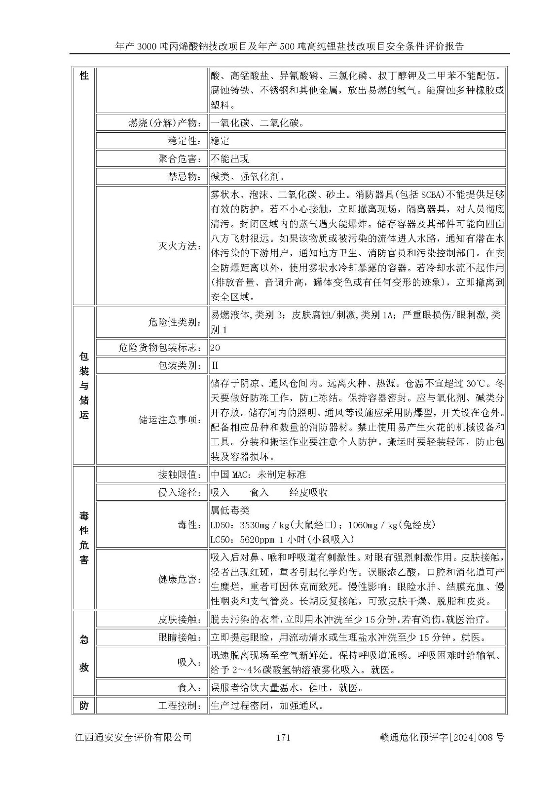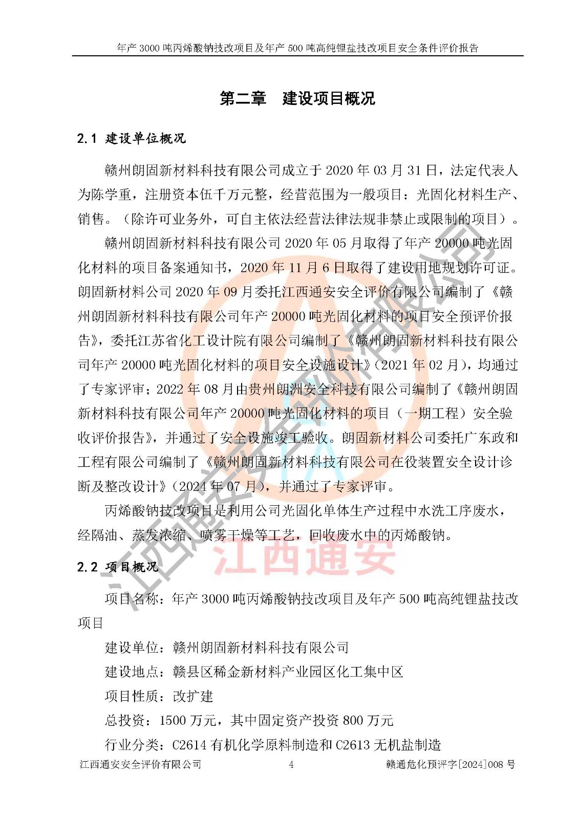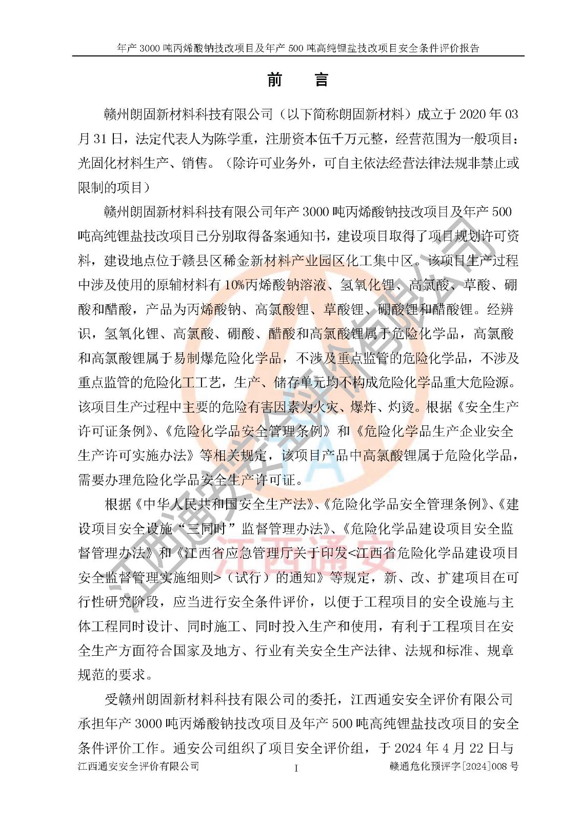 評價報告名稱 | 贛州朗固新材料科技有限公司年產(chǎn)3000噸丙烯酸鈉技改項目及年產(chǎn)500噸高純鋰鹽技改項目安全條件評價報告 | |||