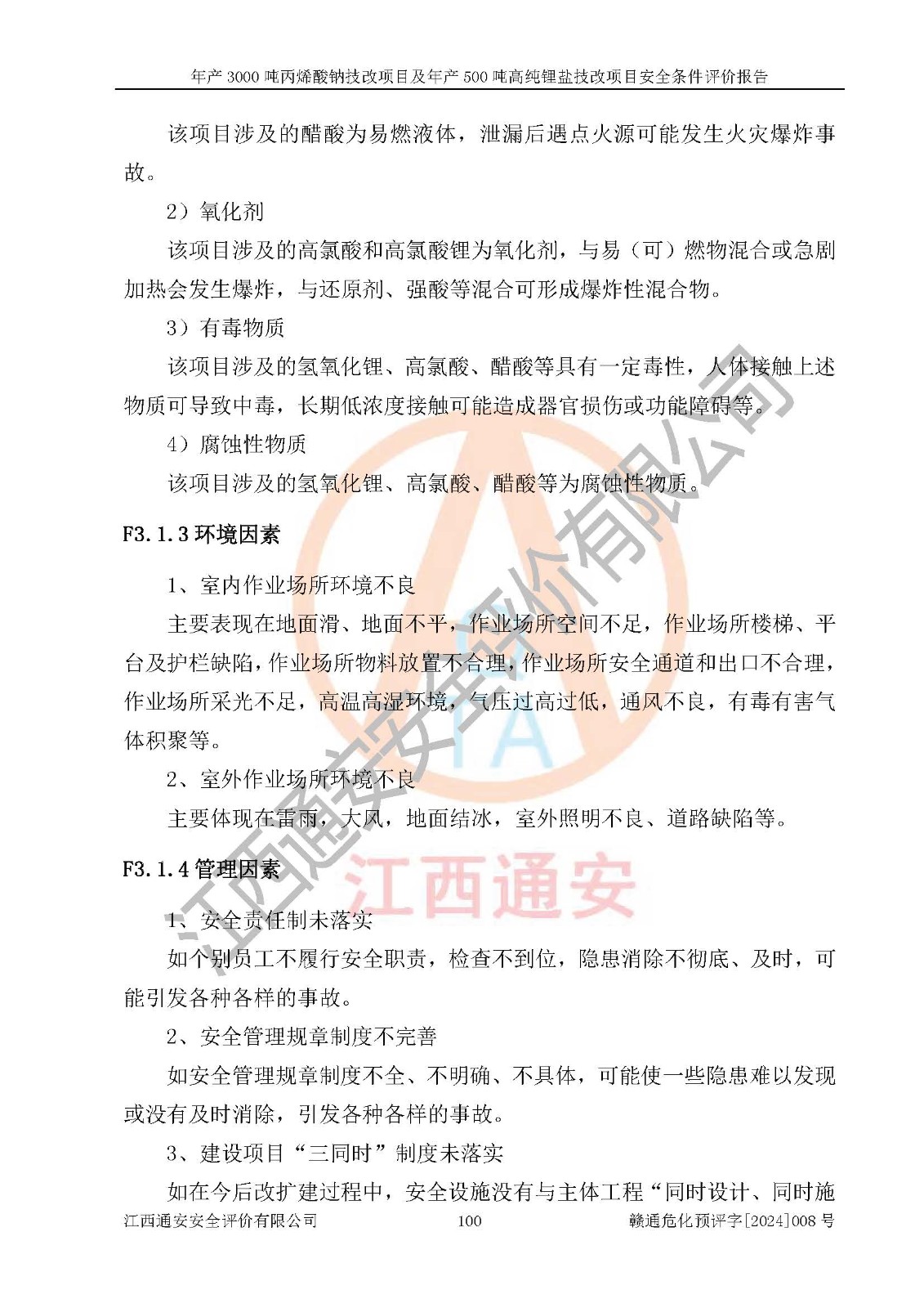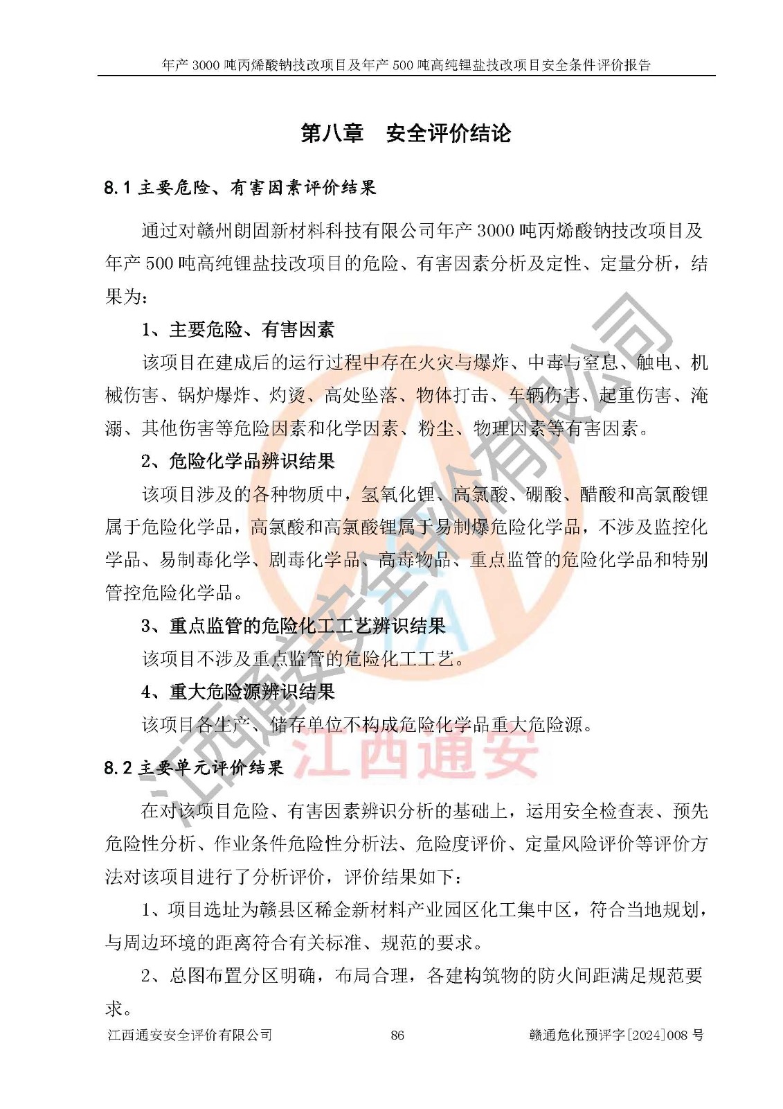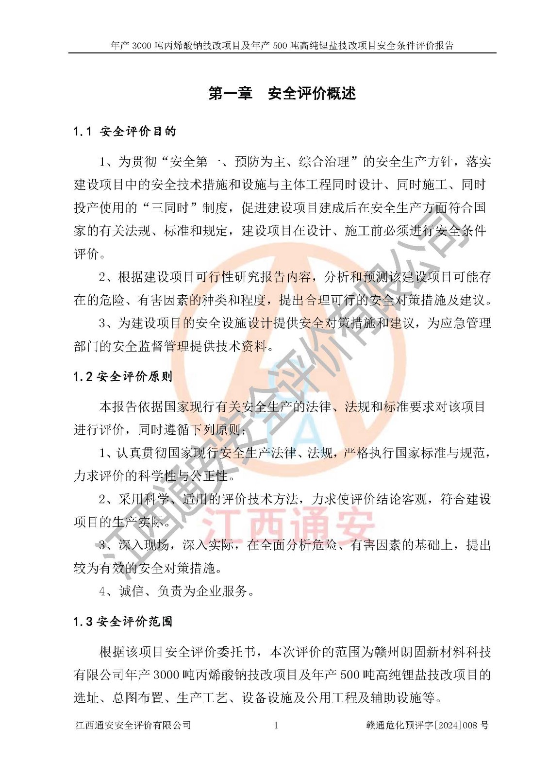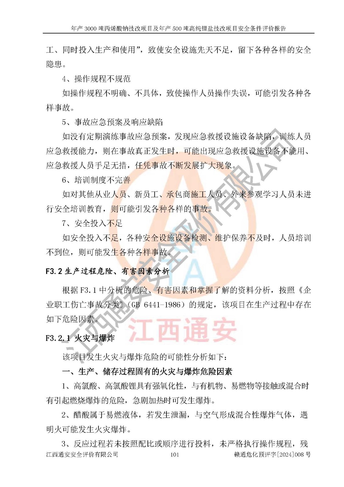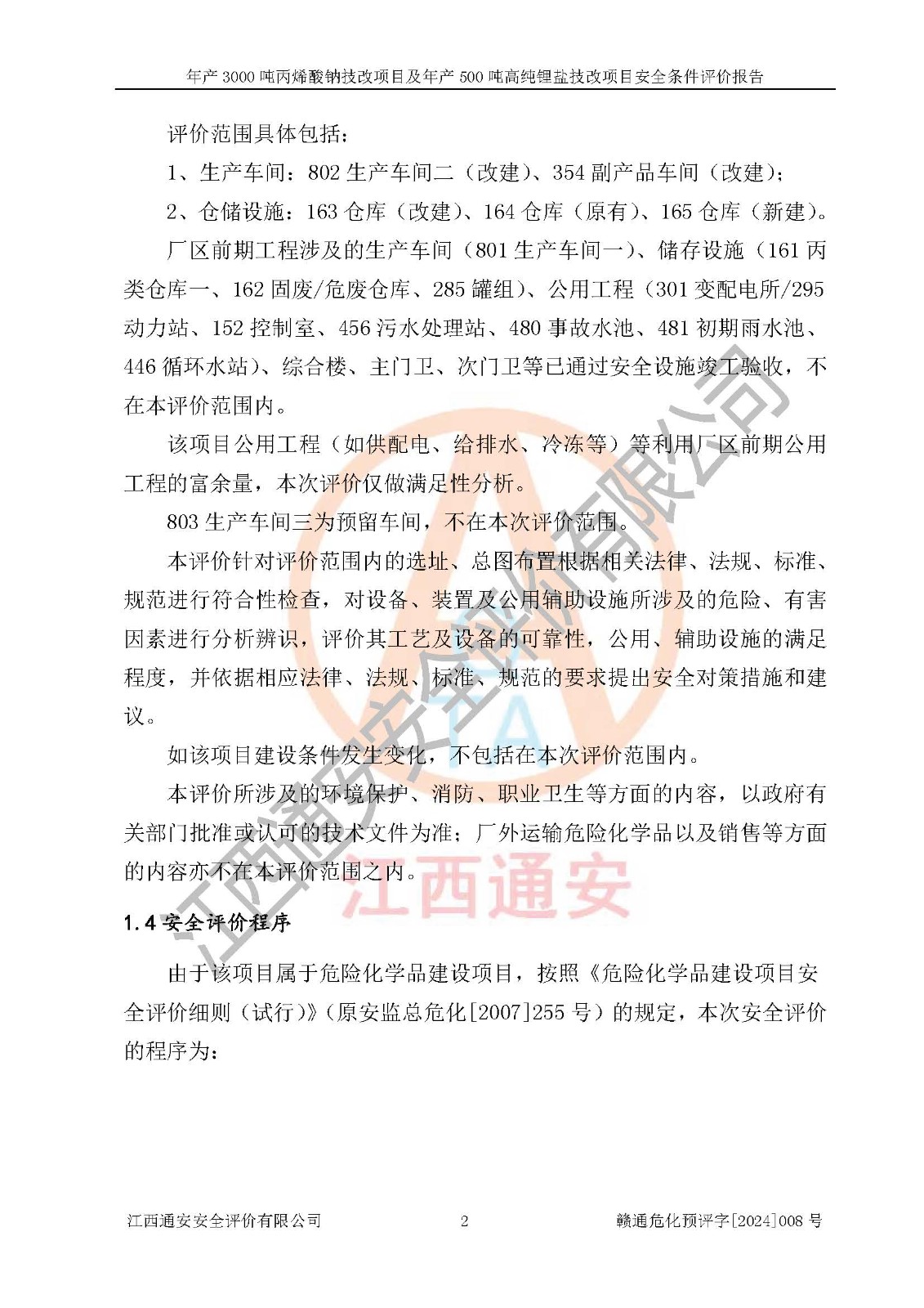評價報告名稱 | 贛州朗固新材料科技有限公司年產(chǎn)3000噸丙烯酸鈉技改項目及年產(chǎn)500噸高純鋰鹽技改項目安全條件評價報告 | |||