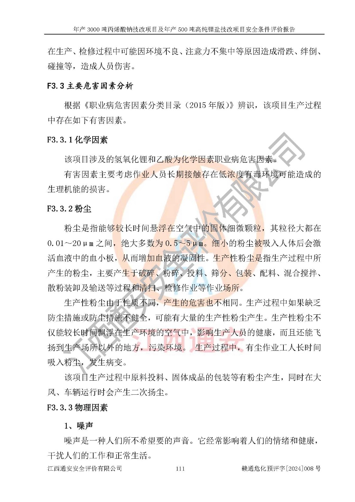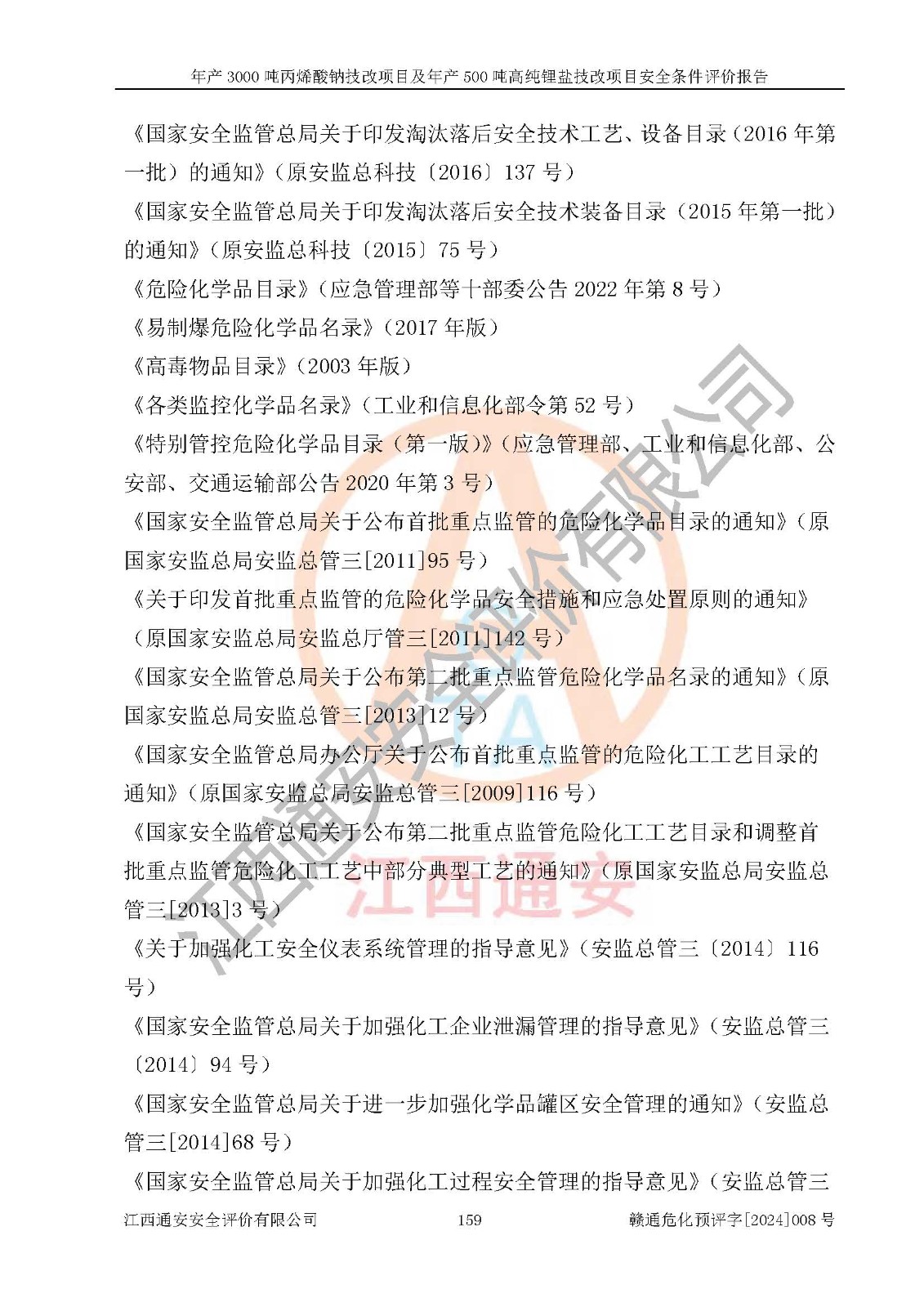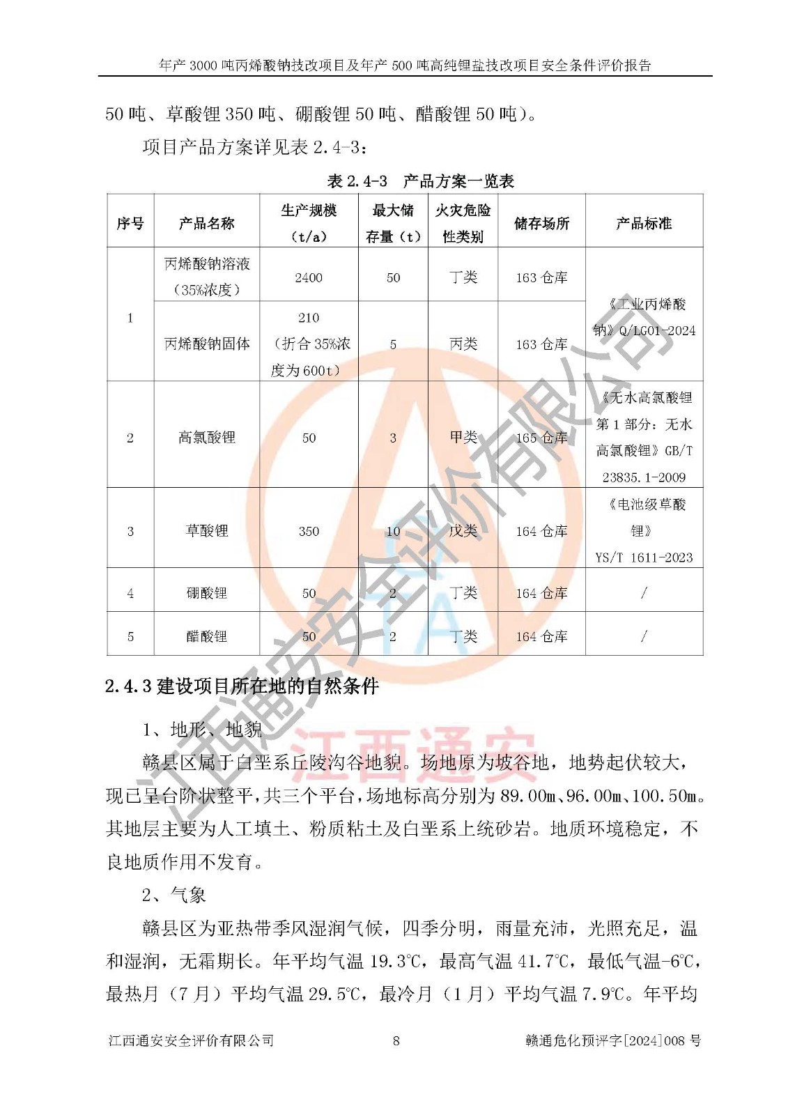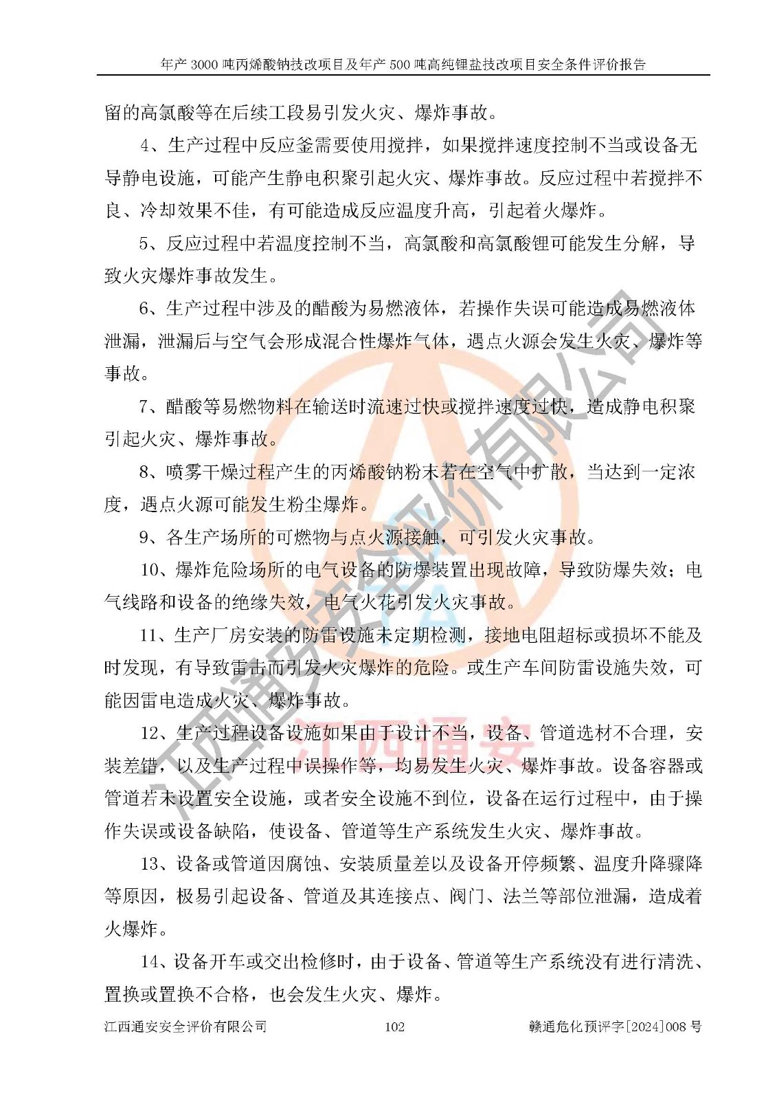 評價報告名稱 | 贛州朗固新材料科技有限公司年產(chǎn)3000噸丙烯酸鈉技改項目及年產(chǎn)500噸高純鋰鹽技改項目安全條件評價報告 | |||