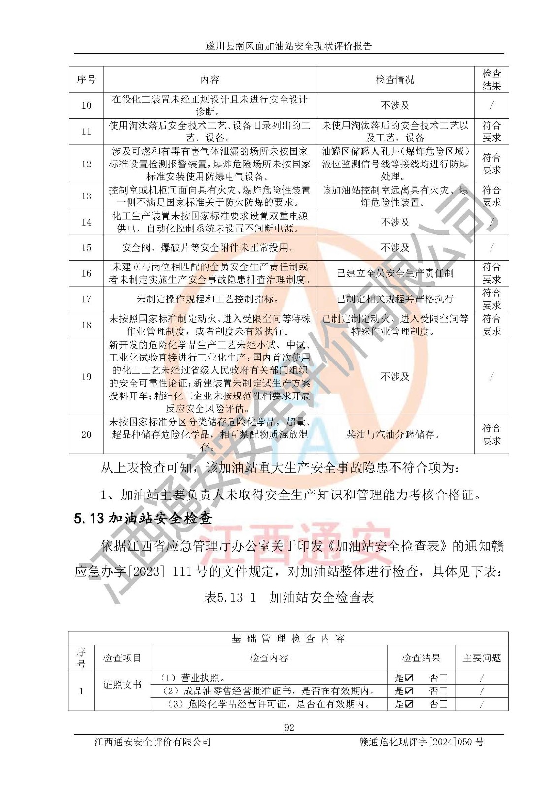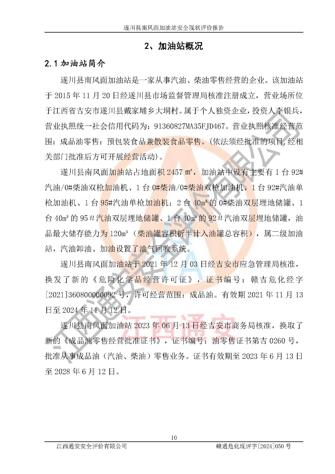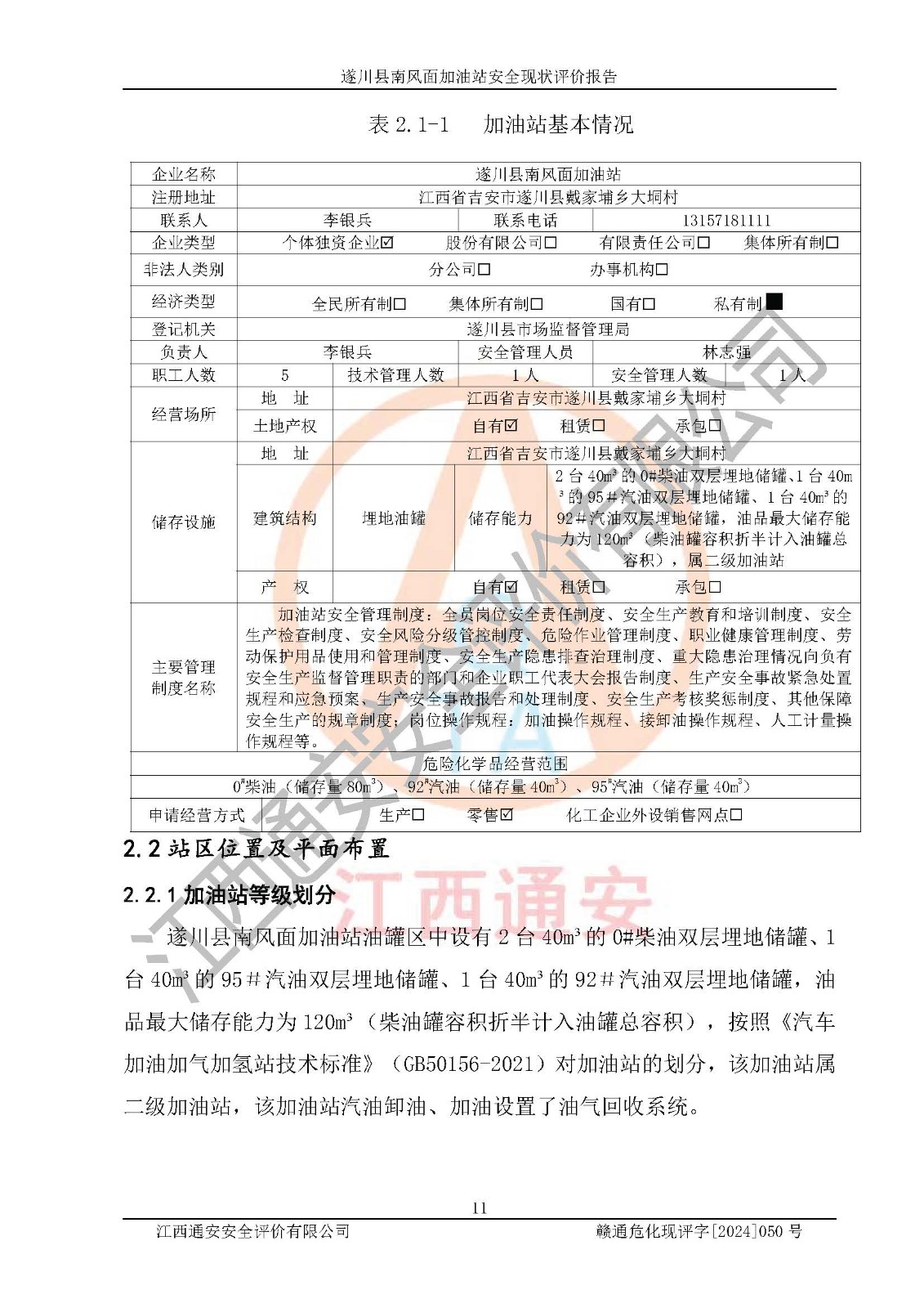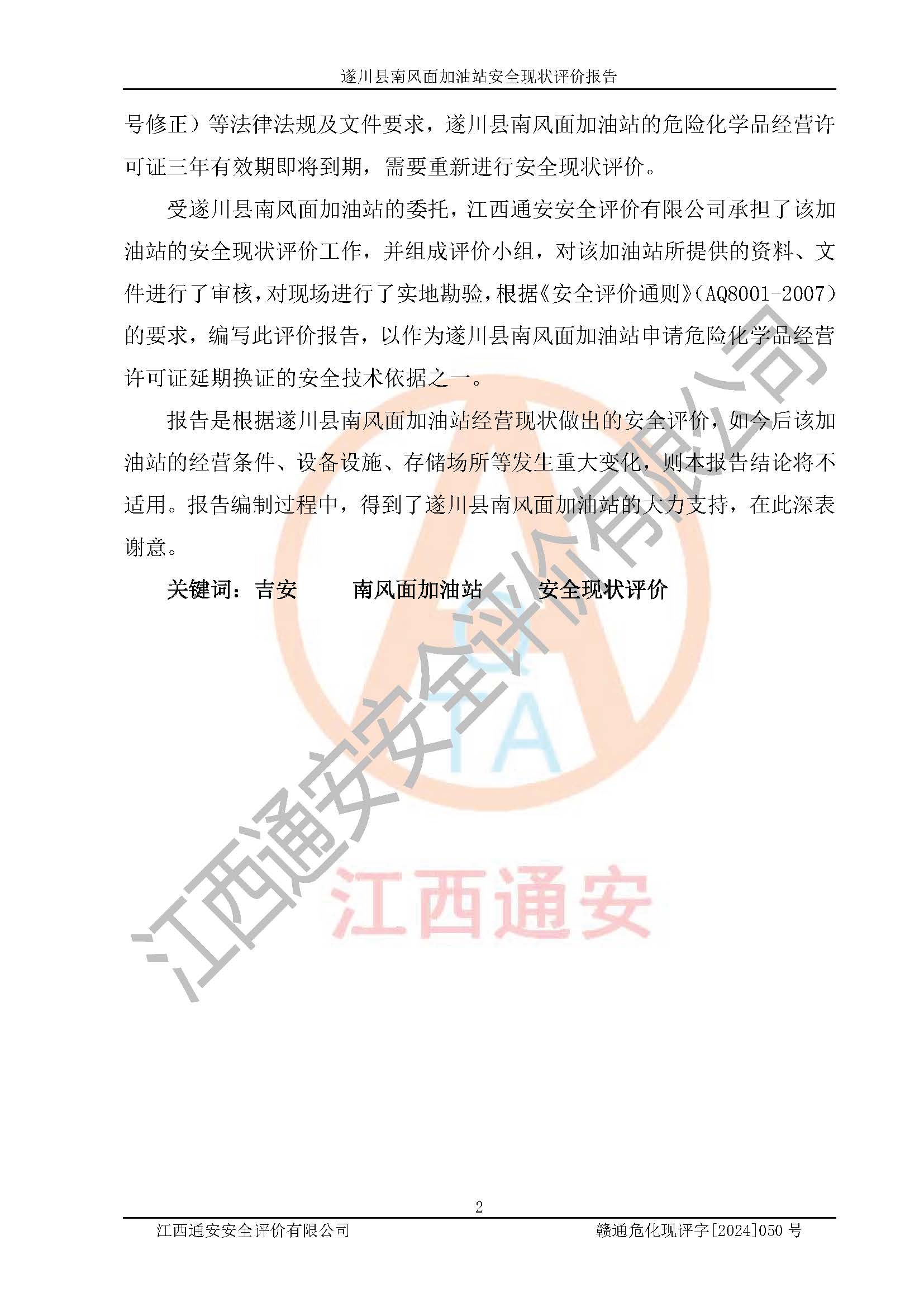 項(xiàng)目名稱 | 遂川縣南風(fēng)面加油站安全現(xiàn)狀評(píng)價(jià)報(bào)告 | ||||