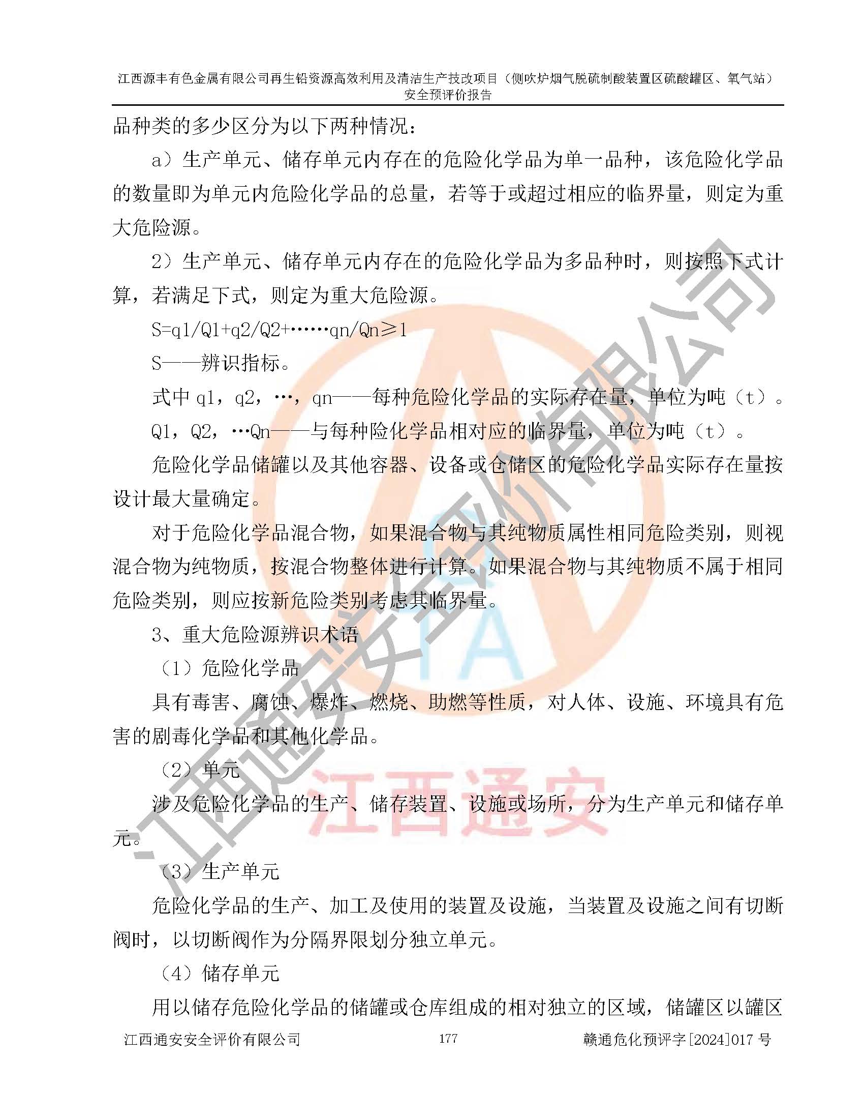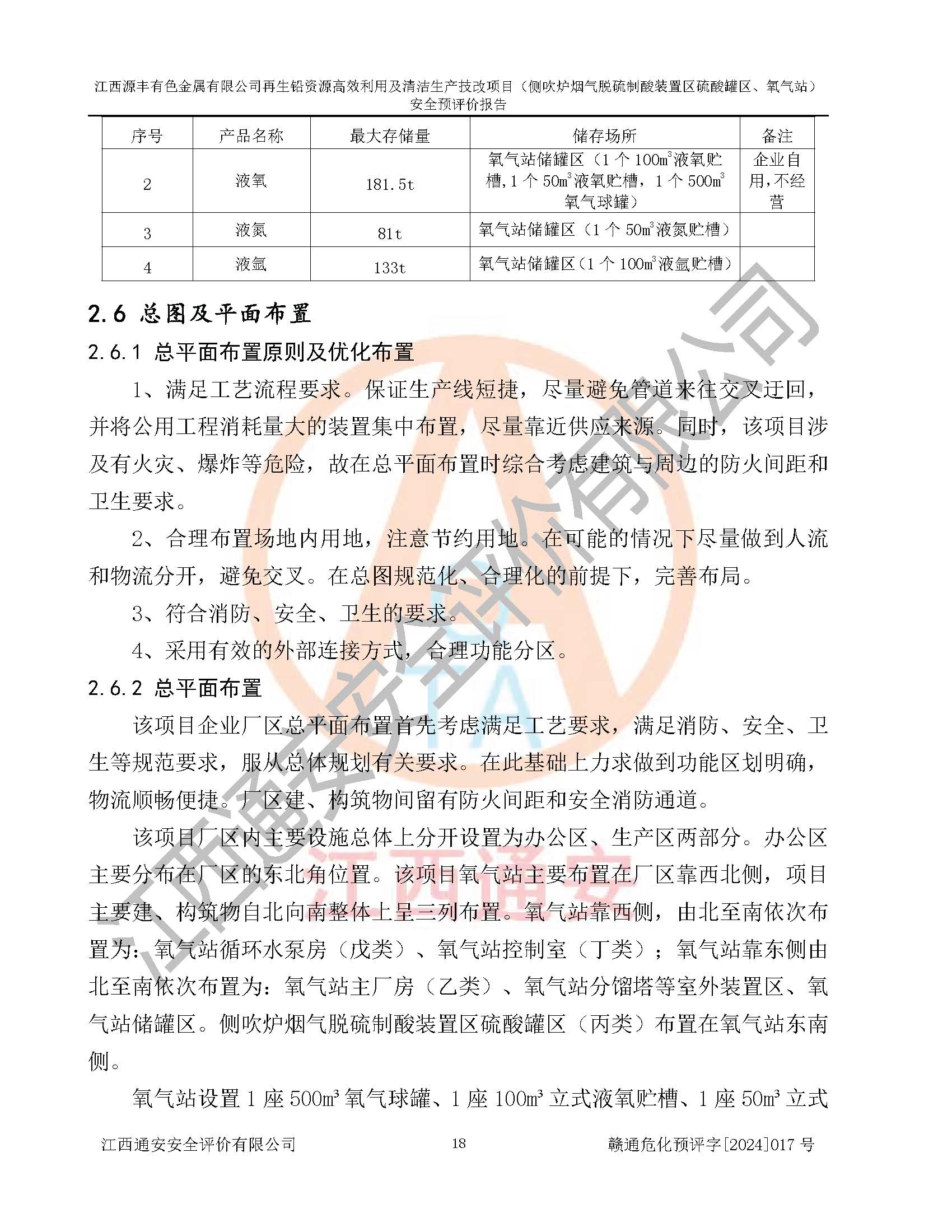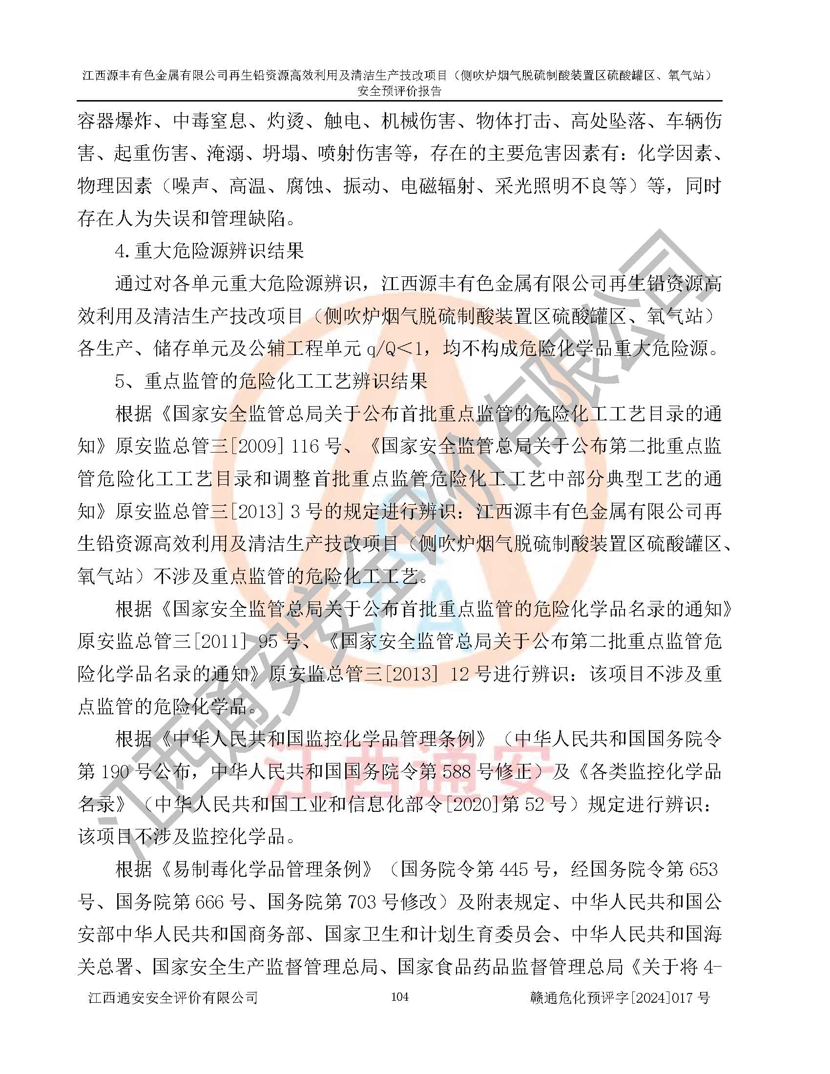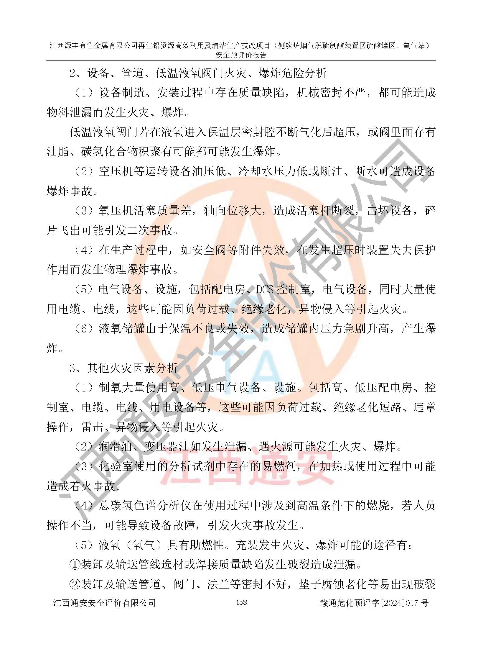 項(xiàng)目簡(jiǎn)介 | 江西源豐有色金屬有限公司成立于2010年08月27日,并取得了永豐縣市場(chǎng)監(jiān)督管理局頒發(fā)的《營(yíng)業(yè)執(zhí)照》,營(yíng)業(yè)執(zhí)照統(tǒng)一社會(huì)信用代碼:91360825561057744X。公司注冊(cè)住所:江西省吉安市永豐縣工業(yè)西區(qū)。法定**人:李新戰(zhàn),注冊(cè)資本:壹億陸仟壹佰捌拾伍萬(wàn)捌仟陸佰元整。企業(yè)類型:有限責(zé)任公司(非自然人投資或控股的法人獨(dú)資)。經(jīng)營(yíng)范圍包括一般項(xiàng)目:有色金屬合金制造,有色金屬合金銷售,廢舊蓄電池、礦燈、銀、鋅、鋁、鉛、銅、廢渣的處理及經(jīng)營(yíng);合金、鉛膏、塑料本企業(yè)自產(chǎn)產(chǎn)品的銷售;自營(yíng)和代理**各類商品和技術(shù)的進(jìn)出口業(yè)務(wù),信息咨詢服務(wù)(不含許可類信息咨詢服務(wù))(除許可業(yè)務(wù)外,可自主依法經(jīng)營(yíng)法律法規(guī)非禁止或限制的項(xiàng)目)。 江西源豐有色金屬有限公司于2024年6月11日取得永豐縣工業(yè)和信息化局出具的《江西省工業(yè)企業(yè)技術(shù)改造項(xiàng)目備案通知書》,項(xiàng)目統(tǒng)一代碼為:2020-360825-42-03-047942,項(xiàng)目名稱為:江西源豐有色金屬有限公司再生鉛資源**利用及清潔生產(chǎn)技改項(xiàng)目。本項(xiàng)目為江西源豐有色金屬有限公司再生鉛資源**利用及清潔生產(chǎn)技改項(xiàng)目的配套工程項(xiàng)目:側(cè)吹爐煙氣脫硫制酸裝置區(qū)硫酸罐區(qū)、氧氣站。 根據(jù)《危險(xiǎn)化學(xué)品目錄(2015版)》(**安監(jiān)總局等十部門公告[2015]第5號(hào)),應(yīng)急管理部、工業(yè)和信息化部、公安部、生態(tài)環(huán)境部、交通運(yùn)輸部、農(nóng)業(yè)農(nóng)村部、衛(wèi)生健康委、市場(chǎng)監(jiān)管總局、鐵路局、民航局決定調(diào)整《危險(xiǎn)化學(xué)品目錄(2015版)》(應(yīng)急管理部、工業(yè)和信息化部、公安部、生態(tài)環(huán)境部、交通運(yùn)輸部、農(nóng)業(yè)農(nóng)村部、衛(wèi)生健康委、市場(chǎng)監(jiān)管總局、鐵路局、民航局公告2022年第8號(hào))以及應(yīng)急管理部辦公廳關(guān)于修改《危險(xiǎn)化學(xué)品目錄(2015年版)實(shí)施指南(試行)》涉及柴油部分內(nèi)容的通知(應(yīng)急廳函[2022]300號(hào)),該項(xiàng)目主要涉及的危險(xiǎn)化學(xué)品有:硫酸、氧(液化的和壓縮的)、氮(液化的和壓縮的)、氬(液化的和壓縮的)。 | |||