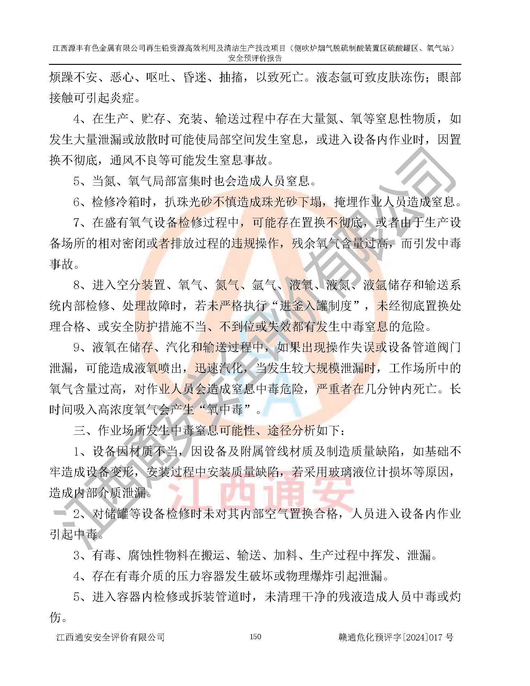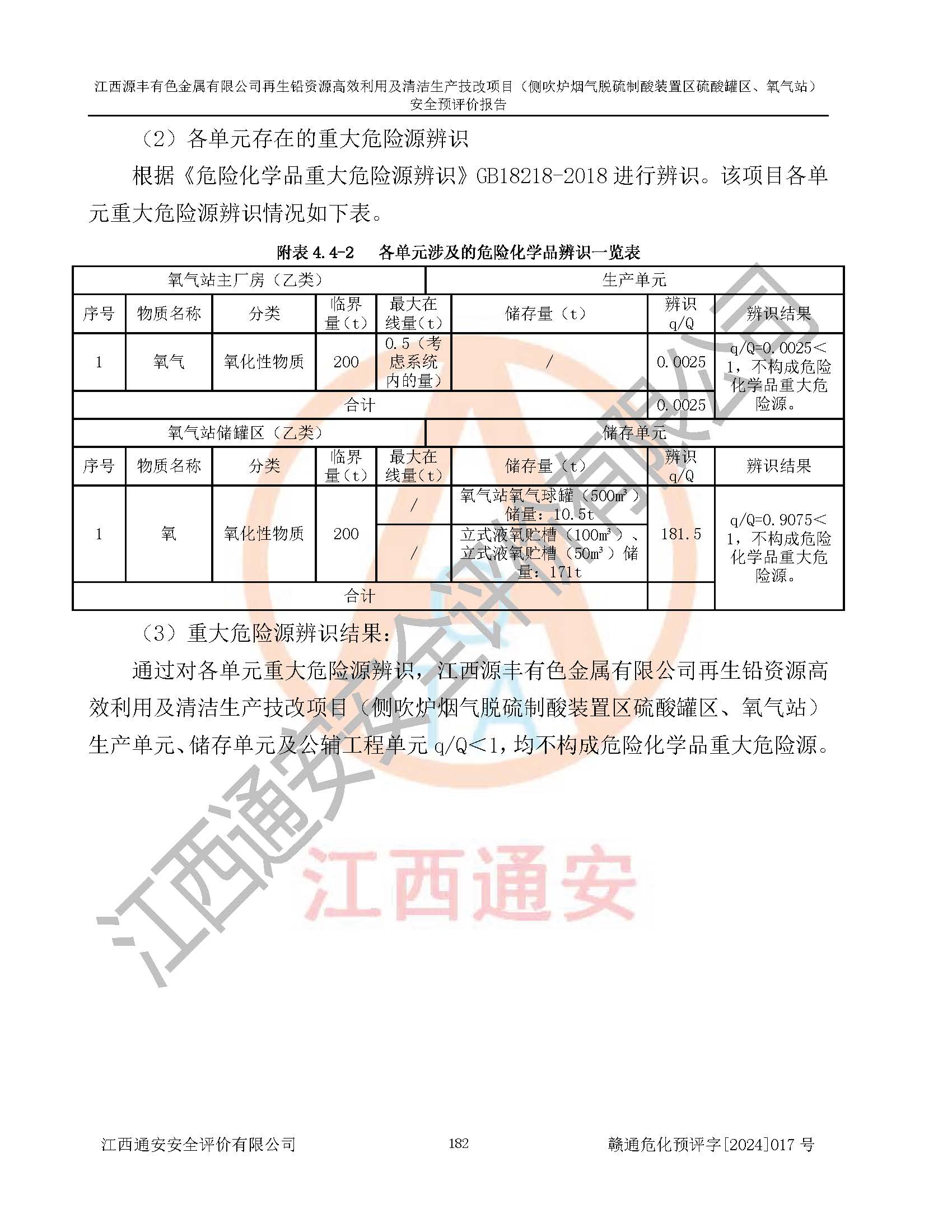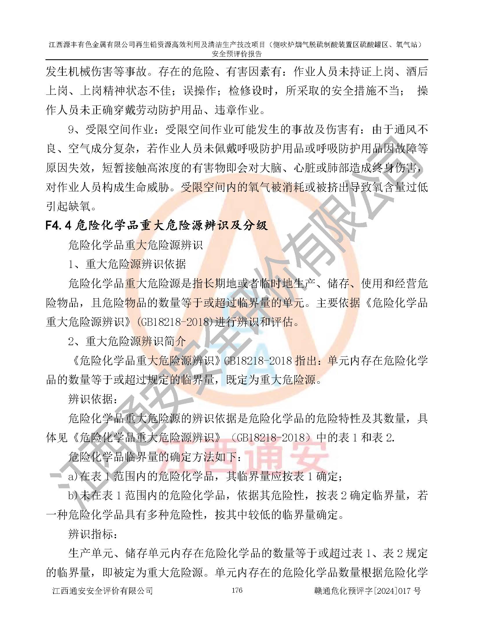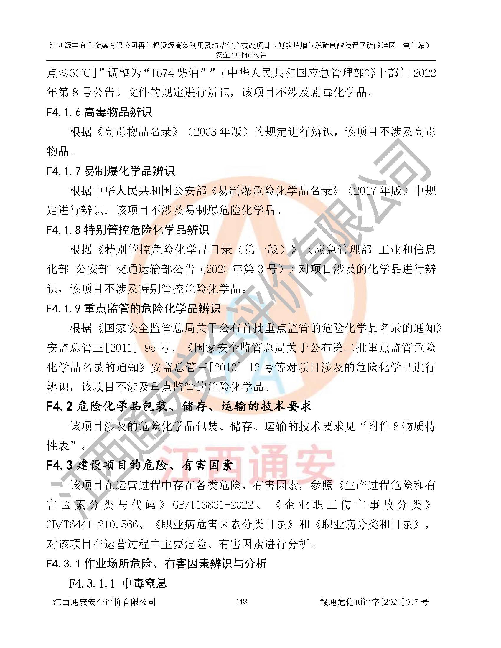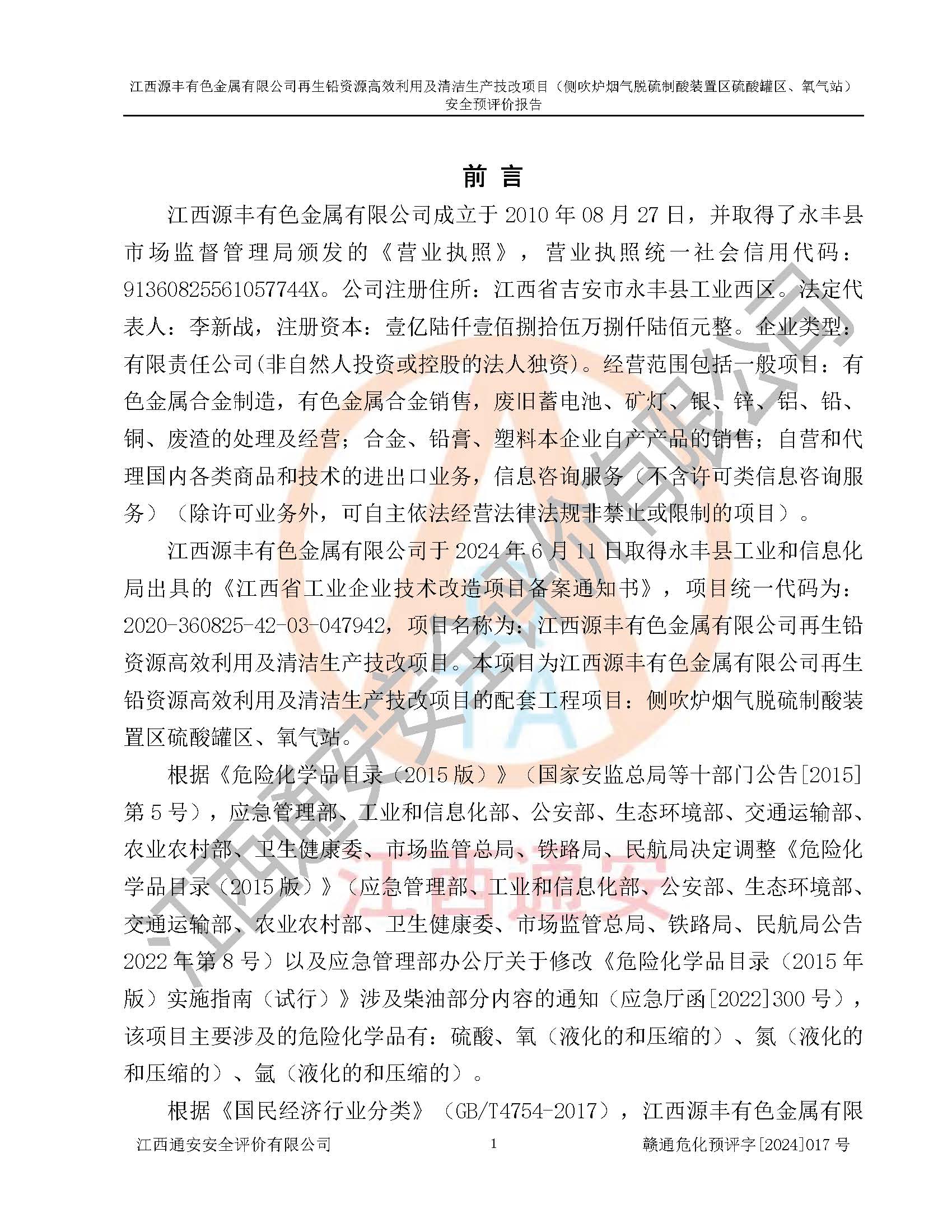 項(xiàng)目簡(jiǎn)介 | 江西源豐有色金屬有限公司成立于2010年08月27日,并取得了永豐縣市場(chǎng)監(jiān)督管理局頒發(fā)的《營(yíng)業(yè)執(zhí)照》,營(yíng)業(yè)執(zhí)照統(tǒng)一社會(huì)信用代碼:91360825561057744X。公司注冊(cè)住所:江西省吉安市永豐縣工業(yè)西區(qū)。法定**人:李新戰(zhàn),注冊(cè)資本:壹億陸仟壹佰捌拾伍萬(wàn)捌仟陸佰元整。企業(yè)類型:有限責(zé)任公司(非自然人投資或控股的法人獨(dú)資)。經(jīng)營(yíng)范圍包括一般項(xiàng)目:有色金屬合金制造,有色金屬合金銷售,廢舊蓄電池、礦燈、銀、鋅、鋁、鉛、銅、廢渣的處理及經(jīng)營(yíng);合金、鉛膏、塑料本企業(yè)自產(chǎn)產(chǎn)品的銷售;自營(yíng)和代理**各類商品和技術(shù)的進(jìn)出口業(yè)務(wù),信息咨詢服務(wù)(不含許可類信息咨詢服務(wù))(除許可業(yè)務(wù)外,可自主依法經(jīng)營(yíng)法律法規(guī)非禁止或限制的項(xiàng)目)。 江西源豐有色金屬有限公司于2024年6月11日取得永豐縣工業(yè)和信息化局出具的《江西省工業(yè)企業(yè)技術(shù)改造項(xiàng)目備案通知書》,項(xiàng)目統(tǒng)一代碼為:2020-360825-42-03-047942,項(xiàng)目名稱為:江西源豐有色金屬有限公司再生鉛資源**利用及清潔生產(chǎn)技改項(xiàng)目。本項(xiàng)目為江西源豐有色金屬有限公司再生鉛資源**利用及清潔生產(chǎn)技改項(xiàng)目的配套工程項(xiàng)目:側(cè)吹爐煙氣脫硫制酸裝置區(qū)硫酸罐區(qū)、氧氣站。 根據(jù)《危險(xiǎn)化學(xué)品目錄(2015版)》(**安監(jiān)總局等十部門公告[2015]第5號(hào)),應(yīng)急管理部、工業(yè)和信息化部、公安部、生態(tài)環(huán)境部、交通運(yùn)輸部、農(nóng)業(yè)農(nóng)村部、衛(wèi)生健康委、市場(chǎng)監(jiān)管總局、鐵路局、民航局決定調(diào)整《危險(xiǎn)化學(xué)品目錄(2015版)》(應(yīng)急管理部、工業(yè)和信息化部、公安部、生態(tài)環(huán)境部、交通運(yùn)輸部、農(nóng)業(yè)農(nóng)村部、衛(wèi)生健康委、市場(chǎng)監(jiān)管總局、鐵路局、民航局公告2022年第8號(hào))以及應(yīng)急管理部辦公廳關(guān)于修改《危險(xiǎn)化學(xué)品目錄(2015年版)實(shí)施指南(試行)》涉及柴油部分內(nèi)容的通知(應(yīng)急廳函[2022]300號(hào)),該項(xiàng)目主要涉及的危險(xiǎn)化學(xué)品有:硫酸、氧(液化的和壓縮的)、氮(液化的和壓縮的)、氬(液化的和壓縮的)。 | |||