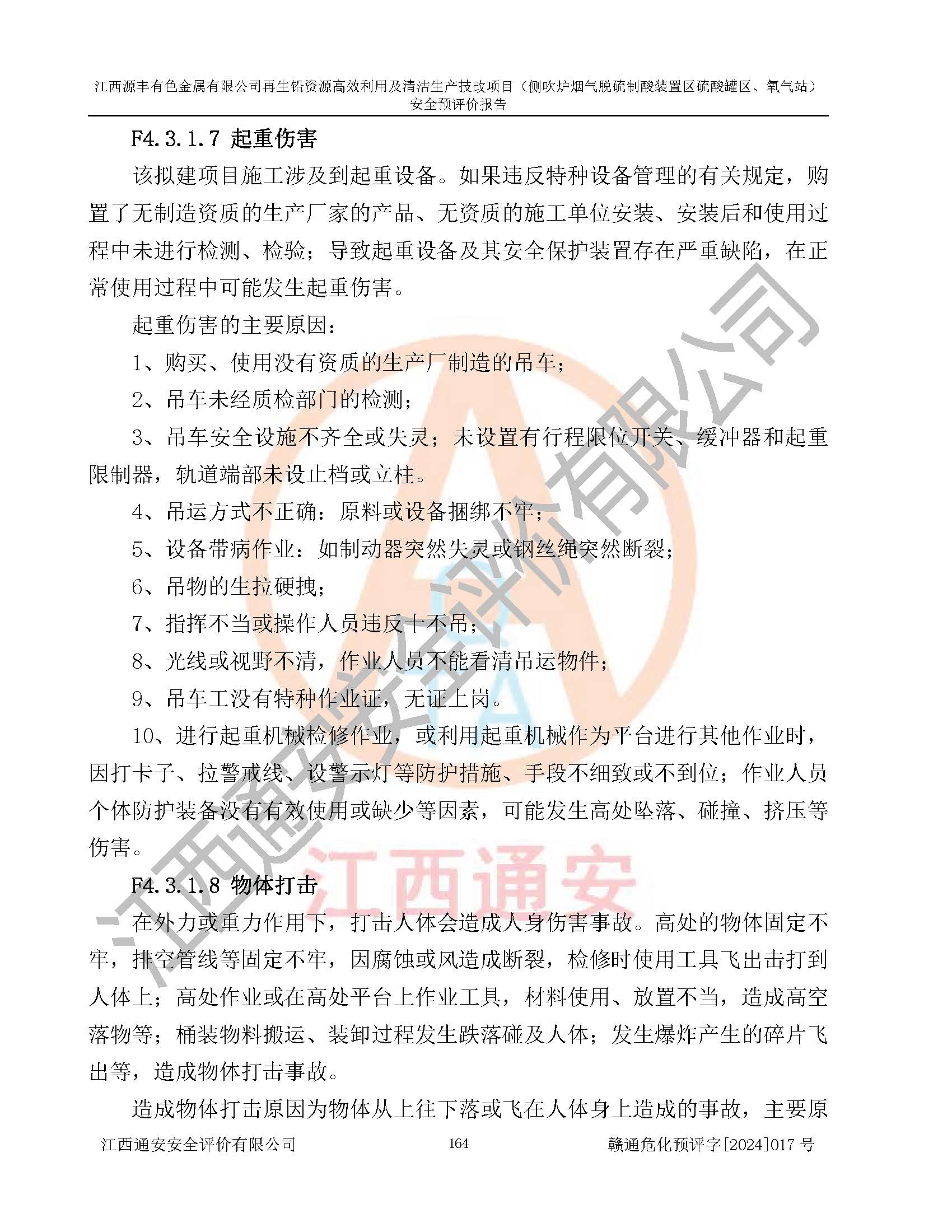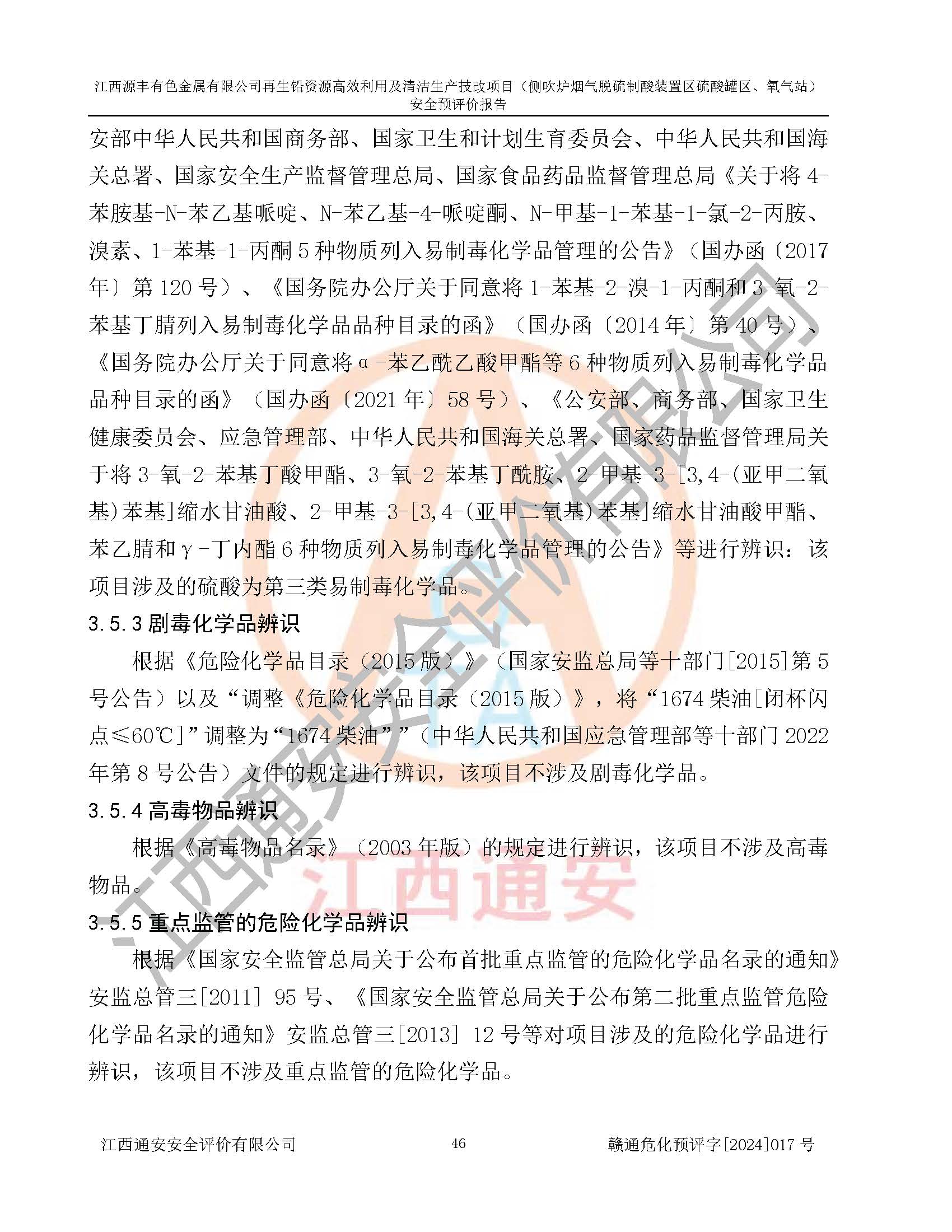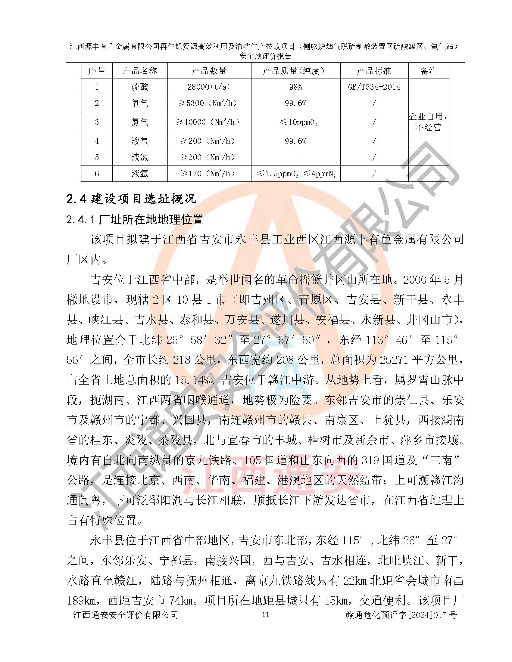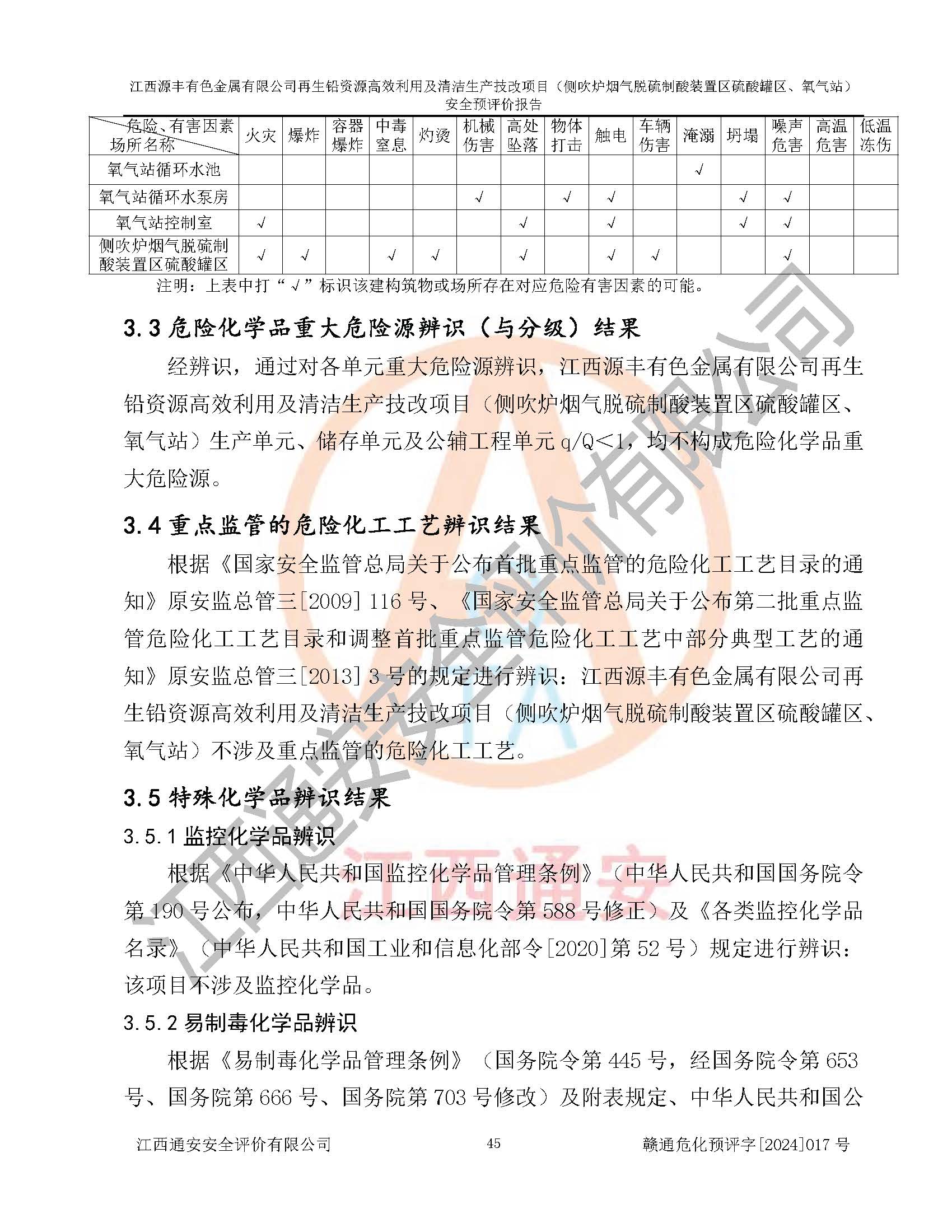 項(xiàng)目簡(jiǎn)介 | 江西源豐有色金屬有限公司成立于2010年08月27日,并取得了永豐縣市場(chǎng)監(jiān)督管理局頒發(fā)的《營(yíng)業(yè)執(zhí)照》,營(yíng)業(yè)執(zhí)照統(tǒng)一社會(huì)信用代碼:91360825561057744X。公司注冊(cè)住所:江西省吉安市永豐縣工業(yè)西區(qū)。法定**人:李新戰(zhàn),注冊(cè)資本:壹億陸仟壹佰捌拾伍萬(wàn)捌仟陸佰元整。企業(yè)類型:有限責(zé)任公司(非自然人投資或控股的法人獨(dú)資)。經(jīng)營(yíng)范圍包括一般項(xiàng)目:有色金屬合金制造,有色金屬合金銷售,廢舊蓄電池、礦燈、銀、鋅、鋁、鉛、銅、廢渣的處理及經(jīng)營(yíng);合金、鉛膏、塑料本企業(yè)自產(chǎn)產(chǎn)品的銷售;自營(yíng)和代理**各類商品和技術(shù)的進(jìn)出口業(yè)務(wù),信息咨詢服務(wù)(不含許可類信息咨詢服務(wù))(除許可業(yè)務(wù)外,可自主依法經(jīng)營(yíng)法律法規(guī)非禁止或限制的項(xiàng)目)。 江西源豐有色金屬有限公司于2024年6月11日取得永豐縣工業(yè)和信息化局出具的《江西省工業(yè)企業(yè)技術(shù)改造項(xiàng)目備案通知書》,項(xiàng)目統(tǒng)一代碼為:2020-360825-42-03-047942,項(xiàng)目名稱為:江西源豐有色金屬有限公司再生鉛資源**利用及清潔生產(chǎn)技改項(xiàng)目。本項(xiàng)目為江西源豐有色金屬有限公司再生鉛資源**利用及清潔生產(chǎn)技改項(xiàng)目的配套工程項(xiàng)目:側(cè)吹爐煙氣脫硫制酸裝置區(qū)硫酸罐區(qū)、氧氣站。 根據(jù)《危險(xiǎn)化學(xué)品目錄(2015版)》(**安監(jiān)總局等十部門公告[2015]第5號(hào)),應(yīng)急管理部、工業(yè)和信息化部、公安部、生態(tài)環(huán)境部、交通運(yùn)輸部、農(nóng)業(yè)農(nóng)村部、衛(wèi)生健康委、市場(chǎng)監(jiān)管總局、鐵路局、民航局決定調(diào)整《危險(xiǎn)化學(xué)品目錄(2015版)》(應(yīng)急管理部、工業(yè)和信息化部、公安部、生態(tài)環(huán)境部、交通運(yùn)輸部、農(nóng)業(yè)農(nóng)村部、衛(wèi)生健康委、市場(chǎng)監(jiān)管總局、鐵路局、民航局公告2022年第8號(hào))以及應(yīng)急管理部辦公廳關(guān)于修改《危險(xiǎn)化學(xué)品目錄(2015年版)實(shí)施指南(試行)》涉及柴油部分內(nèi)容的通知(應(yīng)急廳函[2022]300號(hào)),該項(xiàng)目主要涉及的危險(xiǎn)化學(xué)品有:硫酸、氧(液化的和壓縮的)、氮(液化的和壓縮的)、氬(液化的和壓縮的)。 | |||