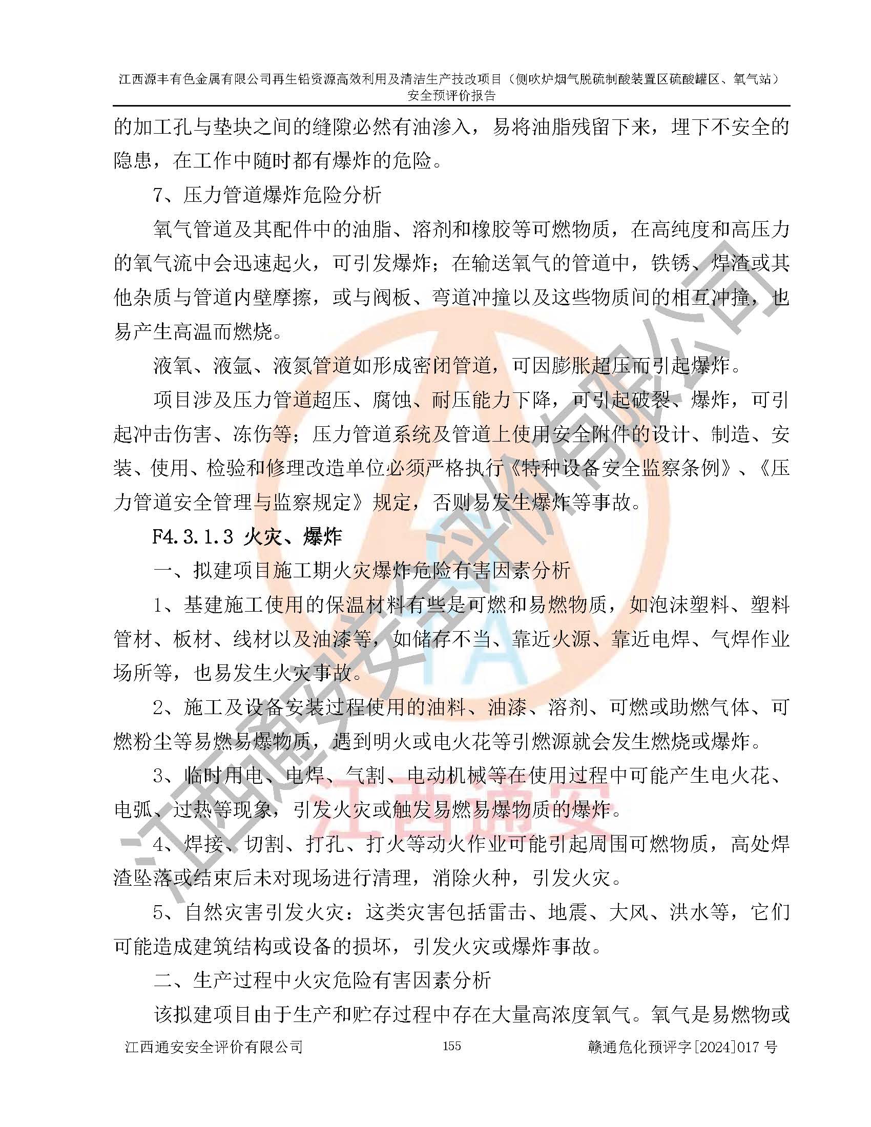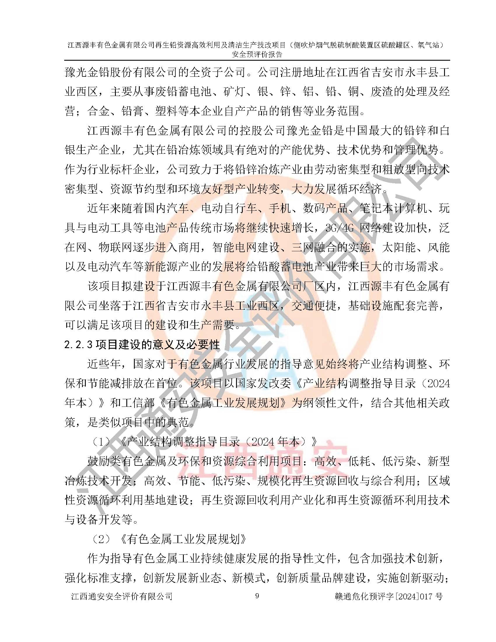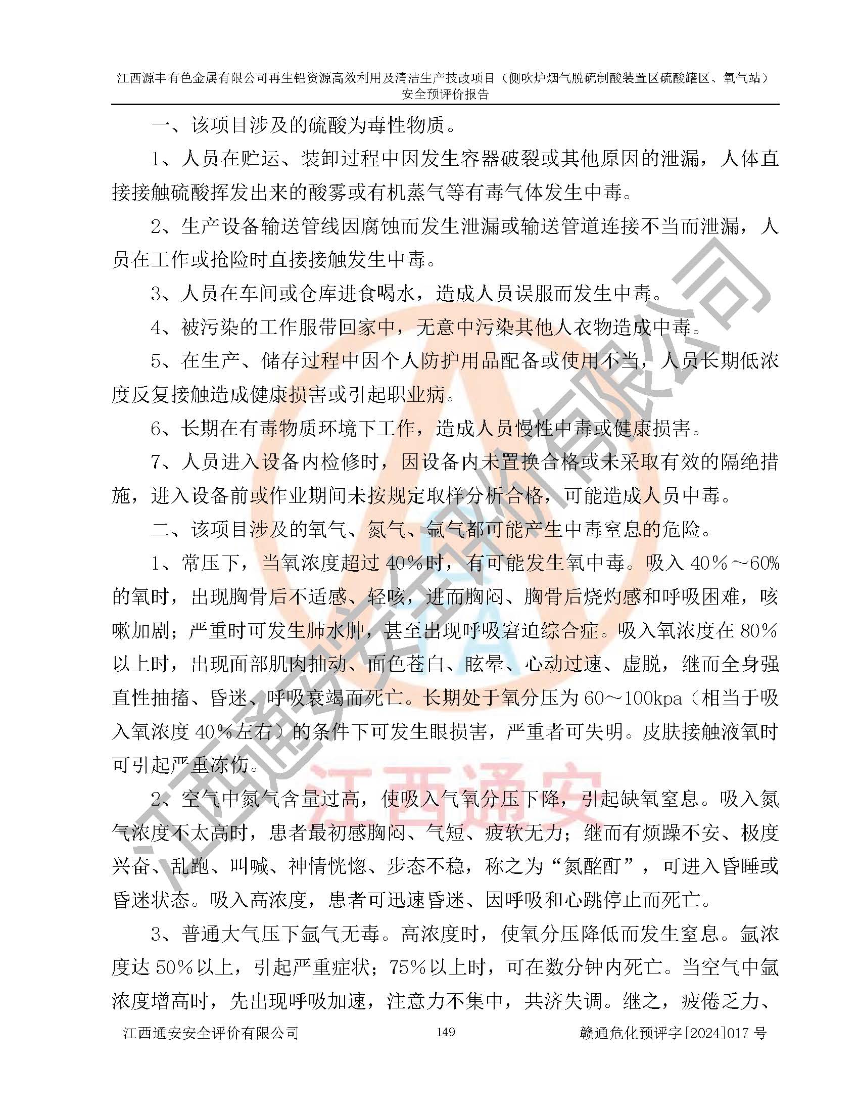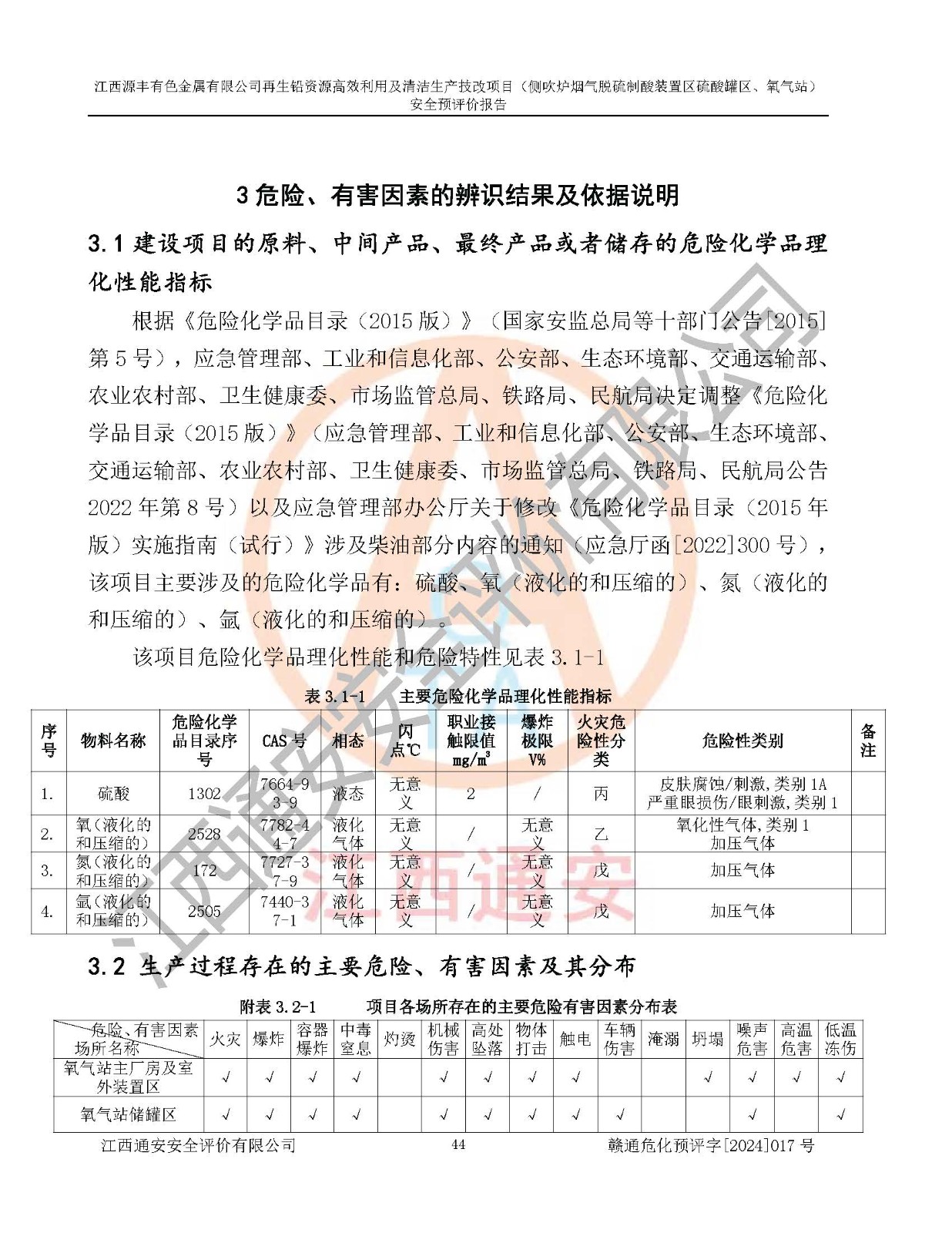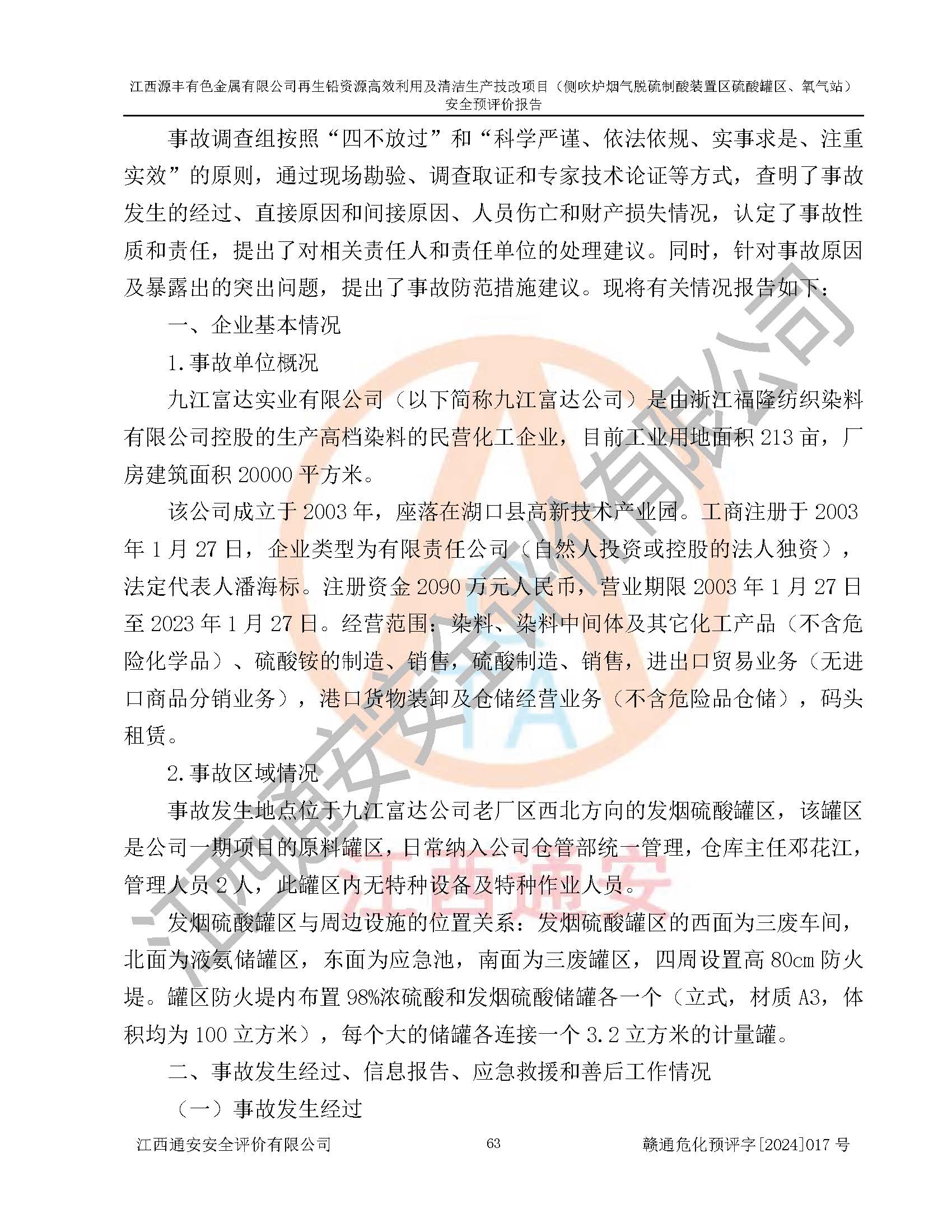 項(xiàng)目簡(jiǎn)介 | 江西源豐有色金屬有限公司成立于2010年08月27日,并取得了永豐縣市場(chǎng)監(jiān)督管理局頒發(fā)的《營(yíng)業(yè)執(zhí)照》,營(yíng)業(yè)執(zhí)照統(tǒng)一社會(huì)信用代碼:91360825561057744X。公司注冊(cè)住所:江西省吉安市永豐縣工業(yè)西區(qū)。法定**人:李新戰(zhàn),注冊(cè)資本:壹億陸仟壹佰捌拾伍萬(wàn)捌仟陸佰元整。企業(yè)類型:有限責(zé)任公司(非自然人投資或控股的法人獨(dú)資)。經(jīng)營(yíng)范圍包括一般項(xiàng)目:有色金屬合金制造,有色金屬合金銷售,廢舊蓄電池、礦燈、銀、鋅、鋁、鉛、銅、廢渣的處理及經(jīng)營(yíng);合金、鉛膏、塑料本企業(yè)自產(chǎn)產(chǎn)品的銷售;自營(yíng)和代理**各類商品和技術(shù)的進(jìn)出口業(yè)務(wù),信息咨詢服務(wù)(不含許可類信息咨詢服務(wù))(除許可業(yè)務(wù)外,可自主依法經(jīng)營(yíng)法律法規(guī)非禁止或限制的項(xiàng)目)。 江西源豐有色金屬有限公司于2024年6月11日取得永豐縣工業(yè)和信息化局出具的《江西省工業(yè)企業(yè)技術(shù)改造項(xiàng)目備案通知書》,項(xiàng)目統(tǒng)一代碼為:2020-360825-42-03-047942,項(xiàng)目名稱為:江西源豐有色金屬有限公司再生鉛資源**利用及清潔生產(chǎn)技改項(xiàng)目。本項(xiàng)目為江西源豐有色金屬有限公司再生鉛資源**利用及清潔生產(chǎn)技改項(xiàng)目的配套工程項(xiàng)目:側(cè)吹爐煙氣脫硫制酸裝置區(qū)硫酸罐區(qū)、氧氣站。 根據(jù)《危險(xiǎn)化學(xué)品目錄(2015版)》(**安監(jiān)總局等十部門公告[2015]第5號(hào)),應(yīng)急管理部、工業(yè)和信息化部、公安部、生態(tài)環(huán)境部、交通運(yùn)輸部、農(nóng)業(yè)農(nóng)村部、衛(wèi)生健康委、市場(chǎng)監(jiān)管總局、鐵路局、民航局決定調(diào)整《危險(xiǎn)化學(xué)品目錄(2015版)》(應(yīng)急管理部、工業(yè)和信息化部、公安部、生態(tài)環(huán)境部、交通運(yùn)輸部、農(nóng)業(yè)農(nóng)村部、衛(wèi)生健康委、市場(chǎng)監(jiān)管總局、鐵路局、民航局公告2022年第8號(hào))以及應(yīng)急管理部辦公廳關(guān)于修改《危險(xiǎn)化學(xué)品目錄(2015年版)實(shí)施指南(試行)》涉及柴油部分內(nèi)容的通知(應(yīng)急廳函[2022]300號(hào)),該項(xiàng)目主要涉及的危險(xiǎn)化學(xué)品有:硫酸、氧(液化的和壓縮的)、氮(液化的和壓縮的)、氬(液化的和壓縮的)。 | |||