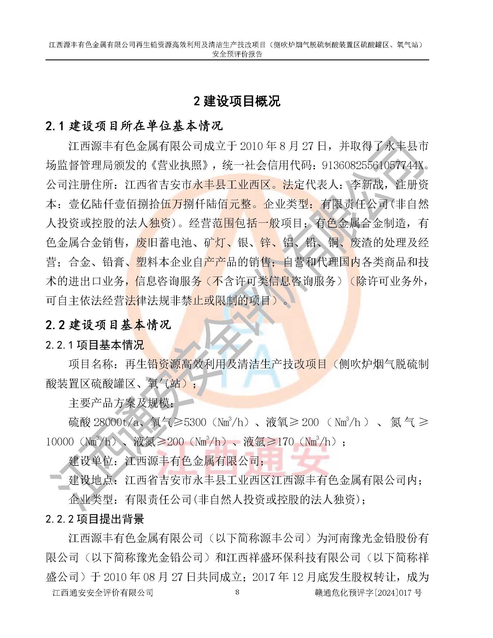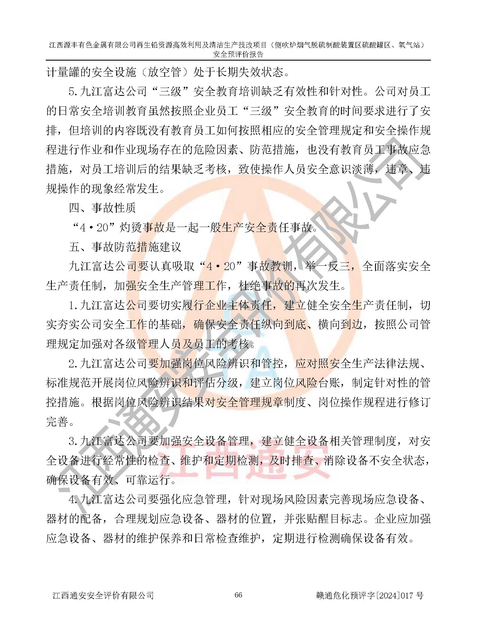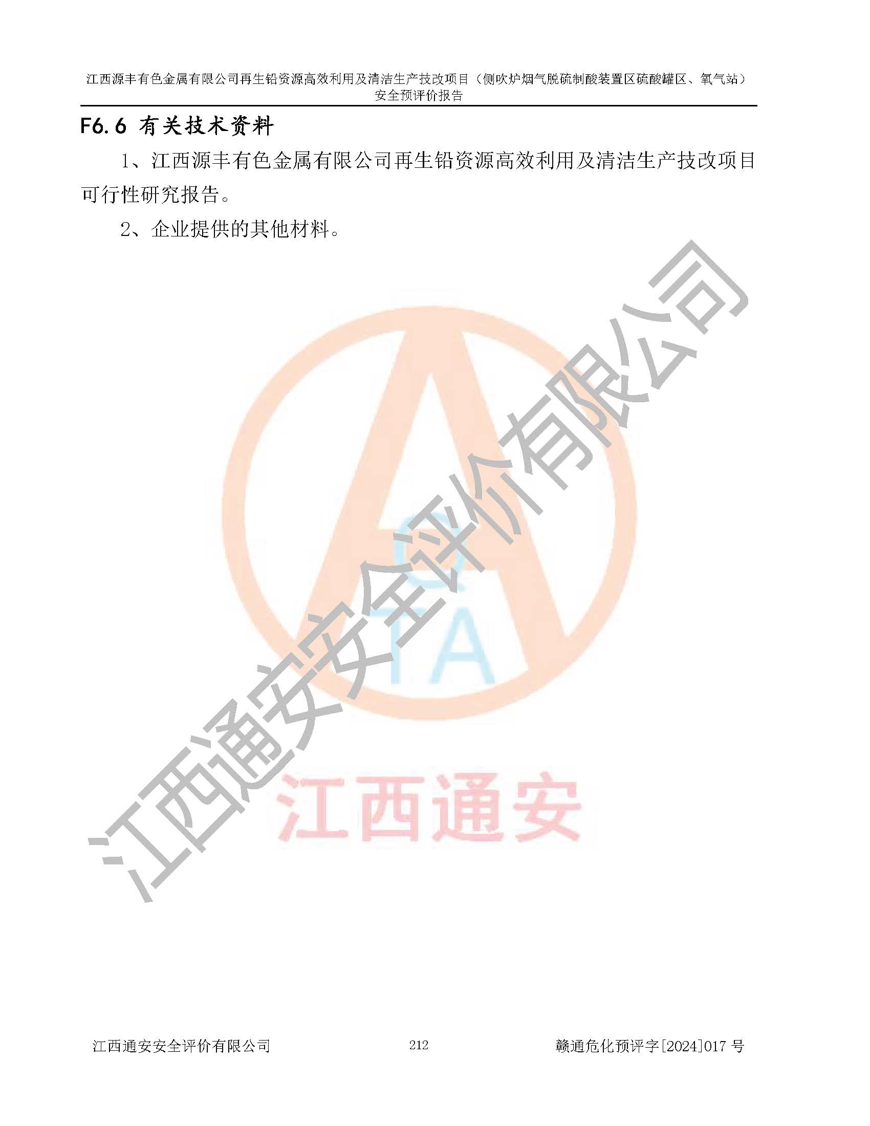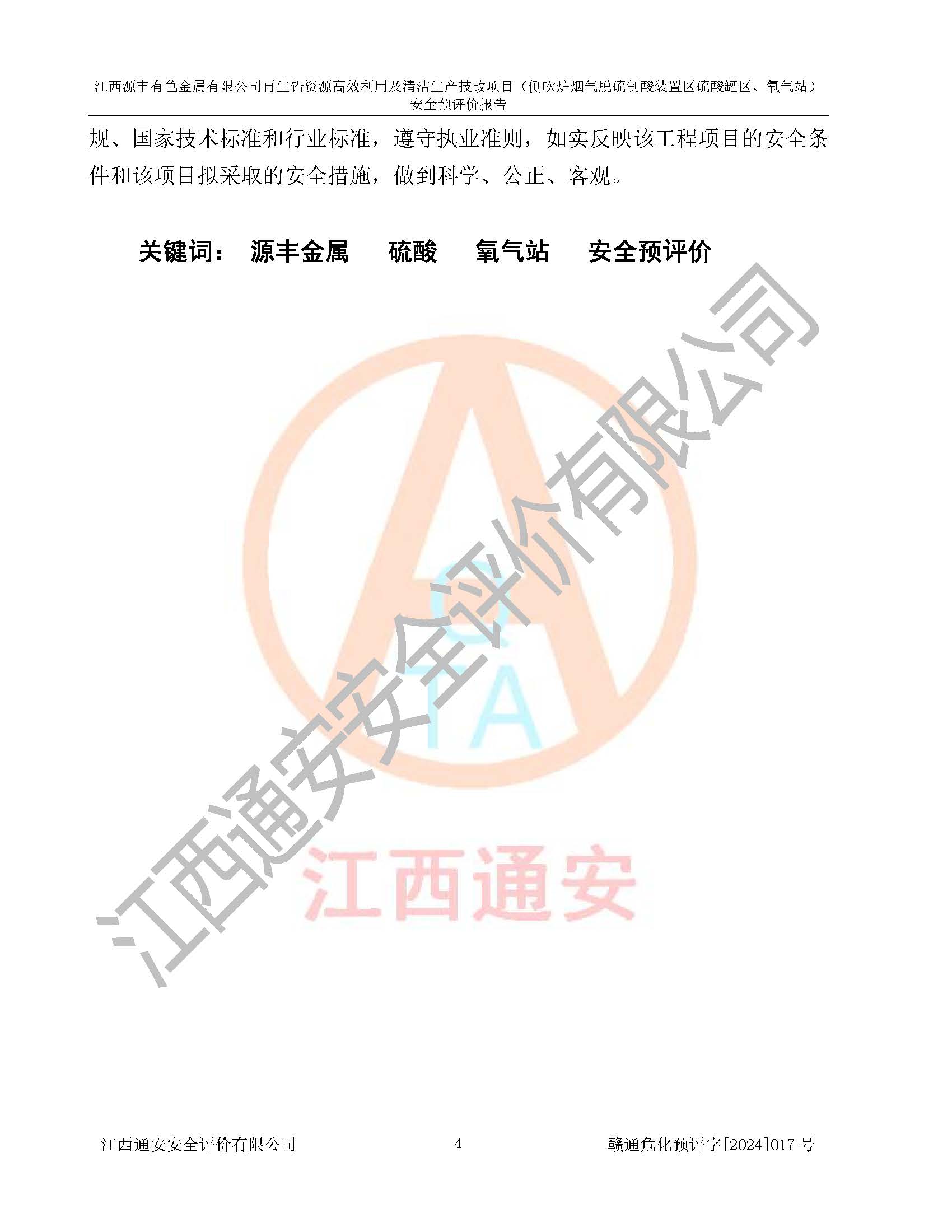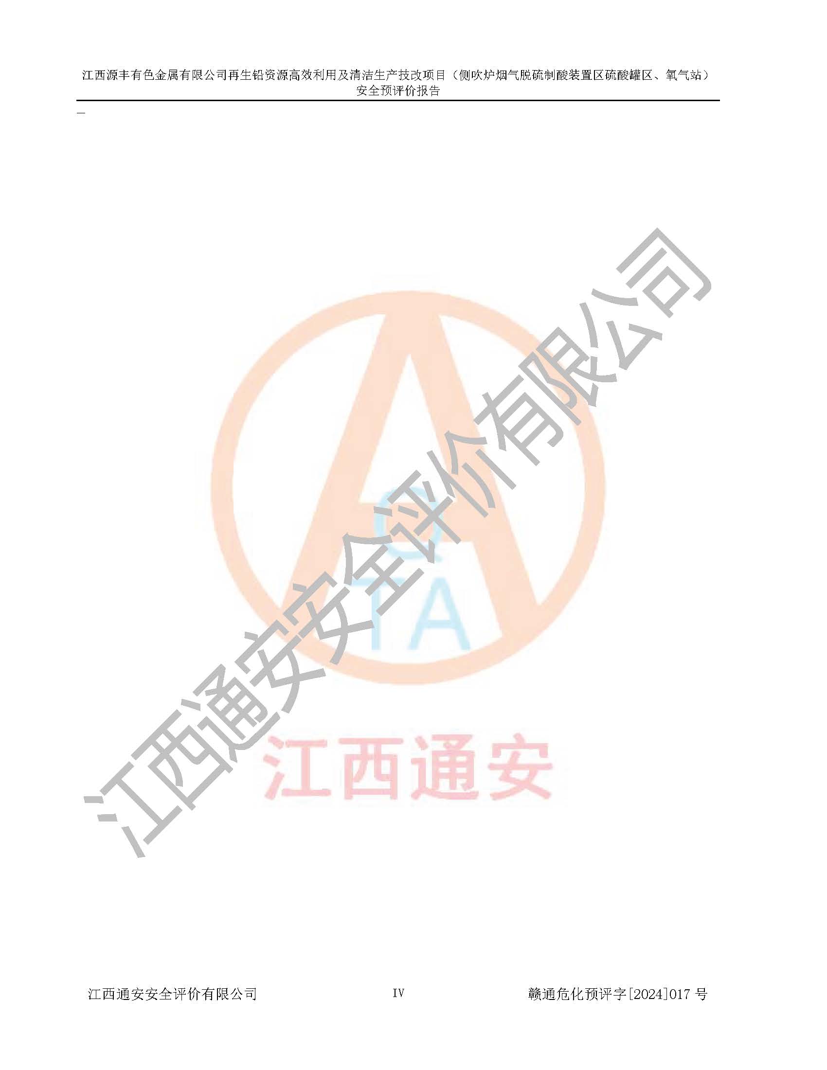 評(píng)價(jià)報(bào)告名稱 | 江西源豐有色金屬有限公司再生鉛資源**利用及清潔生產(chǎn)技改項(xiàng)目(側(cè)吹爐煙氣脫硫制酸裝置區(qū)硫酸罐區(qū)、氧氣站)安全預(yù)評(píng)價(jià)報(bào)告 | |||