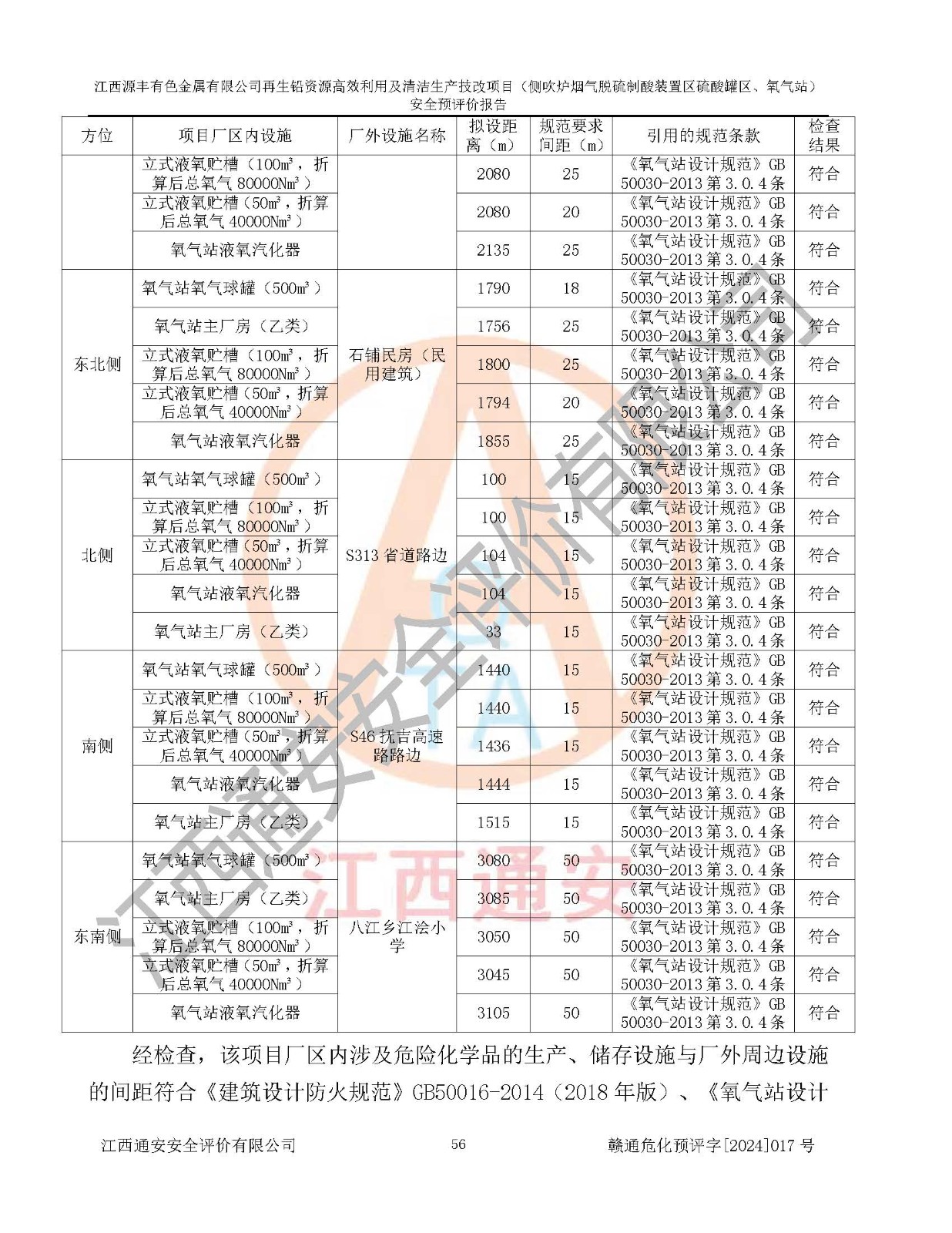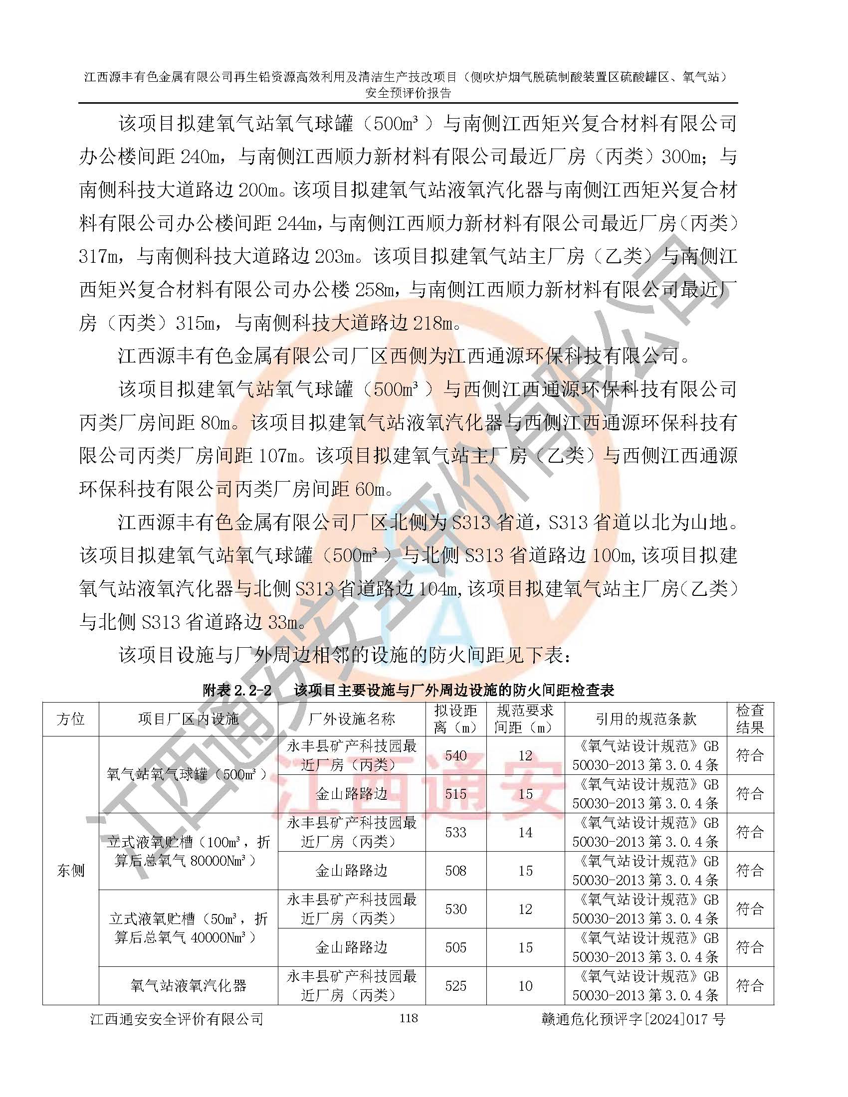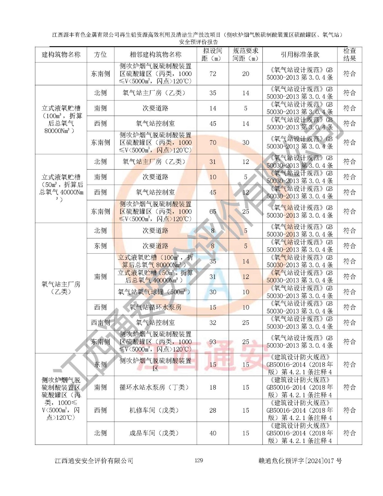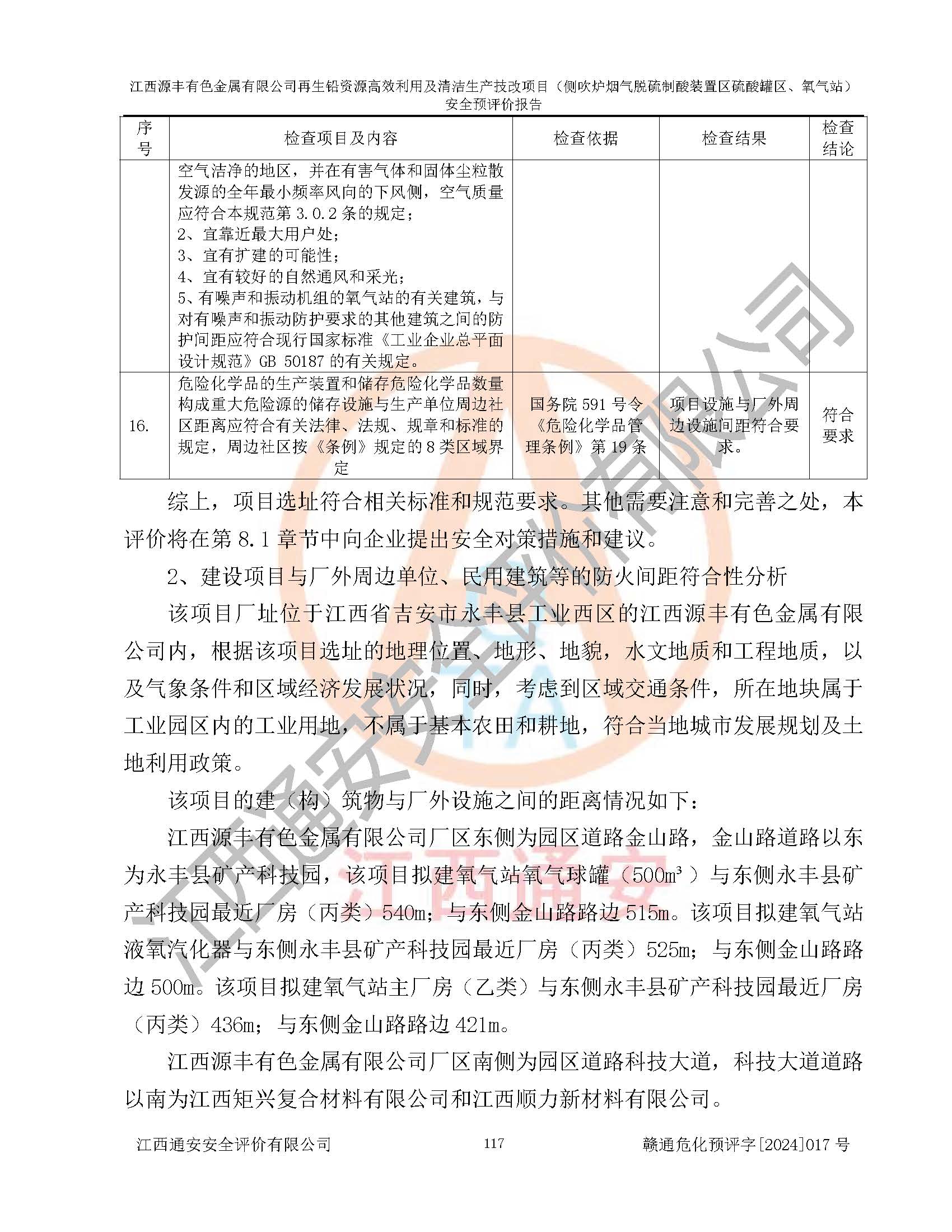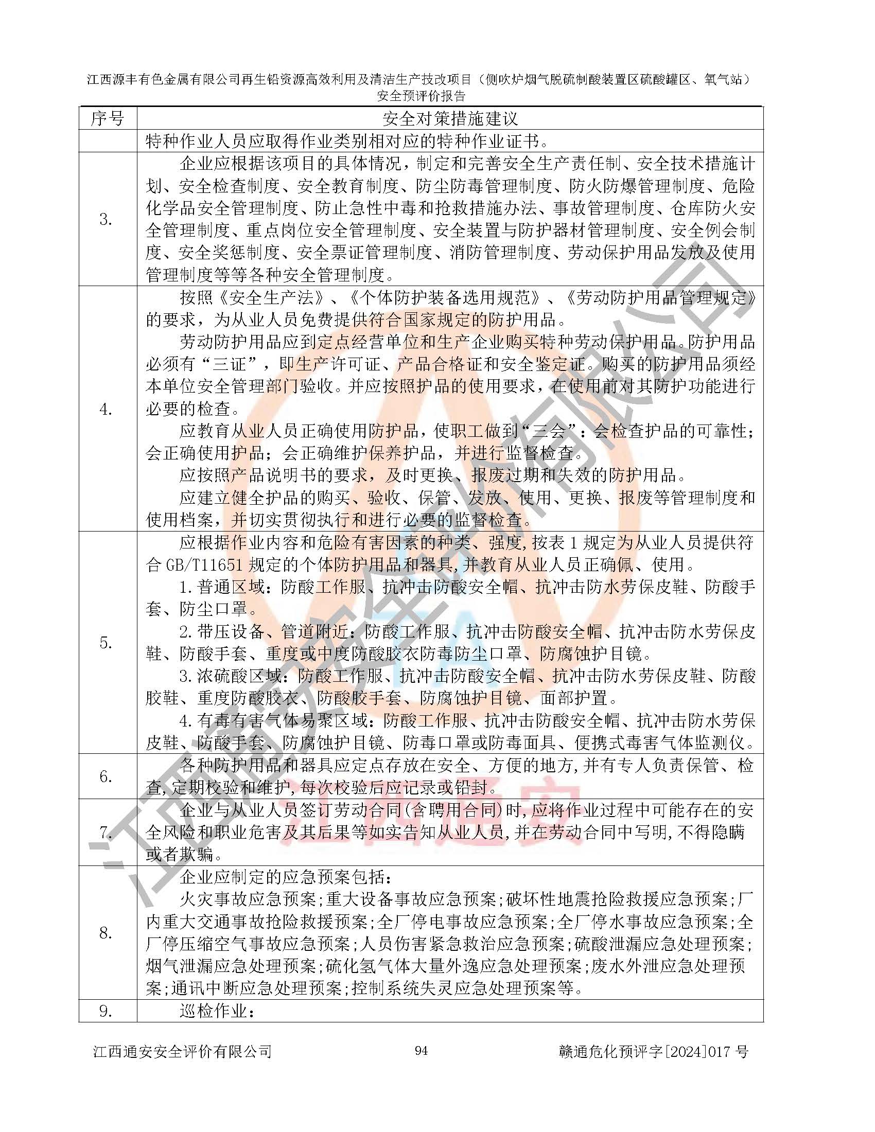 評(píng)價(jià)結(jié)論 | 評(píng)價(jià)結(jié)論:本評(píng)價(jià)認(rèn)為,江西源豐有色金屬有限公司再生鉛資源**利用及清潔生產(chǎn)技改項(xiàng)目(側(cè)吹爐煙氣脫硫制酸裝置區(qū)硫酸罐區(qū)、氧氣站)在以后的初步設(shè)計(jì)、施工圖設(shè)計(jì)和建設(shè)施工、安裝調(diào)試及生產(chǎn)運(yùn)行中,如能嚴(yán)格執(zhí)行**有關(guān)安全生產(chǎn)法律、法規(guī)和有關(guān)標(biāo)準(zhǔn)、規(guī)范,認(rèn)真采納本報(bào)告書第8章提出的安全對(duì)策措施及建議,真正做到安全設(shè)施與主體工程同時(shí)設(shè)計(jì)、同時(shí)施工、同時(shí)投入生產(chǎn)和使用的“三同時(shí)”工作,工程的危險(xiǎn)、有害因素可得到**控制,風(fēng)險(xiǎn)在可接受范圍內(nèi),具有**的本質(zhì)安全水平。該建設(shè)項(xiàng)目從安全方面分析可行。 | |||
