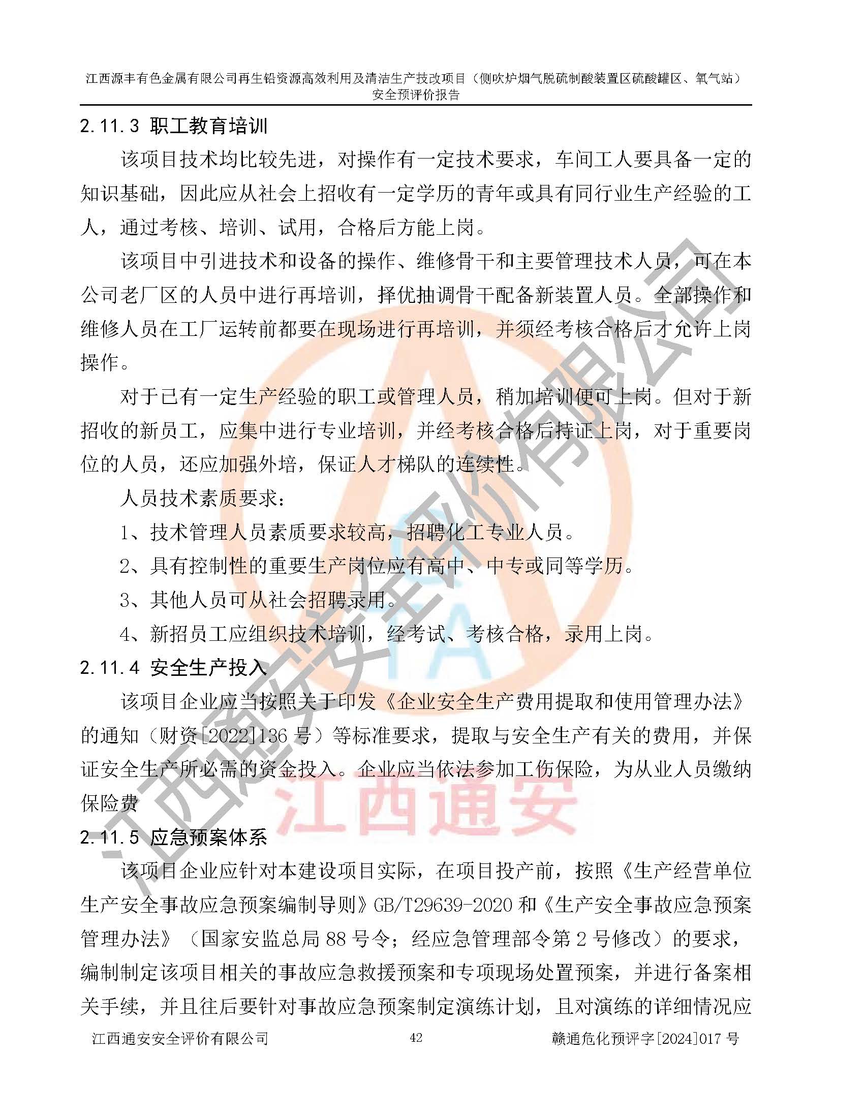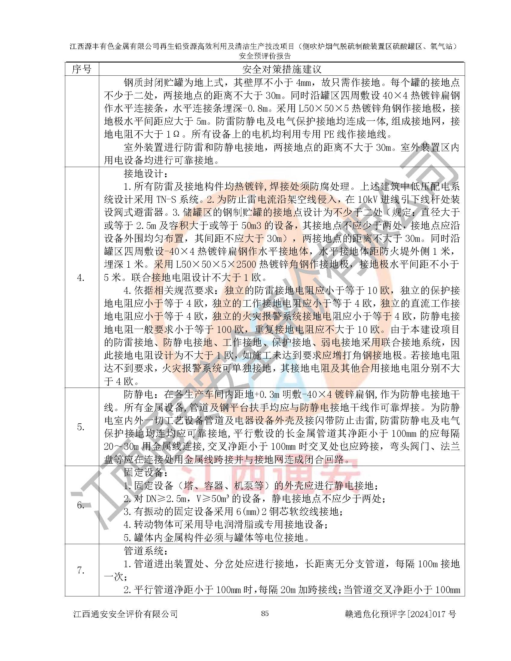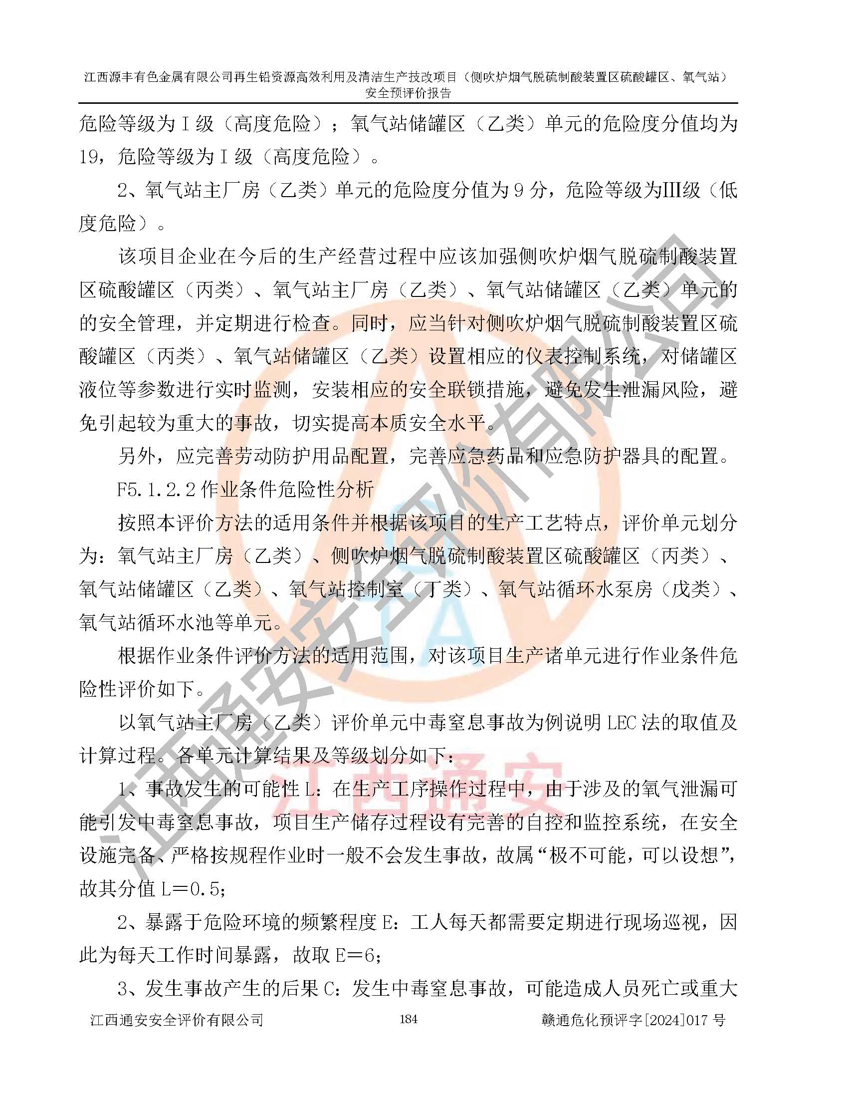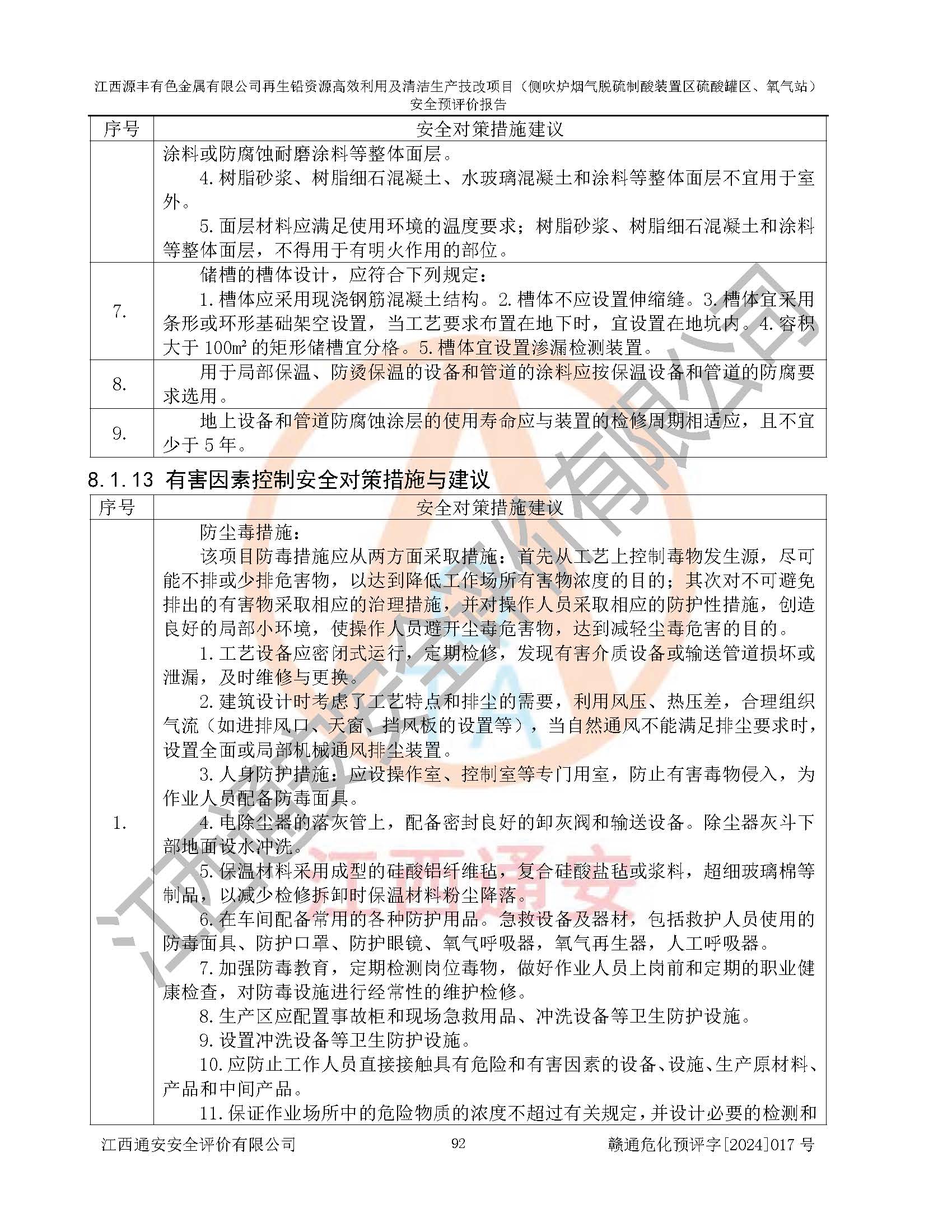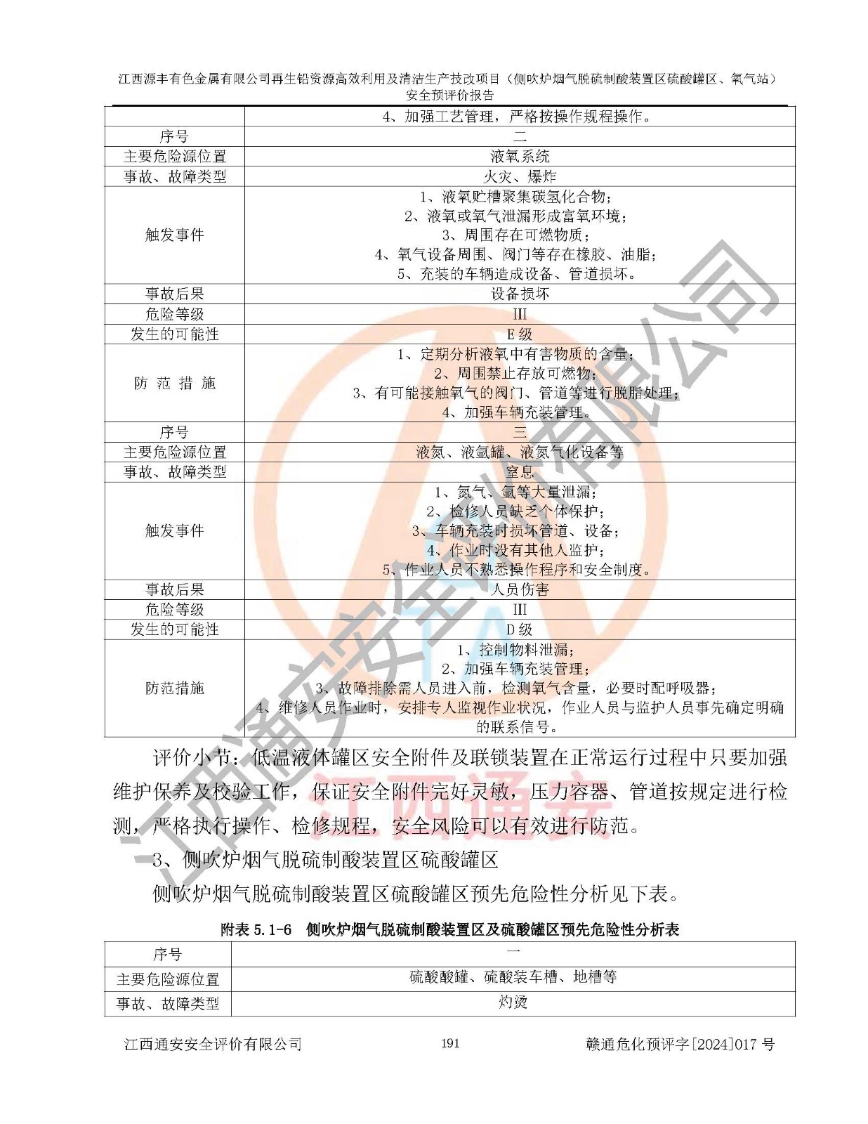 評(píng)價(jià)結(jié)論 | 評(píng)價(jià)結(jié)論:本評(píng)價(jià)認(rèn)為,江西源豐有色金屬有限公司再生鉛資源**利用及清潔生產(chǎn)技改項(xiàng)目(側(cè)吹爐煙氣脫硫制酸裝置區(qū)硫酸罐區(qū)、氧氣站)在以后的初步設(shè)計(jì)、施工圖設(shè)計(jì)和建設(shè)施工、安裝調(diào)試及生產(chǎn)運(yùn)行中,如能嚴(yán)格執(zhí)行**有關(guān)安全生產(chǎn)法律、法規(guī)和有關(guān)標(biāo)準(zhǔn)、規(guī)范,認(rèn)真采納本報(bào)告書第8章提出的安全對(duì)策措施及建議,真正做到安全設(shè)施與主體工程同時(shí)設(shè)計(jì)、同時(shí)施工、同時(shí)投入生產(chǎn)和使用的“三同時(shí)”工作,工程的危險(xiǎn)、有害因素可得到**控制,風(fēng)險(xiǎn)在可接受范圍內(nèi),具有**的本質(zhì)安全水平。該建設(shè)項(xiàng)目從安全方面分析可行。 | |||