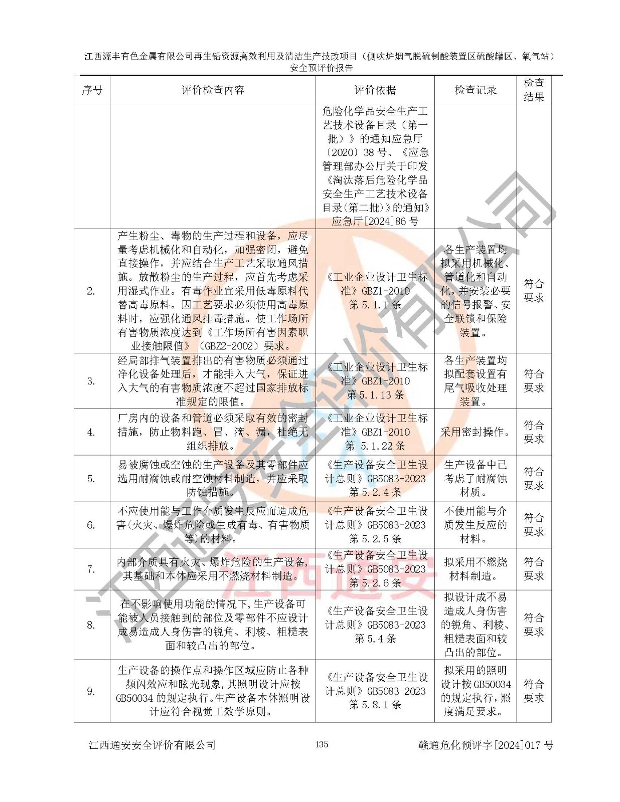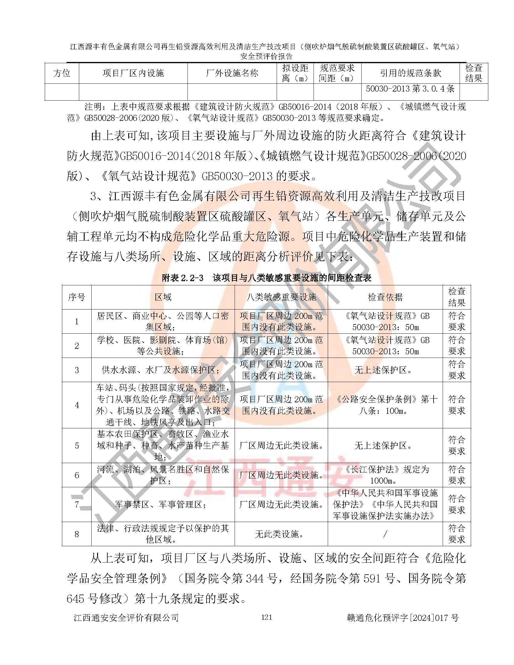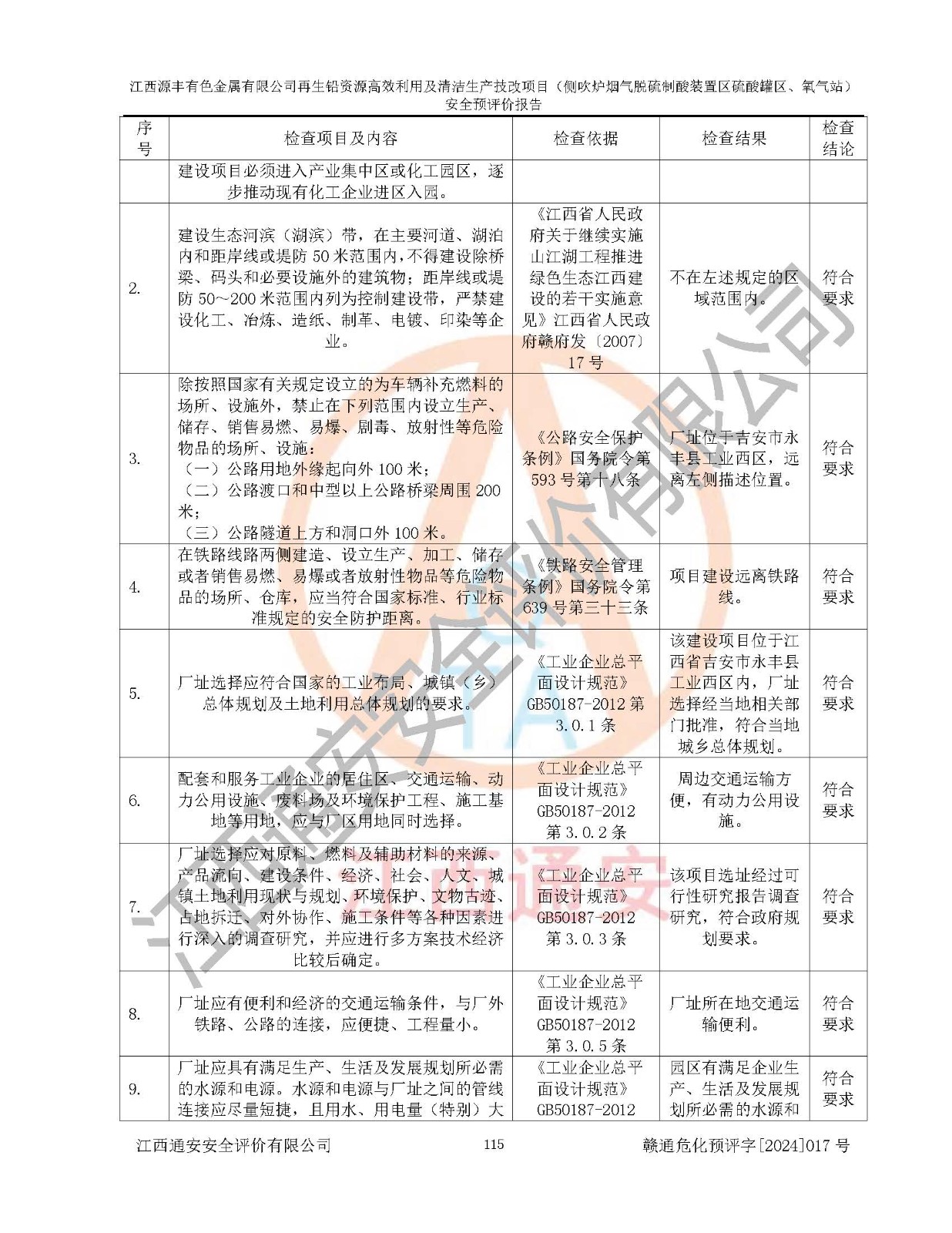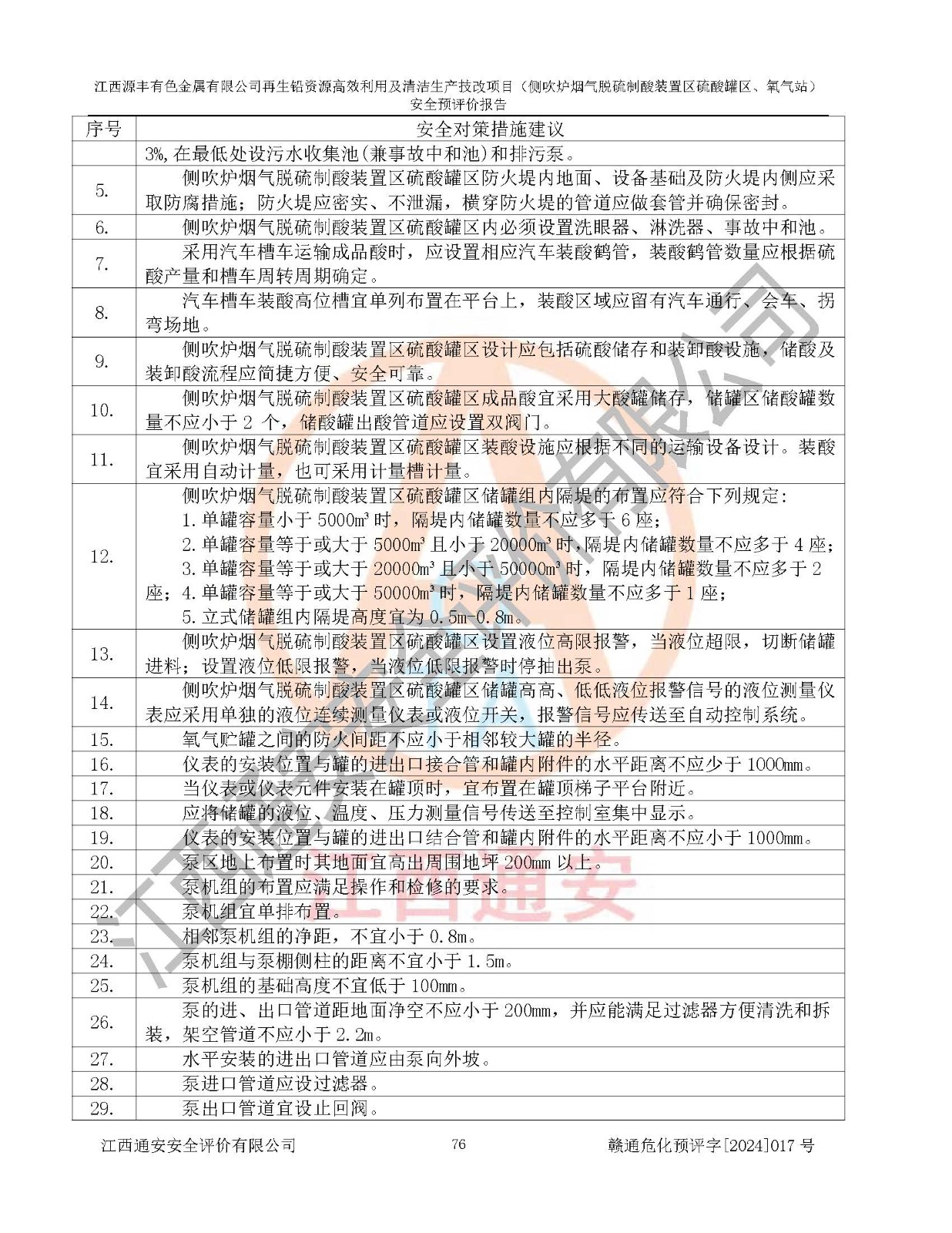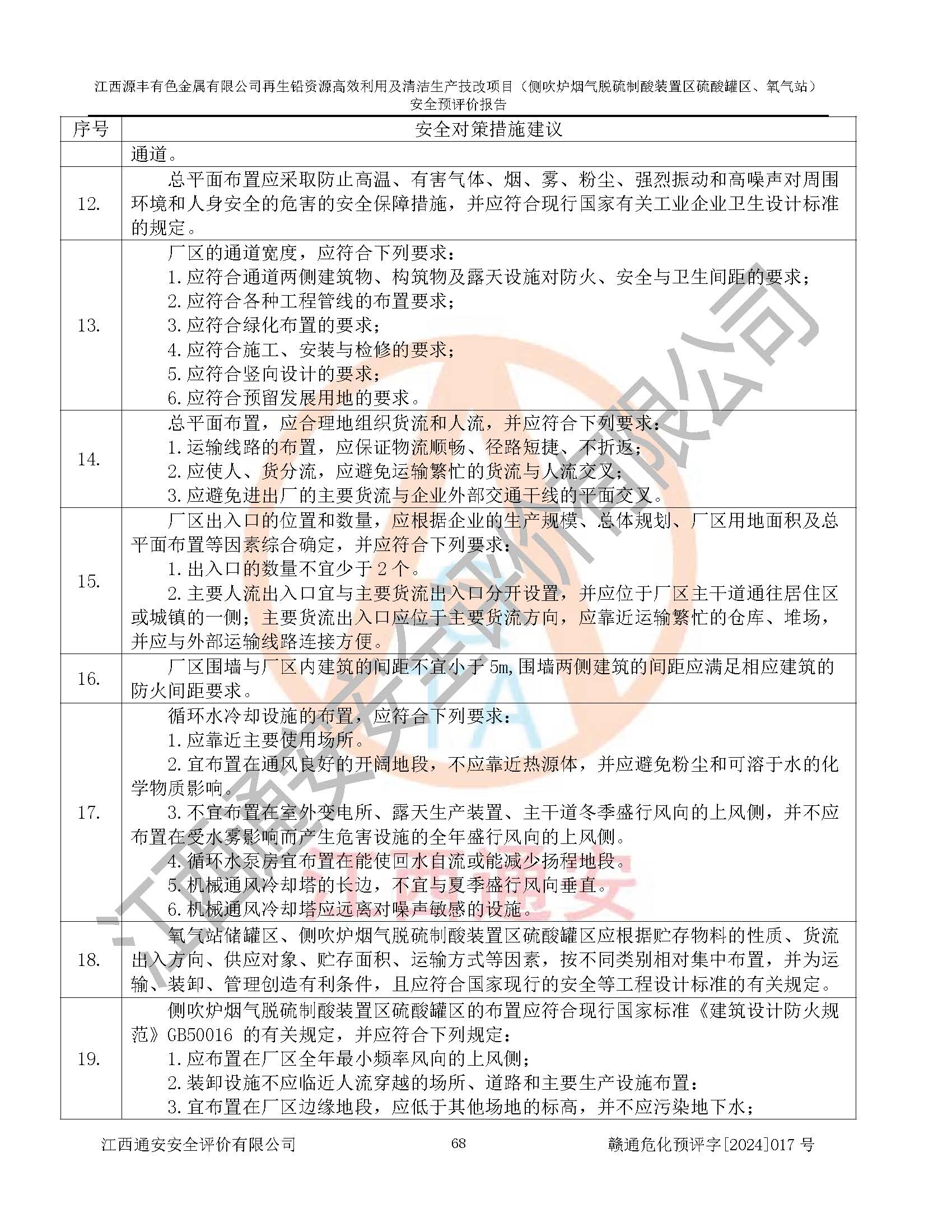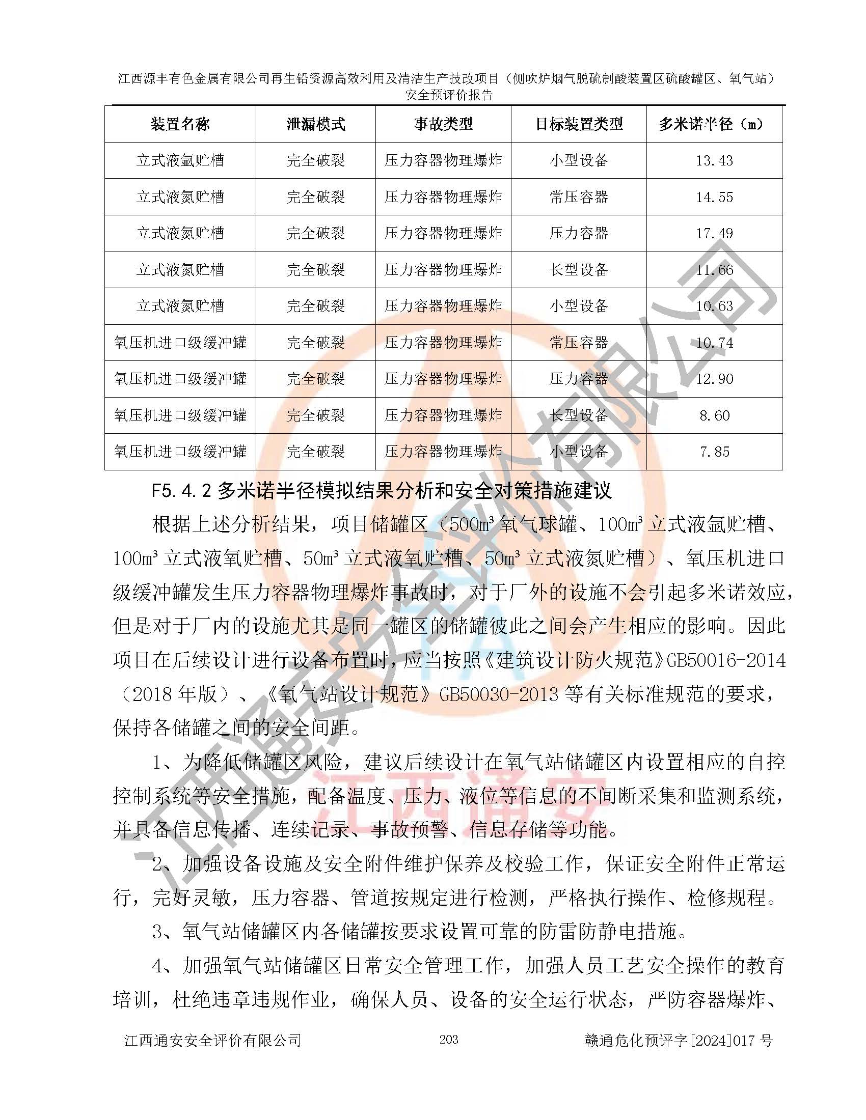 評(píng)價(jià)結(jié)論 | 評(píng)價(jià)結(jié)論:本評(píng)價(jià)認(rèn)為,江西源豐有色金屬有限公司再生鉛資源**利用及清潔生產(chǎn)技改項(xiàng)目(側(cè)吹爐煙氣脫硫制酸裝置區(qū)硫酸罐區(qū)、氧氣站)在以后的初步設(shè)計(jì)、施工圖設(shè)計(jì)和建設(shè)施工、安裝調(diào)試及生產(chǎn)運(yùn)行中,如能嚴(yán)格執(zhí)行**有關(guān)安全生產(chǎn)法律、法規(guī)和有關(guān)標(biāo)準(zhǔn)、規(guī)范,認(rèn)真采納本報(bào)告書第8章提出的安全對(duì)策措施及建議,真正做到安全設(shè)施與主體工程同時(shí)設(shè)計(jì)、同時(shí)施工、同時(shí)投入生產(chǎn)和使用的“三同時(shí)”工作,工程的危險(xiǎn)、有害因素可得到**控制,風(fēng)險(xiǎn)在可接受范圍內(nèi),具有**的本質(zhì)安全水平。該建設(shè)項(xiàng)目從安全方面分析可行。 | |||