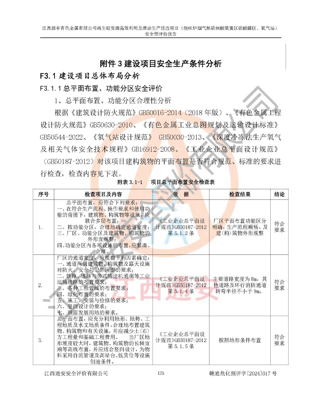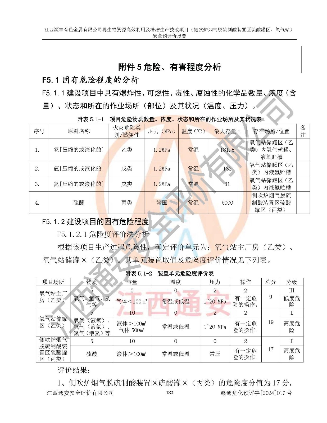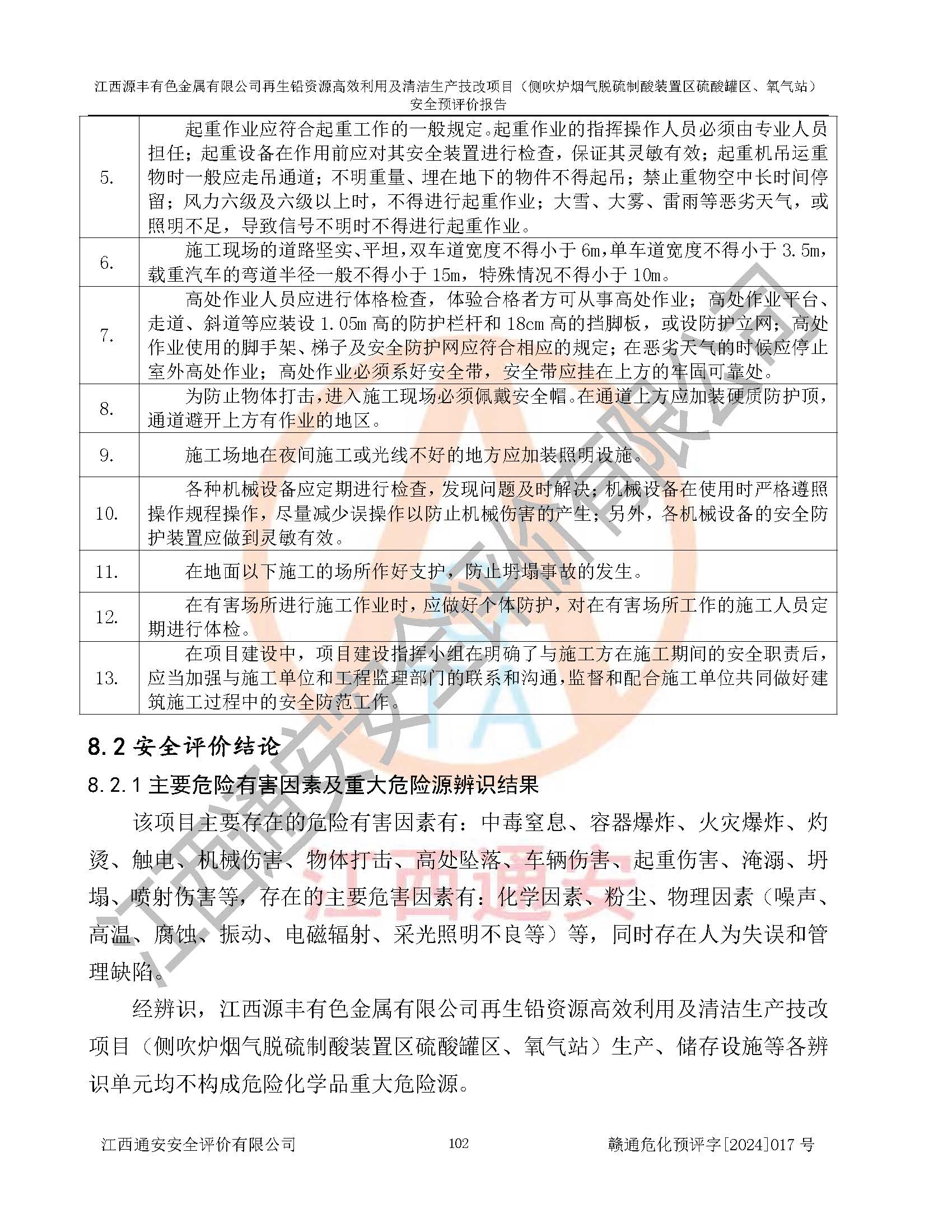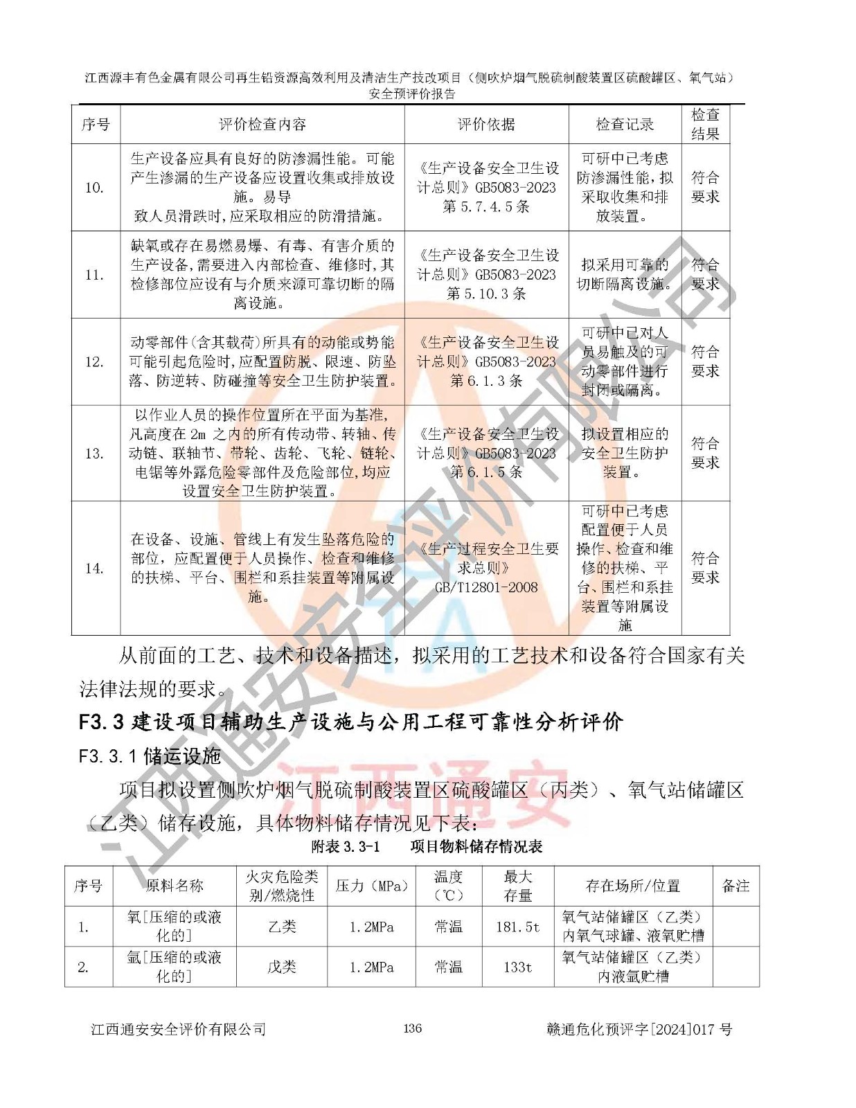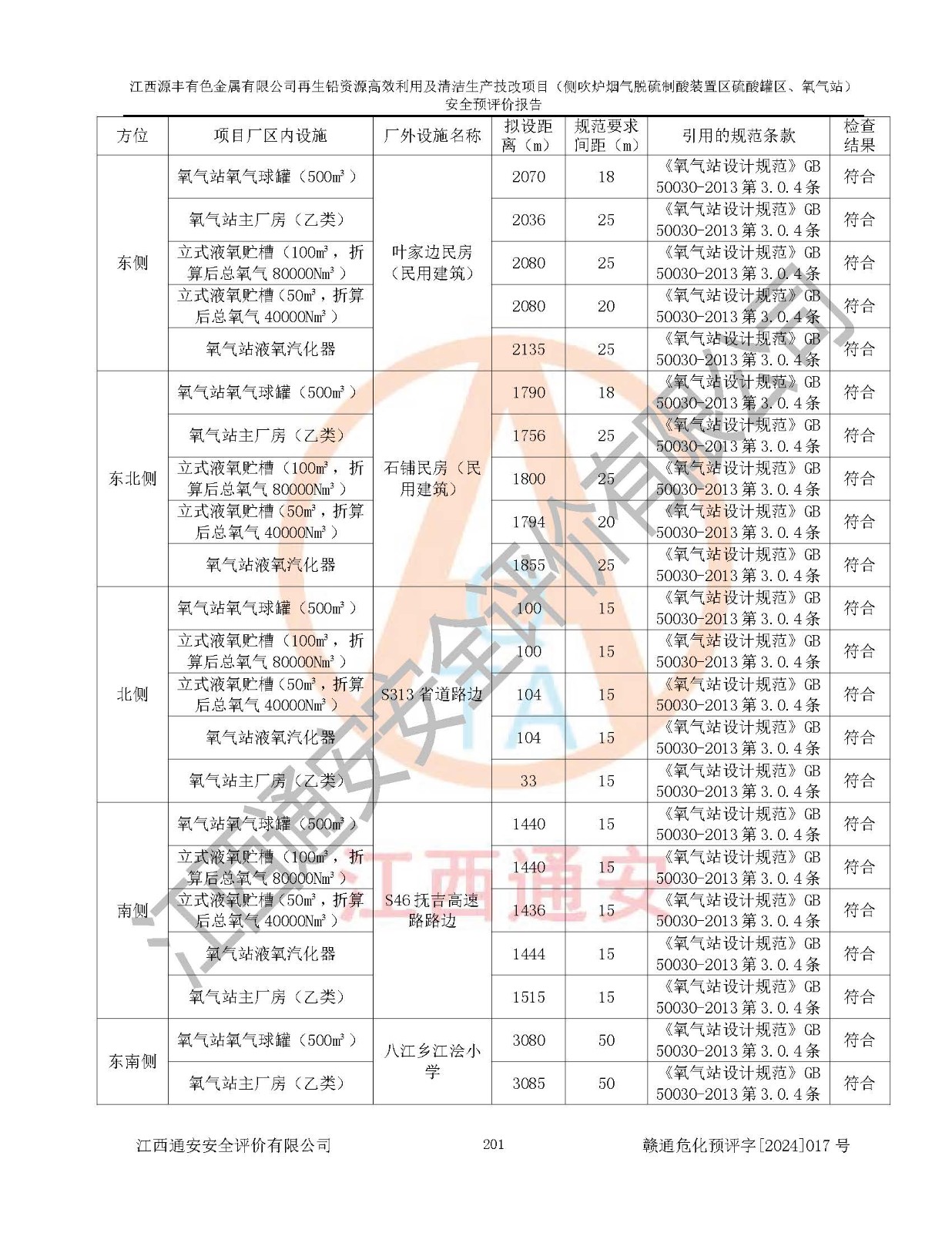 評(píng)價(jià)結(jié)論 | 評(píng)價(jià)結(jié)論:本評(píng)價(jià)認(rèn)為,江西源豐有色金屬有限公司再生鉛資源**利用及清潔生產(chǎn)技改項(xiàng)目(側(cè)吹爐煙氣脫硫制酸裝置區(qū)硫酸罐區(qū)、氧氣站)在以后的初步設(shè)計(jì)、施工圖設(shè)計(jì)和建設(shè)施工、安裝調(diào)試及生產(chǎn)運(yùn)行中,如能嚴(yán)格執(zhí)行**有關(guān)安全生產(chǎn)法律、法規(guī)和有關(guān)標(biāo)準(zhǔn)、規(guī)范,認(rèn)真采納本報(bào)告書第8章提出的安全對(duì)策措施及建議,真正做到安全設(shè)施與主體工程同時(shí)設(shè)計(jì)、同時(shí)施工、同時(shí)投入生產(chǎn)和使用的“三同時(shí)”工作,工程的危險(xiǎn)、有害因素可得到**控制,風(fēng)險(xiǎn)在可接受范圍內(nèi),具有**的本質(zhì)安全水平。該建設(shè)項(xiàng)目從安全方面分析可行。 | |||
