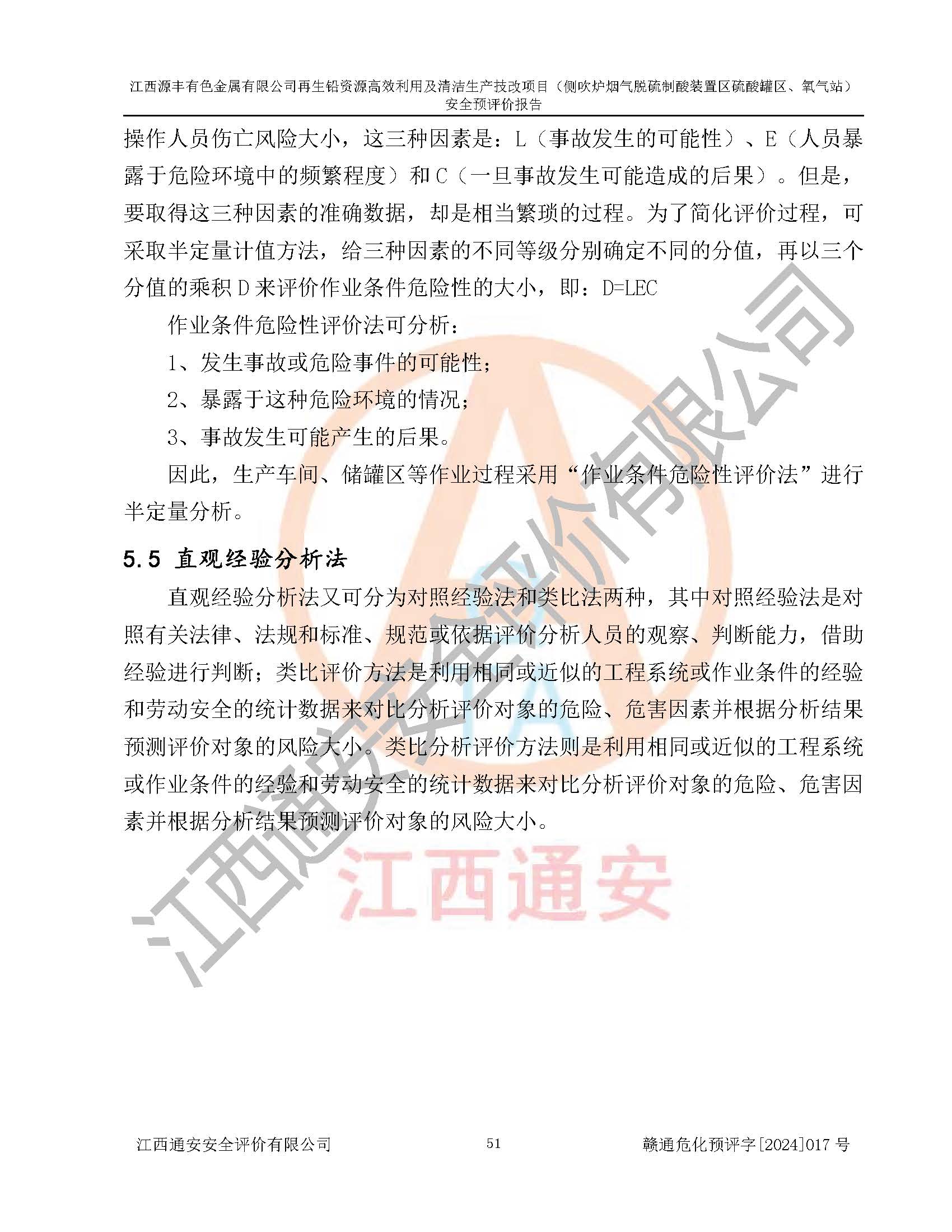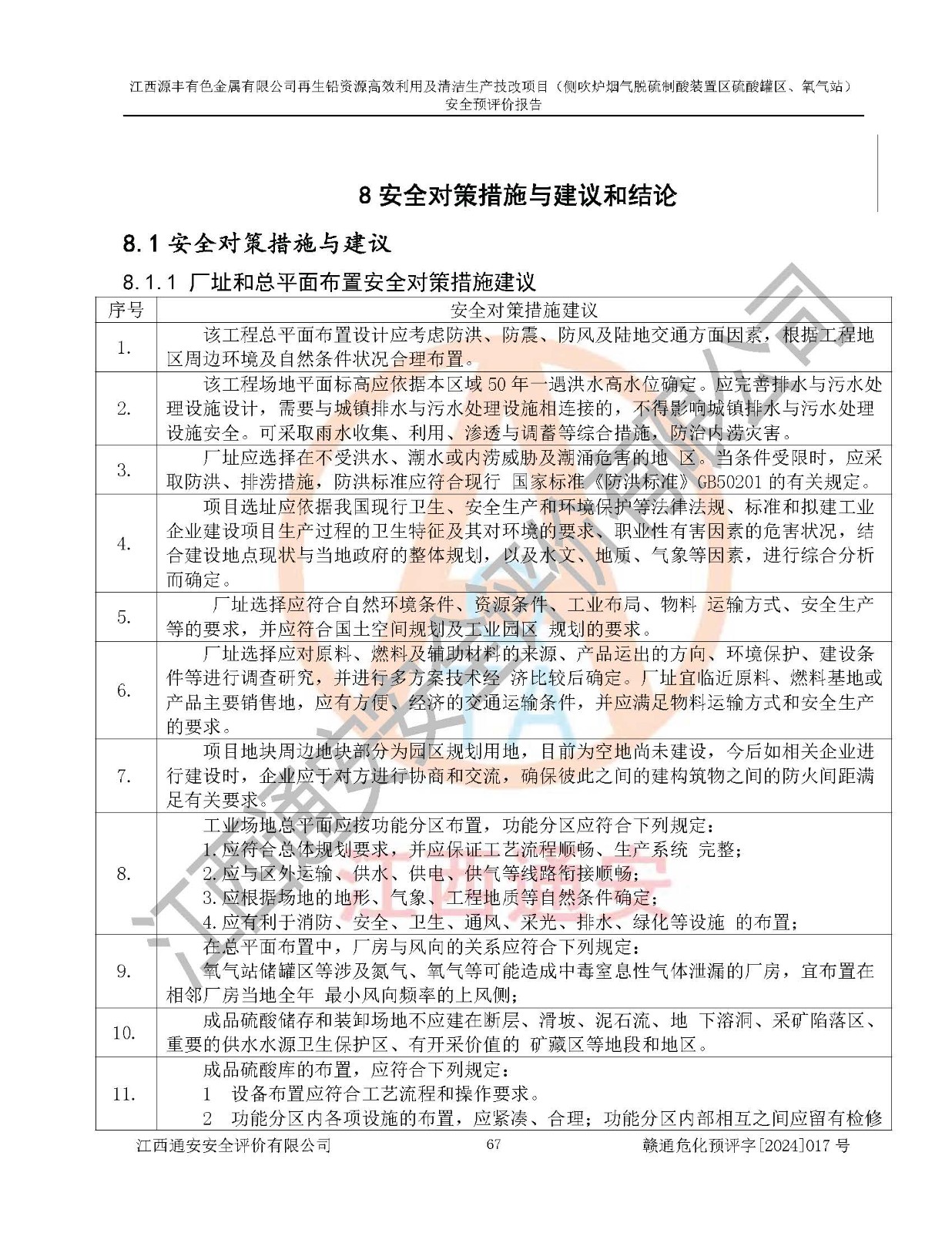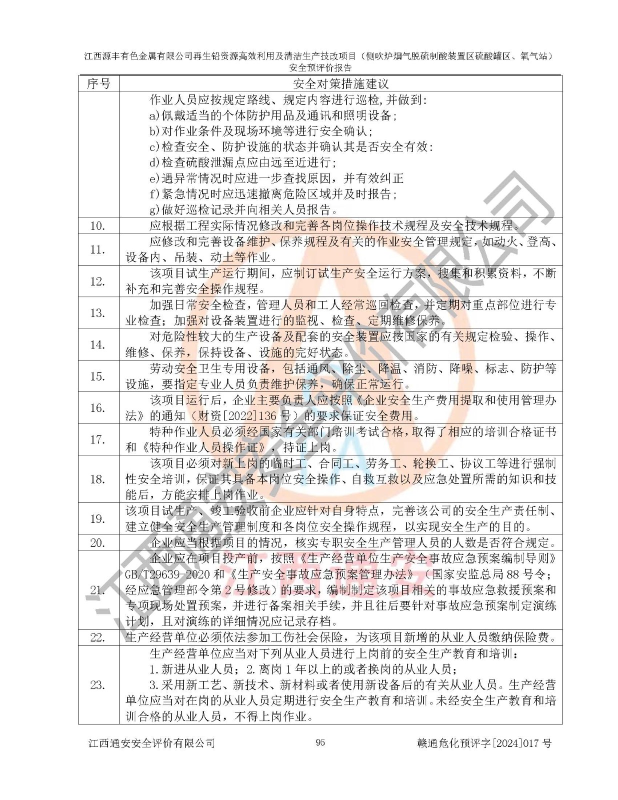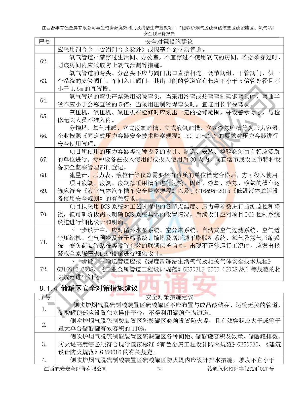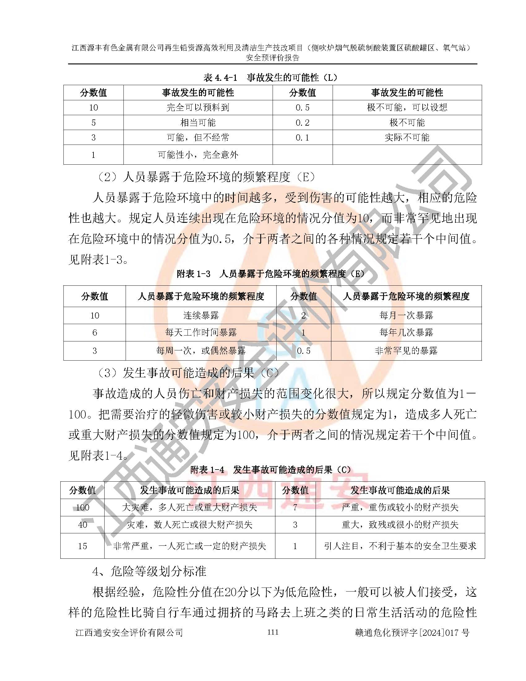 評(píng)價(jià)結(jié)論 | 評(píng)價(jià)結(jié)論:本評(píng)價(jià)認(rèn)為,江西源豐有色金屬有限公司再生鉛資源**利用及清潔生產(chǎn)技改項(xiàng)目(側(cè)吹爐煙氣脫硫制酸裝置區(qū)硫酸罐區(qū)、氧氣站)在以后的初步設(shè)計(jì)、施工圖設(shè)計(jì)和建設(shè)施工、安裝調(diào)試及生產(chǎn)運(yùn)行中,如能嚴(yán)格執(zhí)行**有關(guān)安全生產(chǎn)法律、法規(guī)和有關(guān)標(biāo)準(zhǔn)、規(guī)范,認(rèn)真采納本報(bào)告書第8章提出的安全對(duì)策措施及建議,真正做到安全設(shè)施與主體工程同時(shí)設(shè)計(jì)、同時(shí)施工、同時(shí)投入生產(chǎn)和使用的“三同時(shí)”工作,工程的危險(xiǎn)、有害因素可得到**控制,風(fēng)險(xiǎn)在可接受范圍內(nèi),具有**的本質(zhì)安全水平。該建設(shè)項(xiàng)目從安全方面分析可行。 | |||