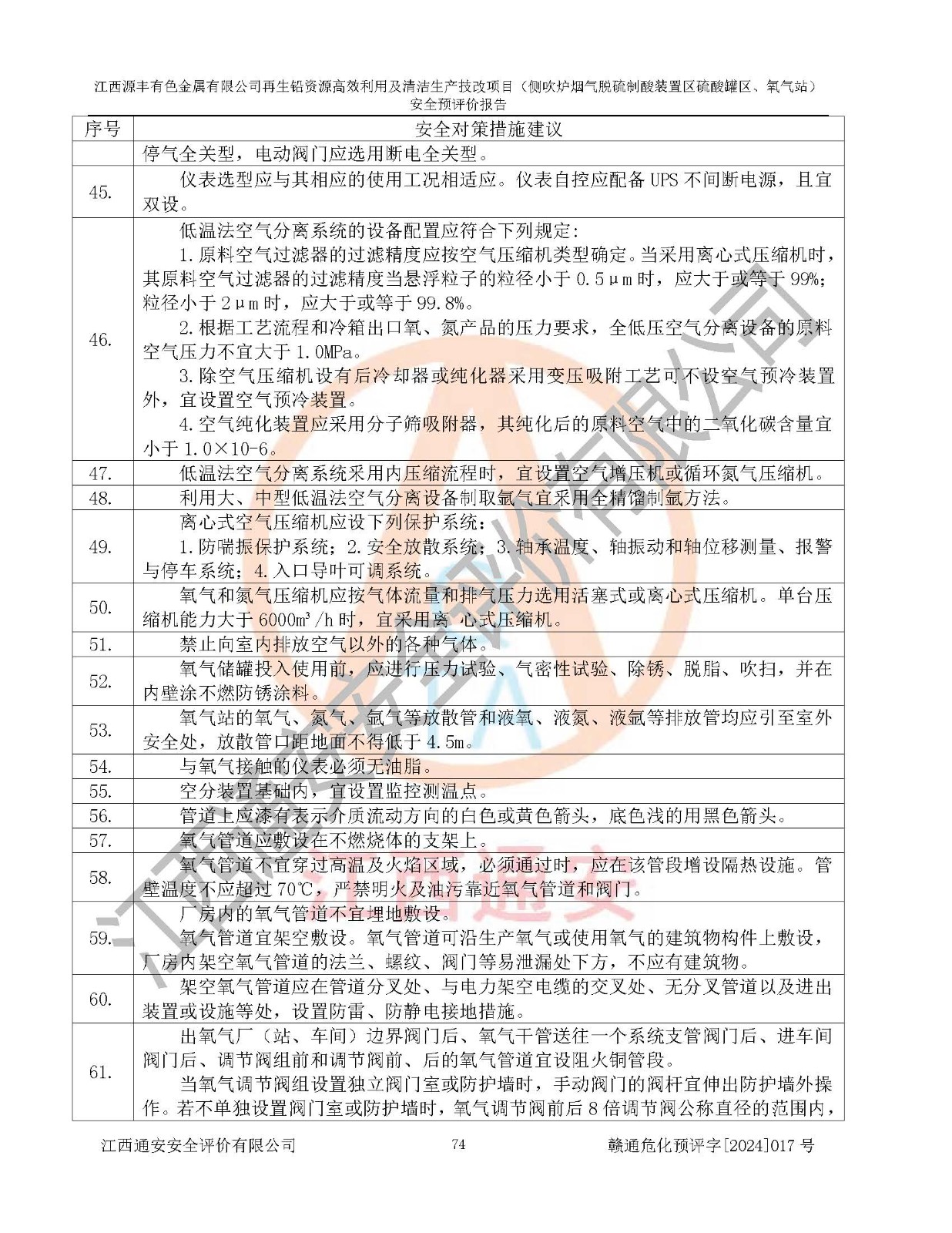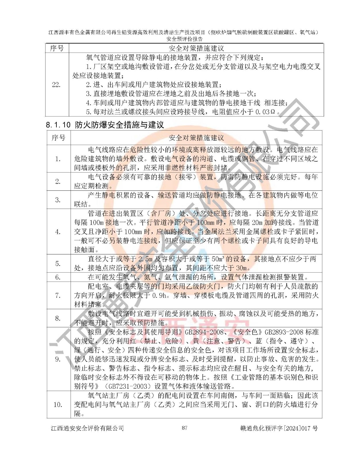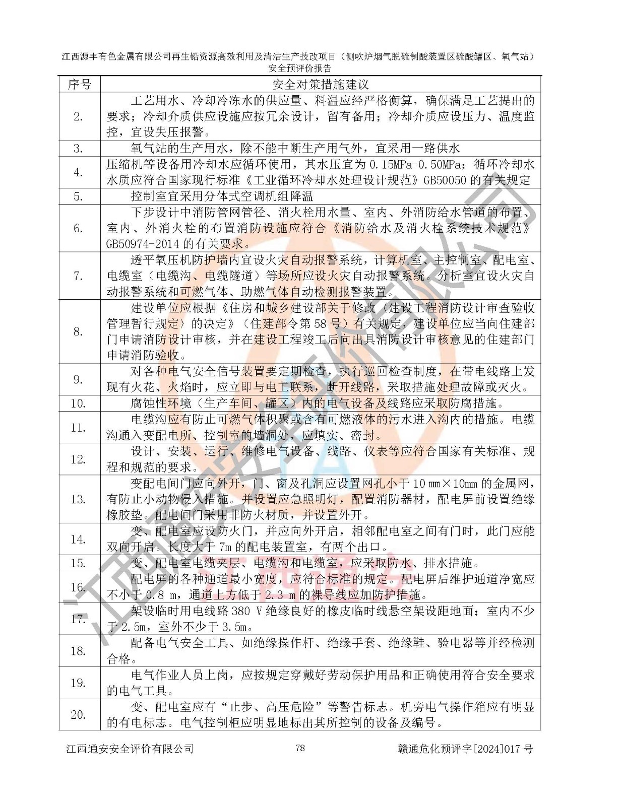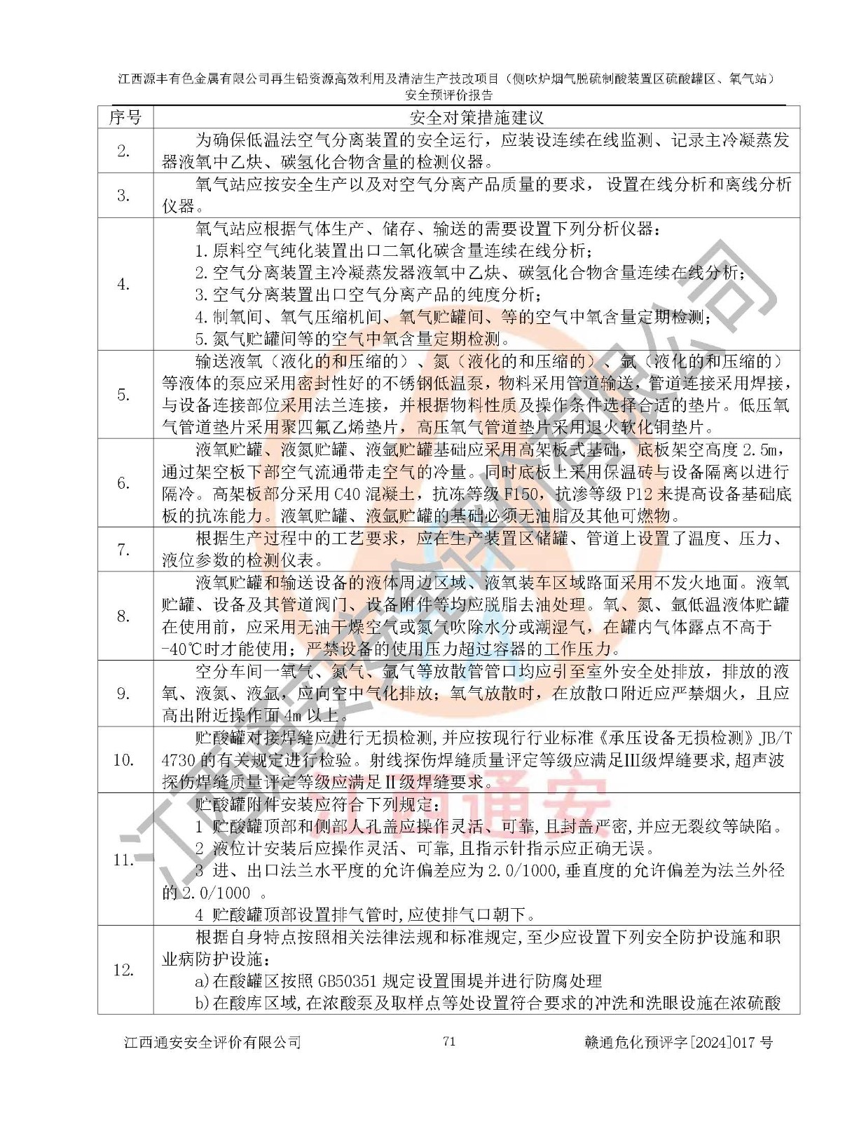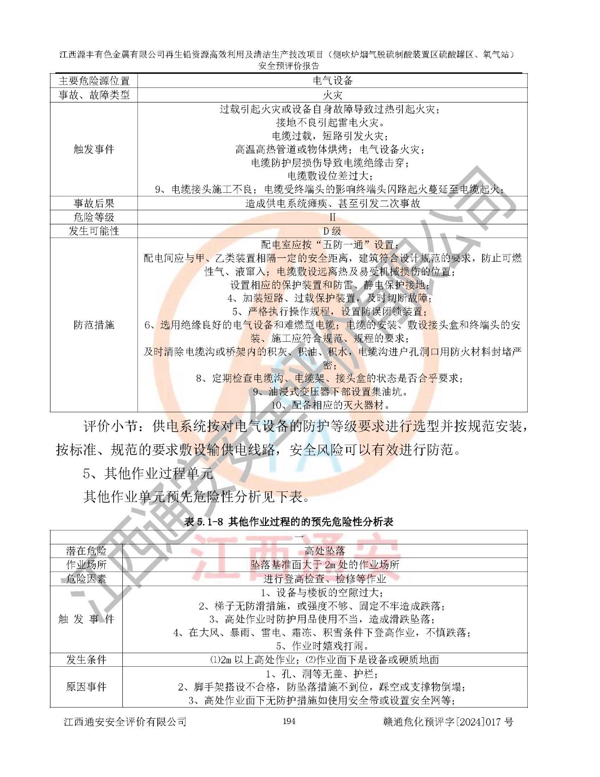評(píng)價(jià)結(jié)論 | 評(píng)價(jià)結(jié)論:本評(píng)價(jià)認(rèn)為,江西源豐有色金屬有限公司再生鉛資源**利用及清潔生產(chǎn)技改項(xiàng)目(側(cè)吹爐煙氣脫硫制酸裝置區(qū)硫酸罐區(qū)、氧氣站)在以后的初步設(shè)計(jì)、施工圖設(shè)計(jì)和建設(shè)施工、安裝調(diào)試及生產(chǎn)運(yùn)行中,如能嚴(yán)格執(zhí)行**有關(guān)安全生產(chǎn)法律、法規(guī)和有關(guān)標(biāo)準(zhǔn)、規(guī)范,認(rèn)真采納本報(bào)告書第8章提出的安全對(duì)策措施及建議,真正做到安全設(shè)施與主體工程同時(shí)設(shè)計(jì)、同時(shí)施工、同時(shí)投入生產(chǎn)和使用的“三同時(shí)”工作,工程的危險(xiǎn)、有害因素可得到**控制,風(fēng)險(xiǎn)在可接受范圍內(nèi),具有**的本質(zhì)安全水平。該建設(shè)項(xiàng)目從安全方面分析可行。 | |||