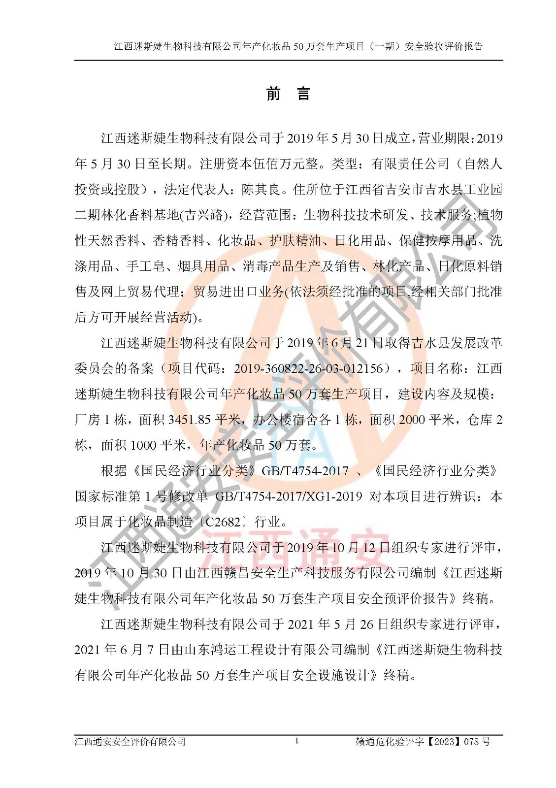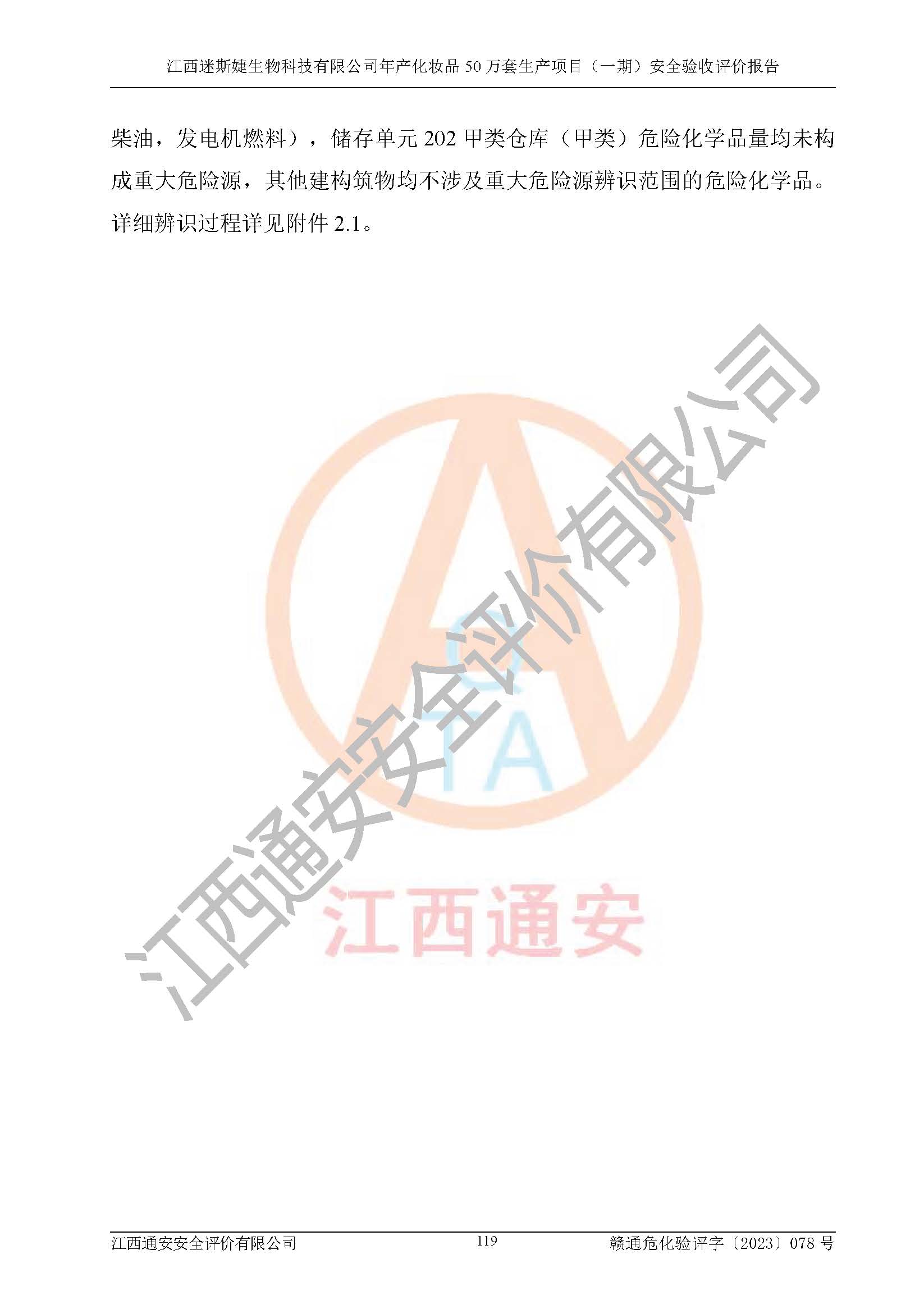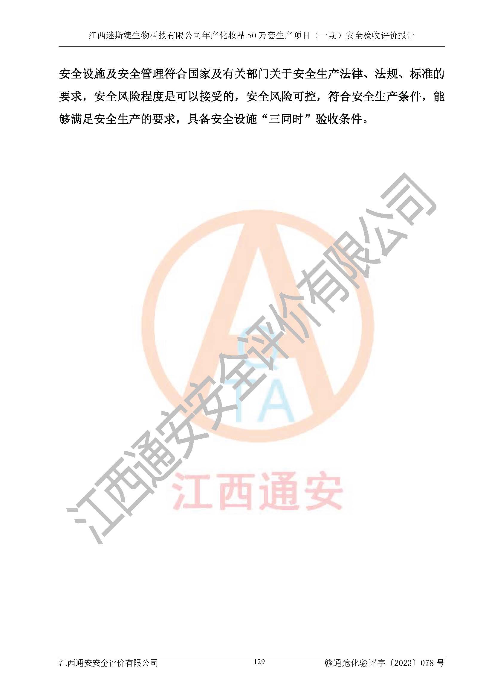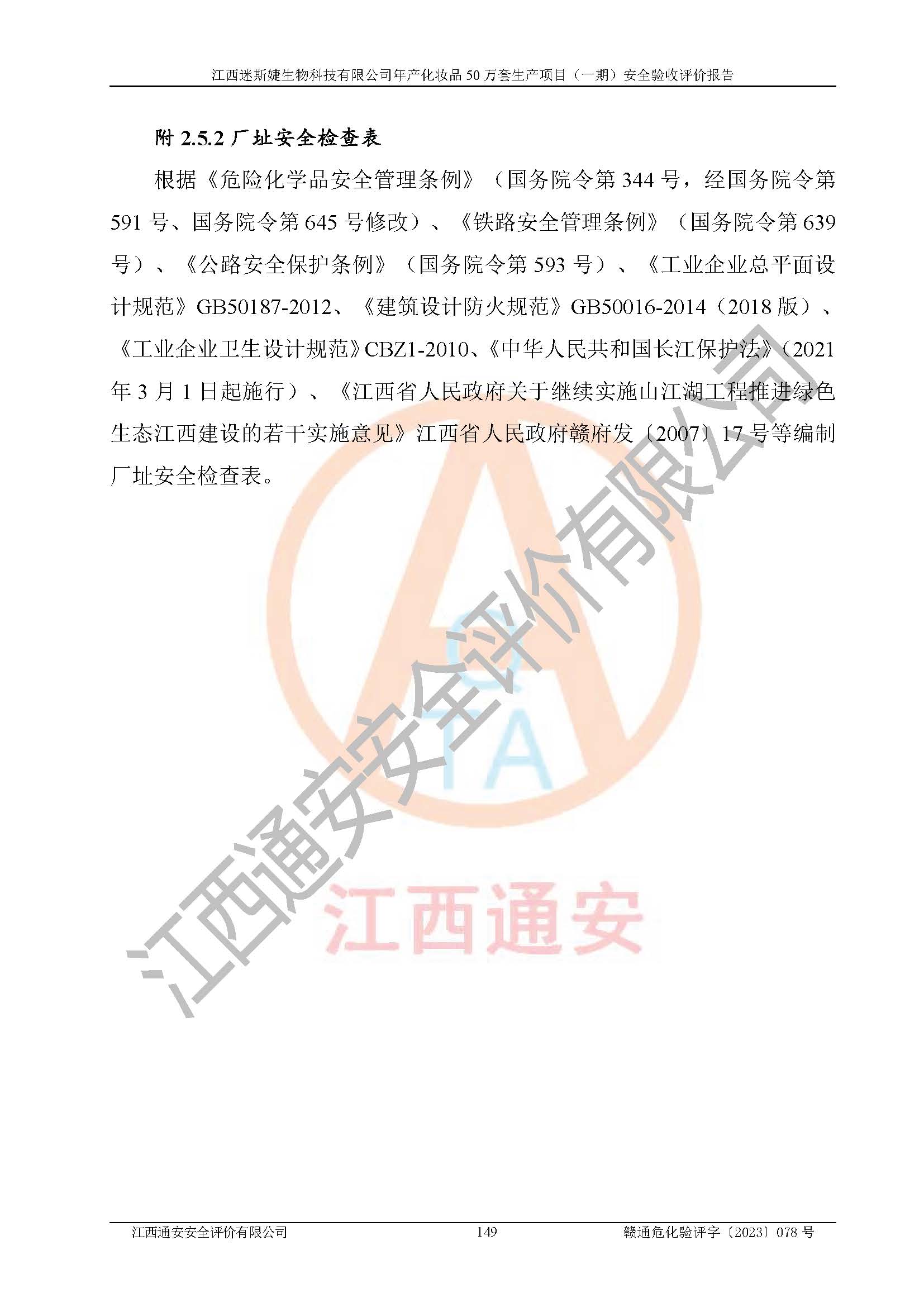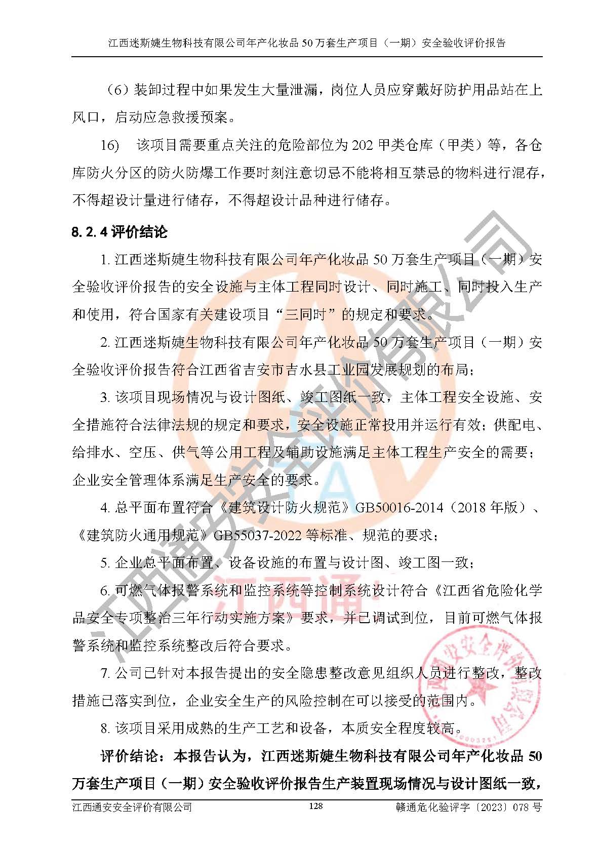 項(xiàng)目名稱 | 江西迷斯婕生物科技有限公司年產(chǎn)化妝品50萬(wàn)套生產(chǎn)項(xiàng)目 (一期)安全驗(yàn)收評(píng)價(jià)報(bào)告 | ||||