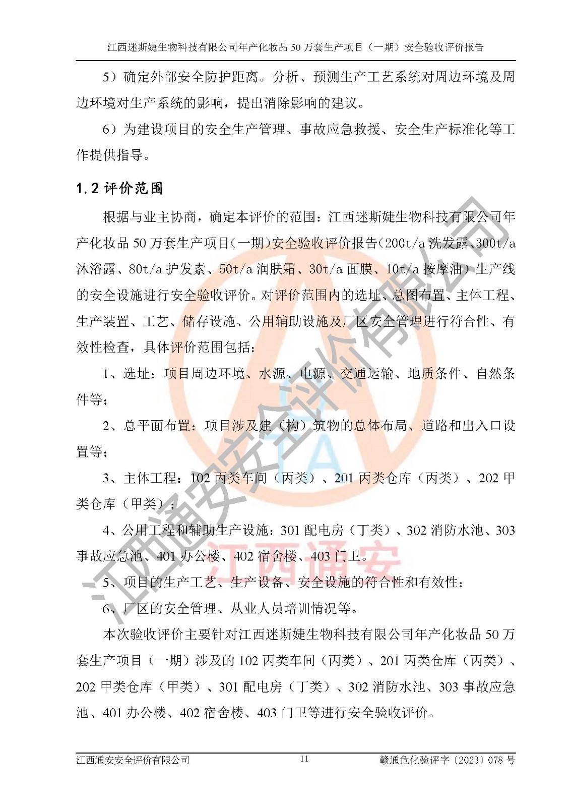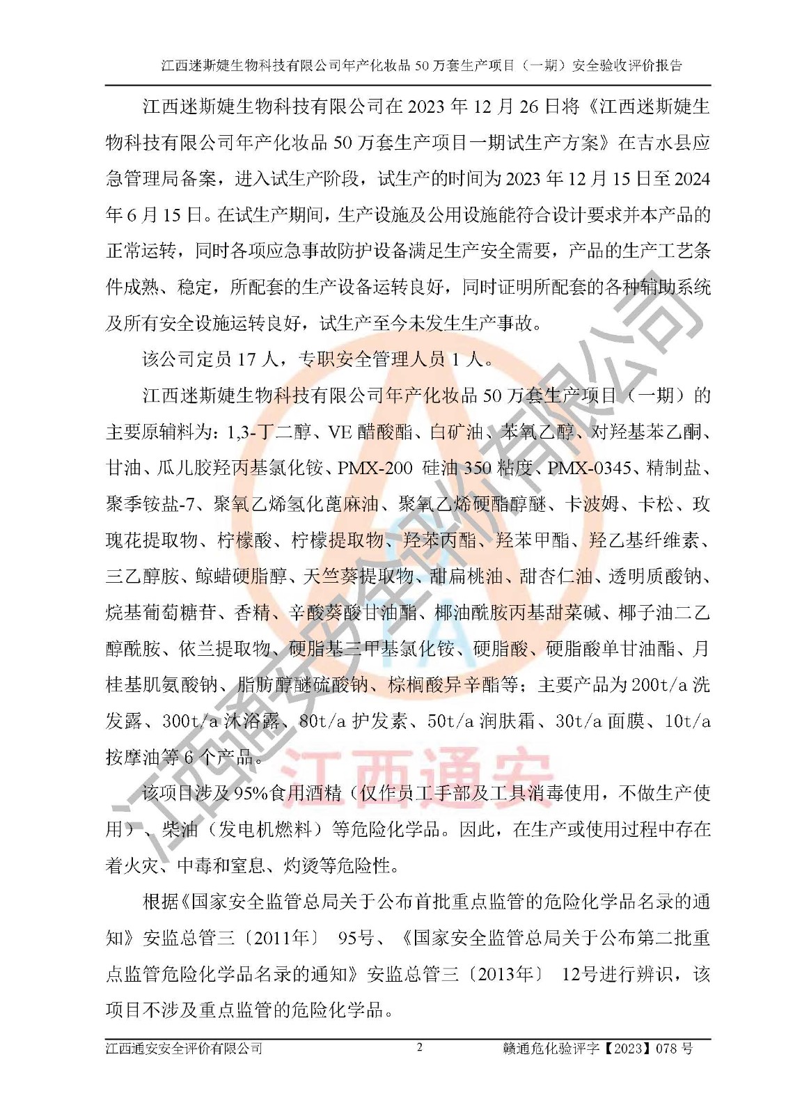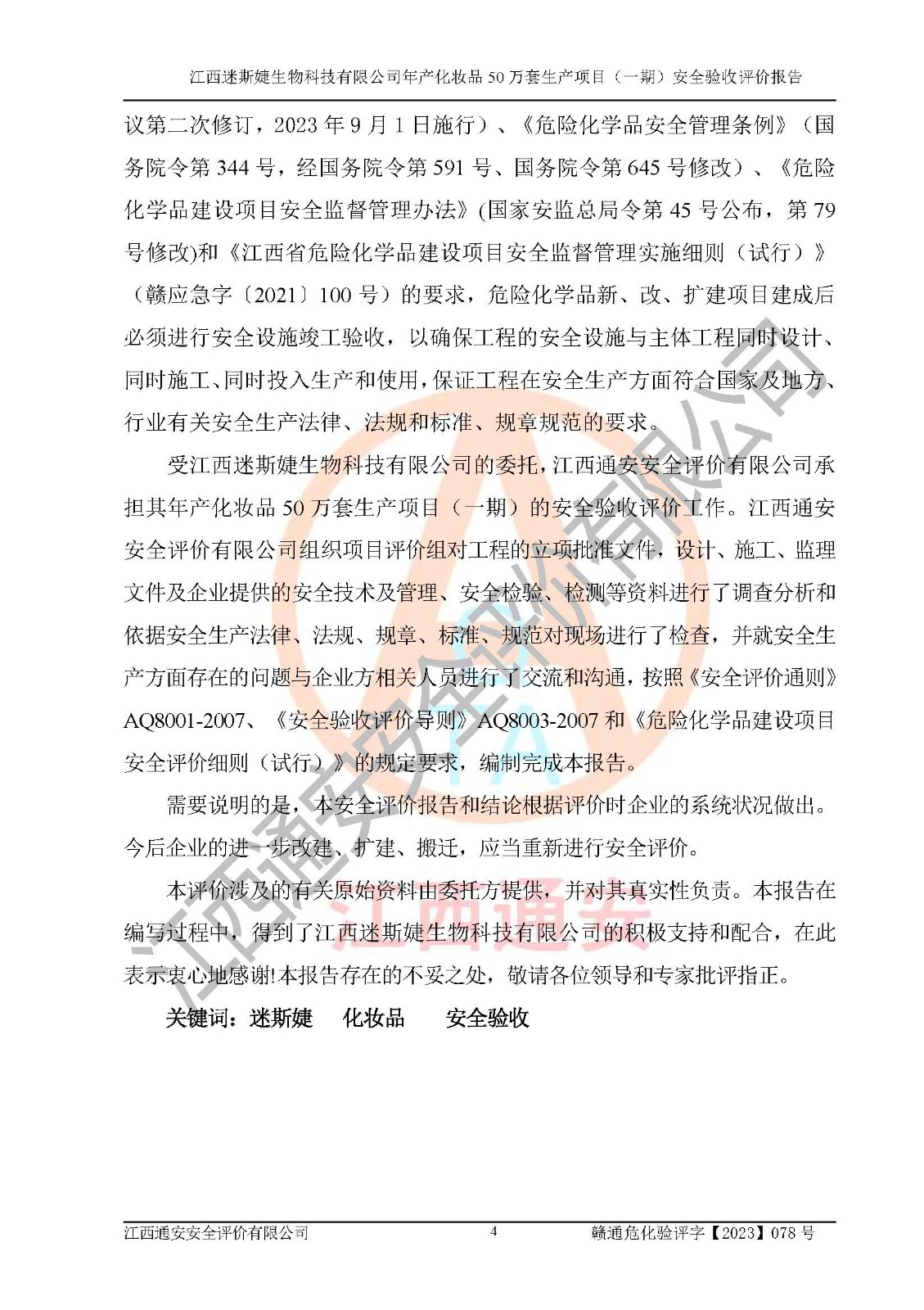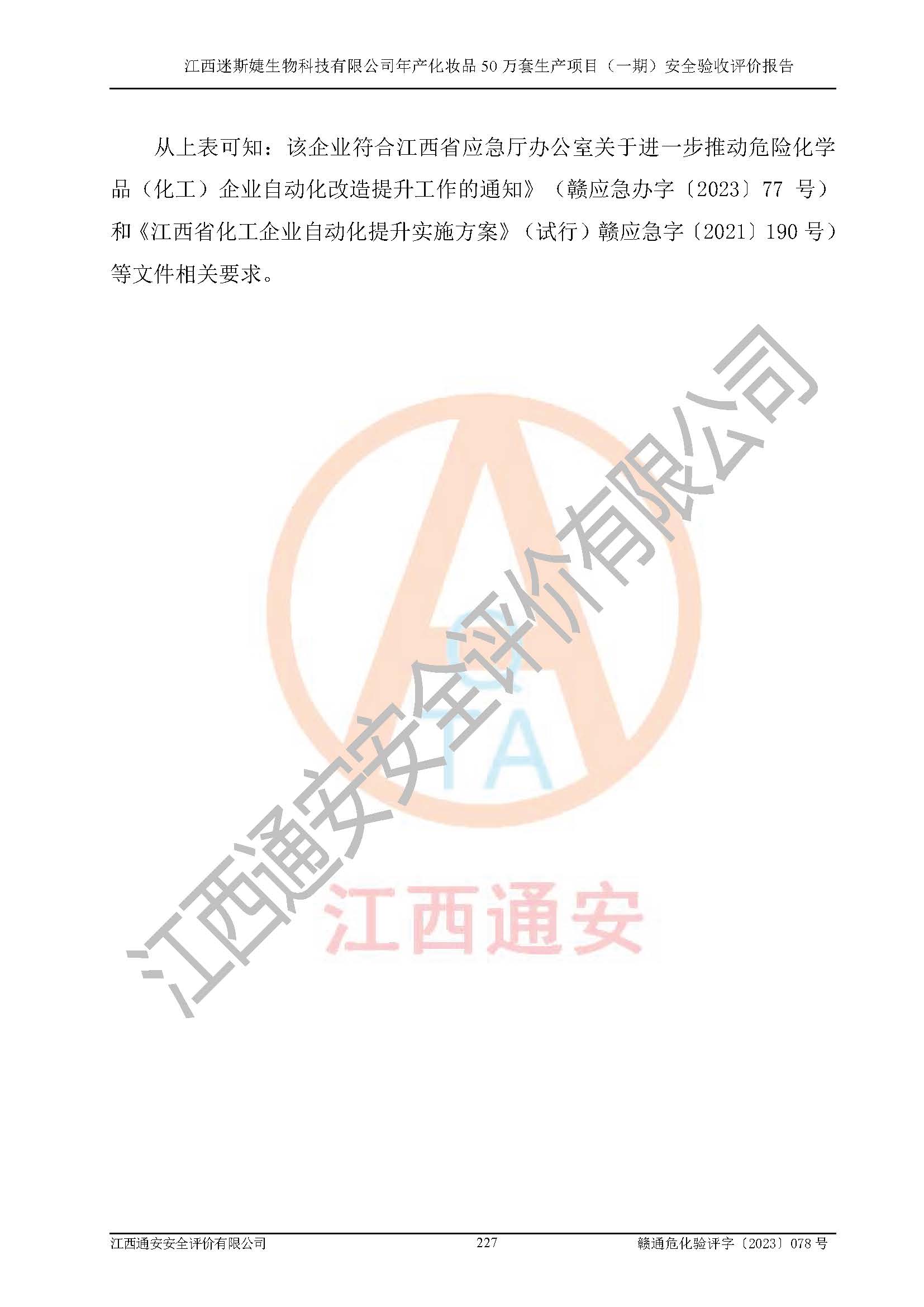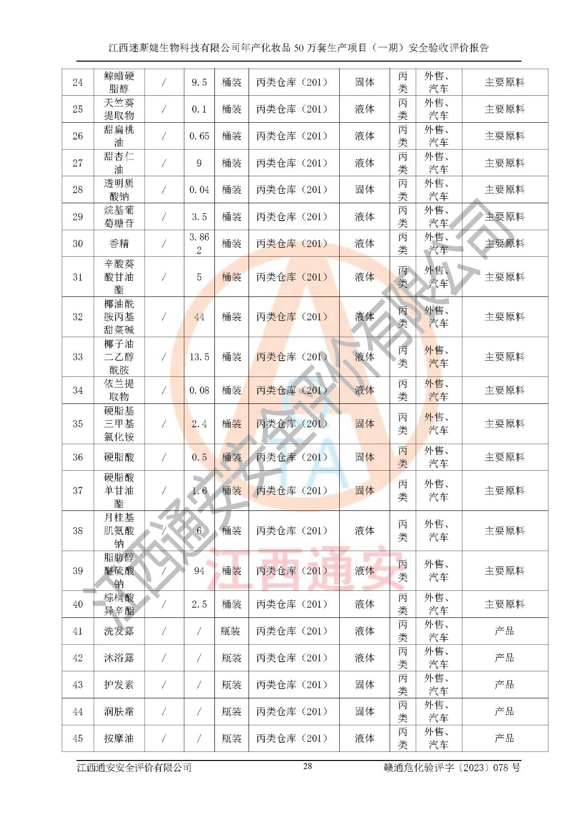 項(xiàng)目名稱 | 江西迷斯婕生物科技有限公司年產(chǎn)化妝品50萬(wàn)套生產(chǎn)項(xiàng)目 (一期)安全驗(yàn)收評(píng)價(jià)報(bào)告 | ||||