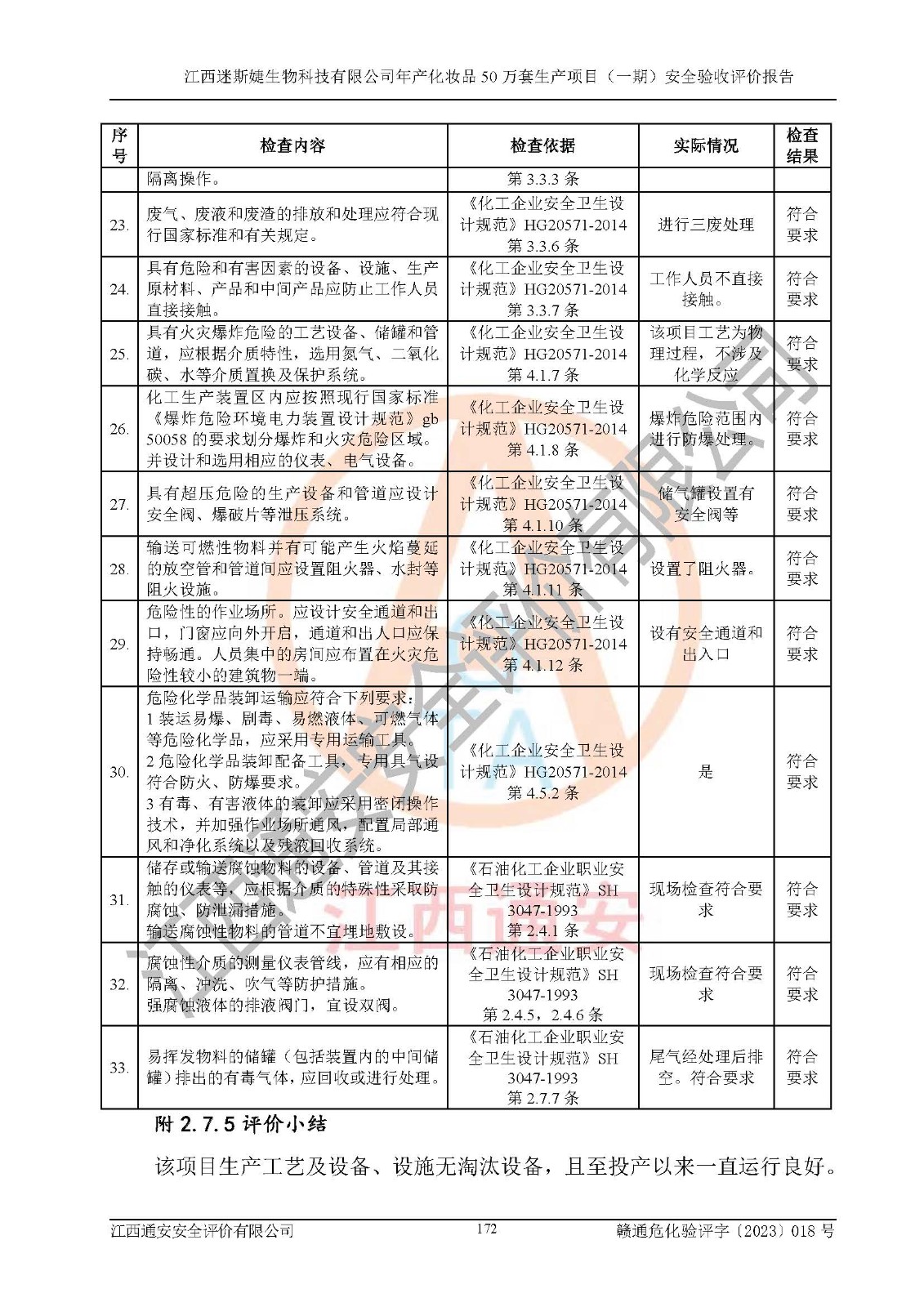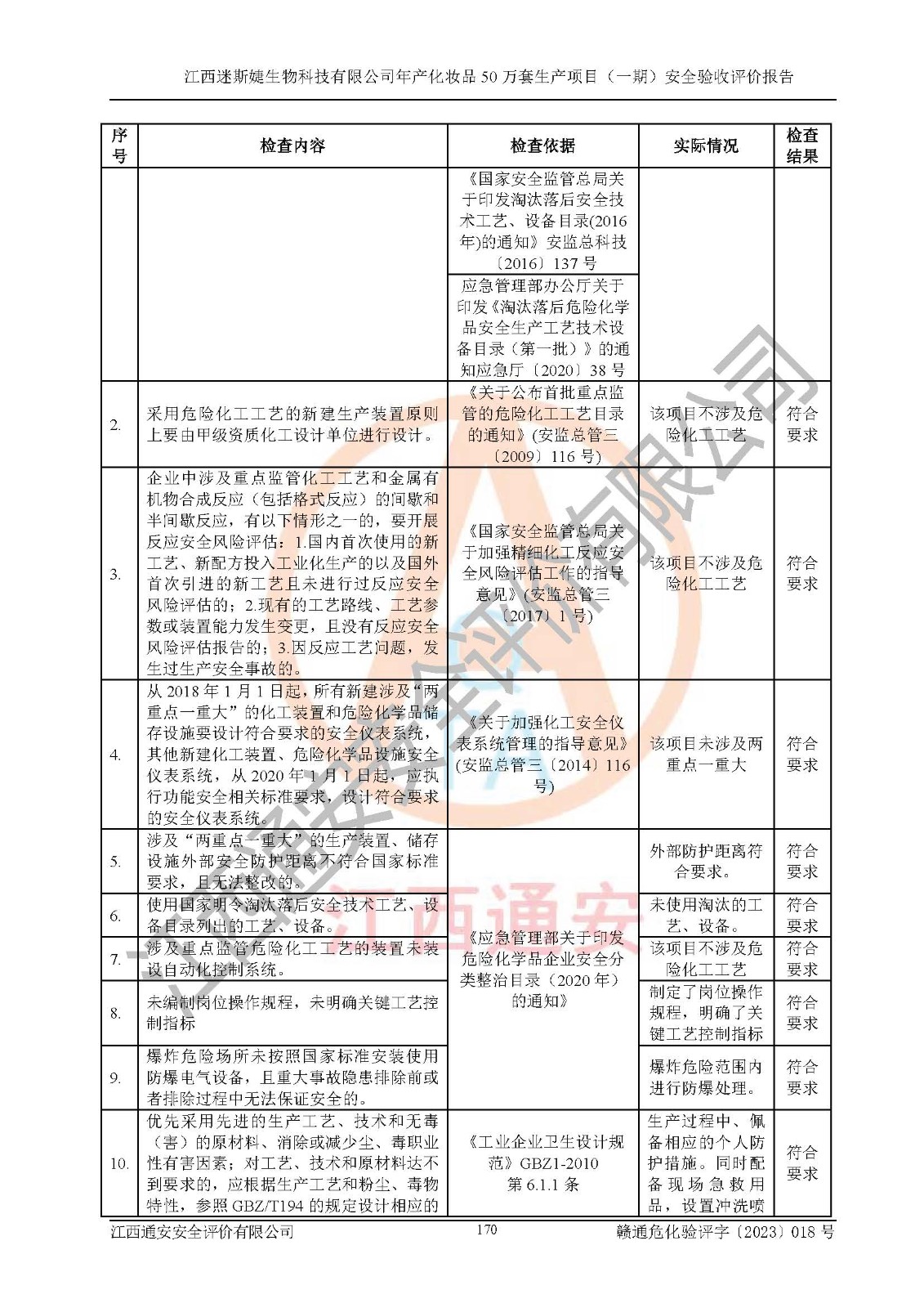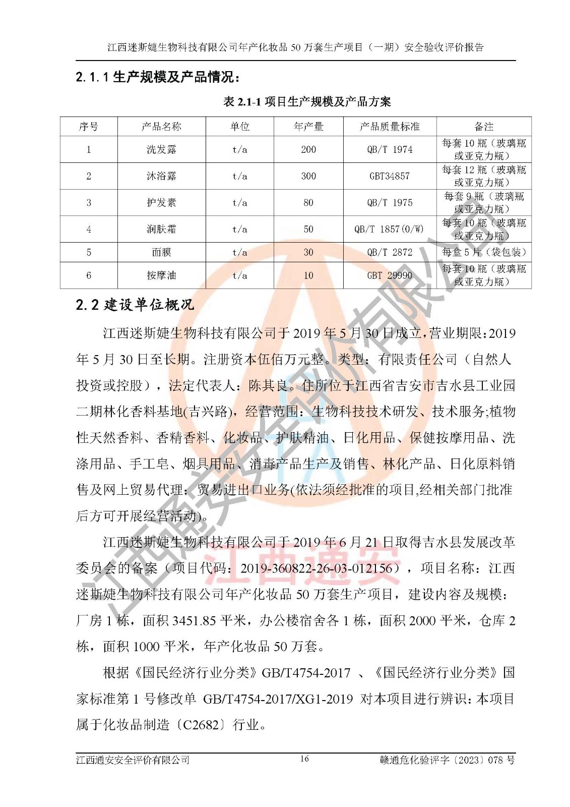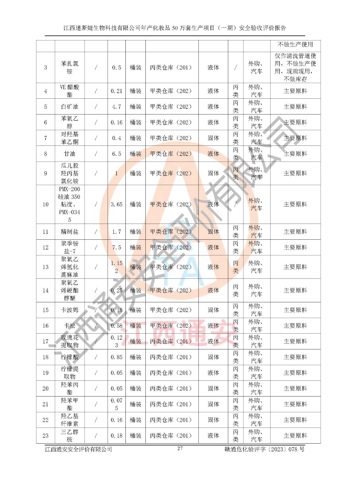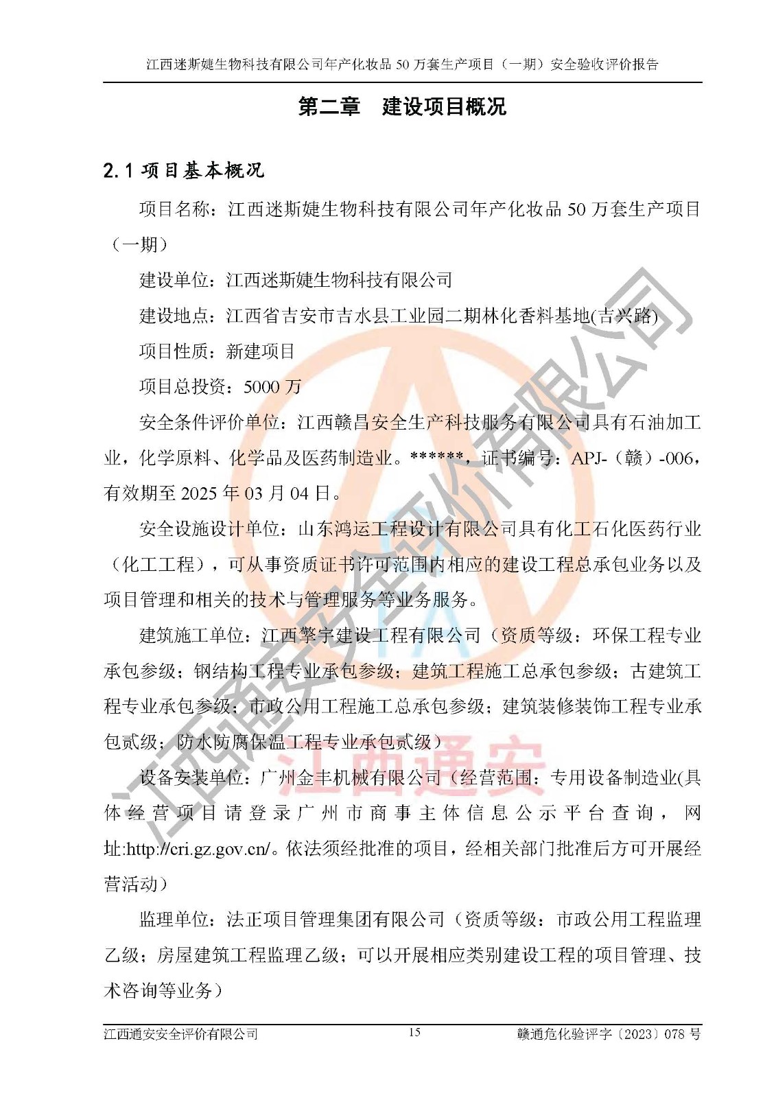 項(xiàng)目名稱 | 江西迷斯婕生物科技有限公司年產(chǎn)化妝品50萬(wàn)套生產(chǎn)項(xiàng)目 (一期)安全驗(yàn)收評(píng)價(jià)報(bào)告 | ||||