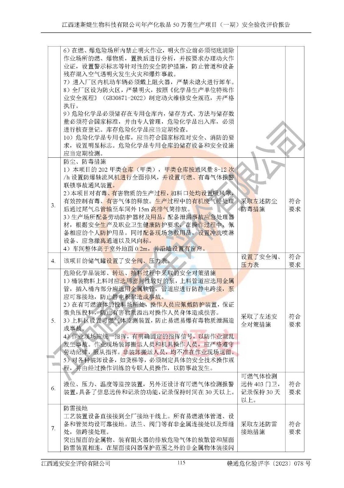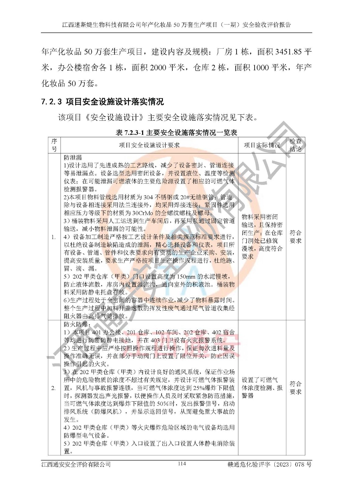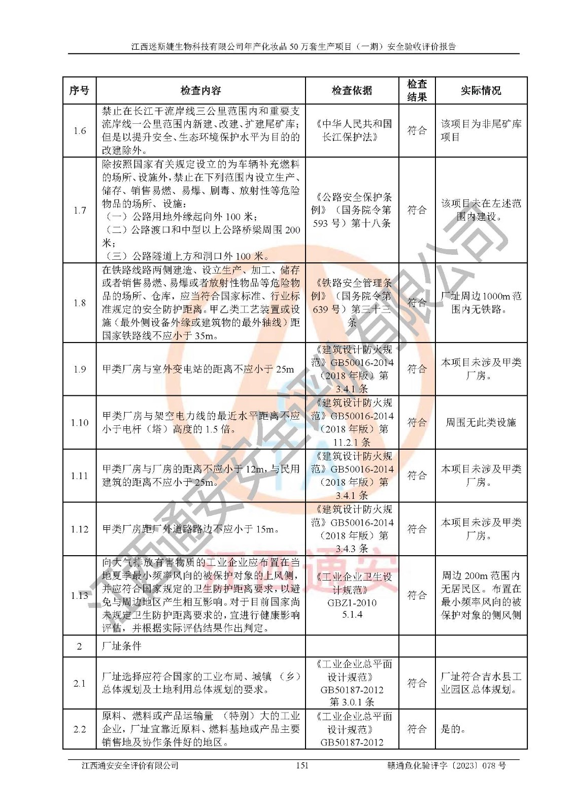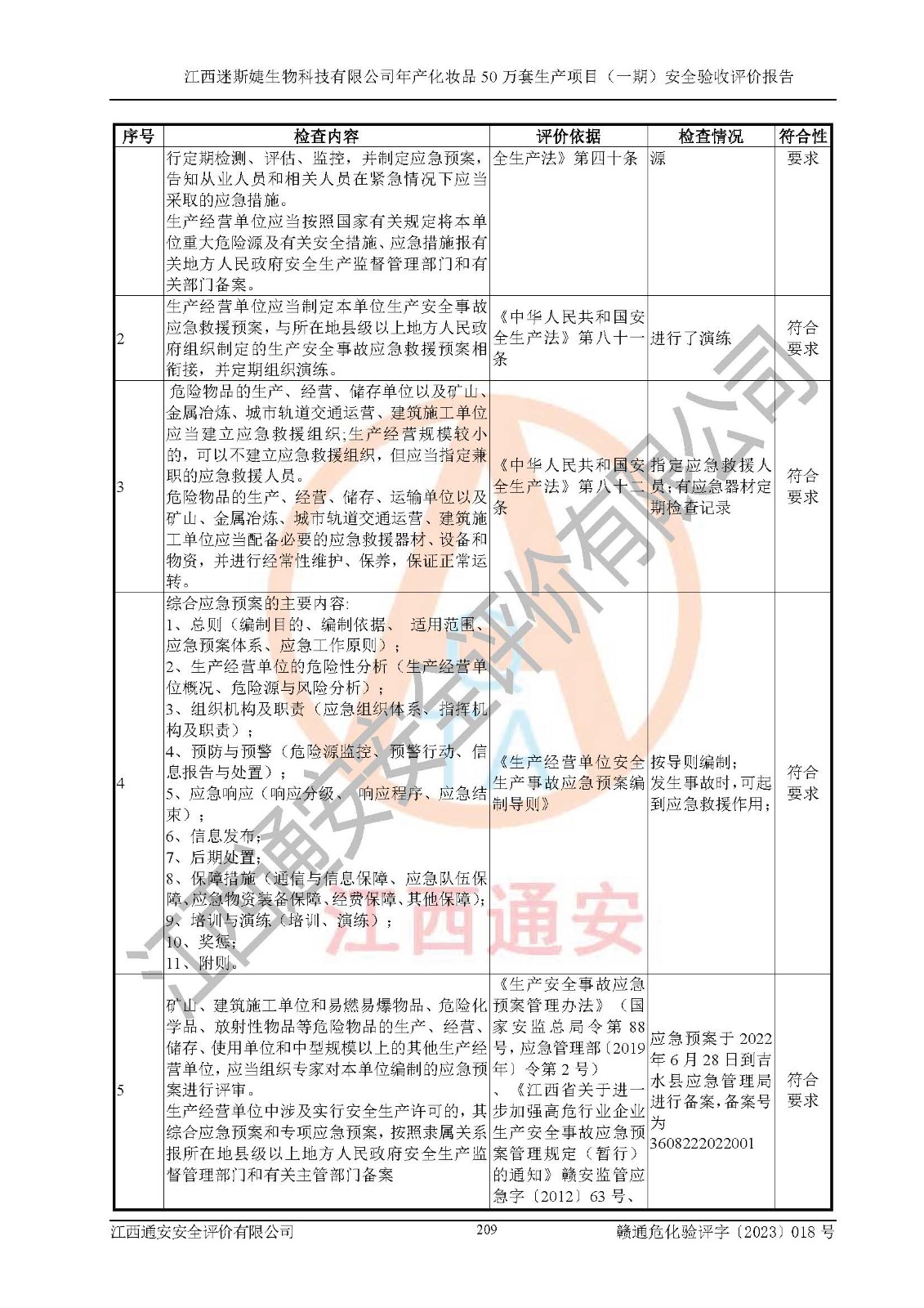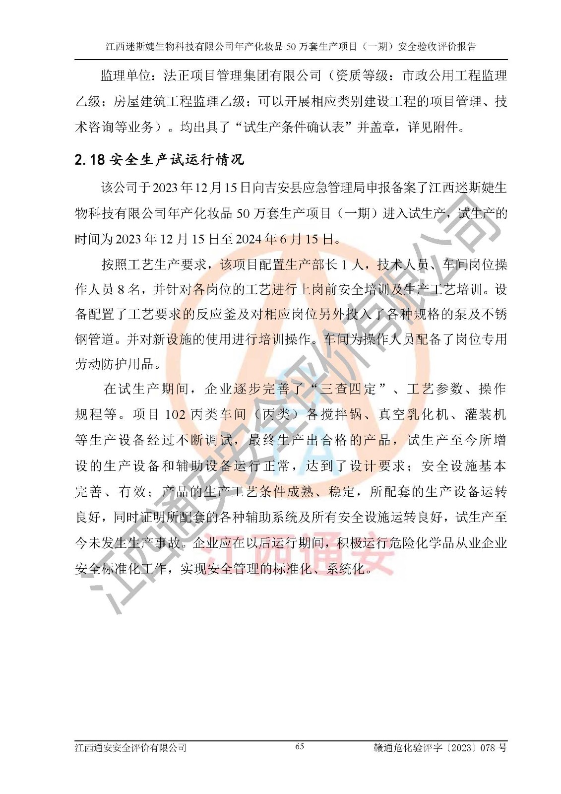 項(xiàng)目名稱 | 江西迷斯婕生物科技有限公司年產(chǎn)化妝品50萬(wàn)套生產(chǎn)項(xiàng)目 (一期)安全驗(yàn)收評(píng)價(jià)報(bào)告 | ||||