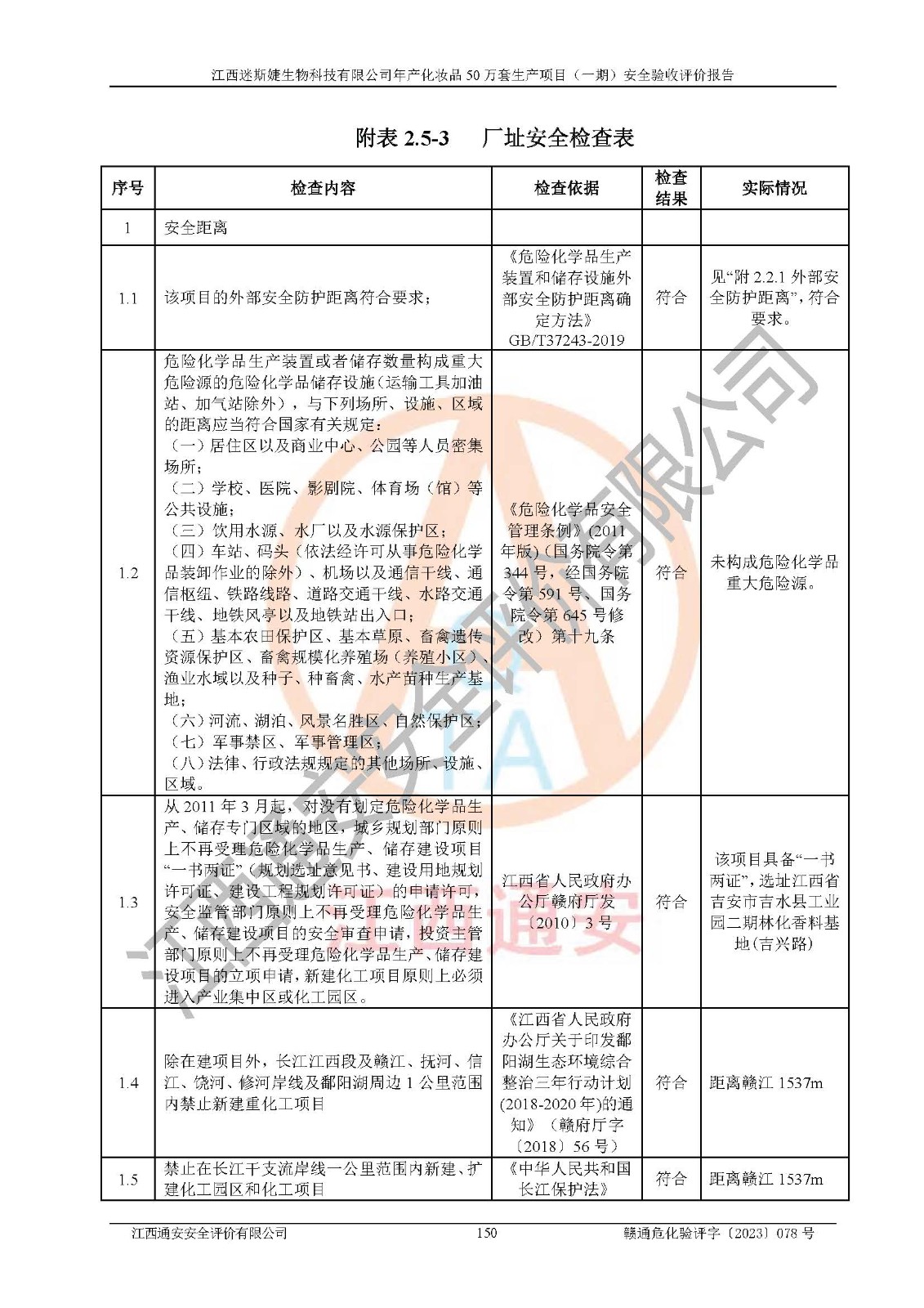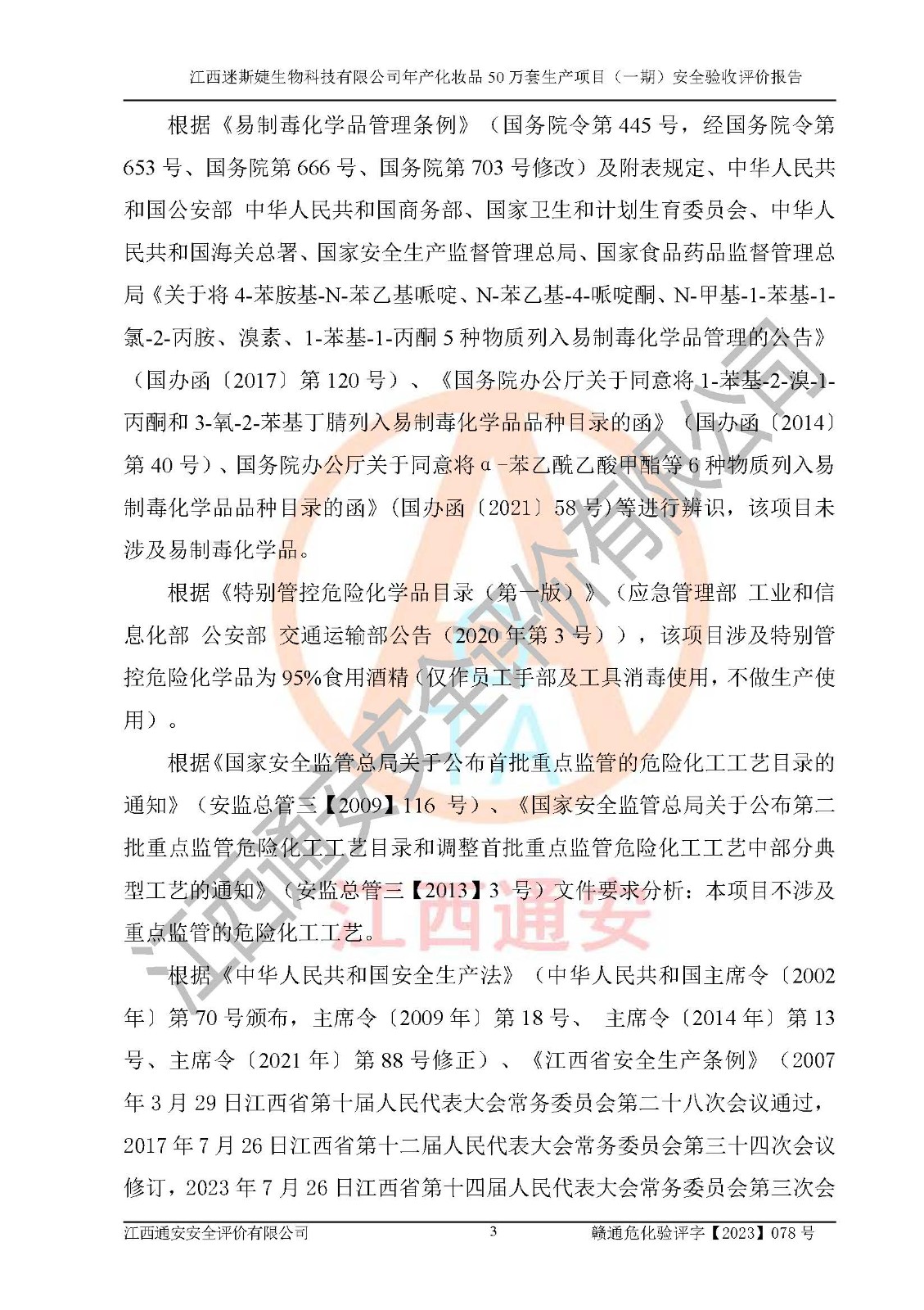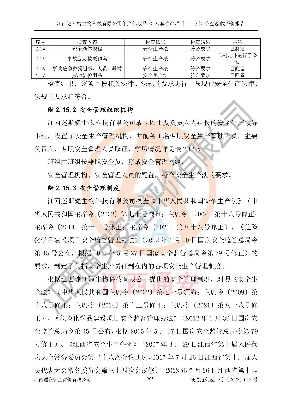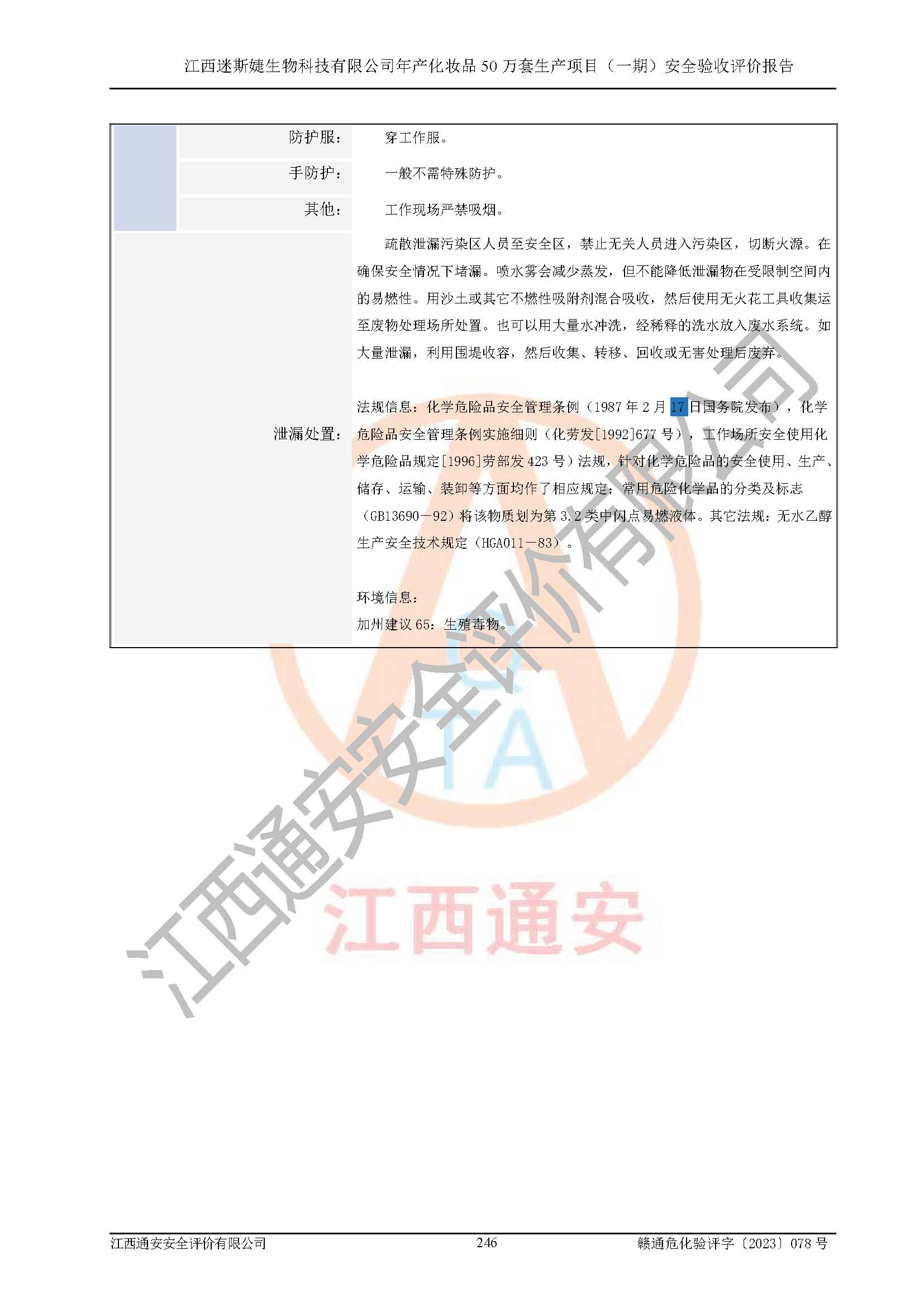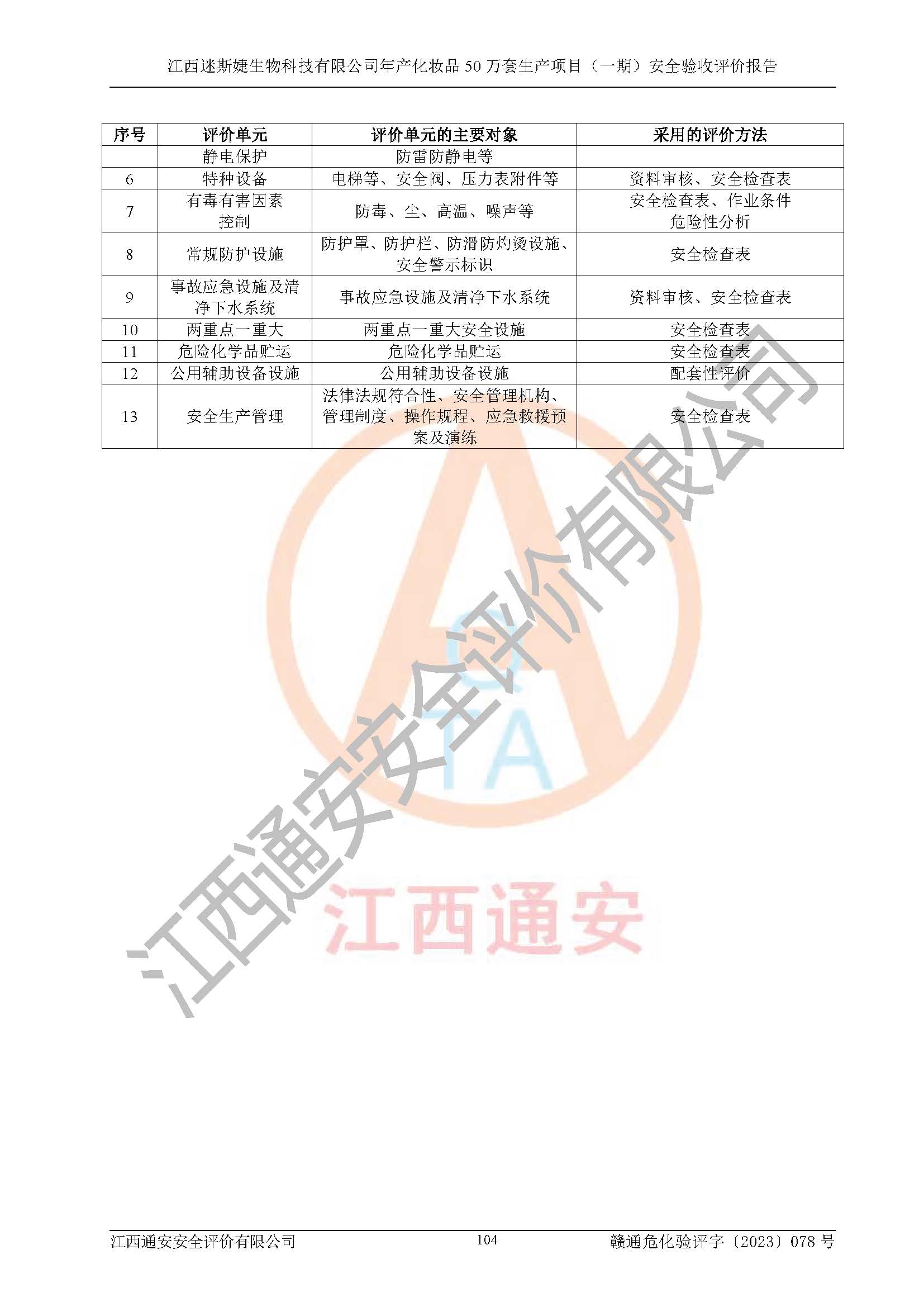 項(xiàng)目名稱 | 江西迷斯婕生物科技有限公司年產(chǎn)化妝品50萬(wàn)套生產(chǎn)項(xiàng)目 (一期)安全驗(yàn)收評(píng)價(jià)報(bào)告 | ||||
