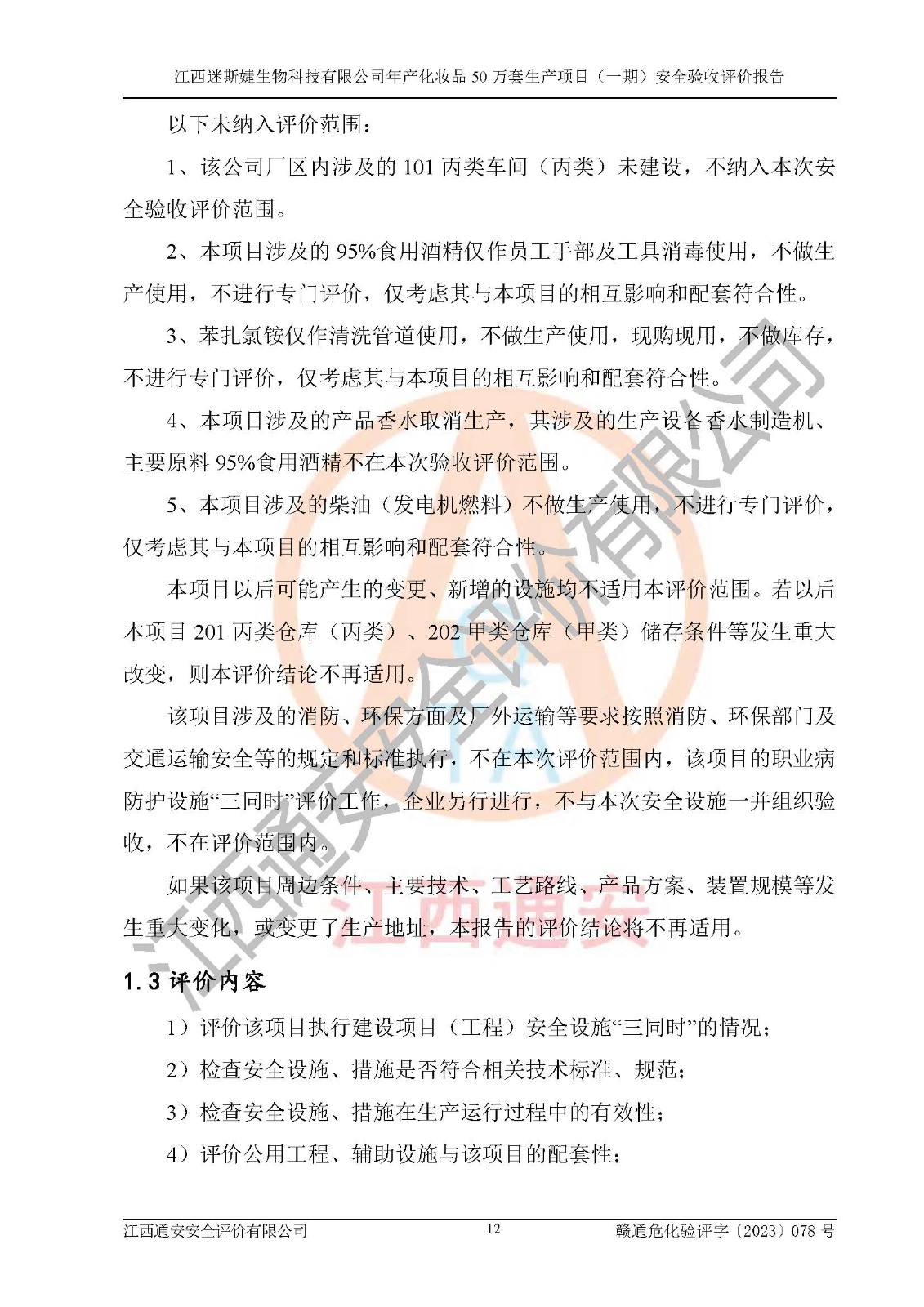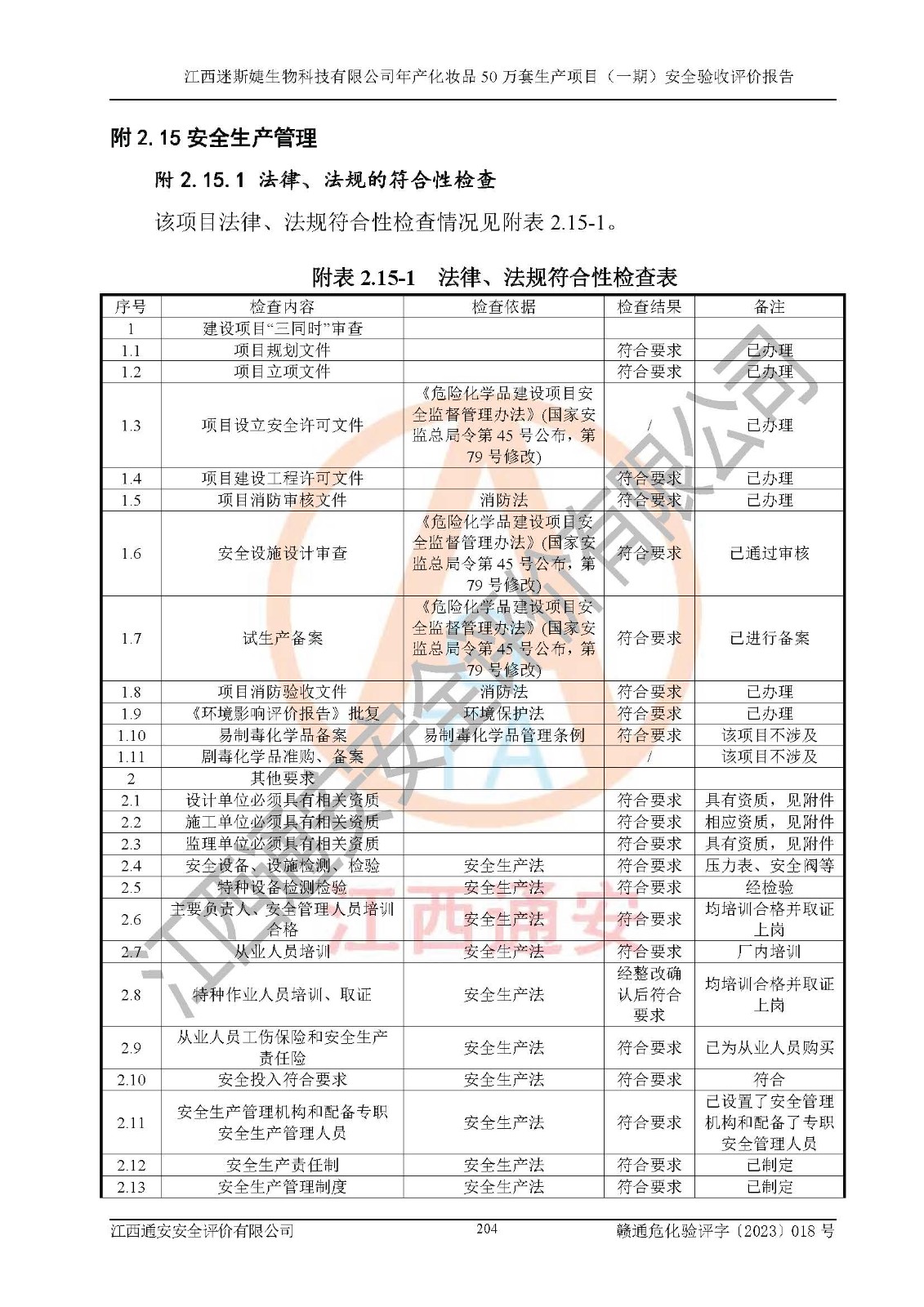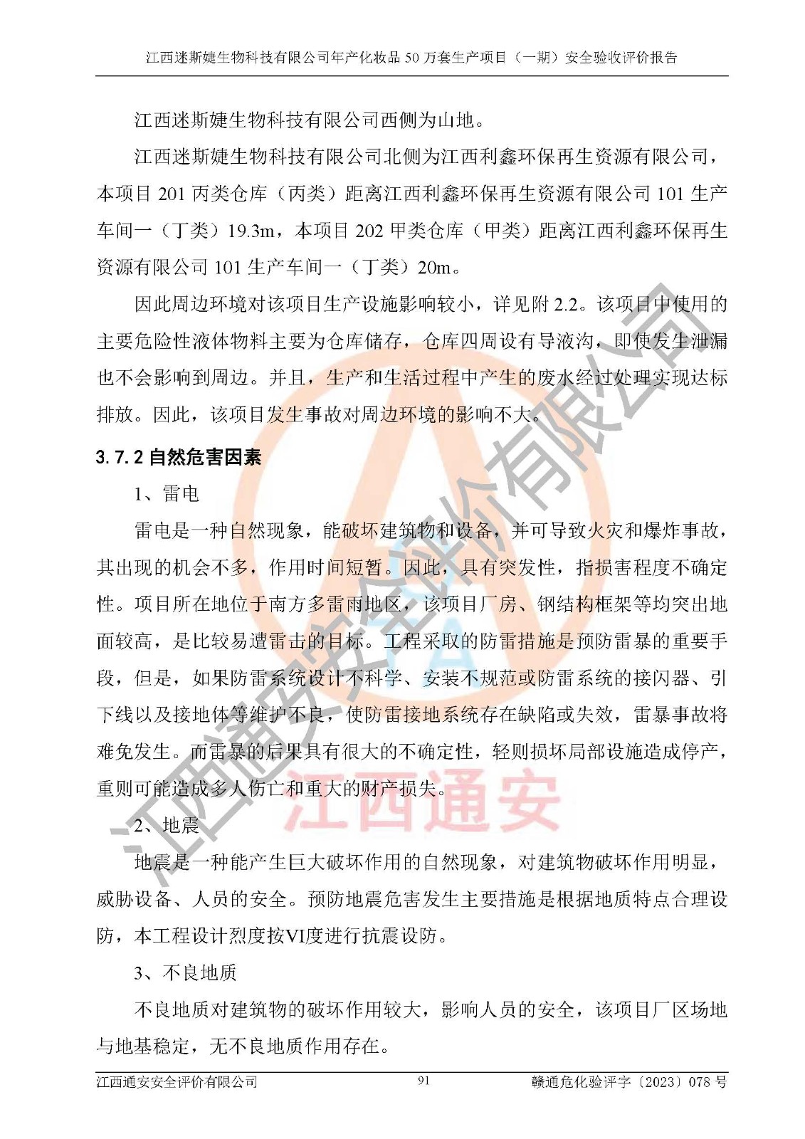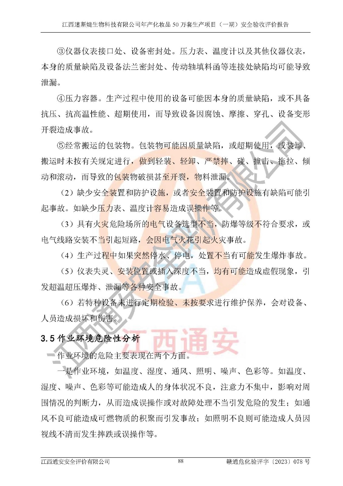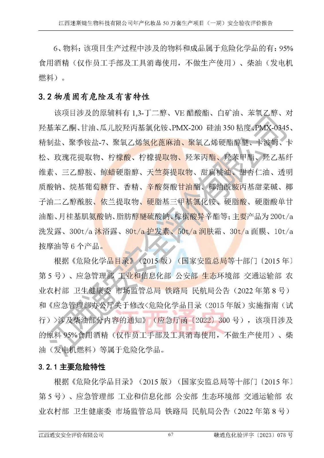 項(xiàng)目名稱 | 江西迷斯婕生物科技有限公司年產(chǎn)化妝品50萬(wàn)套生產(chǎn)項(xiàng)目 (一期)安全驗(yàn)收評(píng)價(jià)報(bào)告 | ||||