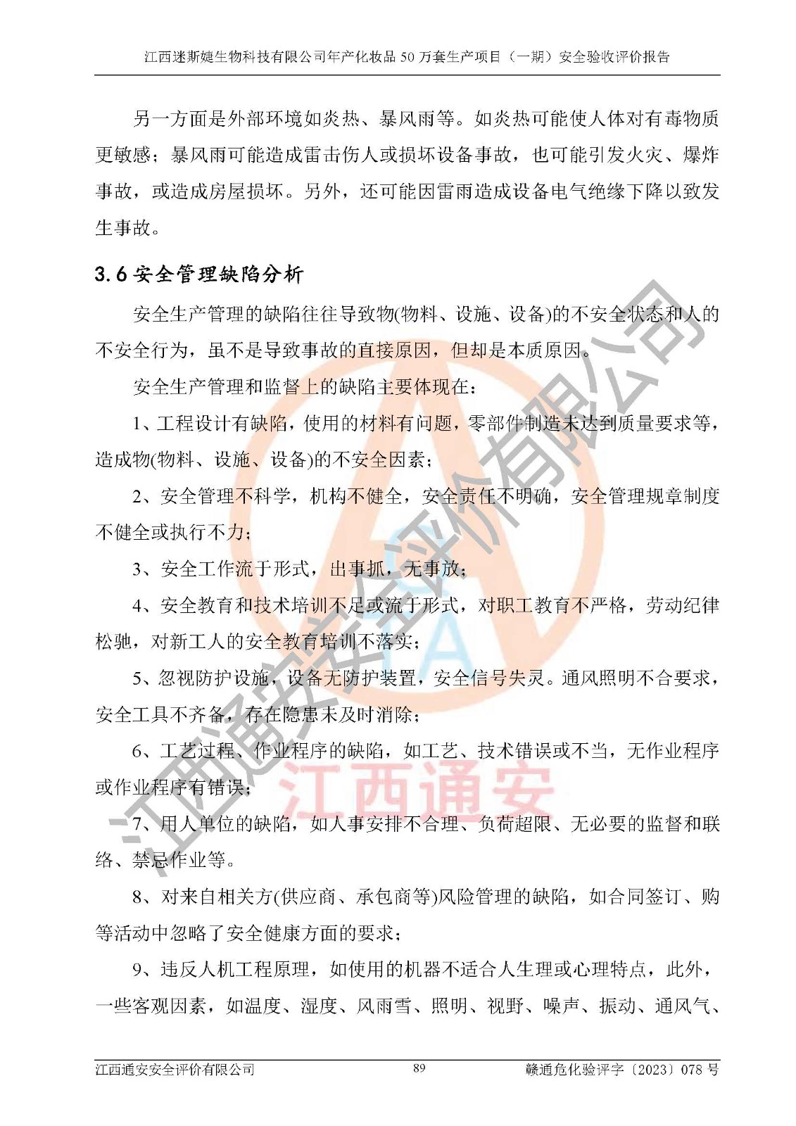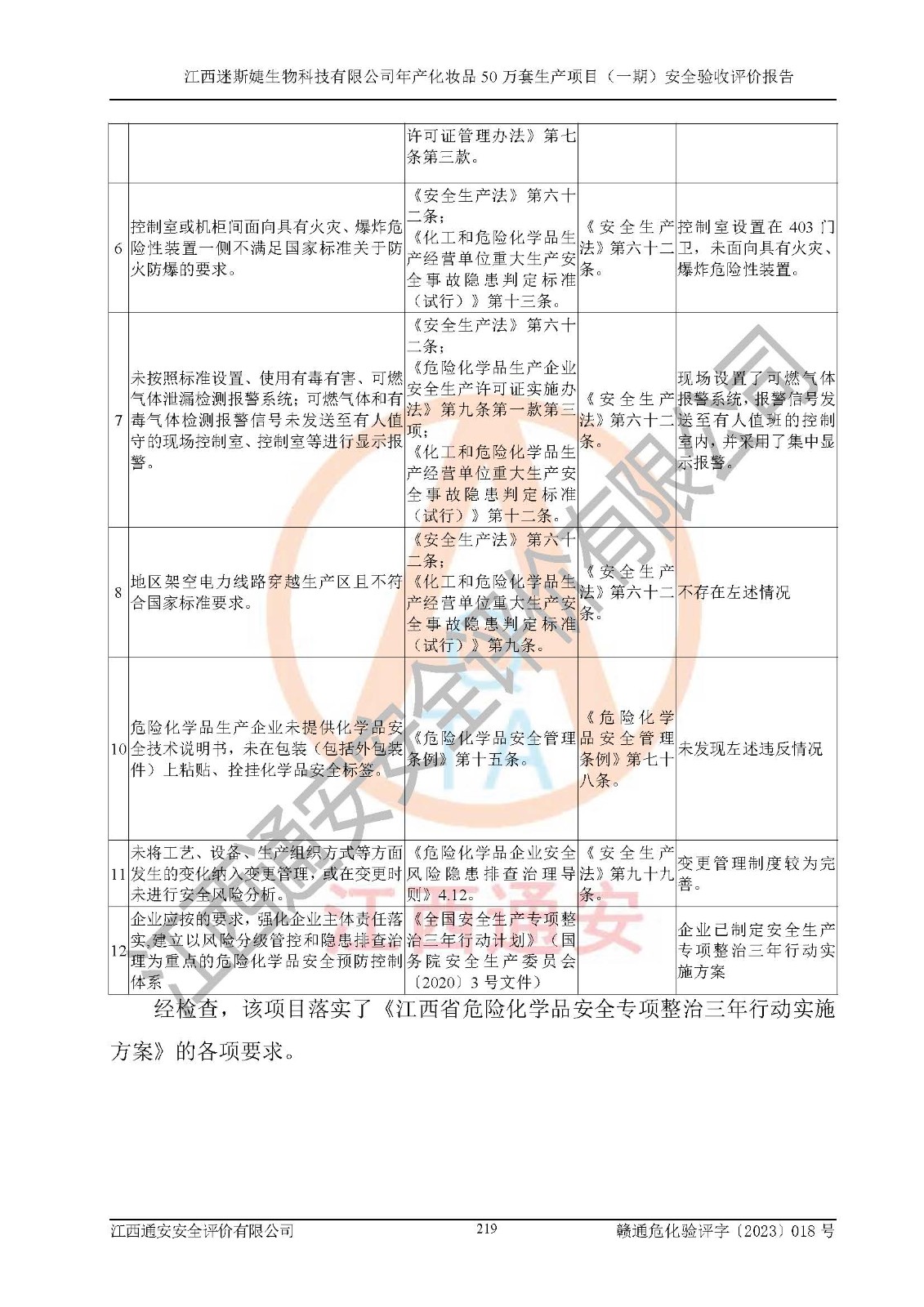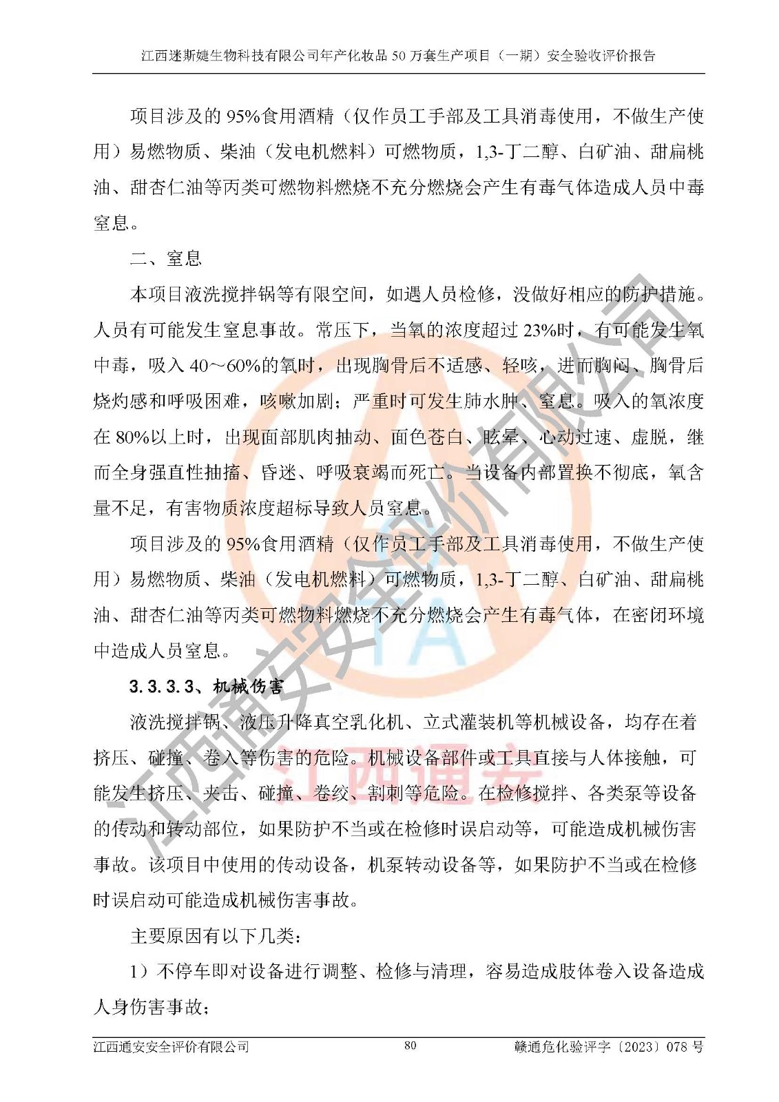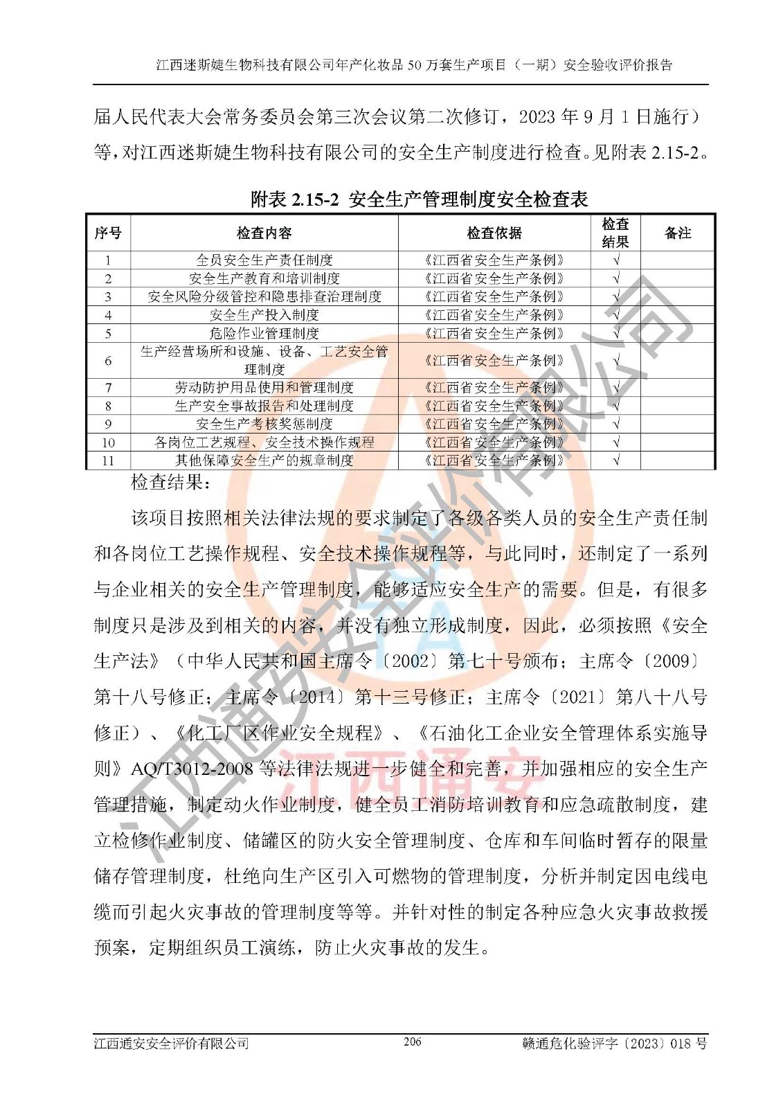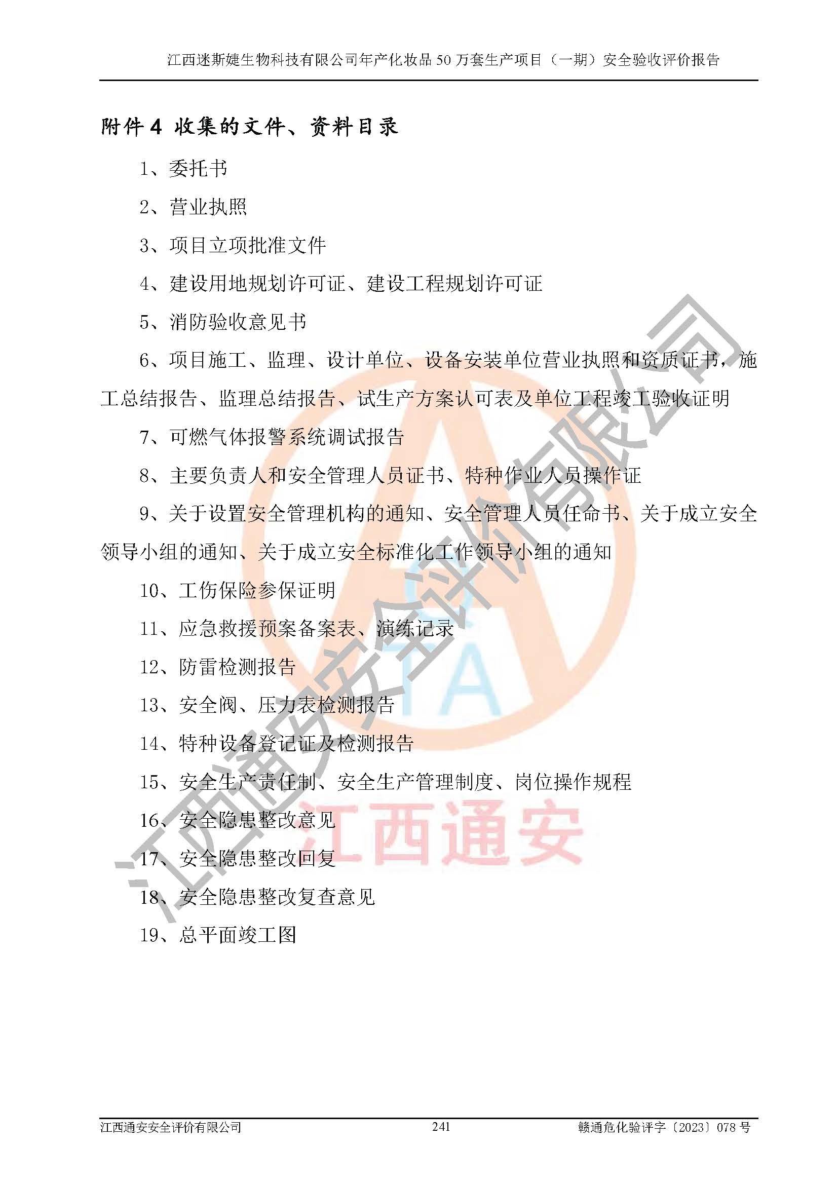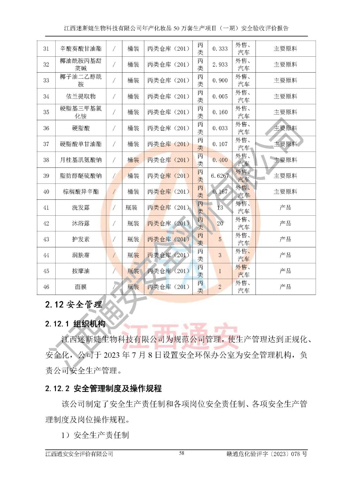 項(xiàng)目名稱 | 江西迷斯婕生物科技有限公司年產(chǎn)化妝品50萬(wàn)套生產(chǎn)項(xiàng)目 (一期)安全驗(yàn)收評(píng)價(jià)報(bào)告 | ||||