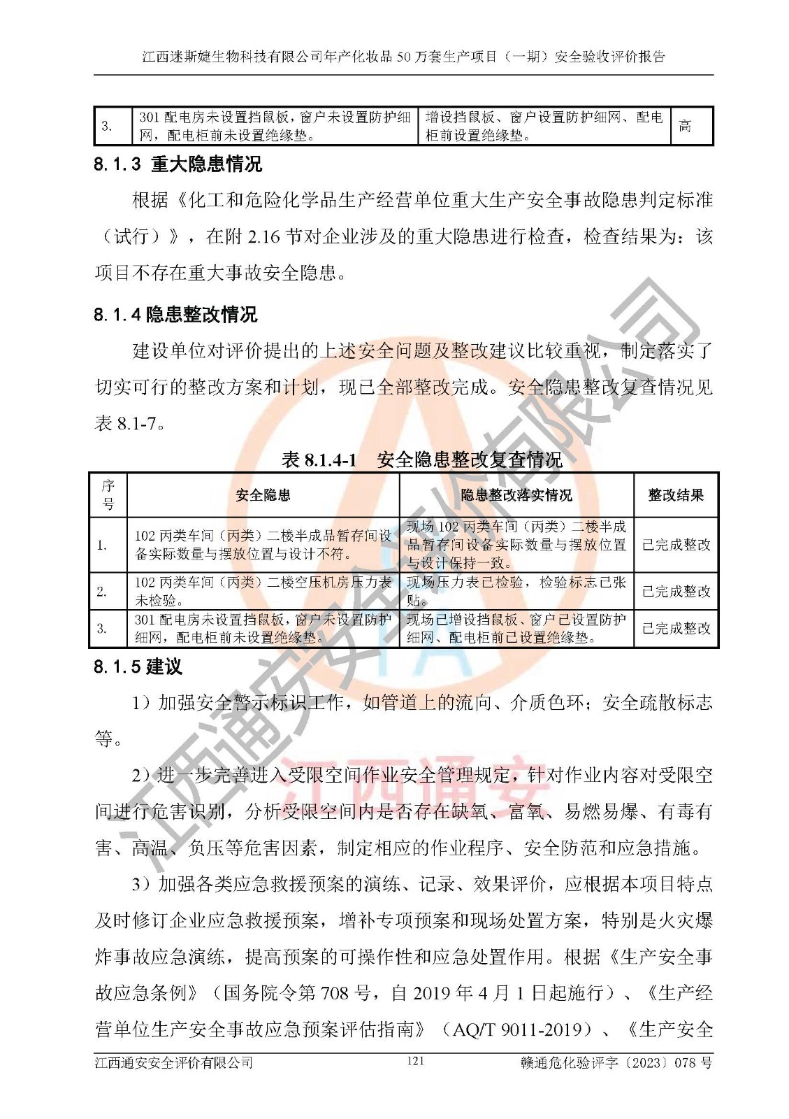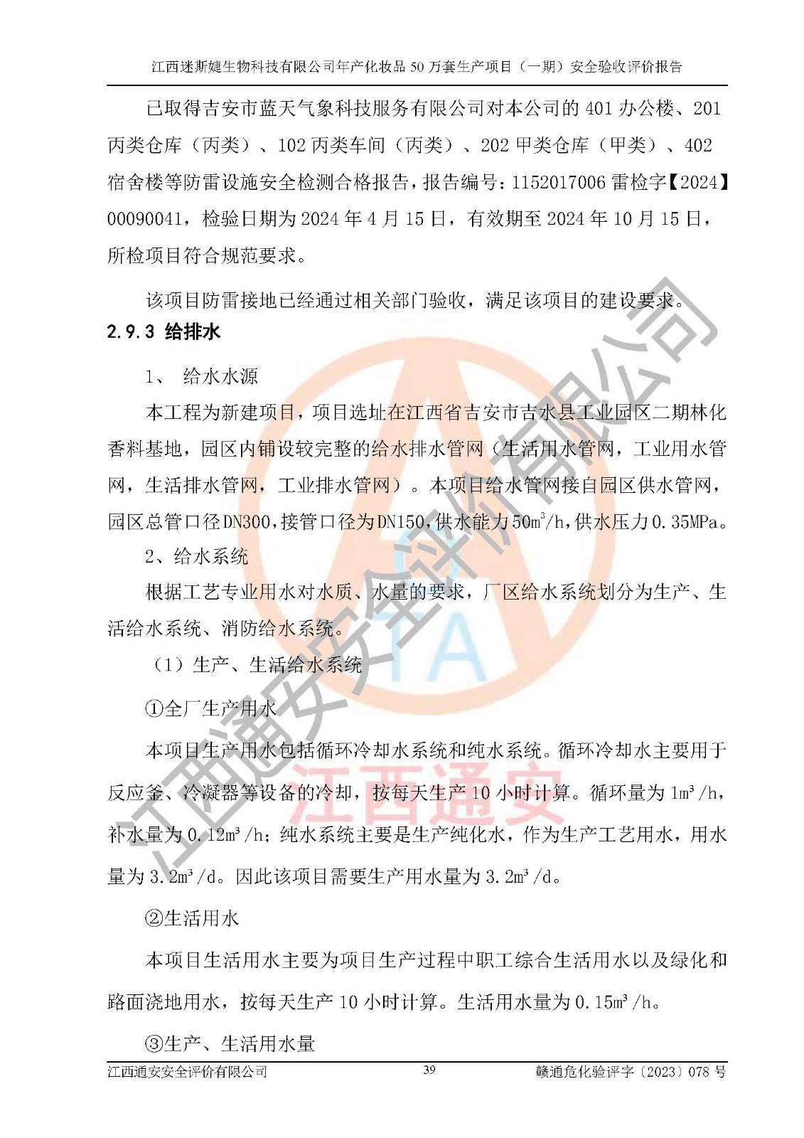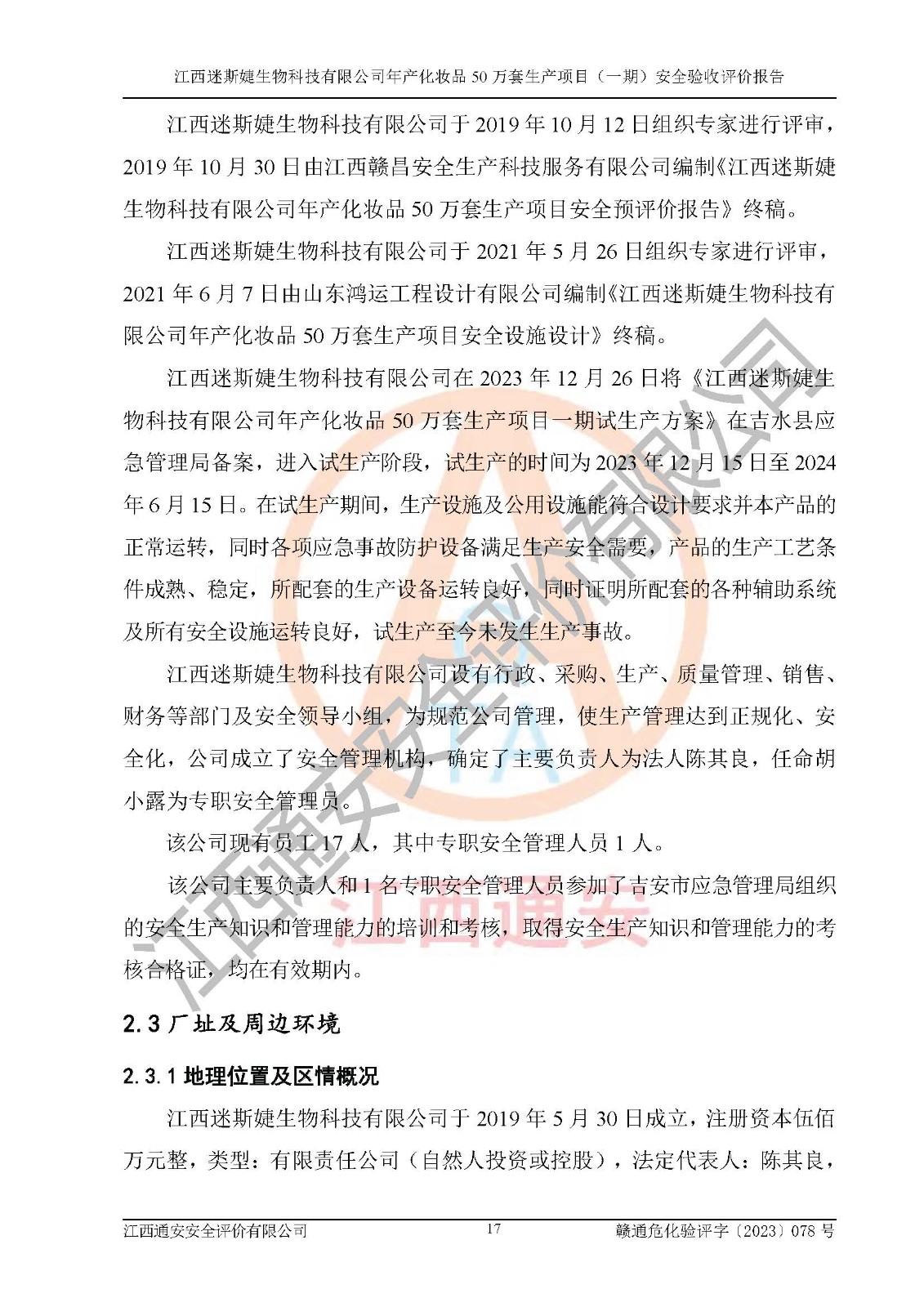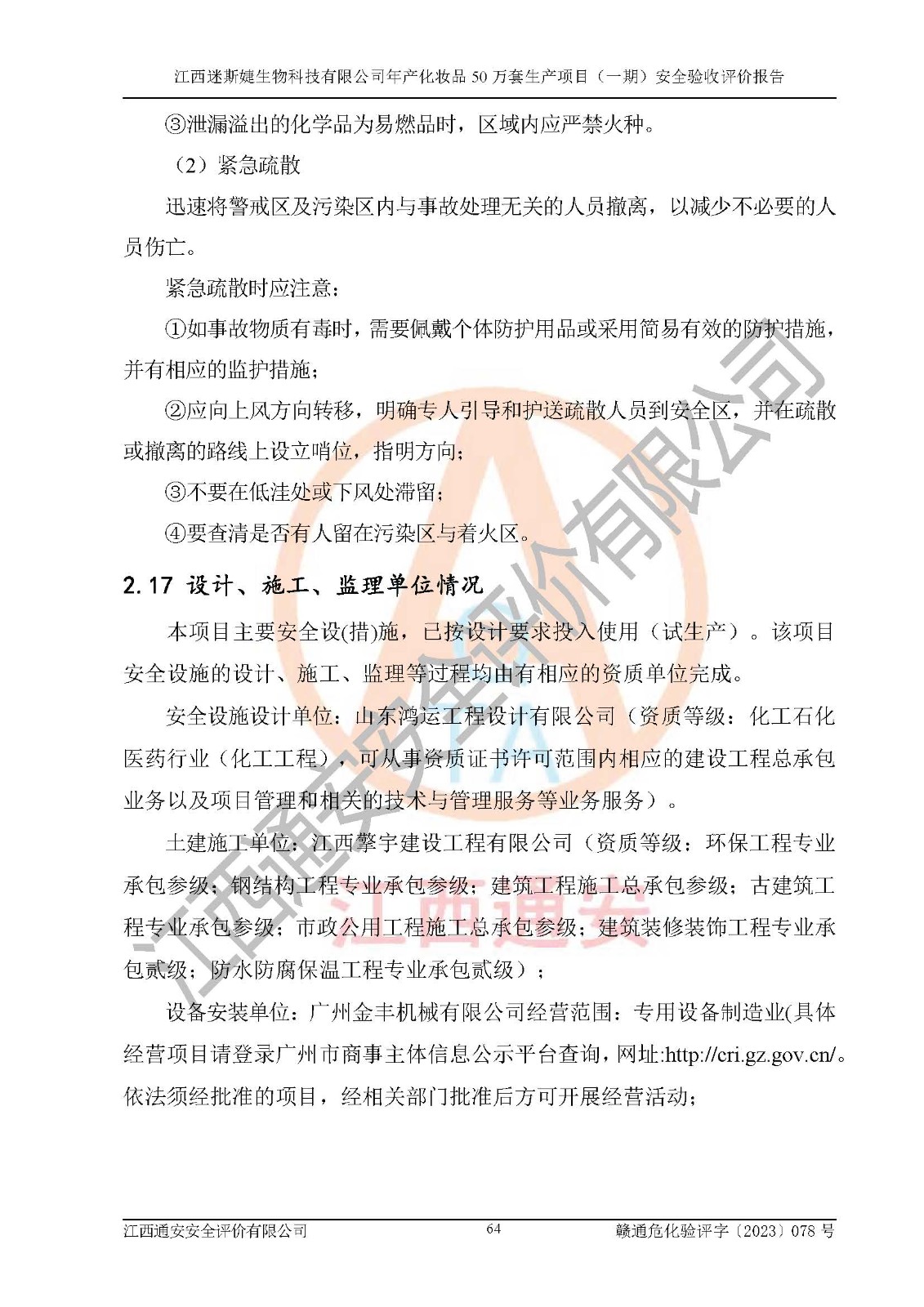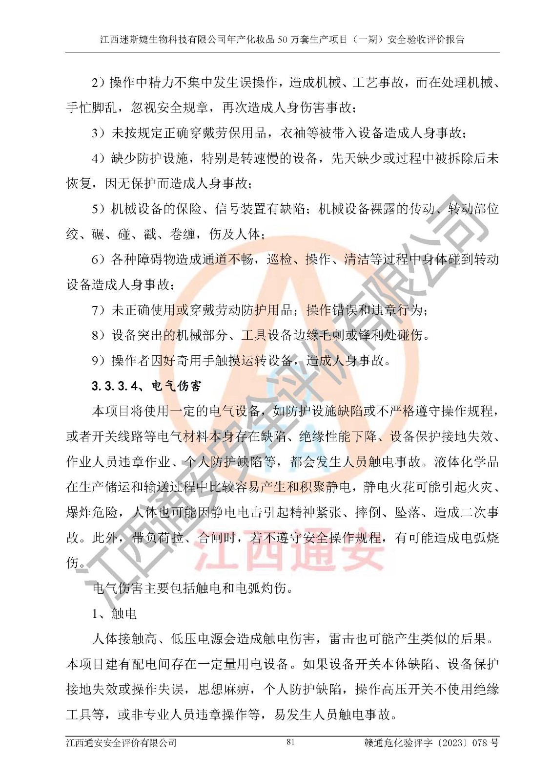 項(xiàng)目名稱 | 江西迷斯婕生物科技有限公司年產(chǎn)化妝品50萬(wàn)套生產(chǎn)項(xiàng)目 (一期)安全驗(yàn)收評(píng)價(jià)報(bào)告 | ||||