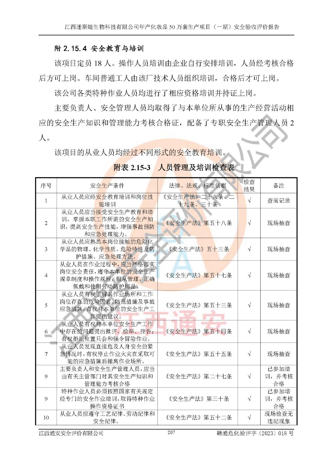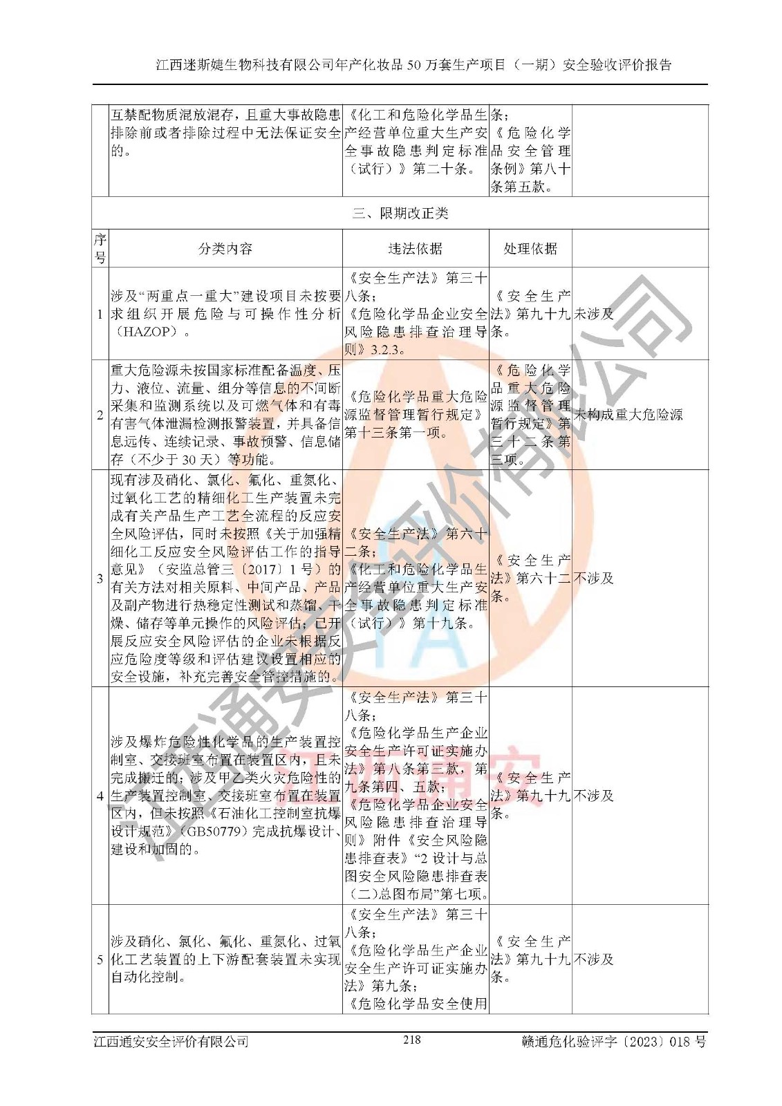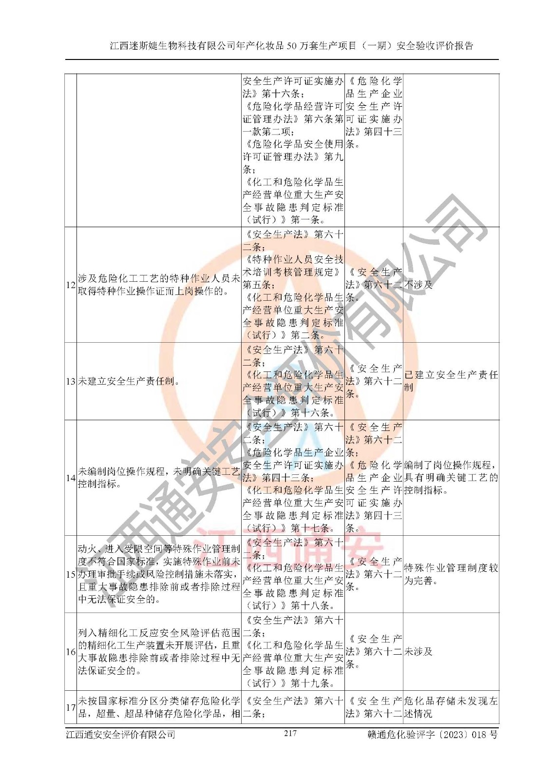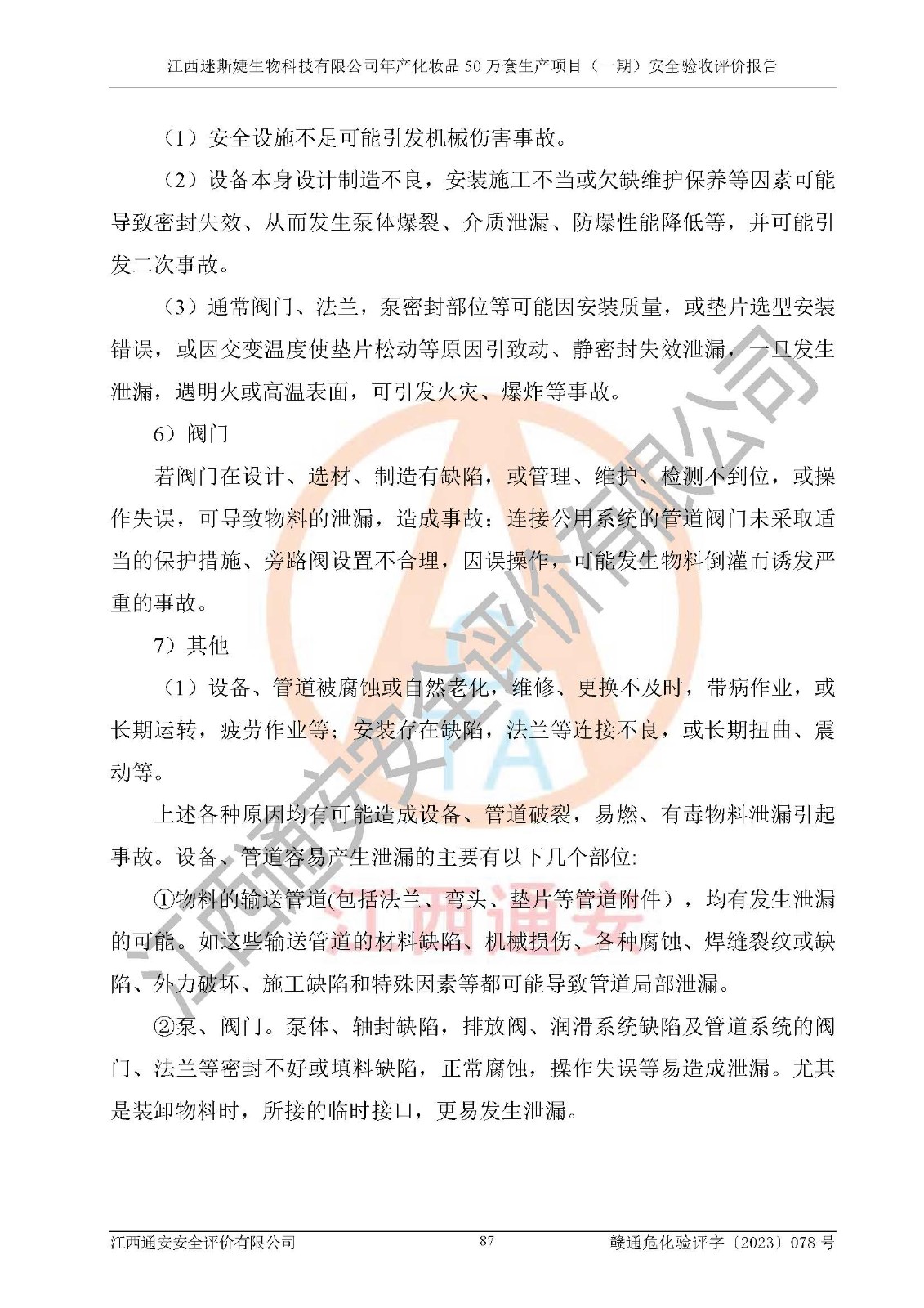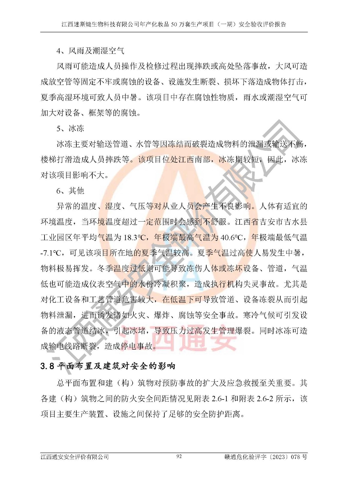 項(xiàng)目名稱 | 江西迷斯婕生物科技有限公司年產(chǎn)化妝品50萬(wàn)套生產(chǎn)項(xiàng)目 (一期)安全驗(yàn)收評(píng)價(jià)報(bào)告 | ||||