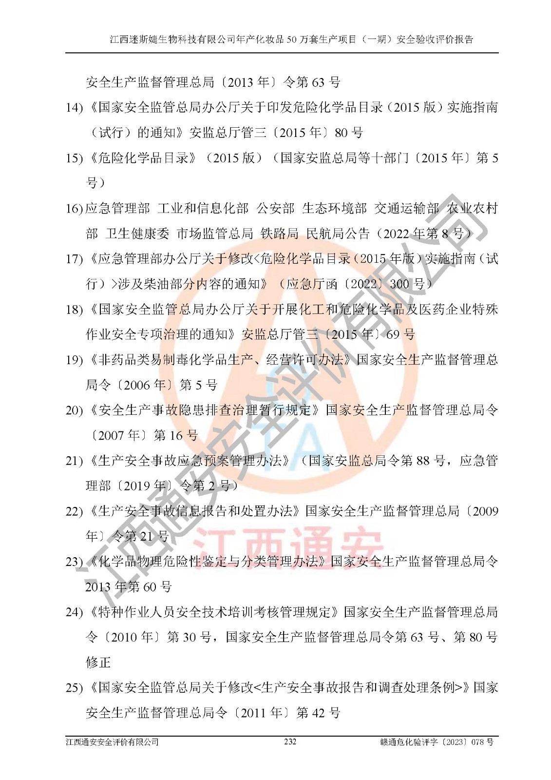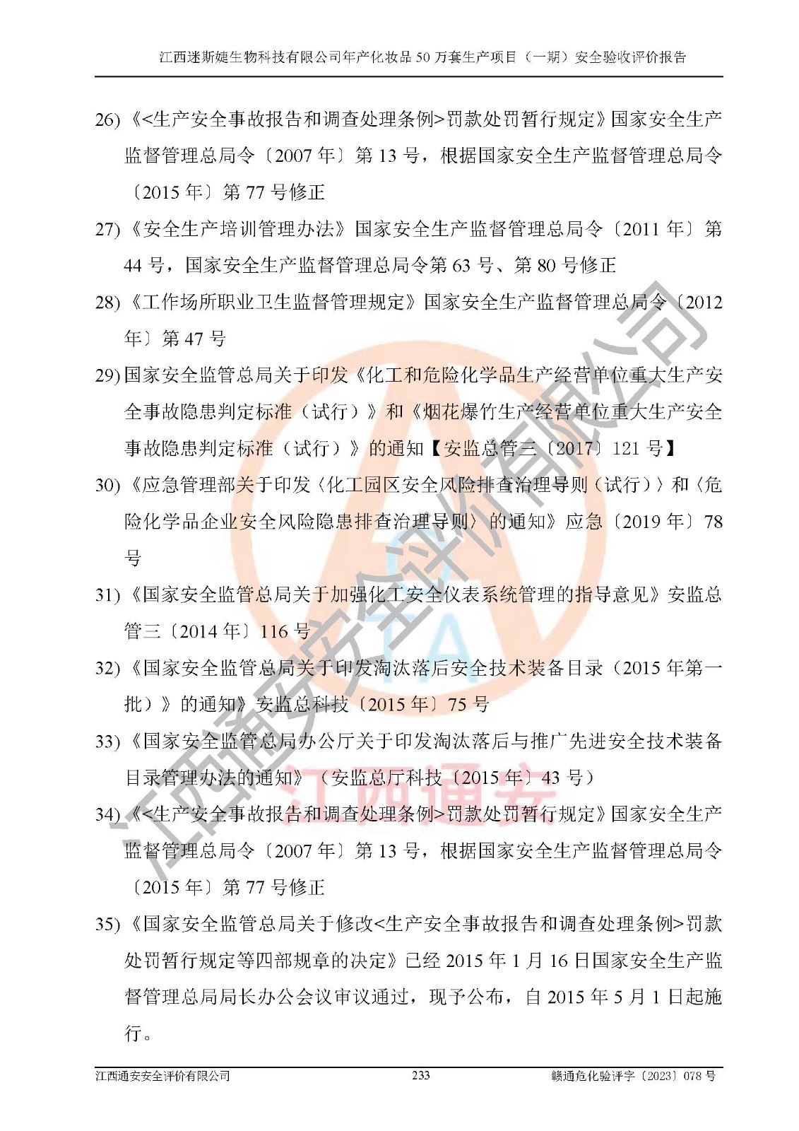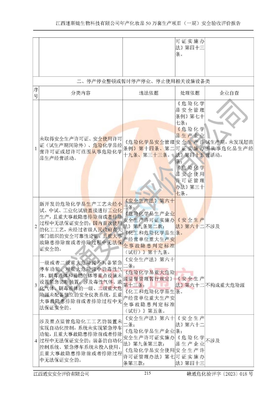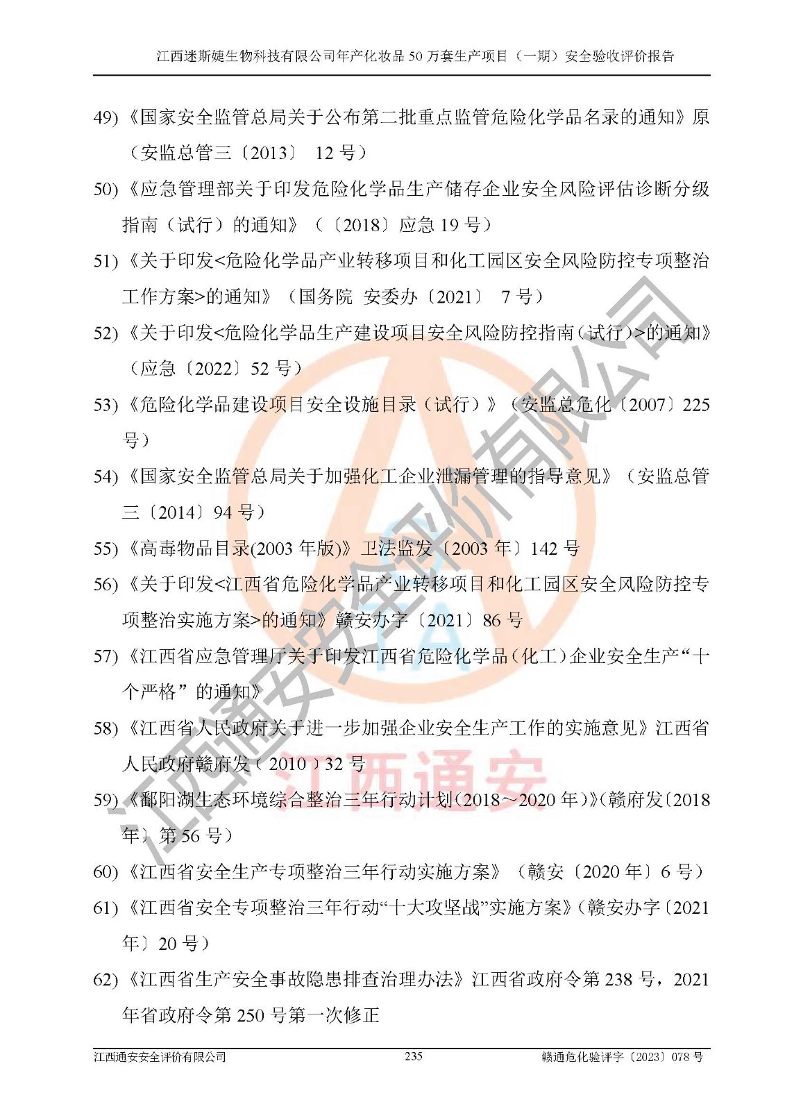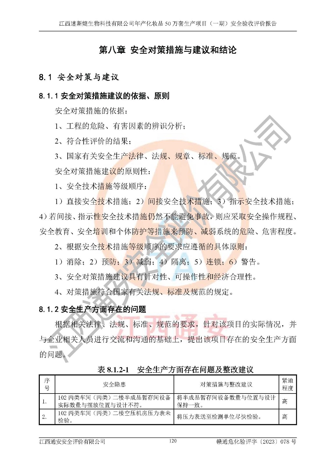 項(xiàng)目名稱 | 江西迷斯婕生物科技有限公司年產(chǎn)化妝品50萬(wàn)套生產(chǎn)項(xiàng)目 (一期)安全驗(yàn)收評(píng)價(jià)報(bào)告 | ||||