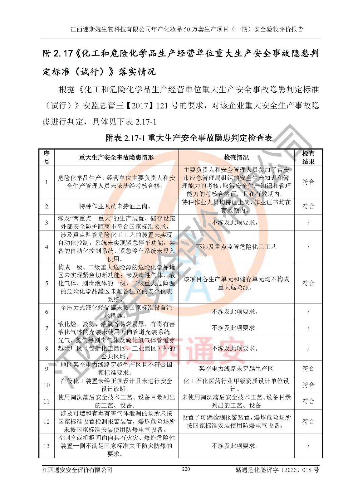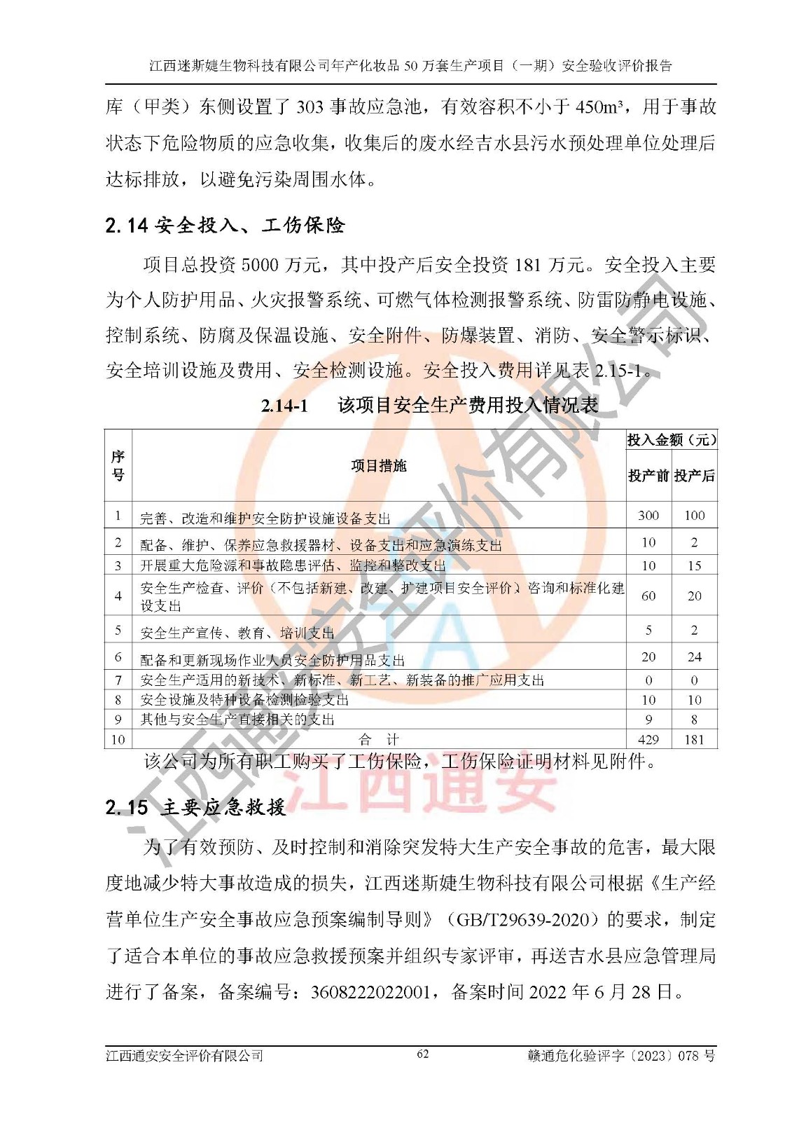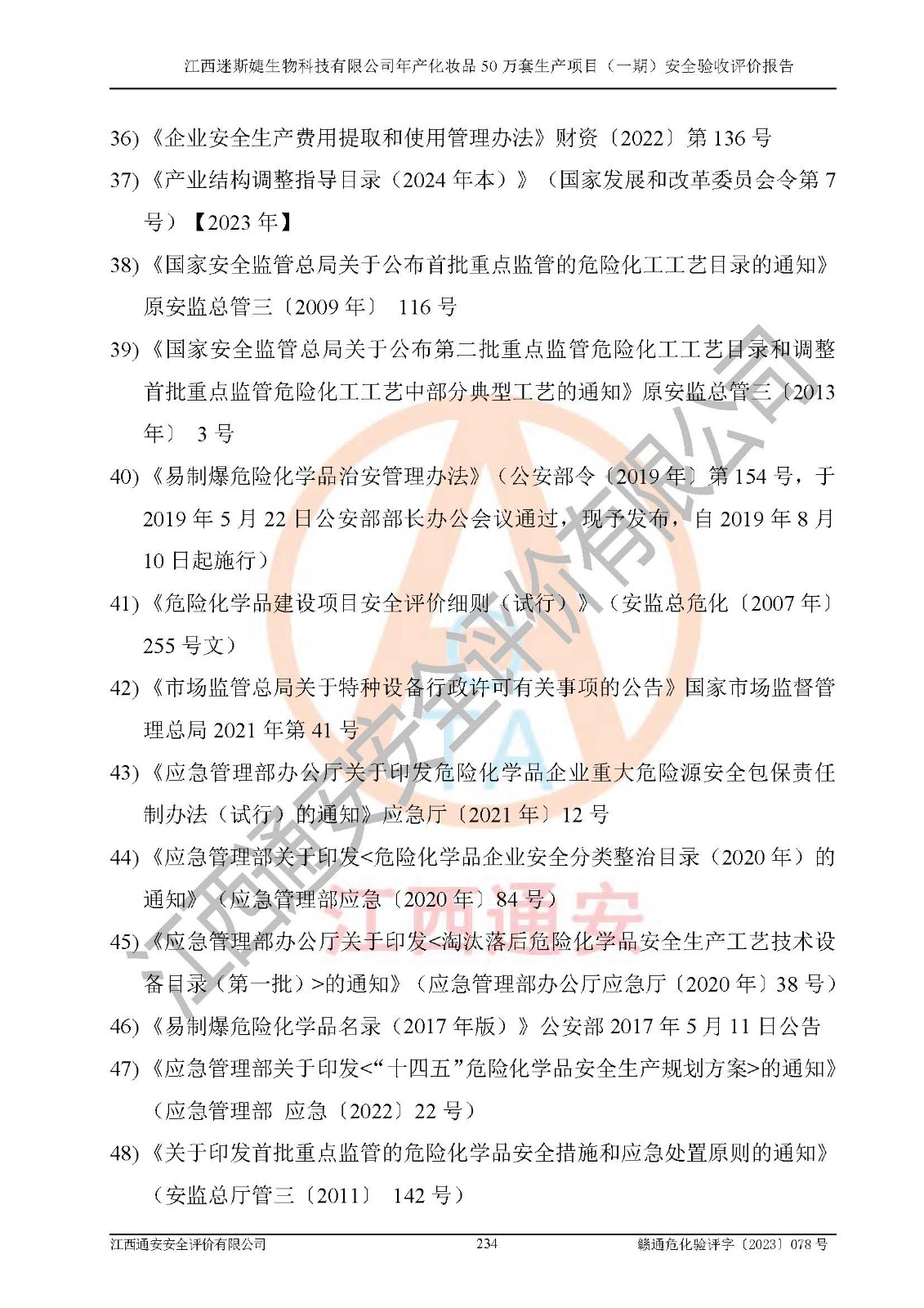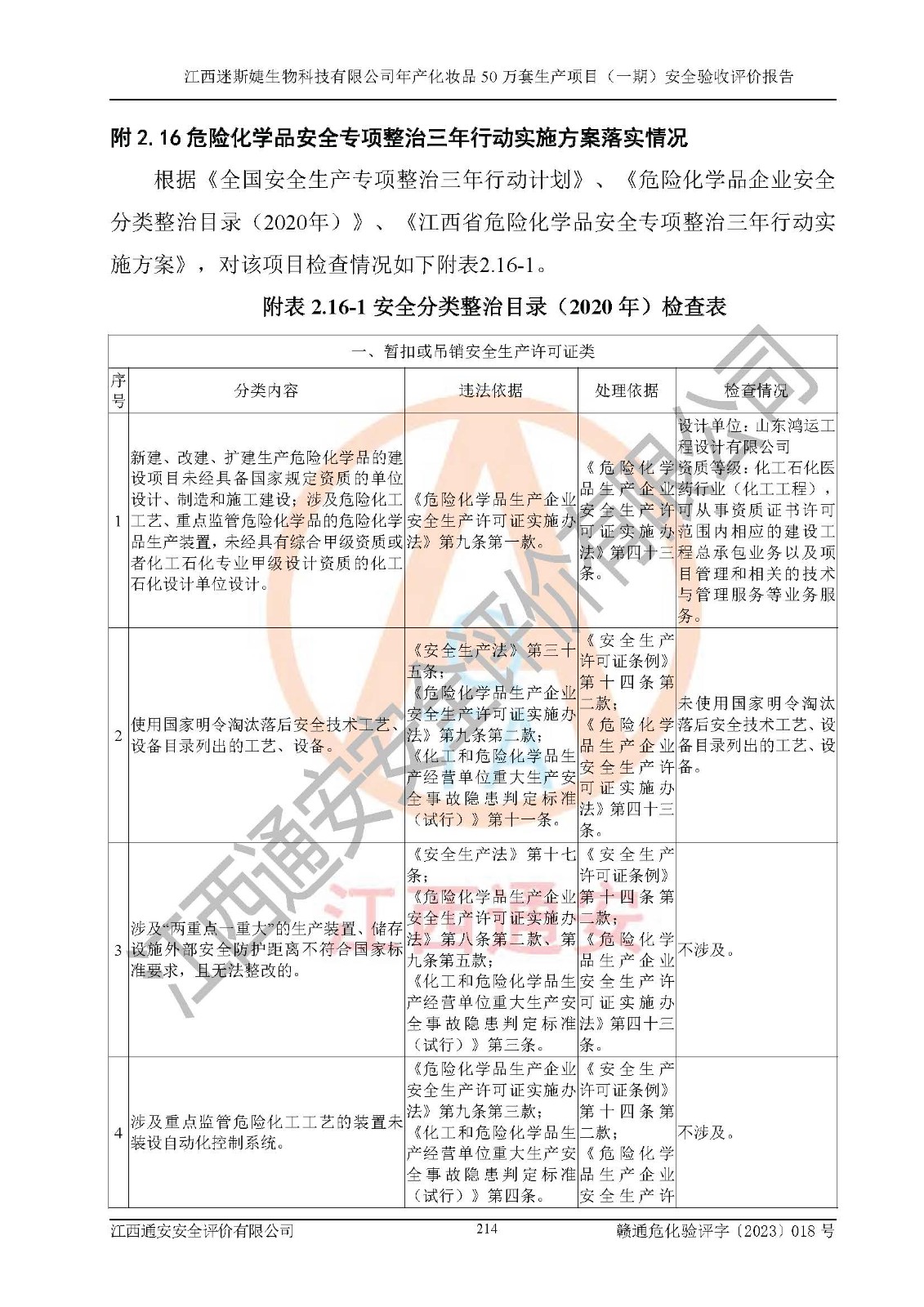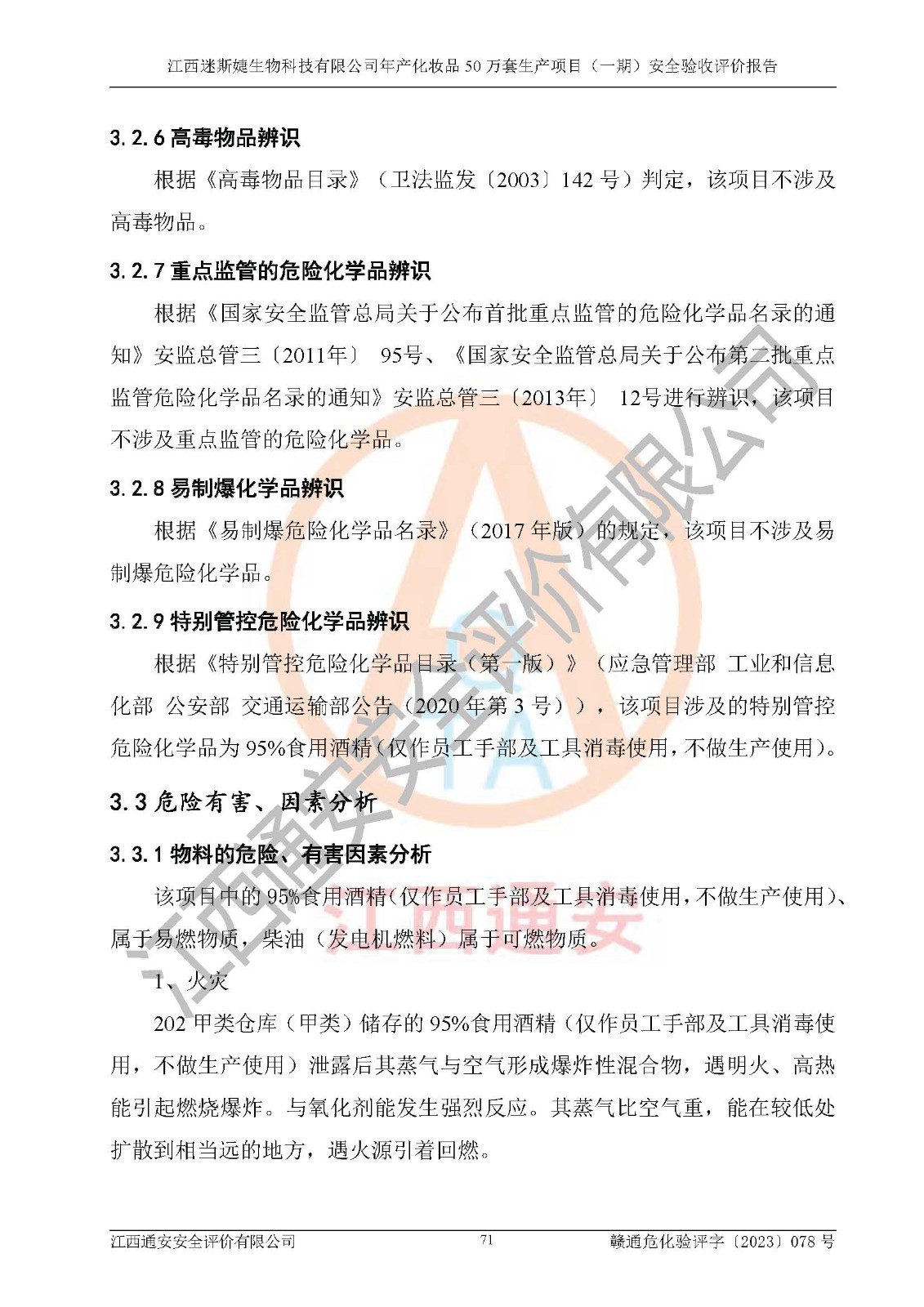 項(xiàng)目名稱 | 江西迷斯婕生物科技有限公司年產(chǎn)化妝品50萬(wàn)套生產(chǎn)項(xiàng)目 (一期)安全驗(yàn)收評(píng)價(jià)報(bào)告 | ||||