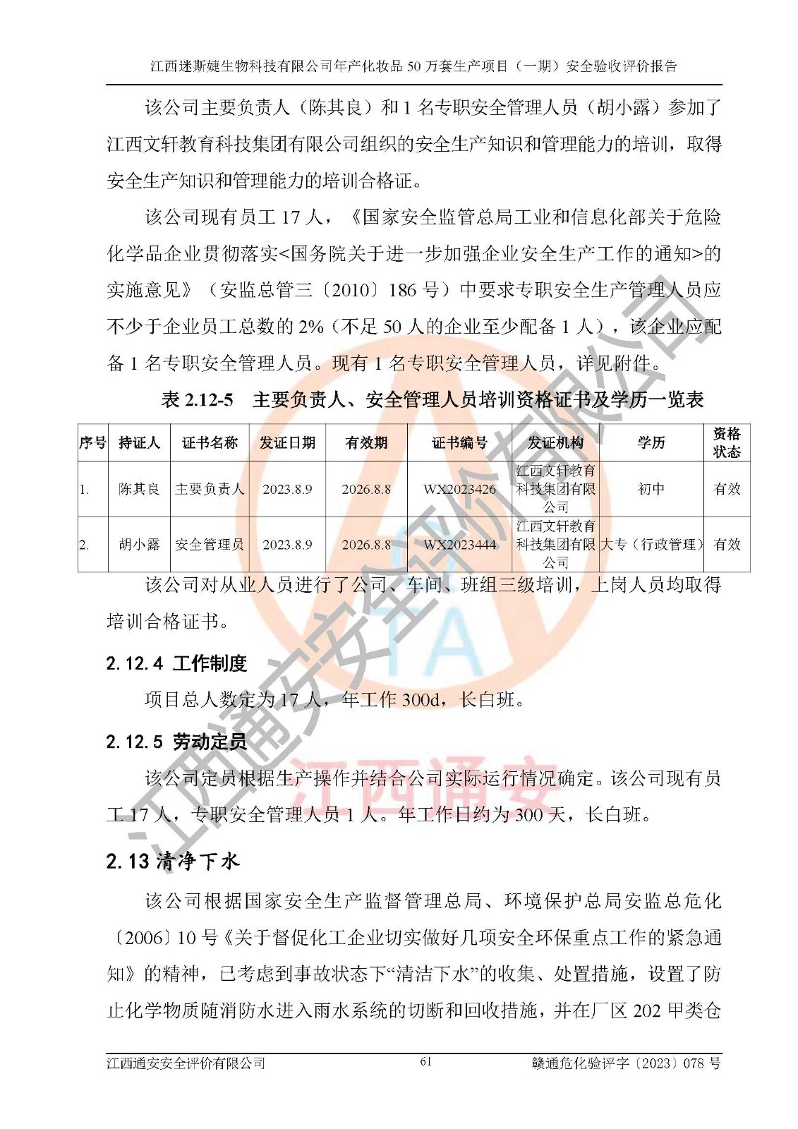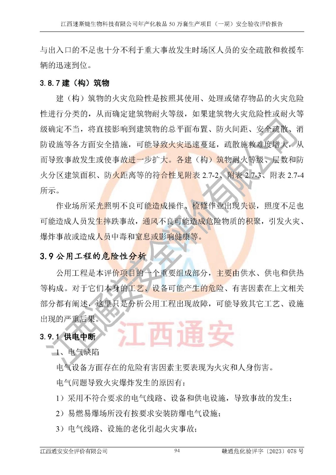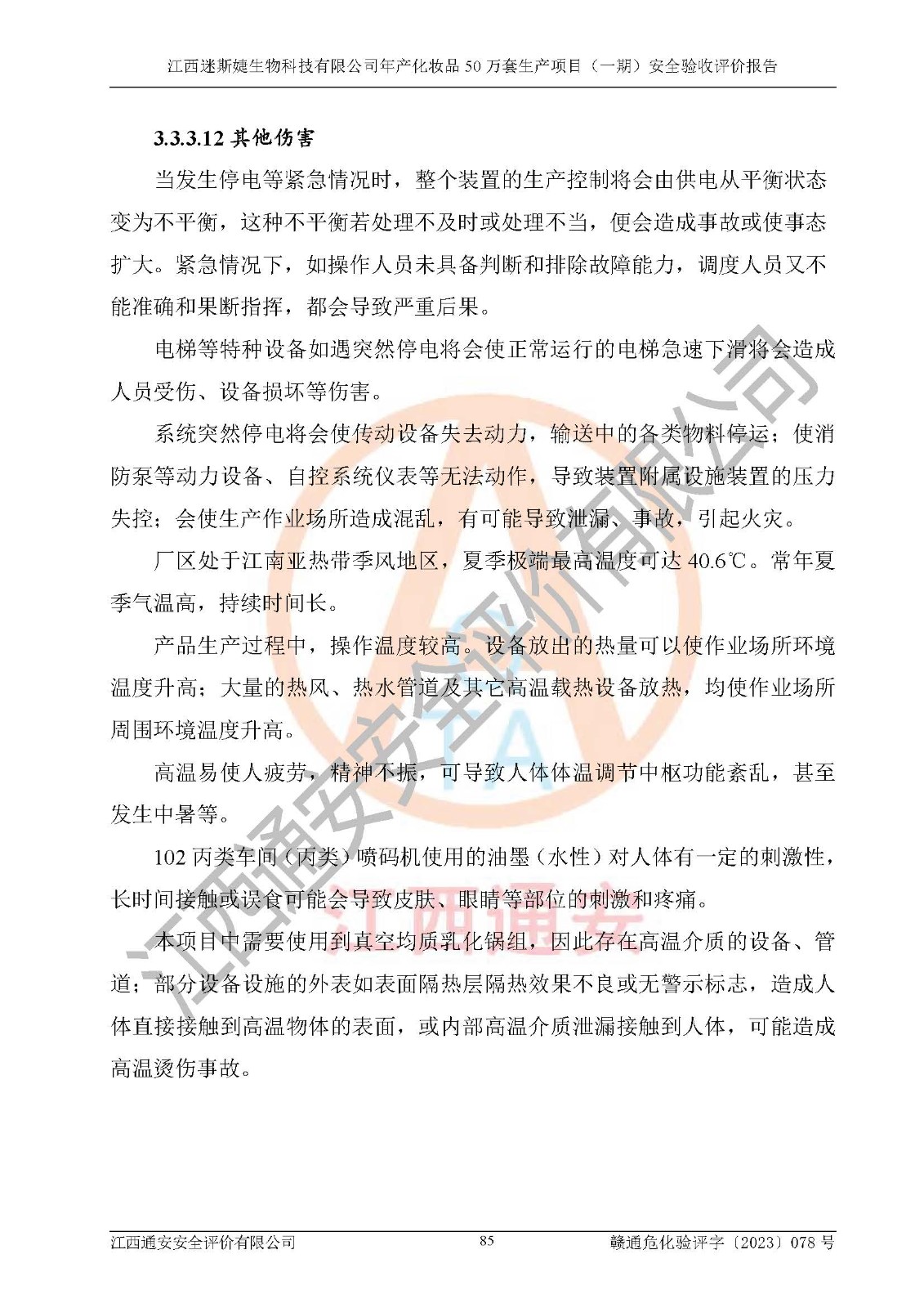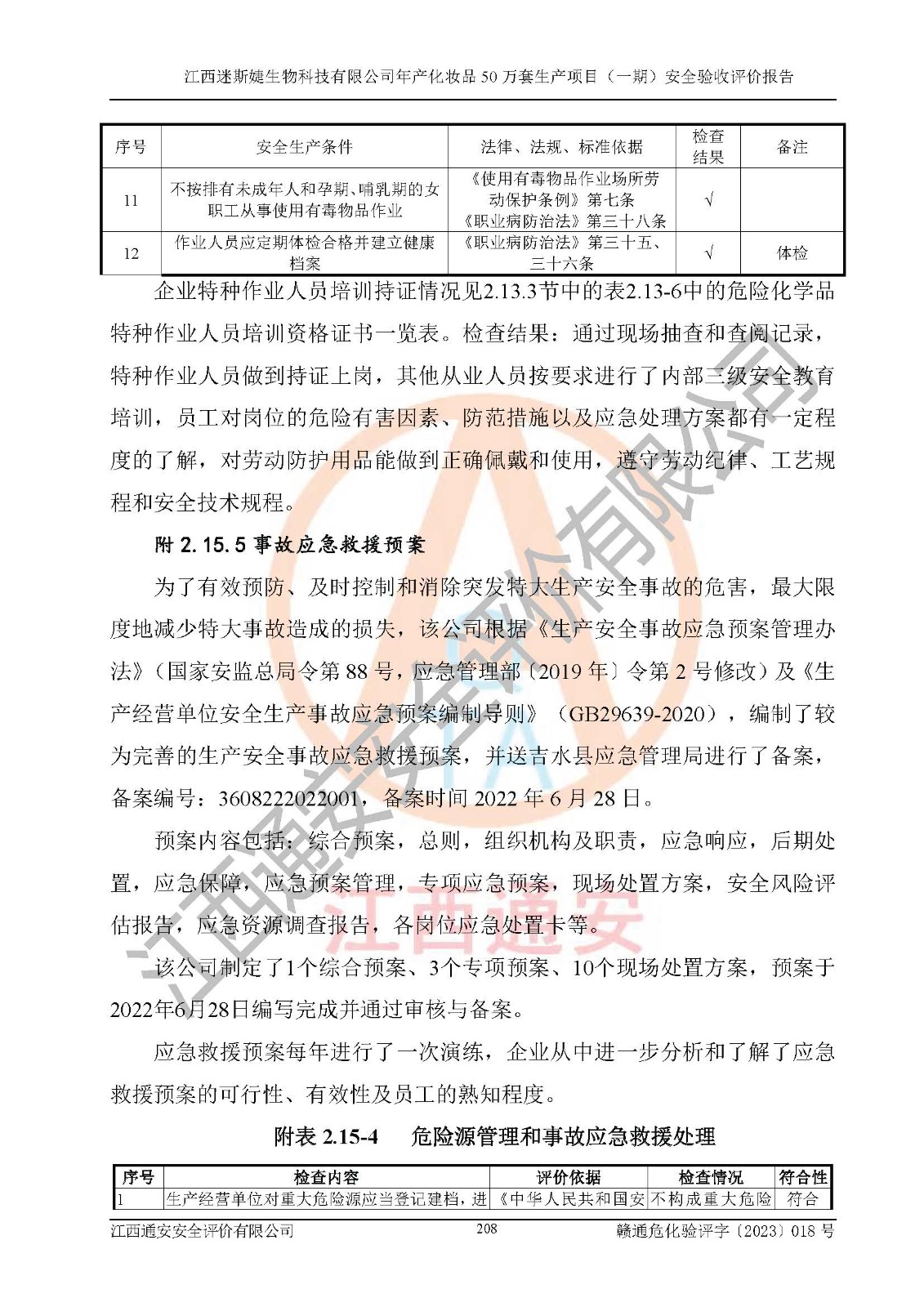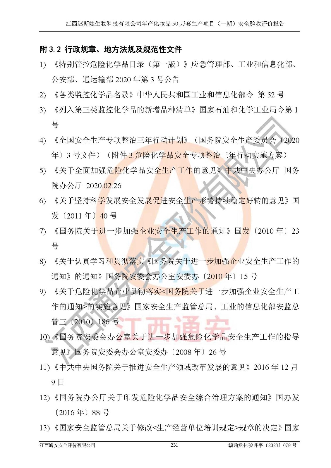 項(xiàng)目名稱 | 江西迷斯婕生物科技有限公司年產(chǎn)化妝品50萬(wàn)套生產(chǎn)項(xiàng)目 (一期)安全驗(yàn)收評(píng)價(jià)報(bào)告 | ||||