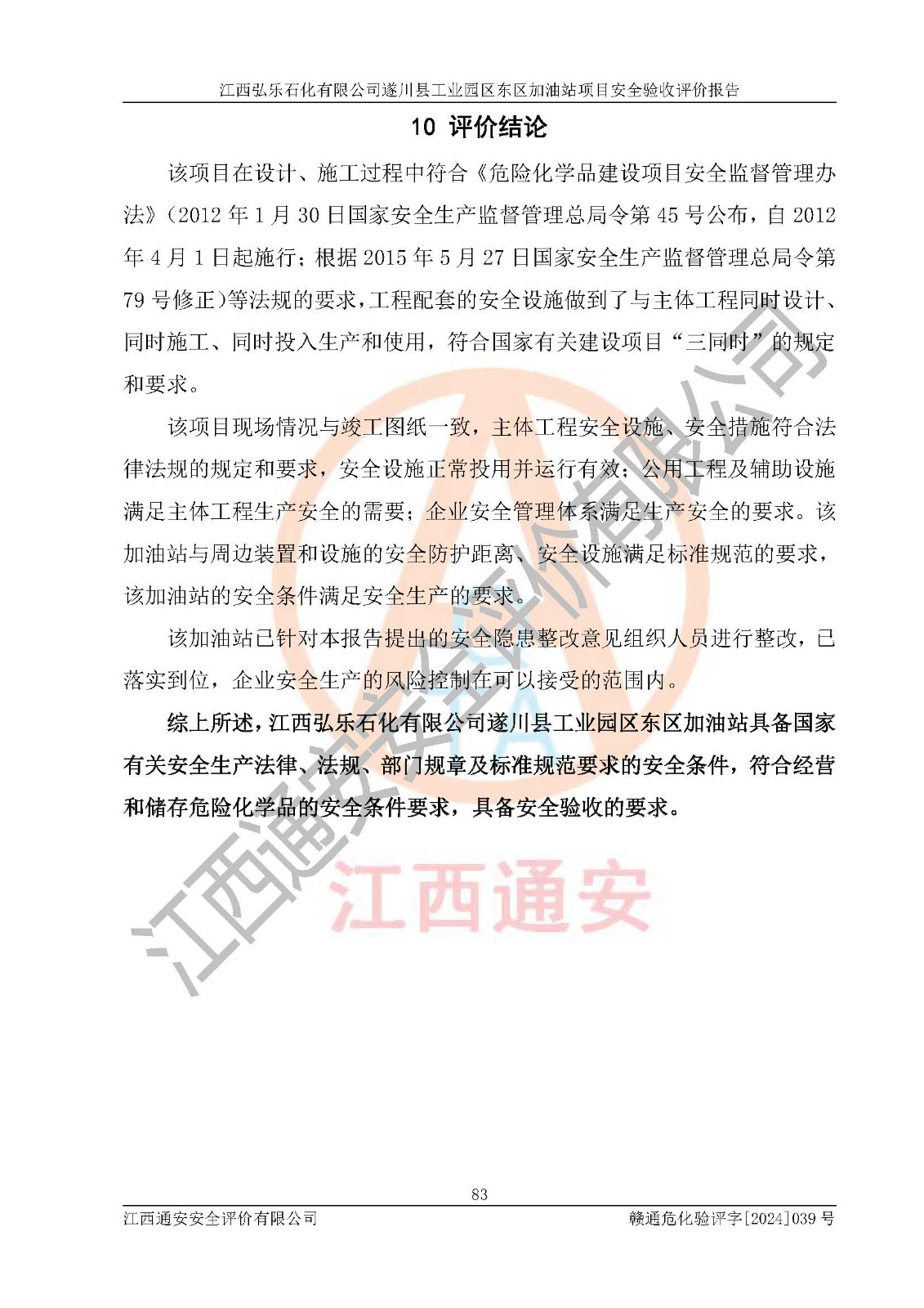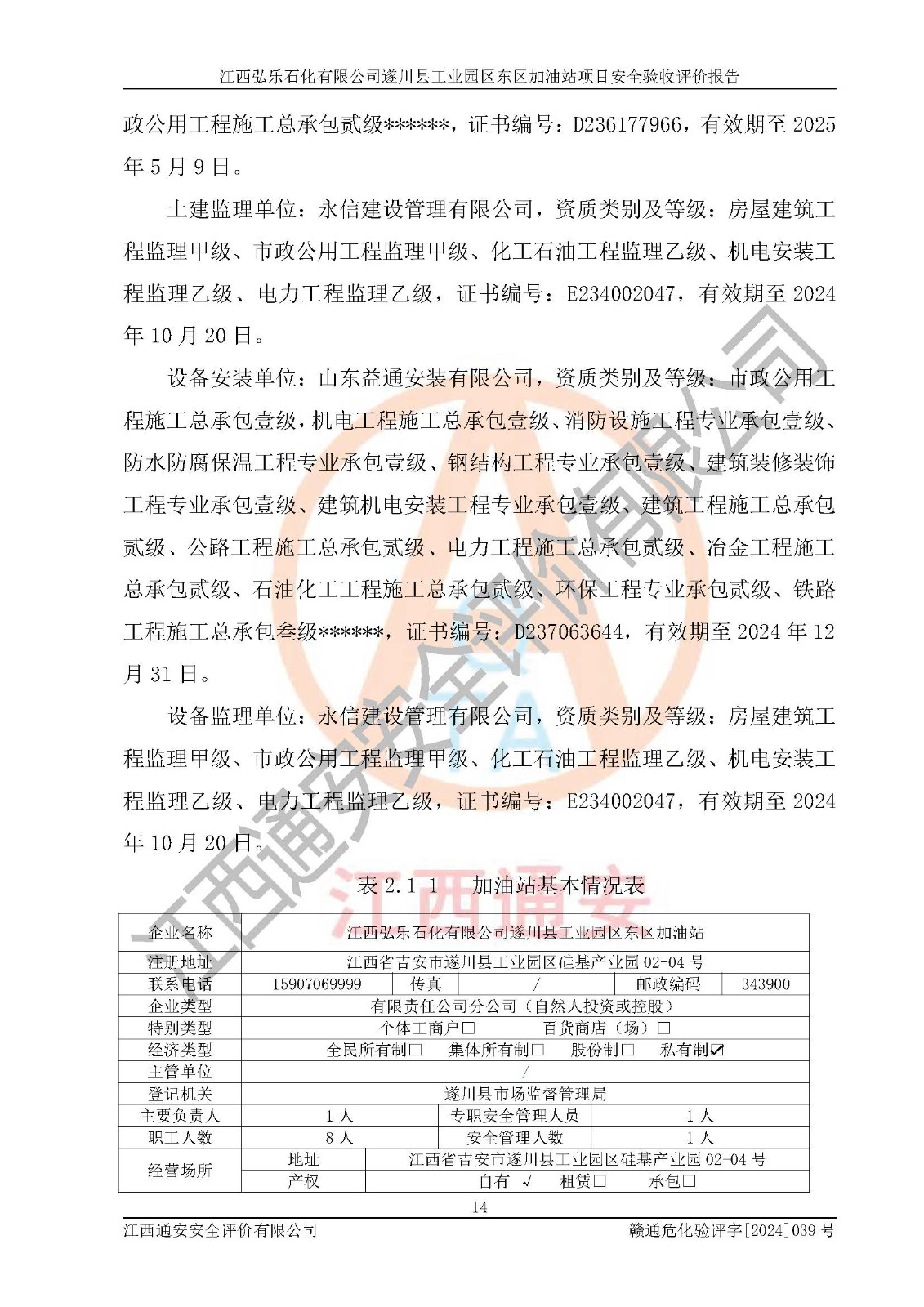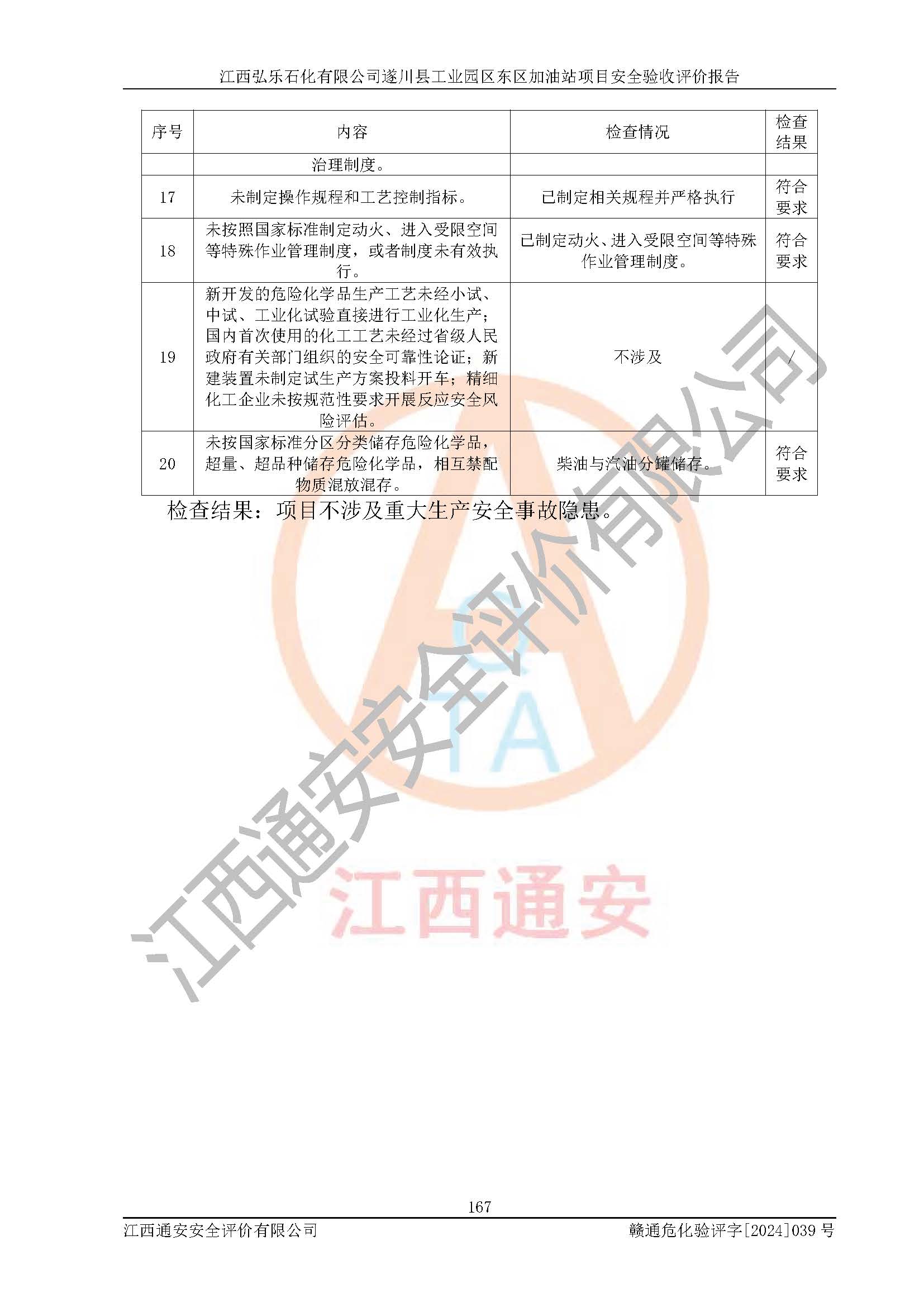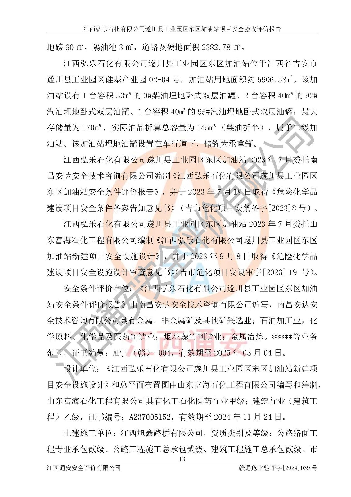 項(xiàng)目名稱(chēng) | 江西弘樂(lè)石化有限公司遂川縣工業(yè)園區(qū)東區(qū)加油站項(xiàng)目安全驗(yàn)收評(píng)價(jià)報(bào)告 | ||||