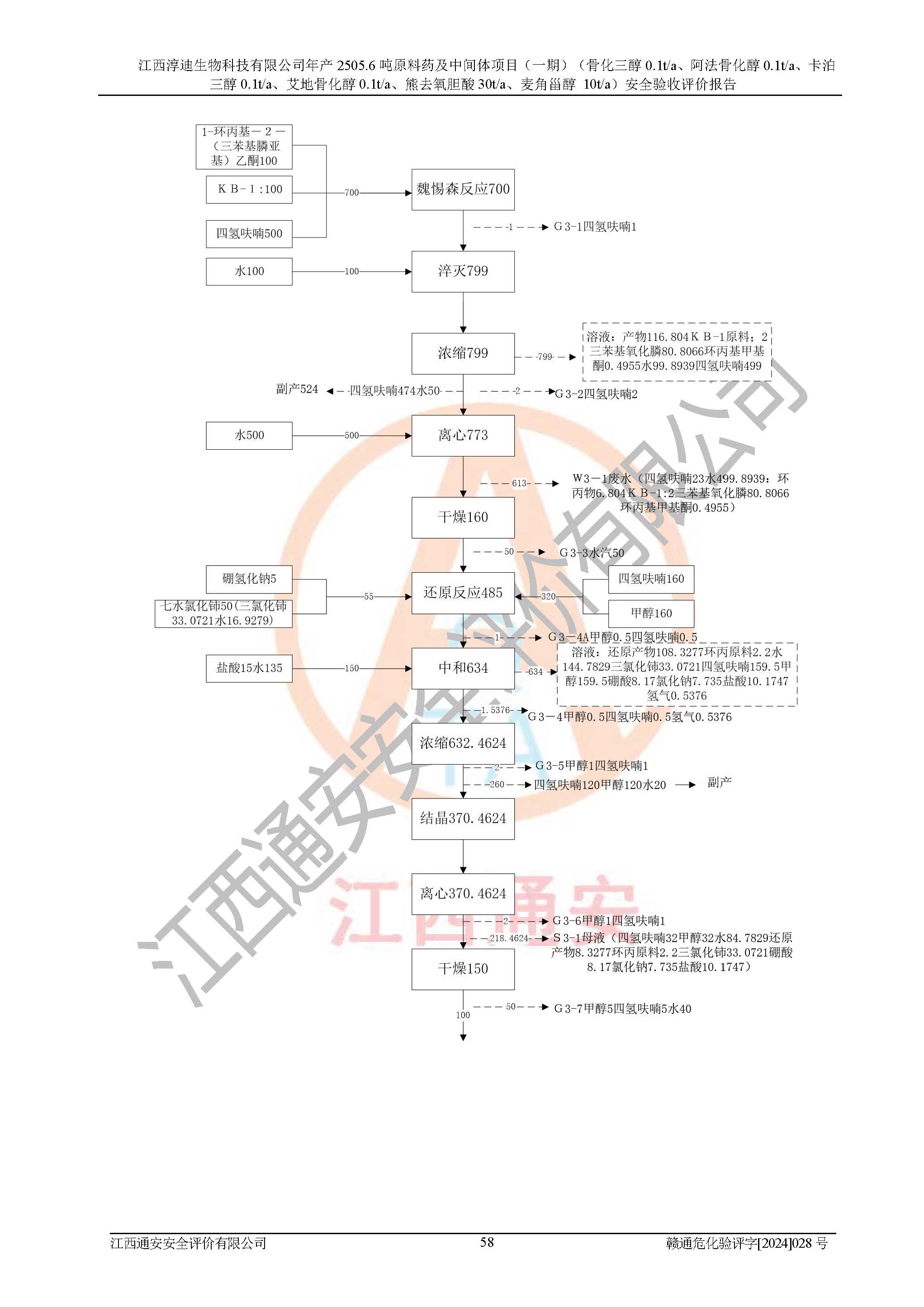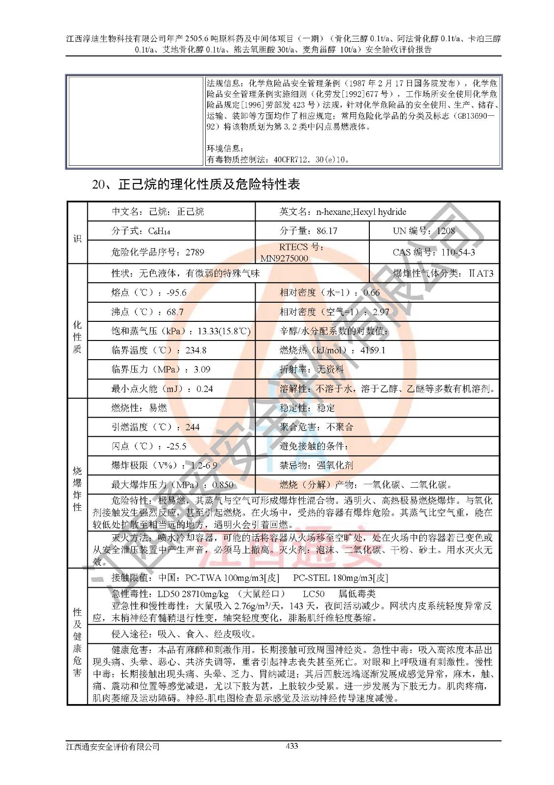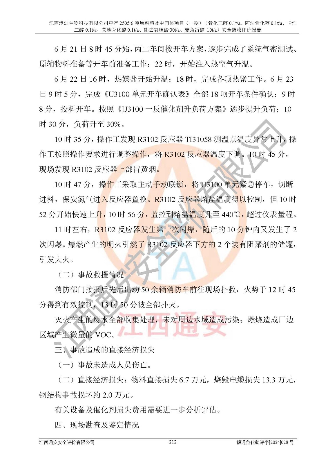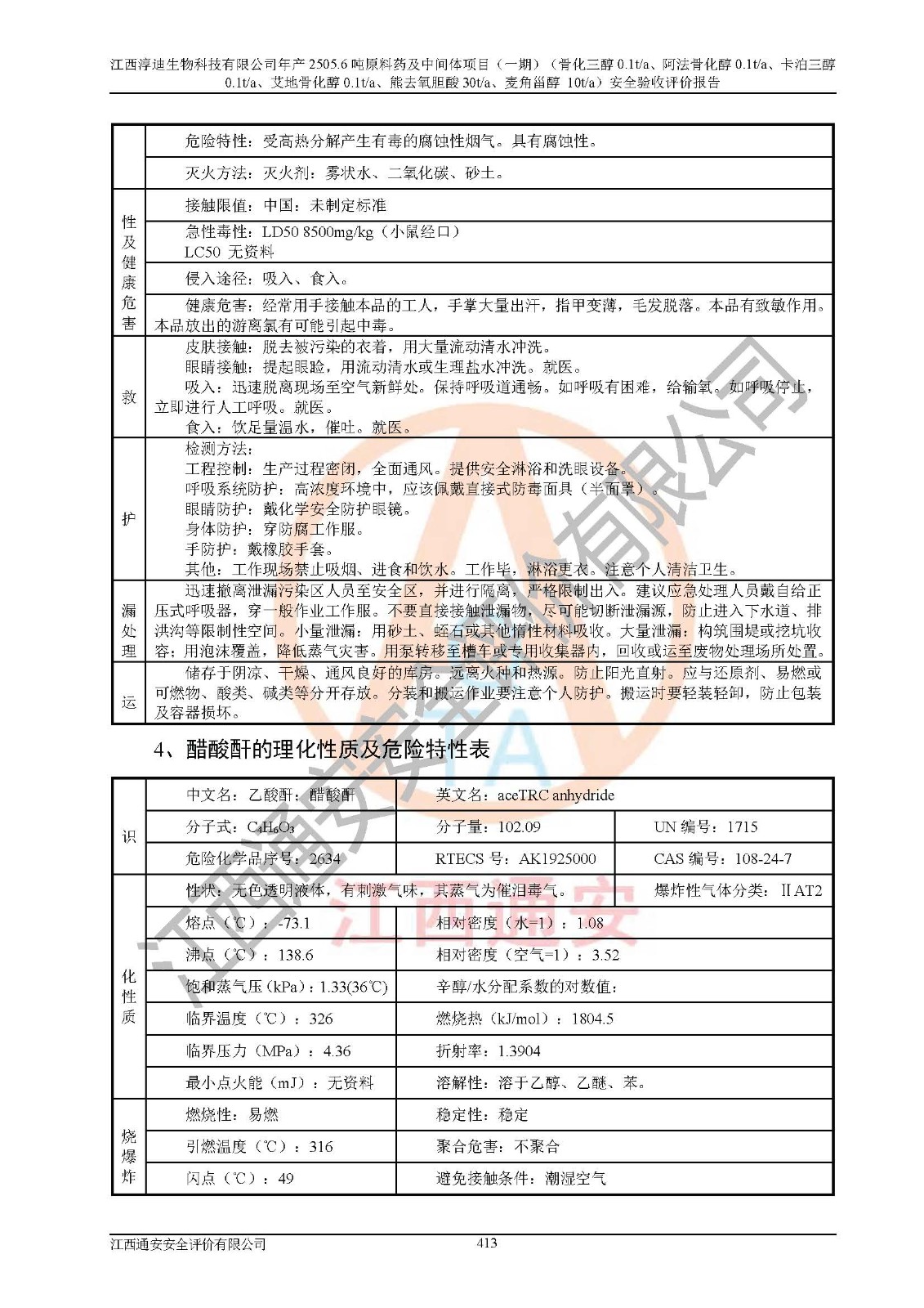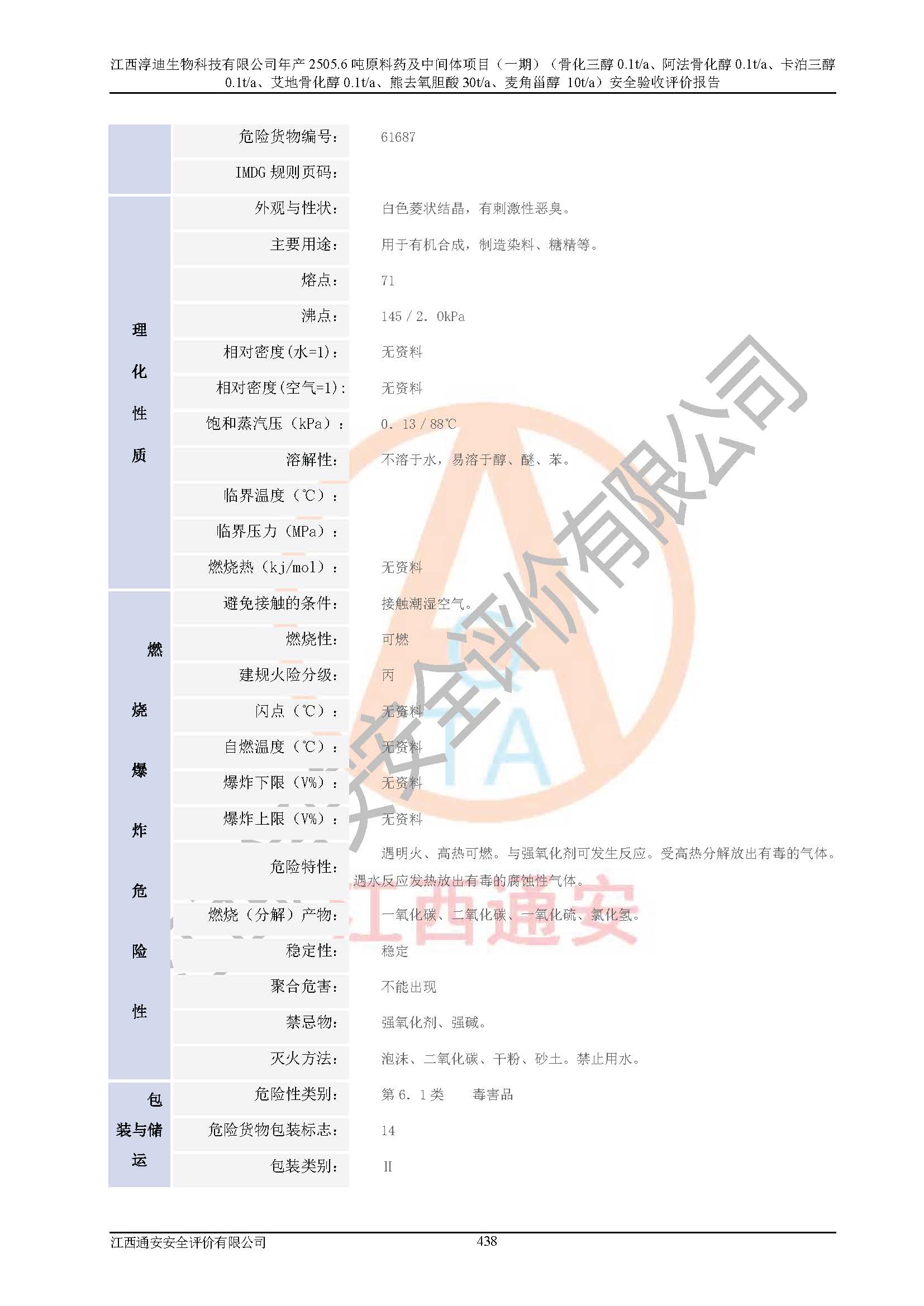項目簡介 | 江西淳迪生物科技有限公司成立于2007年;2018年5月11日,為了適應市場需求和企業(yè)發(fā)展,該公司更名為江西神田生物科技有限公司。2021年4月14日,該公司再次更名為江西淳迪生物科技有限公司。 江西淳迪生物科技有限公司位于江西省**井岡山經濟技術開發(fā)區(qū),成立于2007年4月24日,并取得吉安市市場監(jiān)督管理局井岡山經濟技術開發(fā)區(qū)分局頒發(fā)的營業(yè)執(zhí)照,注冊資本叁仟萬元整,法定**人吳哲華,公司類型為其他有限責任公司,統(tǒng)一社會信用代碼:913608057994888273,經營范圍:許可項目:藥品生產,飼料生產,飼料添加劑生產,食品添加劑生產,獸藥生產(依法須經批準的項目,經相關部門批準后方可開展經營活動)一般項目:進出口代理,技術進出口,貨物進出口,**化學產品制造(不含危險化學品),生物飼料研發(fā),生物化工產品技術研發(fā),畜牧漁業(yè)飼料銷售,飼料添加劑銷售,食品添加劑銷售,飼料原料銷售(除許可業(yè)務外,可自主依法經營法律法規(guī)非禁止或限制的項目)。 江西神田生物科技有限公司于2020年11月11日取得江西省企業(yè)投資項目備案通知書,備案項目名稱:年產2505.6噸原料藥及中間體項目,項目統(tǒng)一代碼:2020-360861-27-03-012513。因江西神田生物科技有限公司于2021年4月14日將公司名稱變更為江西淳迪生物科技有限公司,2021年11月5日。江西淳迪生物科技有限公司將“年產2505.6噸原料藥及中間體項目”信息變更情況告知備案機關,并對備案內容進行修改,重新取得江西省企業(yè)投資項目備案通知書,備案項目名稱:年產2505.6噸原料藥及中間體項目,統(tǒng)一項目代碼:2111-360861-04-05-321685,項目總投資額30000萬元(3億元)。 江西淳迪生物科技有限公司于2021年4月委托江西贛安安全生產科學技術咨詢服務中心編制《江西淳迪生物科技有限公司年產2505.6噸原料藥及中間體項目(一期)安全條件評價報告》并于2021年6月23日通過了吉安市應急管理局組織的安全條件評價審查,審查通過后出具危險化學品建設項目安全條件評價審查意見書(編號為:吉市危化項目安條審字〔2021〕6號)。 江西淳迪生物科技有限公司于2022年12月委托廣東政和工程有限公司編制《江西淳迪生物科技有限公司年產2505.6噸原料藥及中間體項目(一期)安全設施設計》并于2023年2月3日通過了吉安市應急管理局組織的安全設施設計審查,審查通過后出具危險化學品建設項目安全設施設計審查意見書(編號為:吉市?;椖堪苍O審字〔2023〕2號)。 江西淳迪生物科技有限公司于2023年9月5日向井岡山經濟技術開發(fā)區(qū)應急管理局提交了《江西淳迪生物科技有限公司年產2505.6噸原料藥及中間體項目(一期:骨化三醇0.1t/a、阿法骨化醇0.1t/a、卡泊三醇0.1t/a、艾地骨化醇0.1t/a、地屈孕酮5t/a、熊去氧膽酸30t/a、麥角甾醇 10t/a)試生產方案》并取得井岡山經濟技術開發(fā)區(qū)應急管理局出具的《危險化學品建設項目試生產(使用)方案回執(zhí)》(回執(zhí)編號為:井開?;椖總渥帧?/span>2023〕04號),試生產的時間為2023年09月08日至2024年09月07日。 該工程涉及的氫氧化鈉、氯化銅、對甲苯磺酰氯、醋酸、甲醇、乙酸乙酯、正庚烷、四氫呋喃、溴代異戊烷、濃鹽酸、原甲酸三乙酯、對甲苯磺酸、正己烷、叔丁醇鉀、乙腈、三乙胺、醋酐、二氯甲烷、環(huán)己酮、石油醚、甲苯、磷酸、四甲基哌啶氮氧化物、次氯酸鈉溶液(**氯10%)、吡啶、30%鹽酸乙醇、**、鎂屑、硼氫化鈉、氨基鋰、氮氣、氯代異戊烷、氫氣(來自于鎂屑、硼氫化鈉反應后的尾氣或物料意外釋出)屬于危險化學品。其中**(第三類)、醋酐(第二類)、甲苯(第三類)、濃鹽酸(第三類)為易制毒化學品。甲苯、甲醇、乙酸乙酯、氫氣(來自于鎂屑、硼氫化鈉反應后的尾氣或物料意外釋出)屬于重點監(jiān)管的危險化學品。硼氫化鈉、鎂屑屬于易制爆危險化學品。甲醇屬于特別管控危險化學品。 該項目101合成車間一(反應釜U1-R20)及102合成車間二(反應釜U3-R05)麥角甾醇的氧化反應生產步驟涉及的氧化工藝屬于重點監(jiān)管的危險化工工藝。該項目中間體膽固醇的偶聯(lián)反應生產工序及骨化三醇中間體25-羥基脫氫膽固醇的偶聯(lián)反應生產工序涉及的格氏反應,參照重點監(jiān)管的危險化工工藝進行管控。 本項目生產單元和儲存設施單元不構成危險化學品重大危險源。 | |||