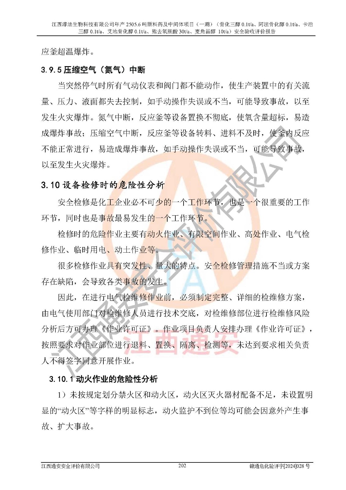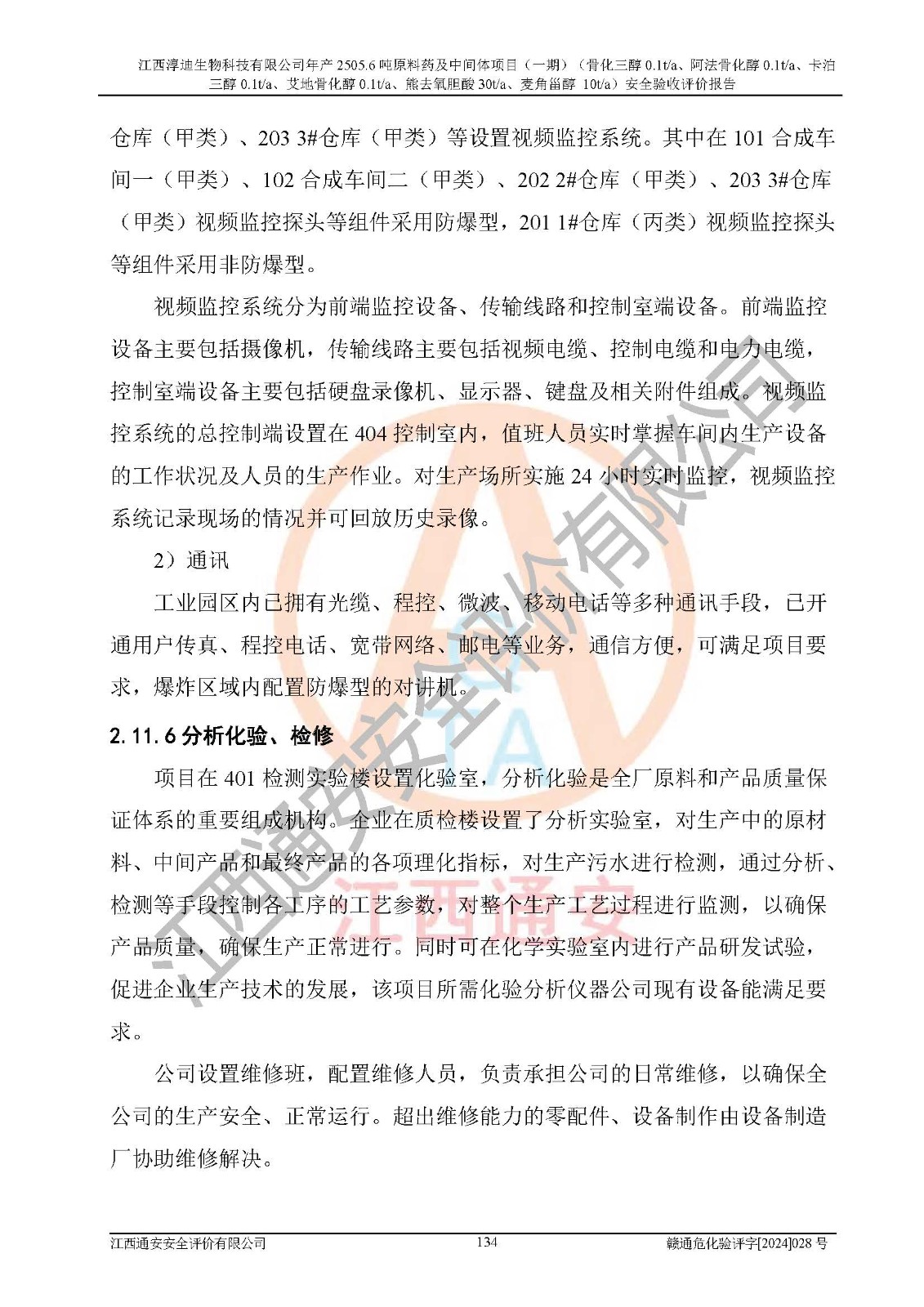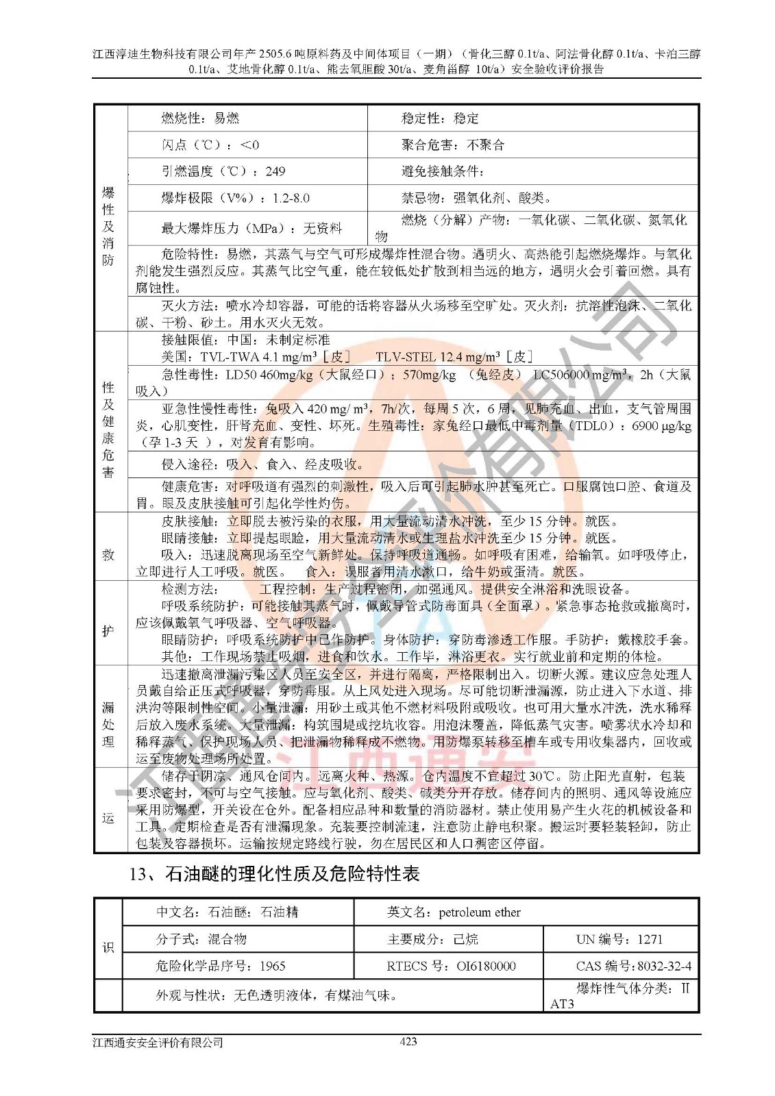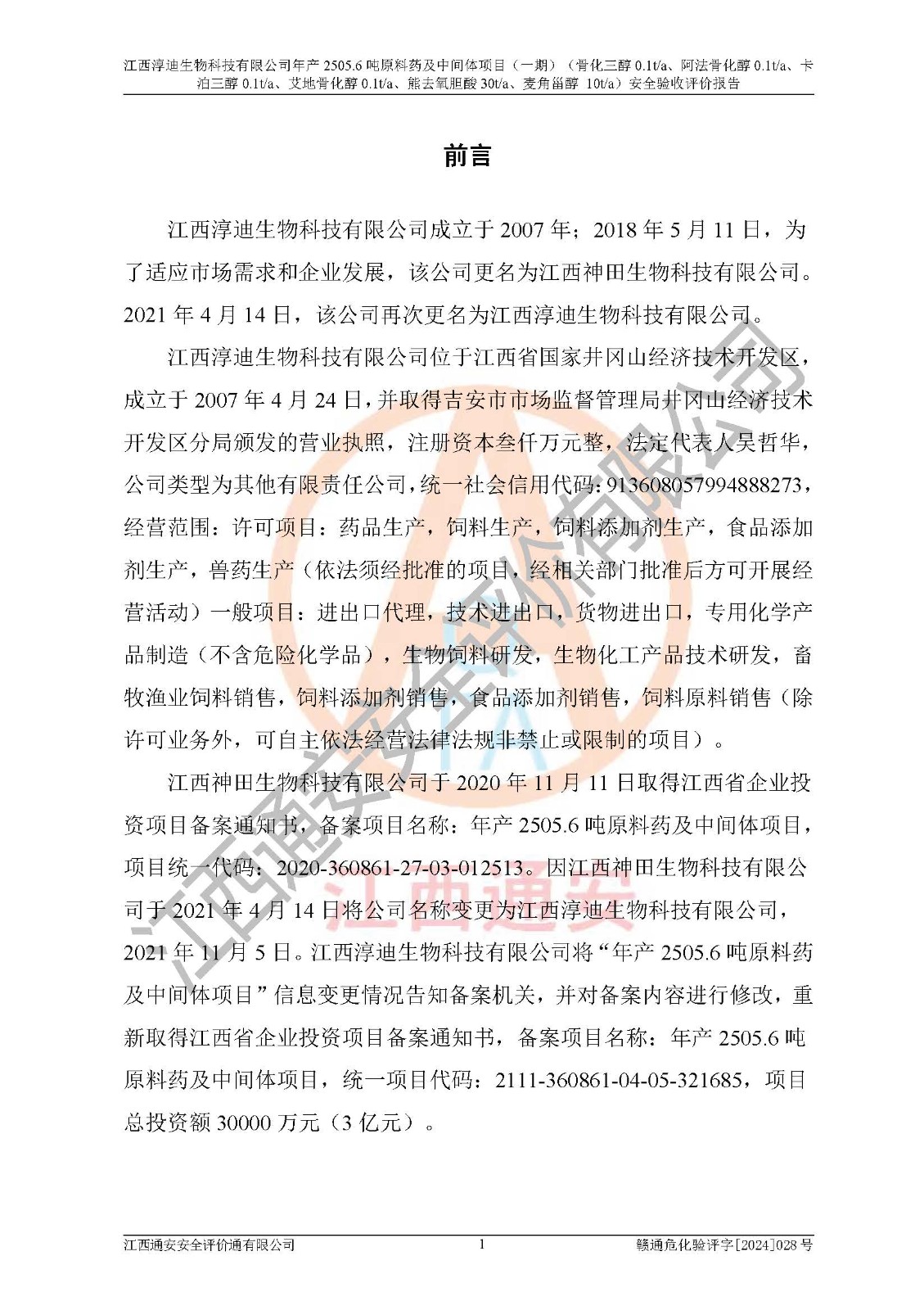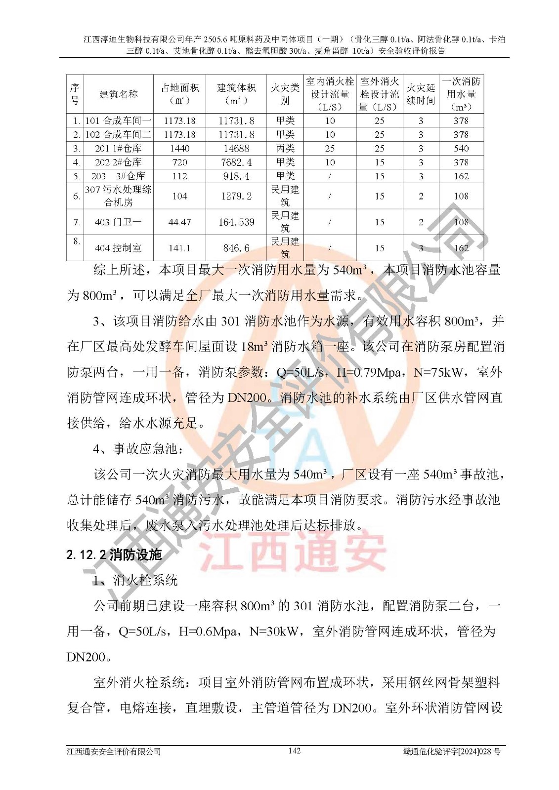項目簡介 | 江西淳迪生物科技有限公司成立于2007年;2018年5月11日,為了適應市場需求和企業(yè)發(fā)展,該公司更名為江西神田生物科技有限公司。2021年4月14日,該公司再次更名為江西淳迪生物科技有限公司。 江西淳迪生物科技有限公司位于江西省**井岡山經濟技術開發(fā)區(qū),成立于2007年4月24日,并取得吉安市市場監(jiān)督管理局井岡山經濟技術開發(fā)區(qū)分局頒發(fā)的營業(yè)執(zhí)照,注冊資本叁仟萬元整,法定**人吳哲華,公司類型為其他有限責任公司,統(tǒng)一社會信用代碼:913608057994888273,經營范圍:許可項目:藥品生產,飼料生產,飼料添加劑生產,食品添加劑生產,獸藥生產(依法須經批準的項目,經相關部門批準后方可開展經營活動)一般項目:進出口代理,技術進出口,貨物進出口,**化學產品制造(不含危險化學品),生物飼料研發(fā),生物化工產品技術研發(fā),畜牧漁業(yè)飼料銷售,飼料添加劑銷售,食品添加劑銷售,飼料原料銷售(除許可業(yè)務外,可自主依法經營法律法規(guī)非禁止或限制的項目)。 江西神田生物科技有限公司于2020年11月11日取得江西省企業(yè)投資項目備案通知書,備案項目名稱:年產2505.6噸原料藥及中間體項目,項目統(tǒng)一代碼:2020-360861-27-03-012513。因江西神田生物科技有限公司于2021年4月14日將公司名稱變更為江西淳迪生物科技有限公司,2021年11月5日。江西淳迪生物科技有限公司將“年產2505.6噸原料藥及中間體項目”信息變更情況告知備案機關,并對備案內容進行修改,重新取得江西省企業(yè)投資項目備案通知書,備案項目名稱:年產2505.6噸原料藥及中間體項目,統(tǒng)一項目代碼:2111-360861-04-05-321685,項目總投資額30000萬元(3億元)。 江西淳迪生物科技有限公司于2021年4月委托江西贛安安全生產科學技術咨詢服務中心編制《江西淳迪生物科技有限公司年產2505.6噸原料藥及中間體項目(一期)安全條件評價報告》并于2021年6月23日通過了吉安市應急管理局組織的安全條件評價審查,審查通過后出具危險化學品建設項目安全條件評價審查意見書(編號為:吉市危化項目安條審字〔2021〕6號)。 江西淳迪生物科技有限公司于2022年12月委托廣東政和工程有限公司編制《江西淳迪生物科技有限公司年產2505.6噸原料藥及中間體項目(一期)安全設施設計》并于2023年2月3日通過了吉安市應急管理局組織的安全設施設計審查,審查通過后出具危險化學品建設項目安全設施設計審查意見書(編號為:吉市?;椖堪苍O審字〔2023〕2號)。 江西淳迪生物科技有限公司于2023年9月5日向井岡山經濟技術開發(fā)區(qū)應急管理局提交了《江西淳迪生物科技有限公司年產2505.6噸原料藥及中間體項目(一期:骨化三醇0.1t/a、阿法骨化醇0.1t/a、卡泊三醇0.1t/a、艾地骨化醇0.1t/a、地屈孕酮5t/a、熊去氧膽酸30t/a、麥角甾醇 10t/a)試生產方案》并取得井岡山經濟技術開發(fā)區(qū)應急管理局出具的《危險化學品建設項目試生產(使用)方案回執(zhí)》(回執(zhí)編號為:井開?;椖總渥帧?/span>2023〕04號),試生產的時間為2023年09月08日至2024年09月07日。 該工程涉及的氫氧化鈉、氯化銅、對甲苯磺酰氯、醋酸、甲醇、乙酸乙酯、正庚烷、四氫呋喃、溴代異戊烷、濃鹽酸、原甲酸三乙酯、對甲苯磺酸、正己烷、叔丁醇鉀、乙腈、三乙胺、醋酐、二氯甲烷、環(huán)己酮、石油醚、甲苯、磷酸、四甲基哌啶氮氧化物、次氯酸鈉溶液(**氯10%)、吡啶、30%鹽酸乙醇、**、鎂屑、硼氫化鈉、氨基鋰、氮氣、氯代異戊烷、氫氣(來自于鎂屑、硼氫化鈉反應后的尾氣或物料意外釋出)屬于危險化學品。其中**(第三類)、醋酐(第二類)、甲苯(第三類)、濃鹽酸(第三類)為易制毒化學品。甲苯、甲醇、乙酸乙酯、氫氣(來自于鎂屑、硼氫化鈉反應后的尾氣或物料意外釋出)屬于重點監(jiān)管的危險化學品。硼氫化鈉、鎂屑屬于易制爆危險化學品。甲醇屬于特別管控危險化學品。 該項目101合成車間一(反應釜U1-R20)及102合成車間二(反應釜U3-R05)麥角甾醇的氧化反應生產步驟涉及的氧化工藝屬于重點監(jiān)管的危險化工工藝。該項目中間體膽固醇的偶聯(lián)反應生產工序及骨化三醇中間體25-羥基脫氫膽固醇的偶聯(lián)反應生產工序涉及的格氏反應,參照重點監(jiān)管的危險化工工藝進行管控。 本項目生產單元和儲存設施單元不構成危險化學品重大危險源。 | |||