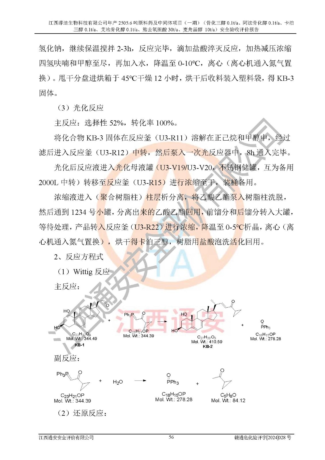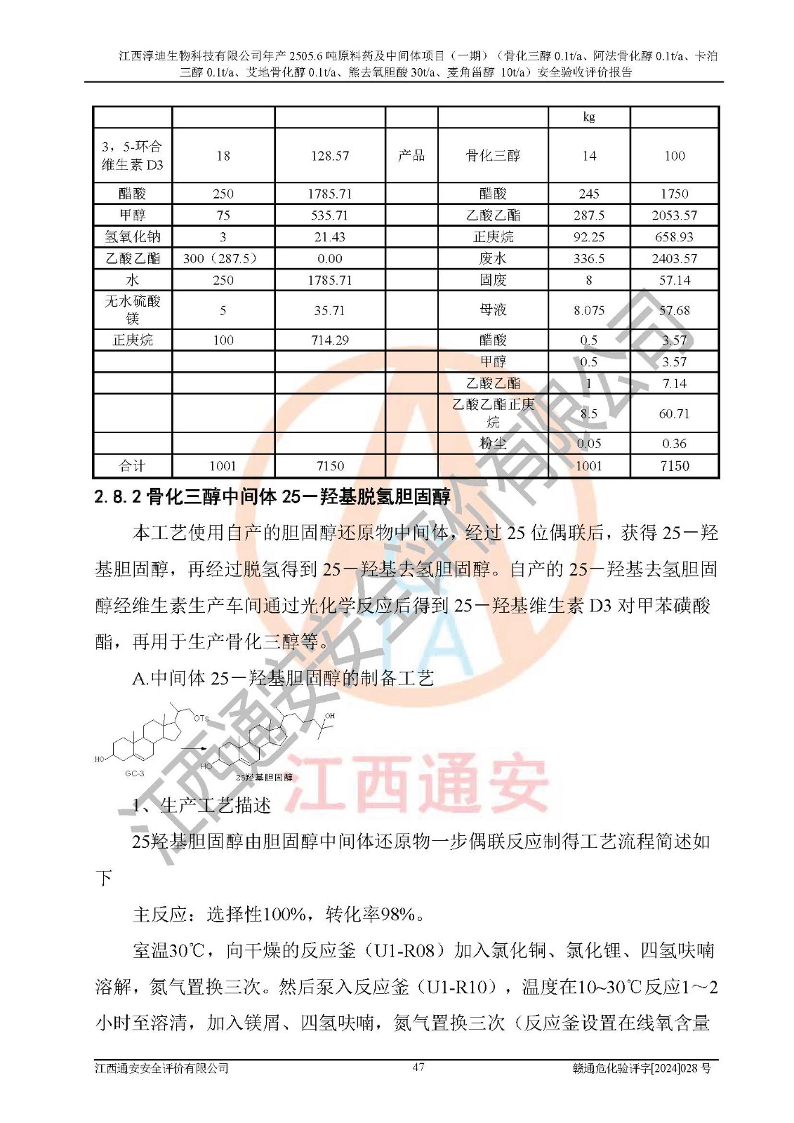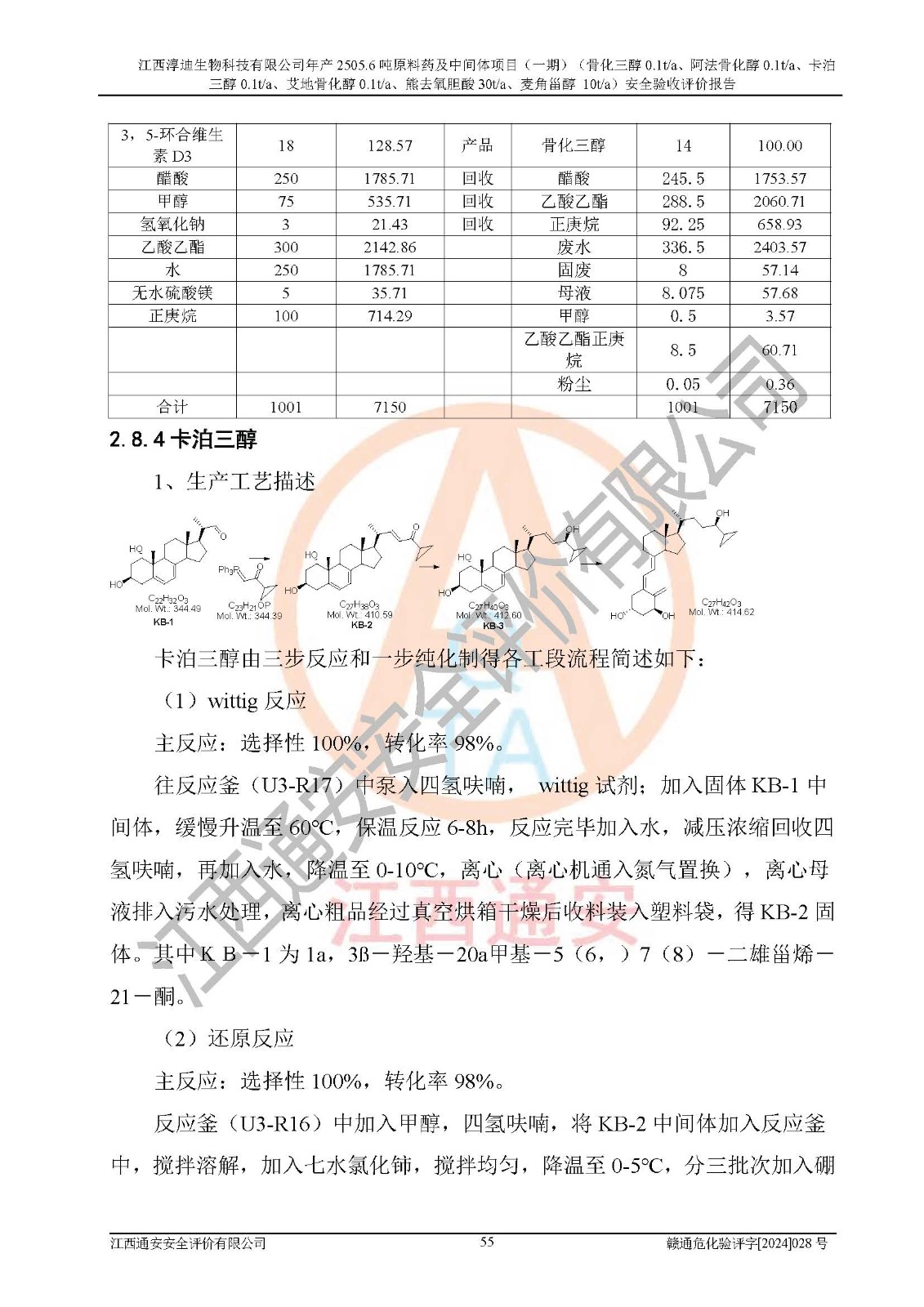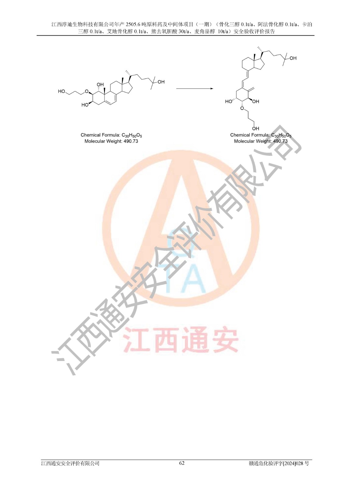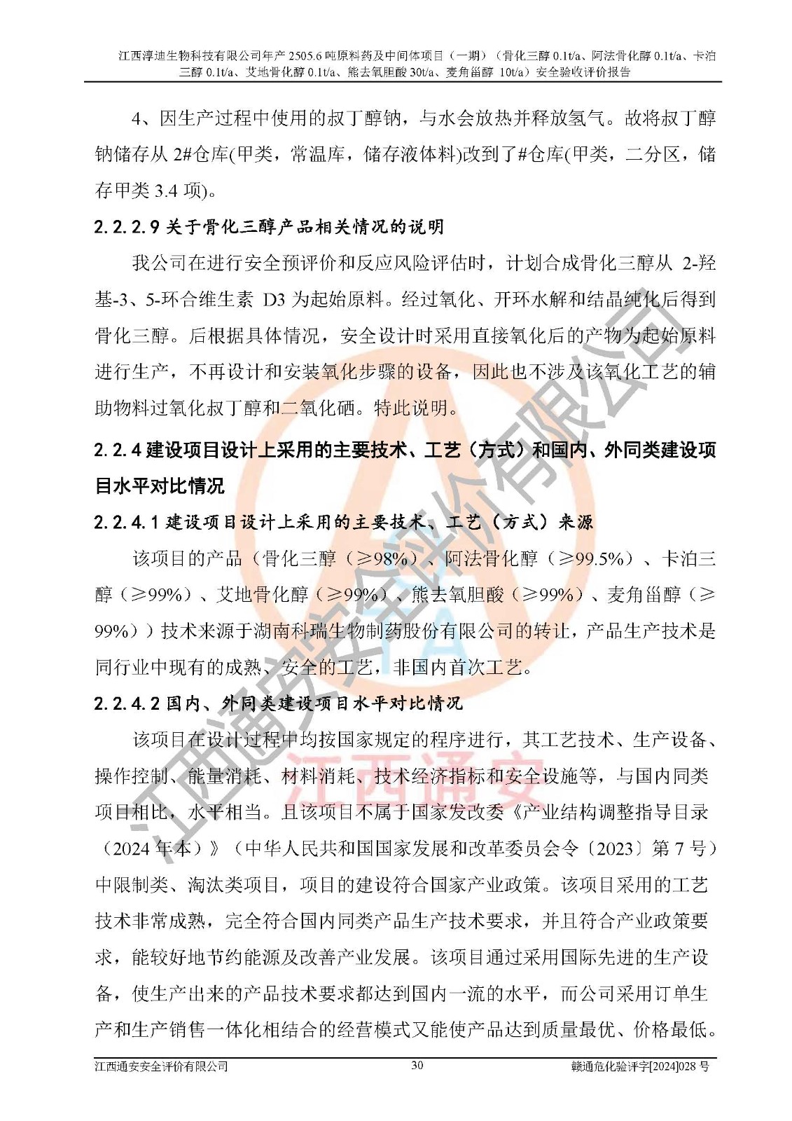 評價報告名稱 | 江西淳迪生物科技有限公司年產2505.6噸原料藥及中間體項目(一期)(骨化三醇0.1t/a、阿法骨化醇0.1t/a、卡泊三醇0.1t/a、艾地骨化醇0.1t/a、熊去氧膽酸30t/a、麥角甾醇 10t/a)安全驗收評價報告 | |||