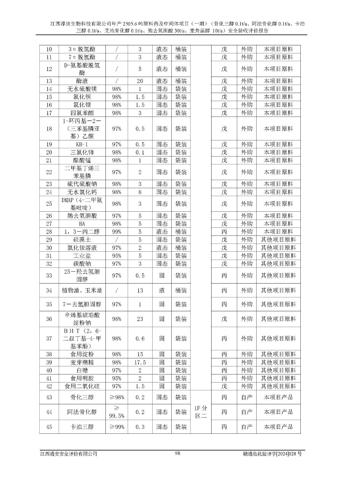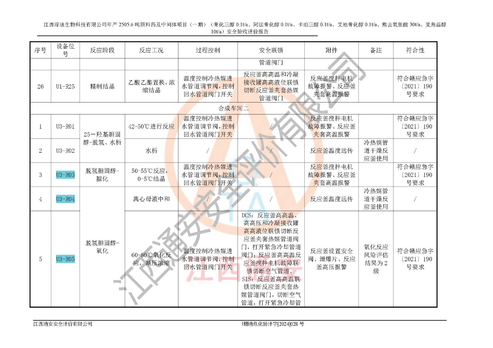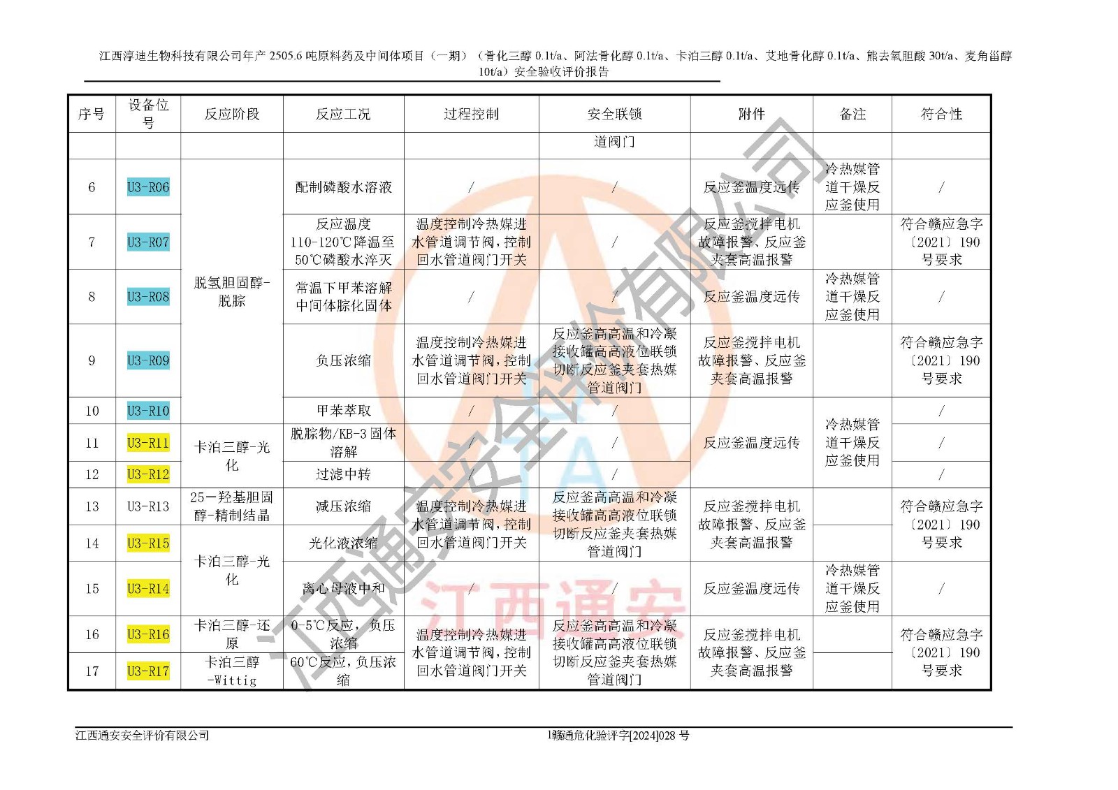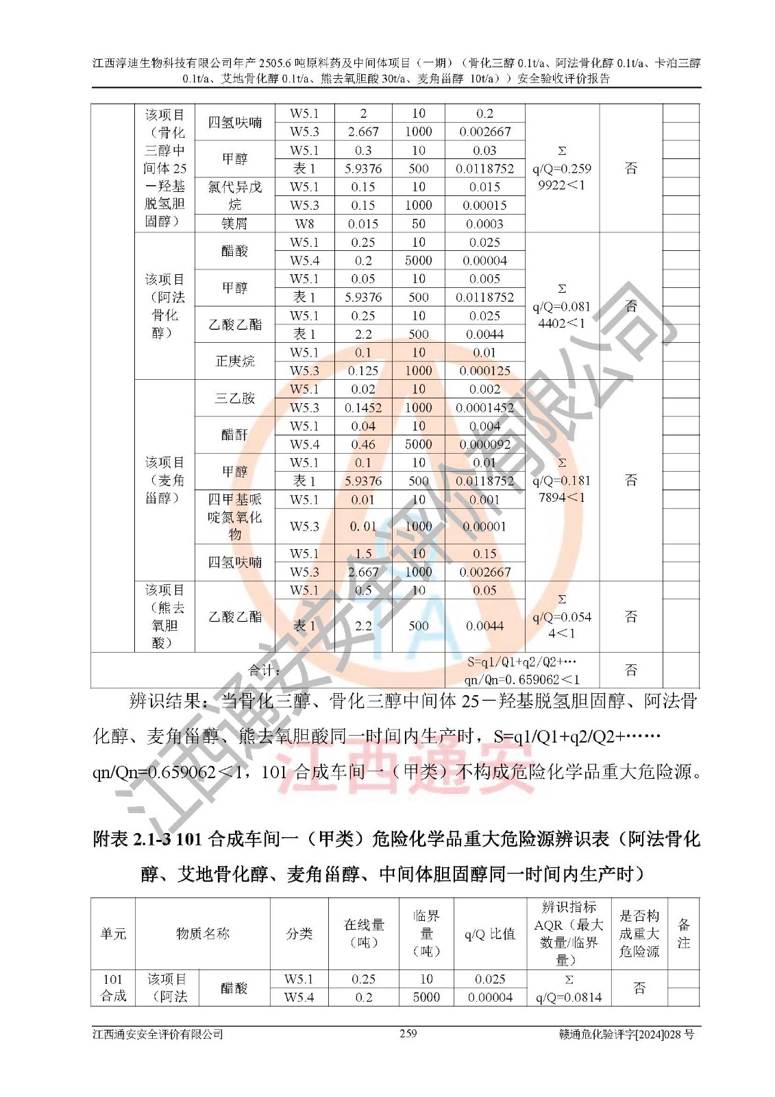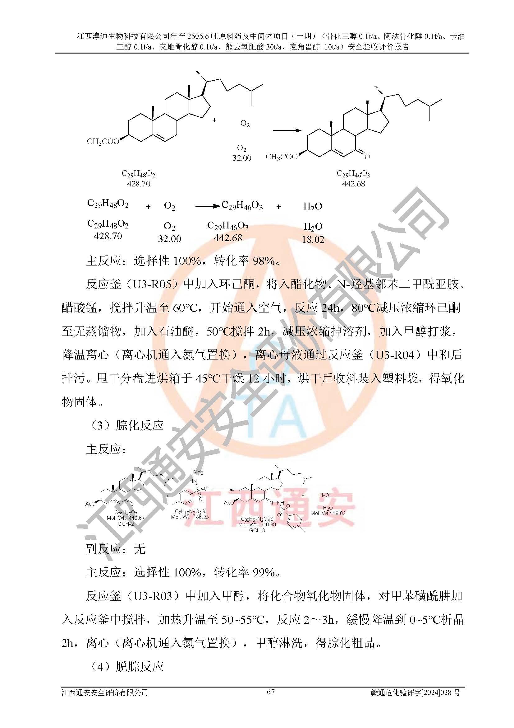 評價報告名稱 | 江西淳迪生物科技有限公司年產2505.6噸原料藥及中間體項目(一期)(骨化三醇0.1t/a、阿法骨化醇0.1t/a、卡泊三醇0.1t/a、艾地骨化醇0.1t/a、熊去氧膽酸30t/a、麥角甾醇 10t/a)安全驗收評價報告 | |||