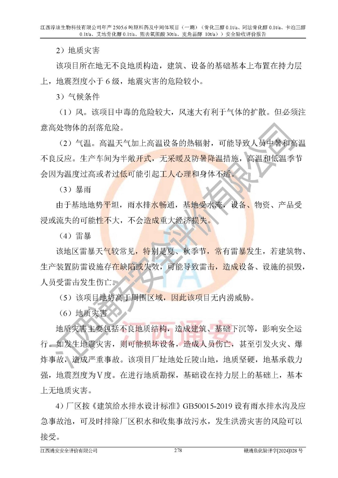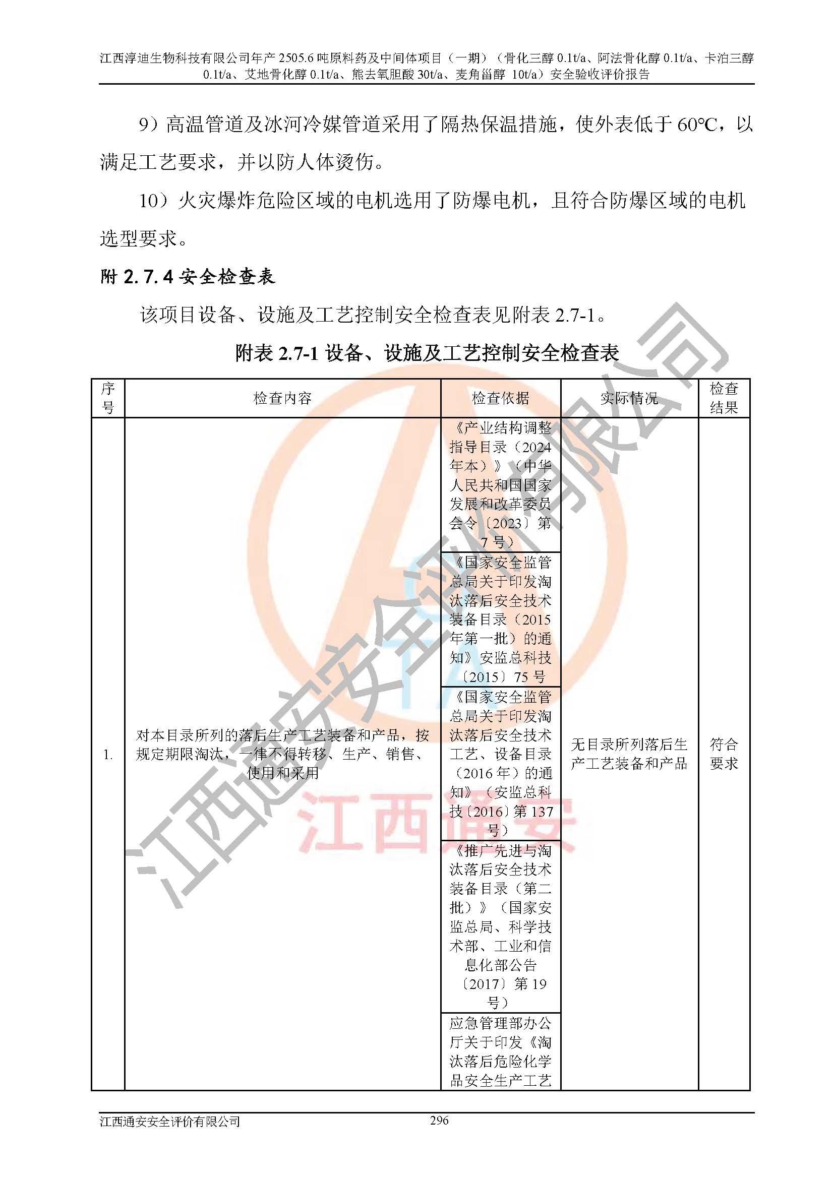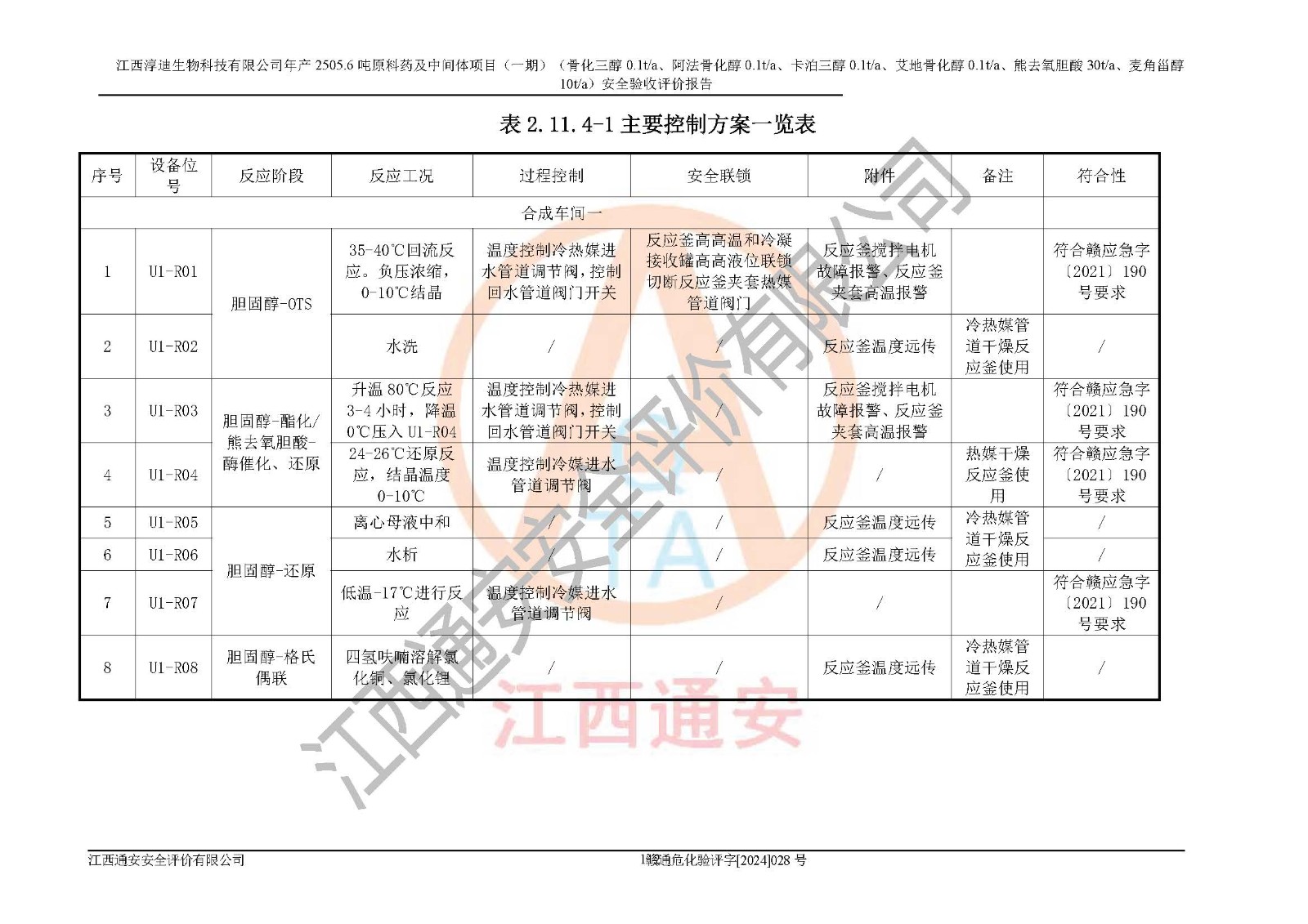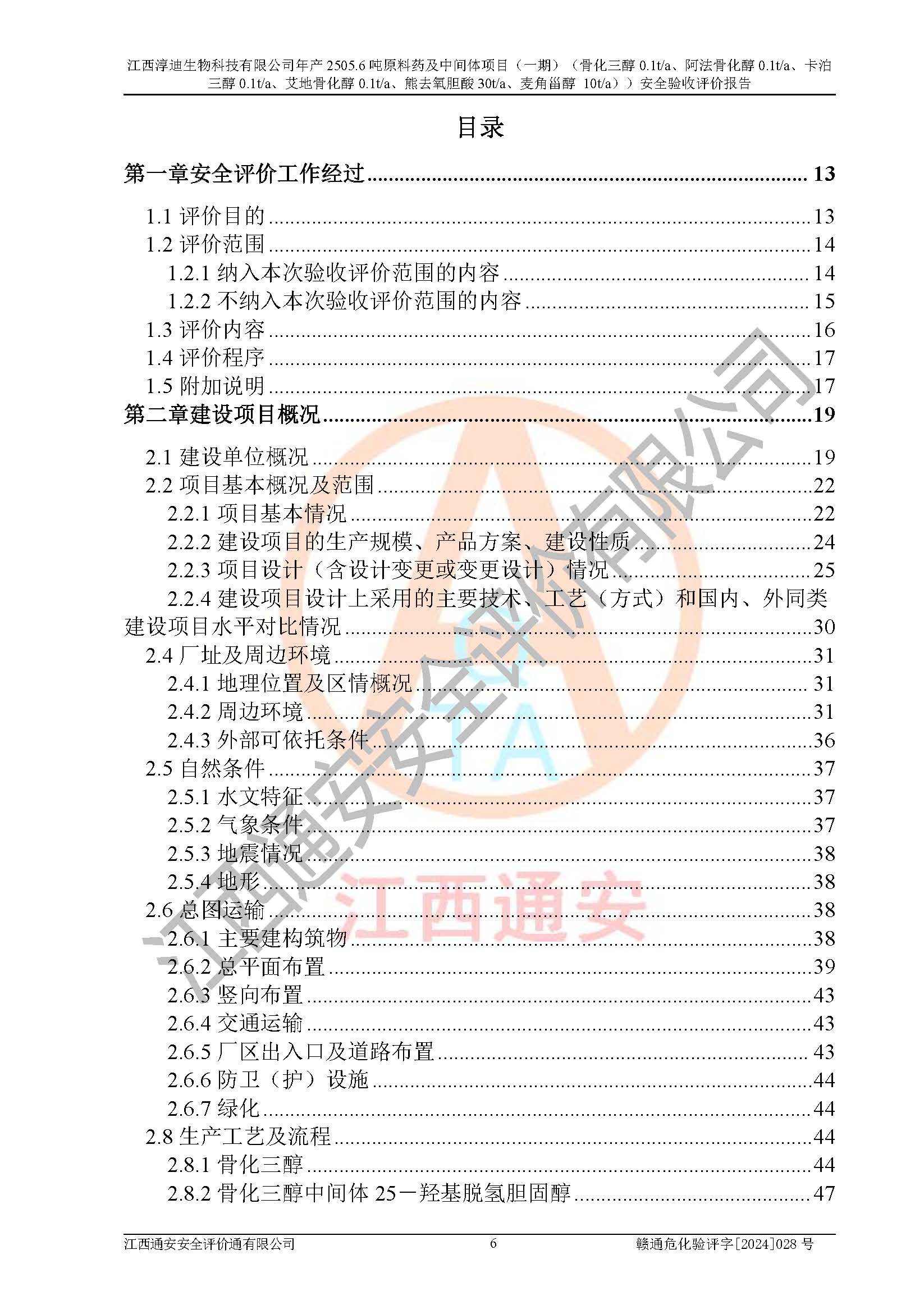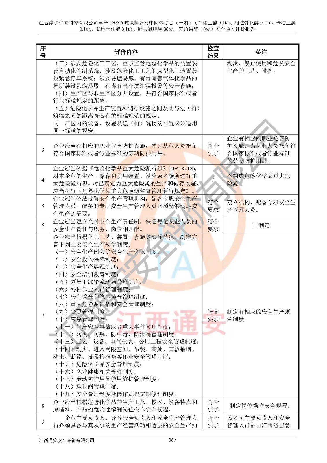 評價報告名稱 | 江西淳迪生物科技有限公司年產2505.6噸原料藥及中間體項目(一期)(骨化三醇0.1t/a、阿法骨化醇0.1t/a、卡泊三醇0.1t/a、艾地骨化醇0.1t/a、熊去氧膽酸30t/a、麥角甾醇 10t/a)安全驗收評價報告 | |||