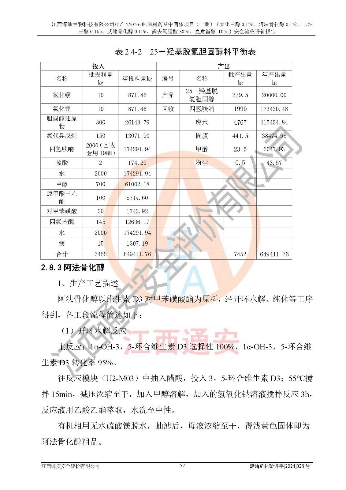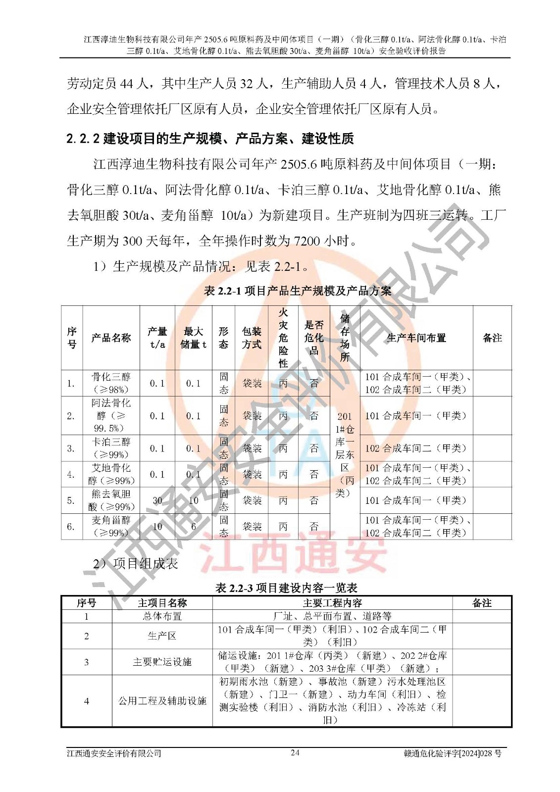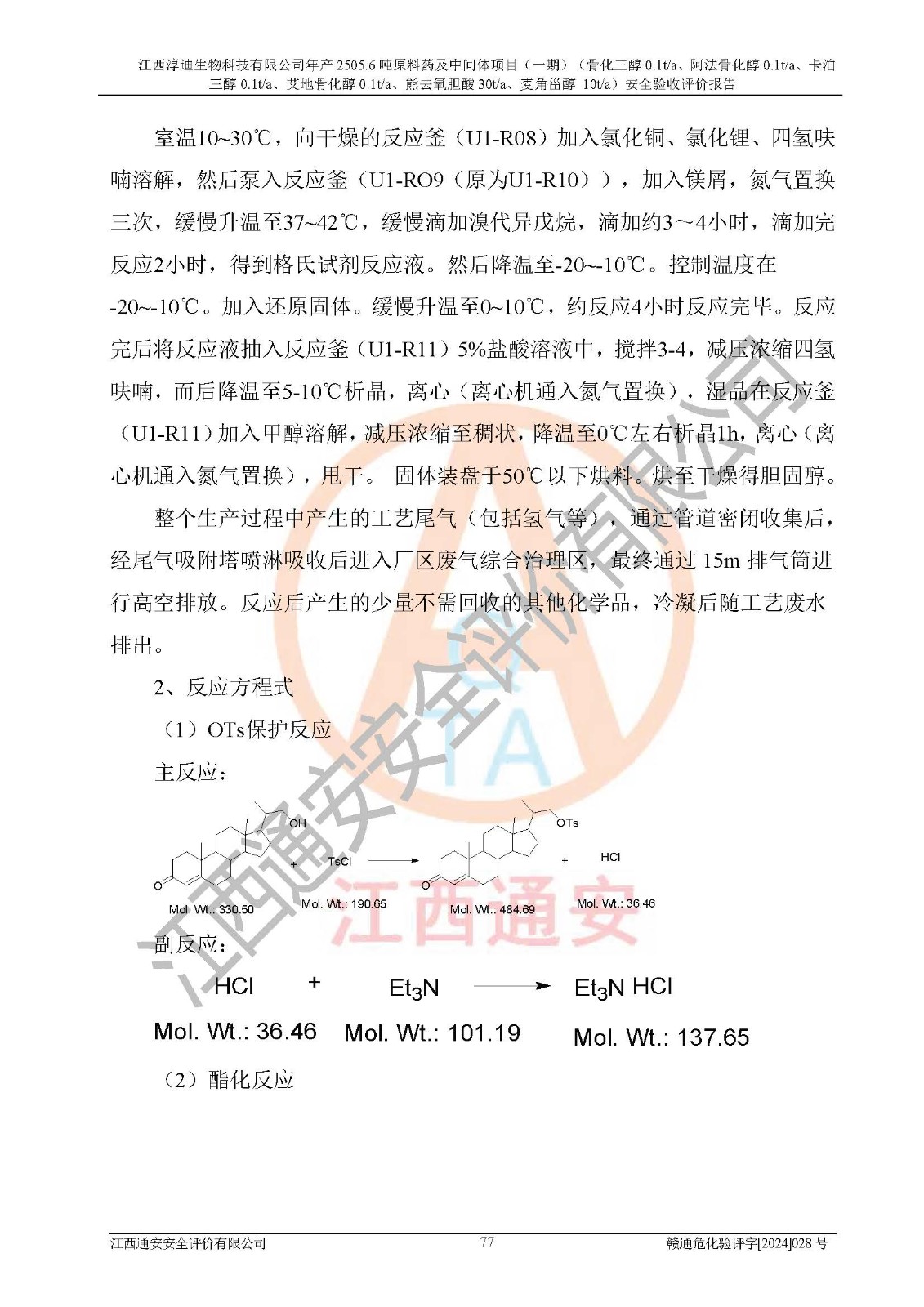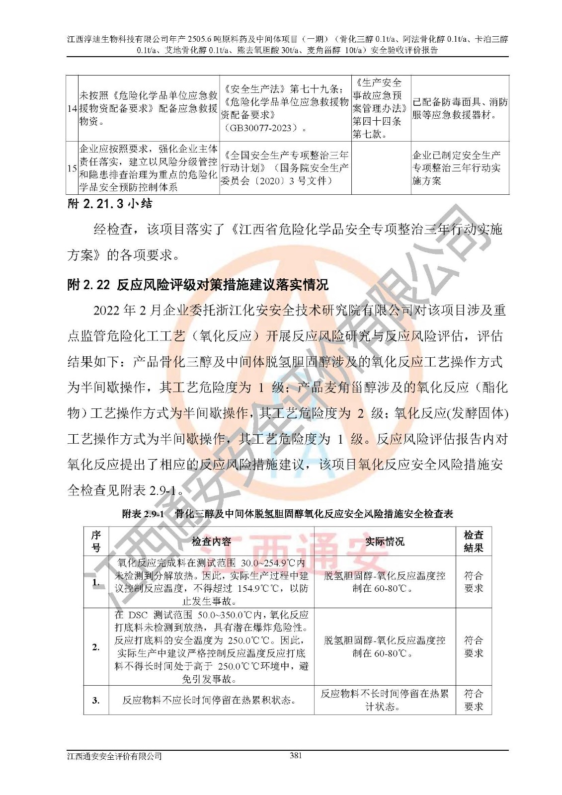 評價報告名稱 | 江西淳迪生物科技有限公司年產2505.6噸原料藥及中間體項目(一期)(骨化三醇0.1t/a、阿法骨化醇0.1t/a、卡泊三醇0.1t/a、艾地骨化醇0.1t/a、熊去氧膽酸30t/a、麥角甾醇 10t/a)安全驗收評價報告 | |||