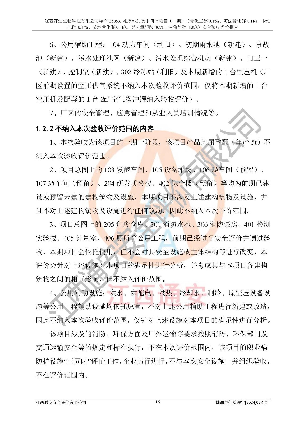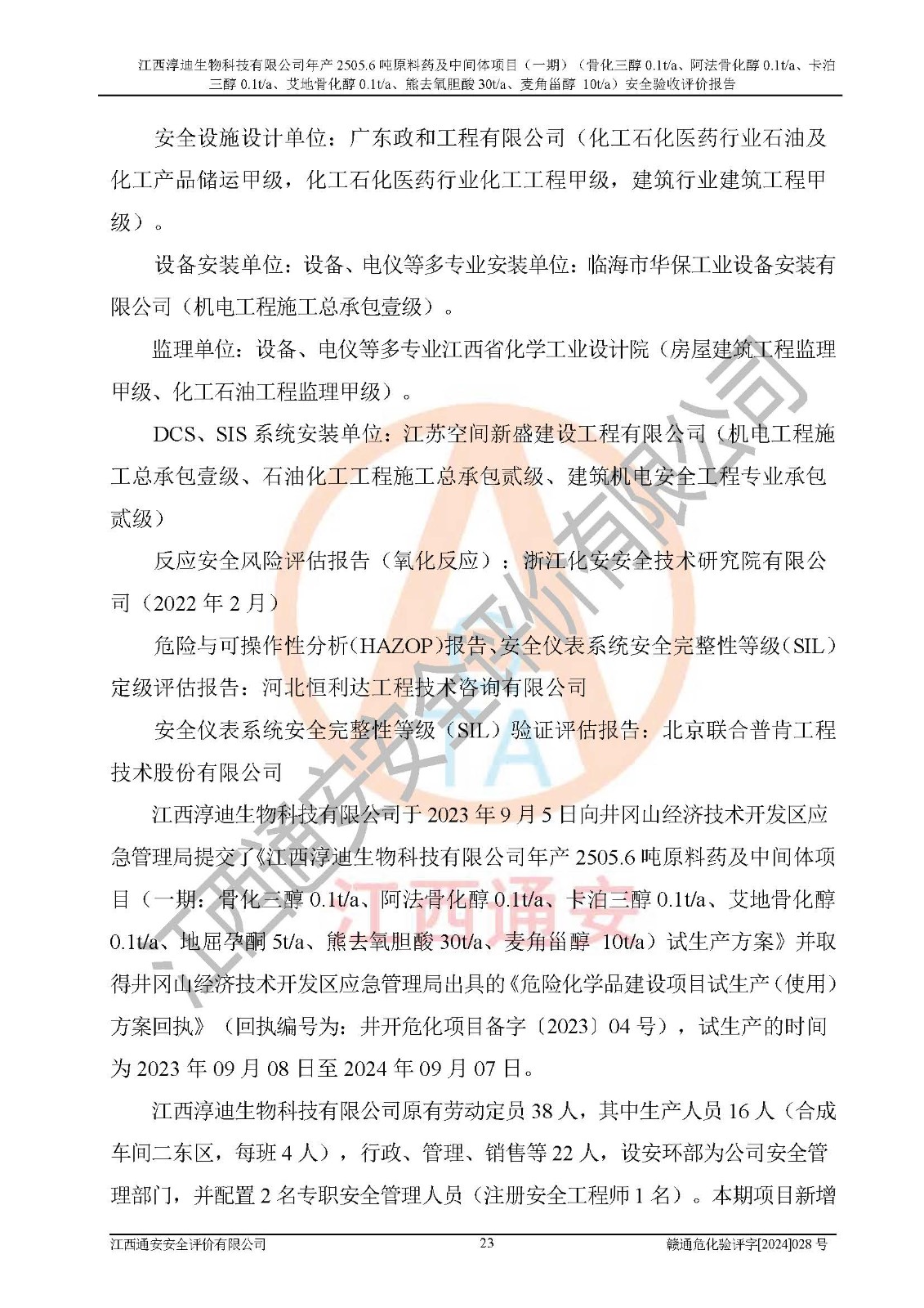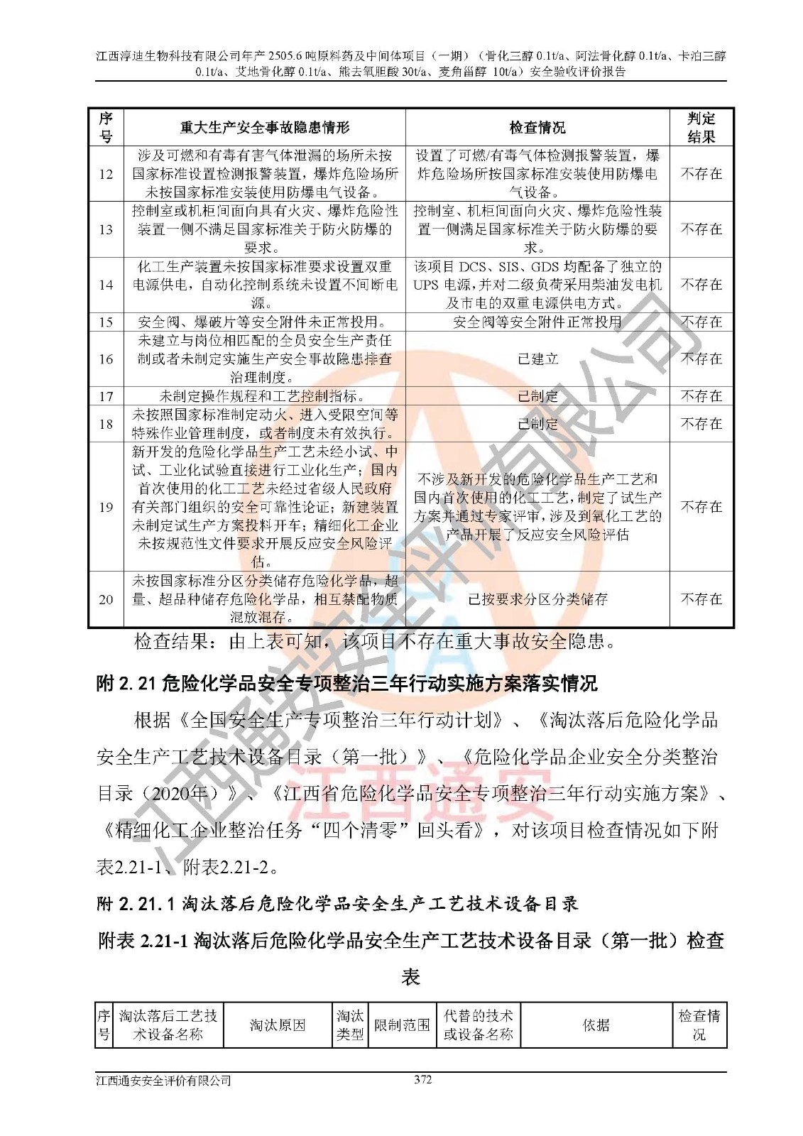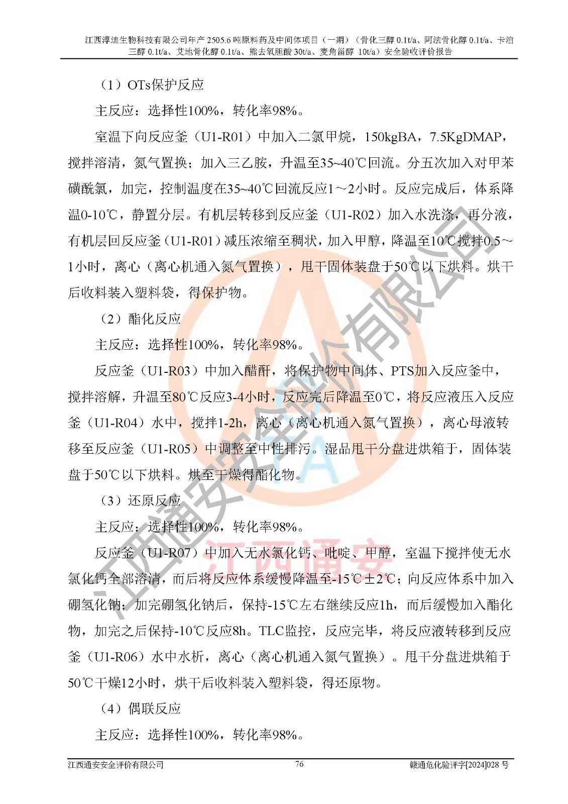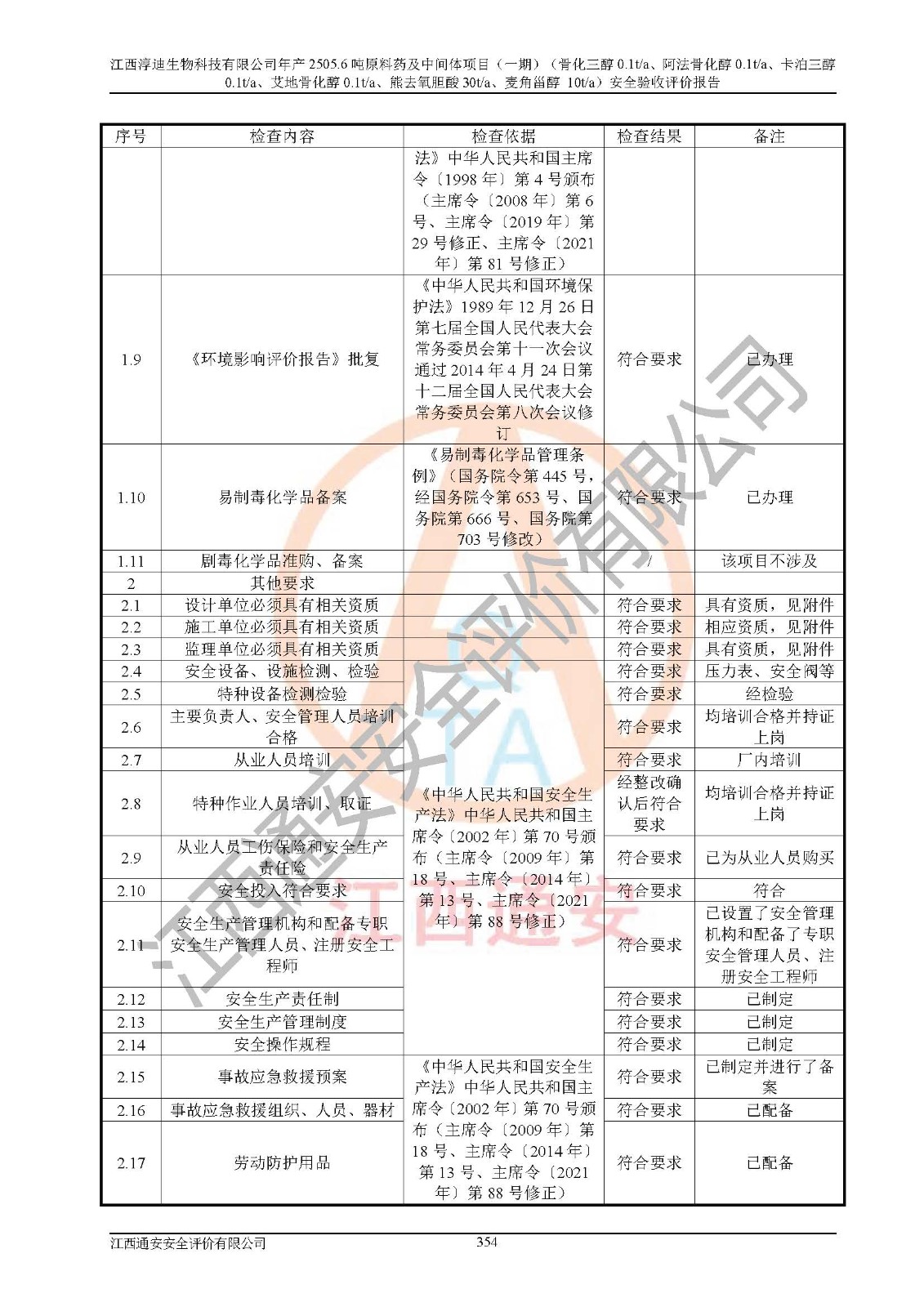 評價報告名稱 | 江西淳迪生物科技有限公司年產2505.6噸原料藥及中間體項目(一期)(骨化三醇0.1t/a、阿法骨化醇0.1t/a、卡泊三醇0.1t/a、艾地骨化醇0.1t/a、熊去氧膽酸30t/a、麥角甾醇 10t/a)安全驗收評價報告 | |||