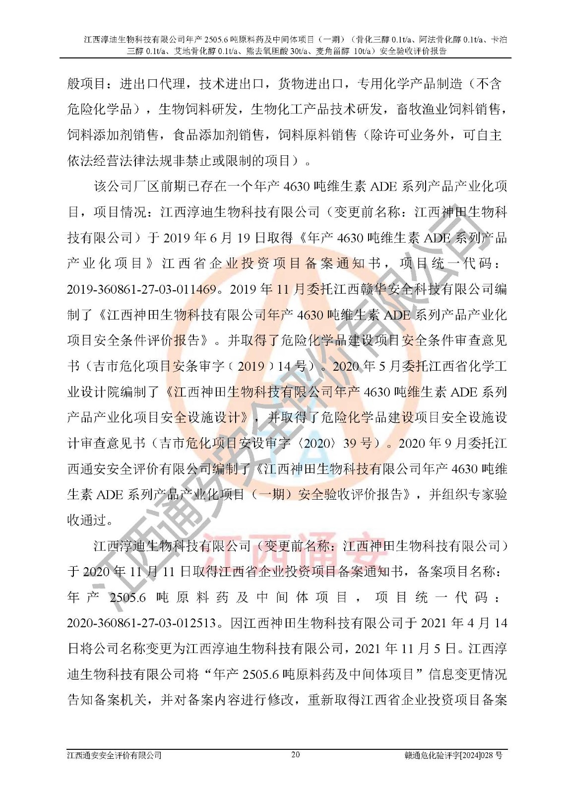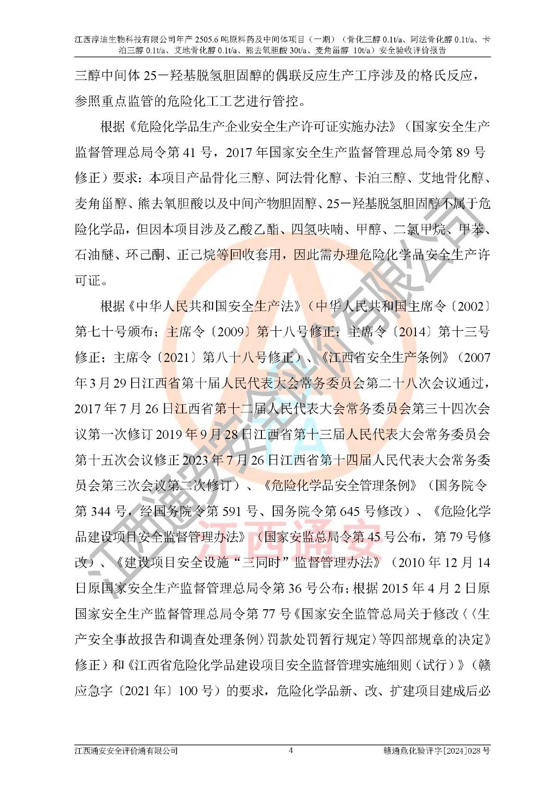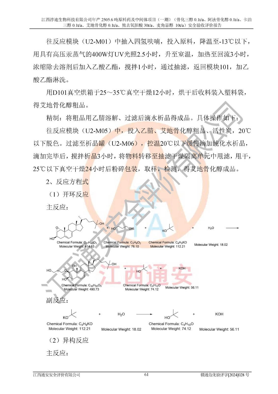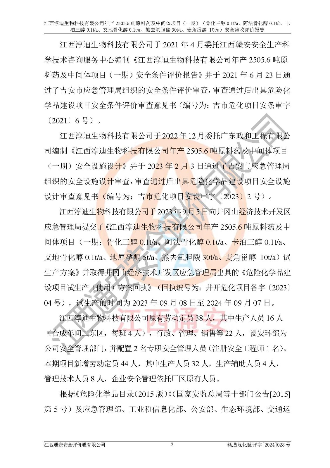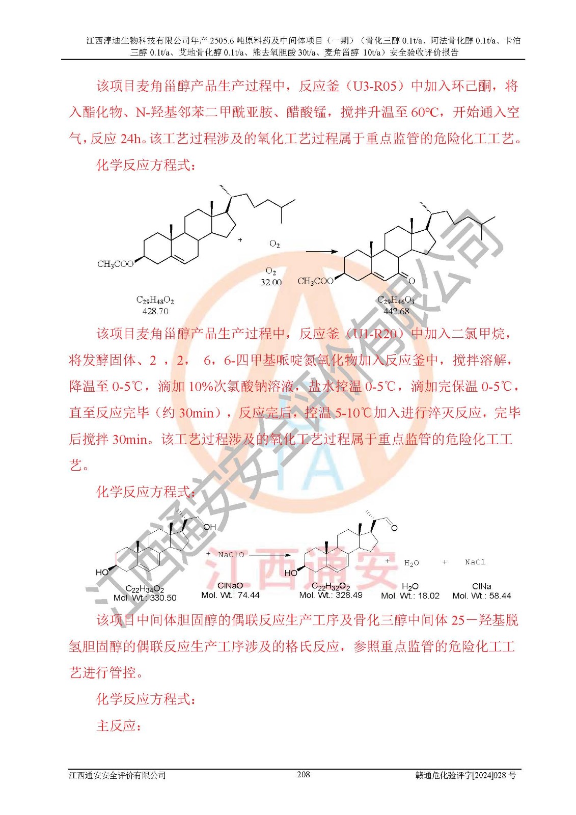 評價報告名稱 | 江西淳迪生物科技有限公司年產2505.6噸原料藥及中間體項目(一期)(骨化三醇0.1t/a、阿法骨化醇0.1t/a、卡泊三醇0.1t/a、艾地骨化醇0.1t/a、熊去氧膽酸30t/a、麥角甾醇 10t/a)安全驗收評價報告 | |||