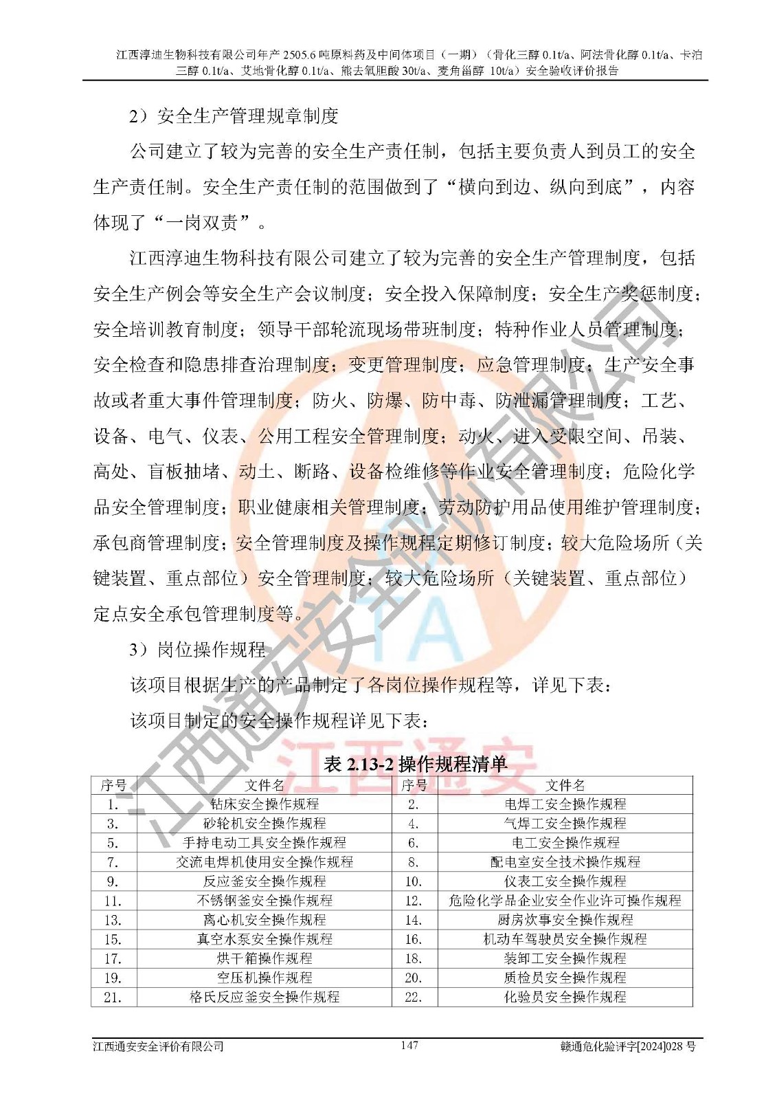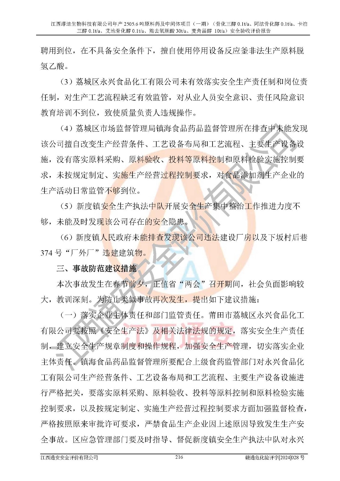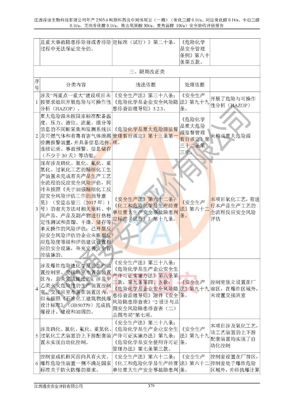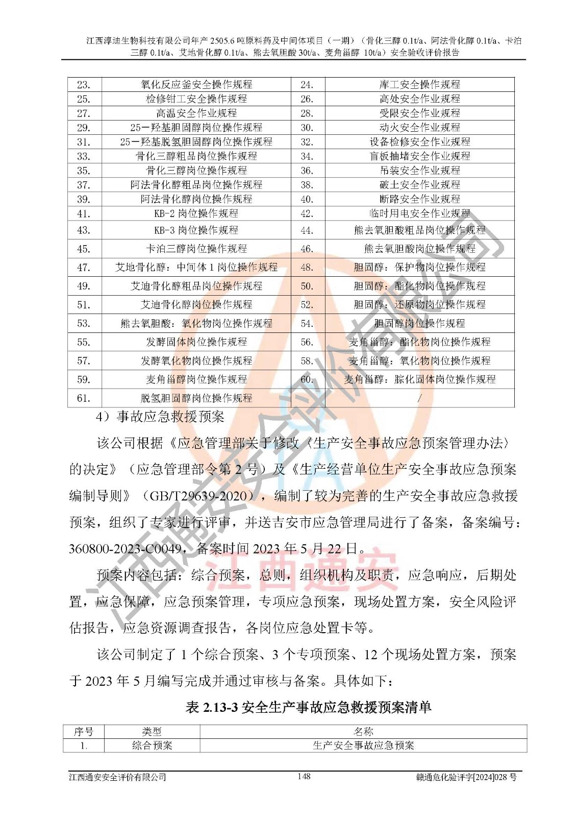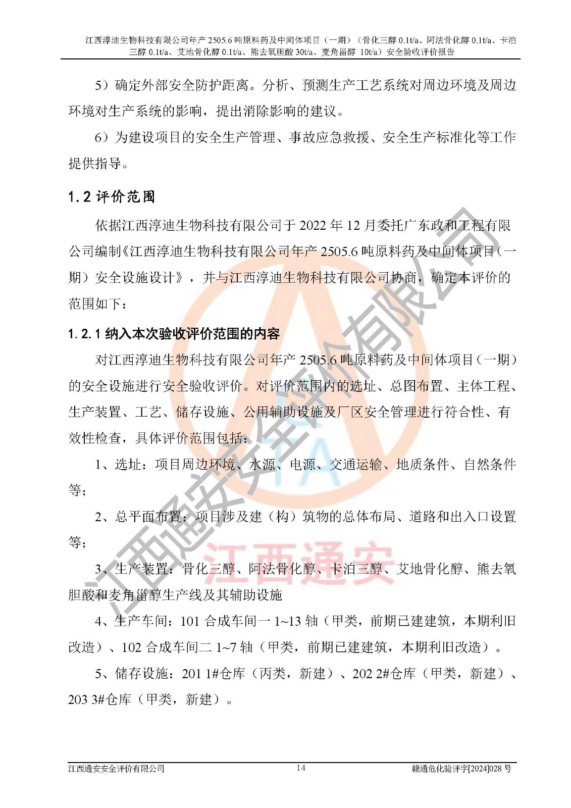 評價報告名稱 | 江西淳迪生物科技有限公司年產2505.6噸原料藥及中間體項目(一期)(骨化三醇0.1t/a、阿法骨化醇0.1t/a、卡泊三醇0.1t/a、艾地骨化醇0.1t/a、熊去氧膽酸30t/a、麥角甾醇 10t/a)安全驗收評價報告 | |||