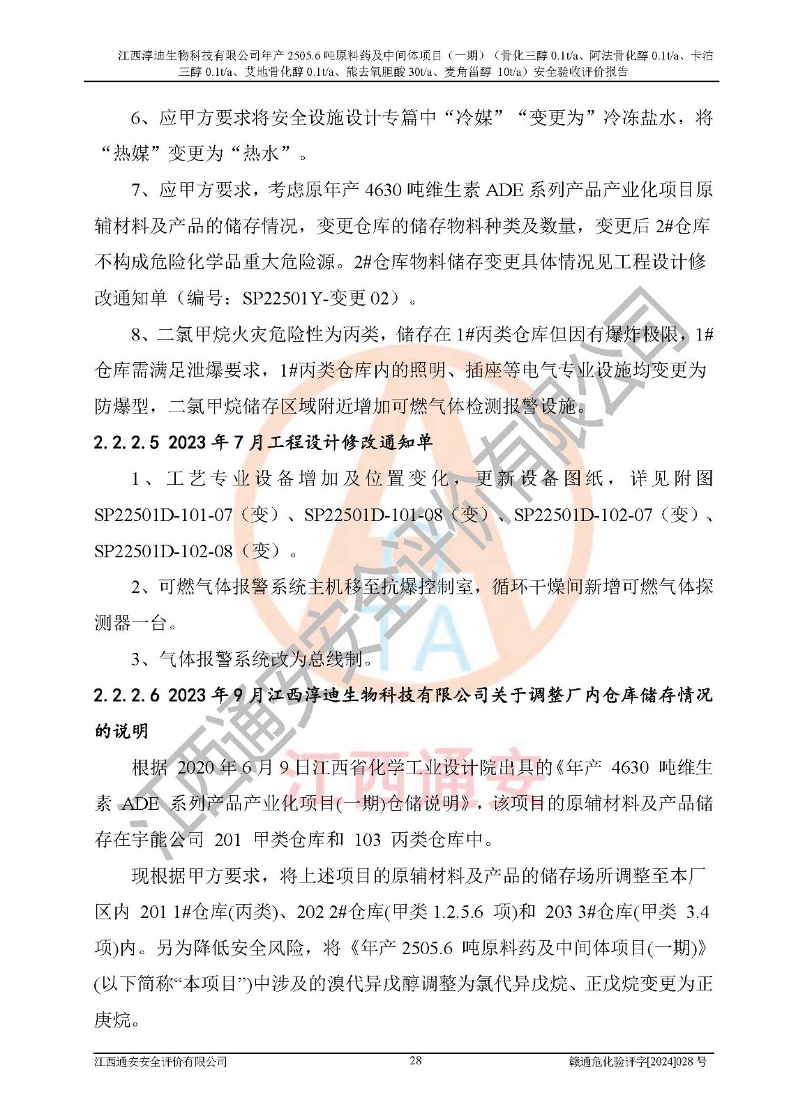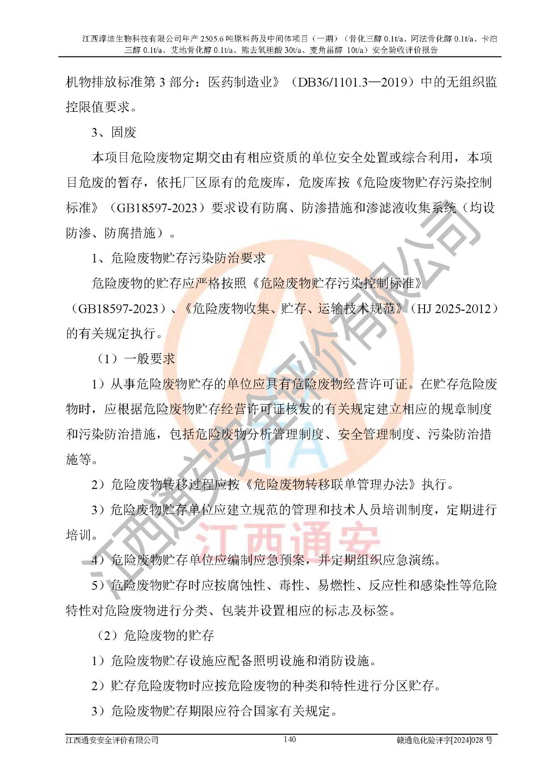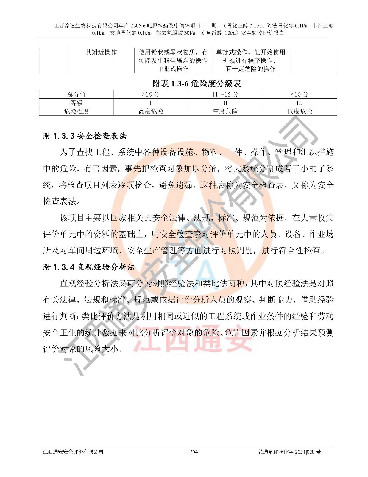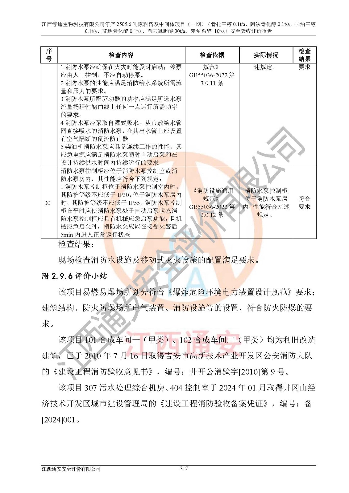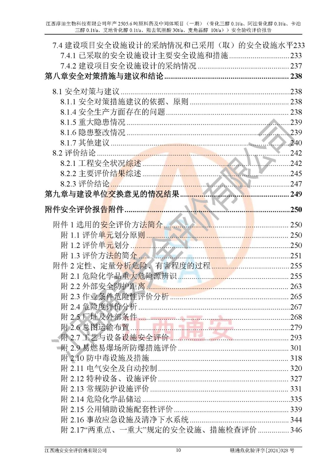 評價結論 | 評價結論:本報告認為,江西淳迪生物科技有限公司年產2505.6噸原料藥及中間體項目(一期)的生產裝置現(xiàn)場情況與設計圖紙一致,DCS和SIS系統(tǒng)設計符合要求且運行正常,有關從業(yè)人員資質符合《江西省危險化學品安全專項整治三年行動實施方案》要求,安全設施及安全管理符合**及有關部門關于安全生產法律、法規(guī)、標準的要求,安全風險是受控制的,其風險程度是可以接受的,符合安全生產條件,能夠滿足安全生產的要求,具備安全設施“三同時”驗收條件。 | |||