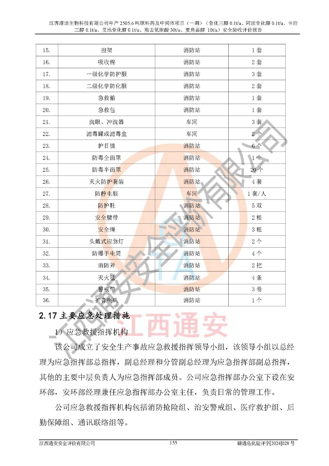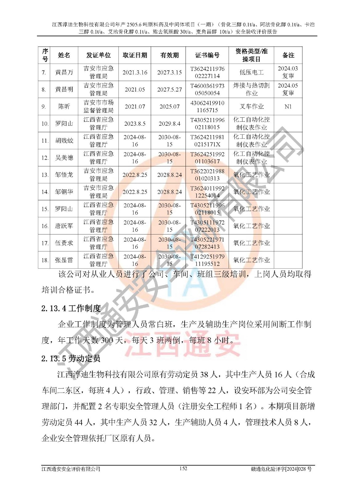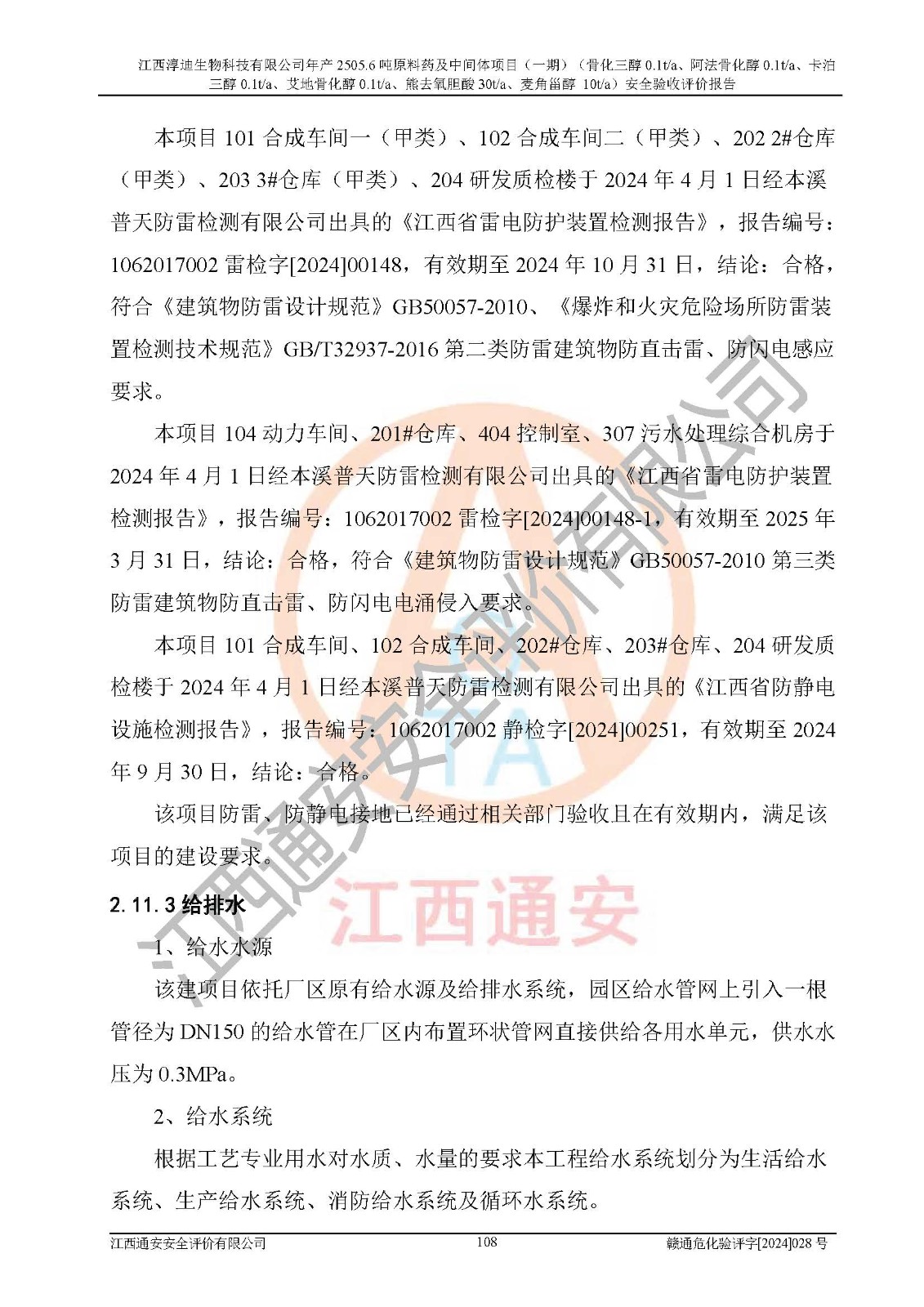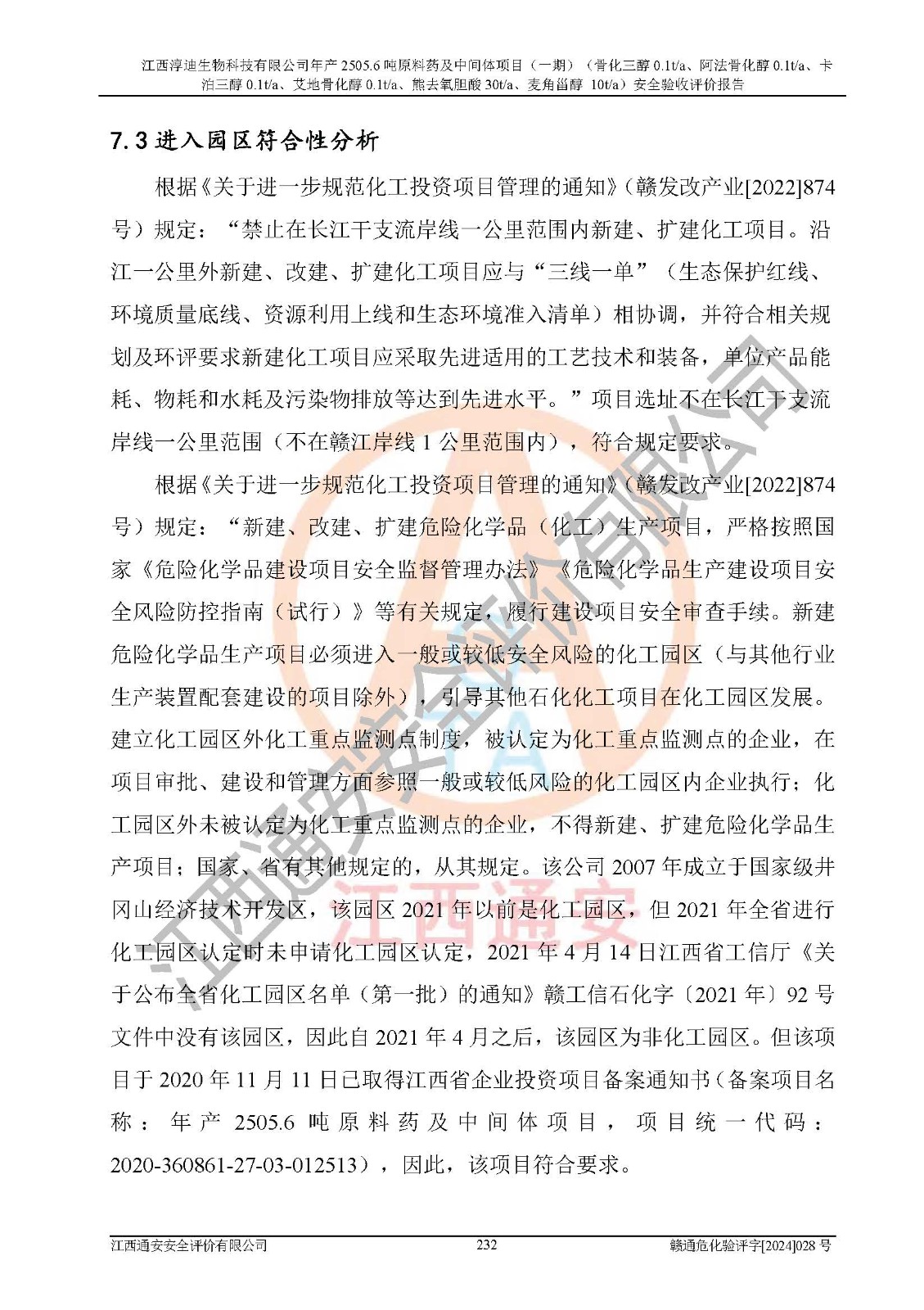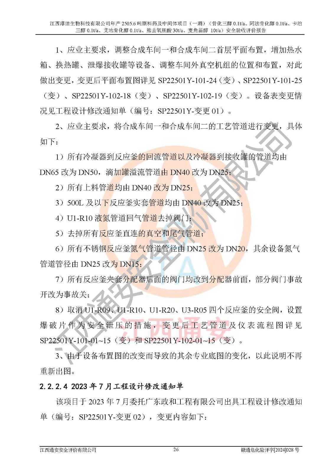 評價結論 | 評價結論:本報告認為,江西淳迪生物科技有限公司年產2505.6噸原料藥及中間體項目(一期)的生產裝置現(xiàn)場情況與設計圖紙一致,DCS和SIS系統(tǒng)設計符合要求且運行正常,有關從業(yè)人員資質符合《江西省危險化學品安全專項整治三年行動實施方案》要求,安全設施及安全管理符合**及有關部門關于安全生產法律、法規(guī)、標準的要求,安全風險是受控制的,其風險程度是可以接受的,符合安全生產條件,能夠滿足安全生產的要求,具備安全設施“三同時”驗收條件。 | |||