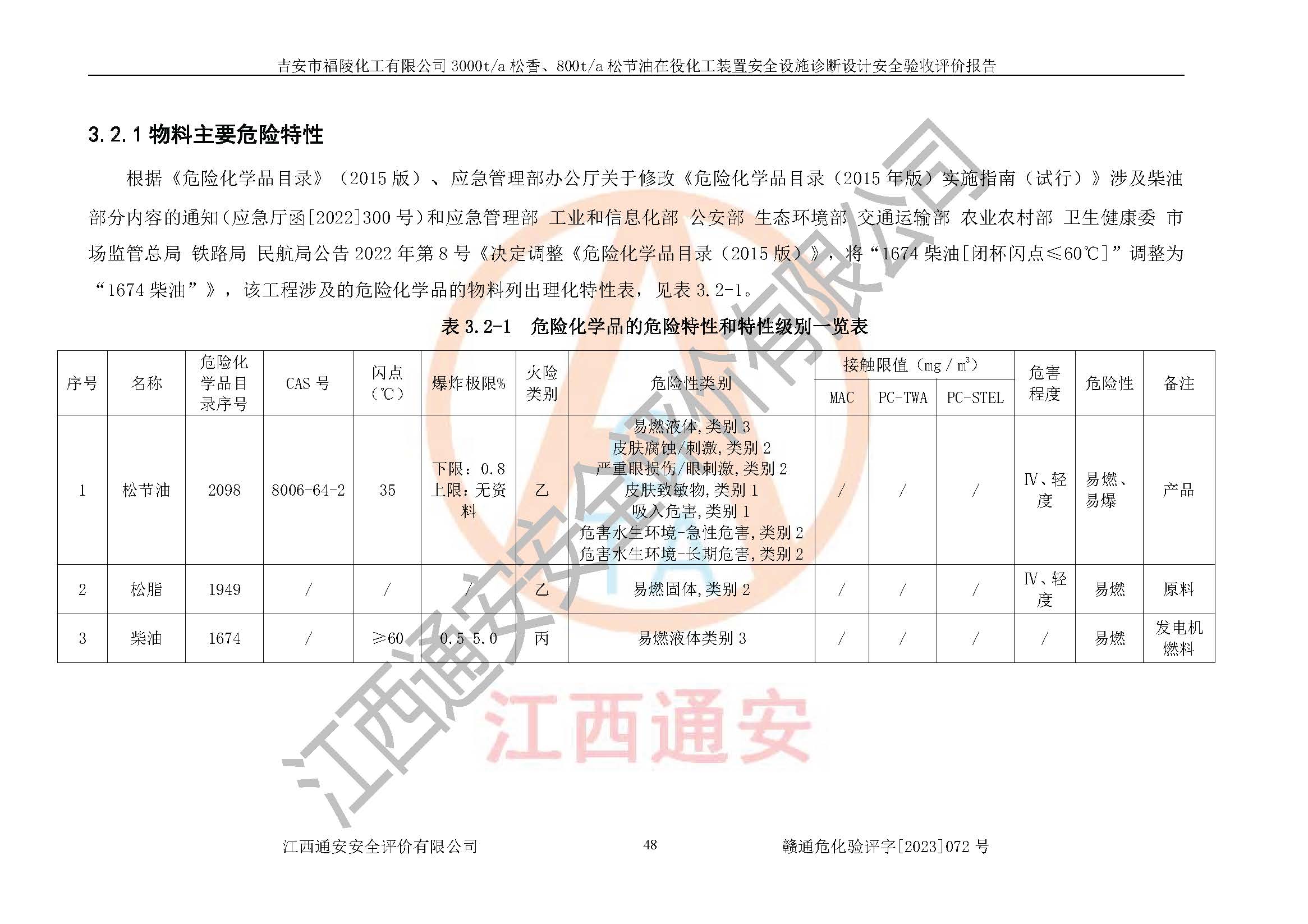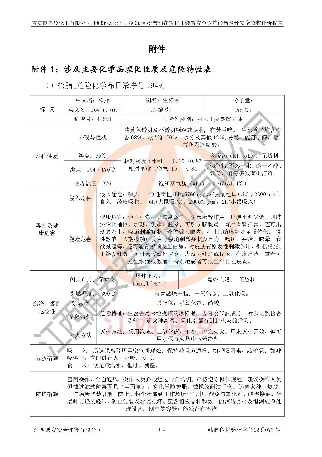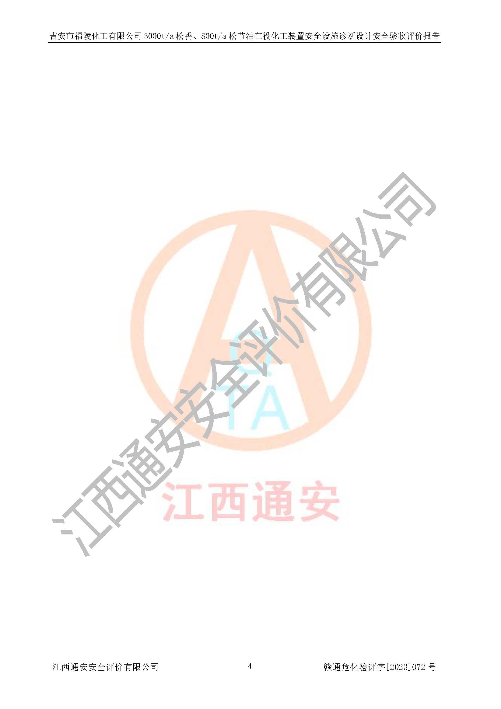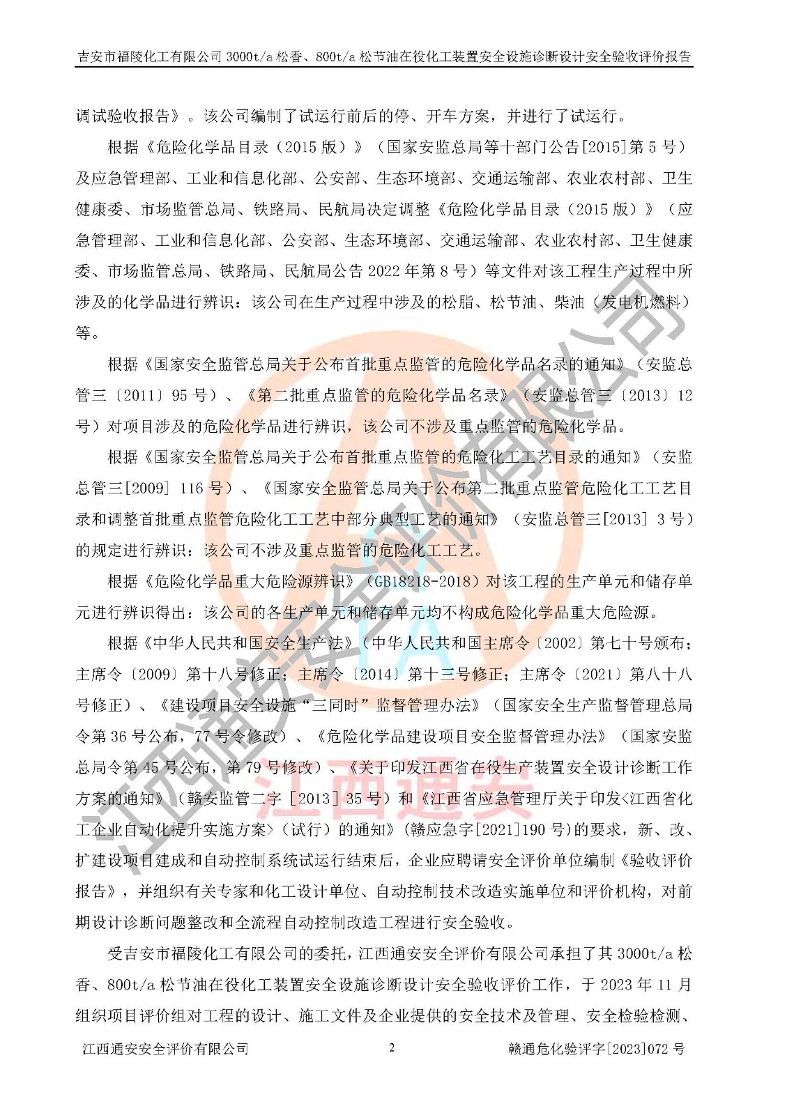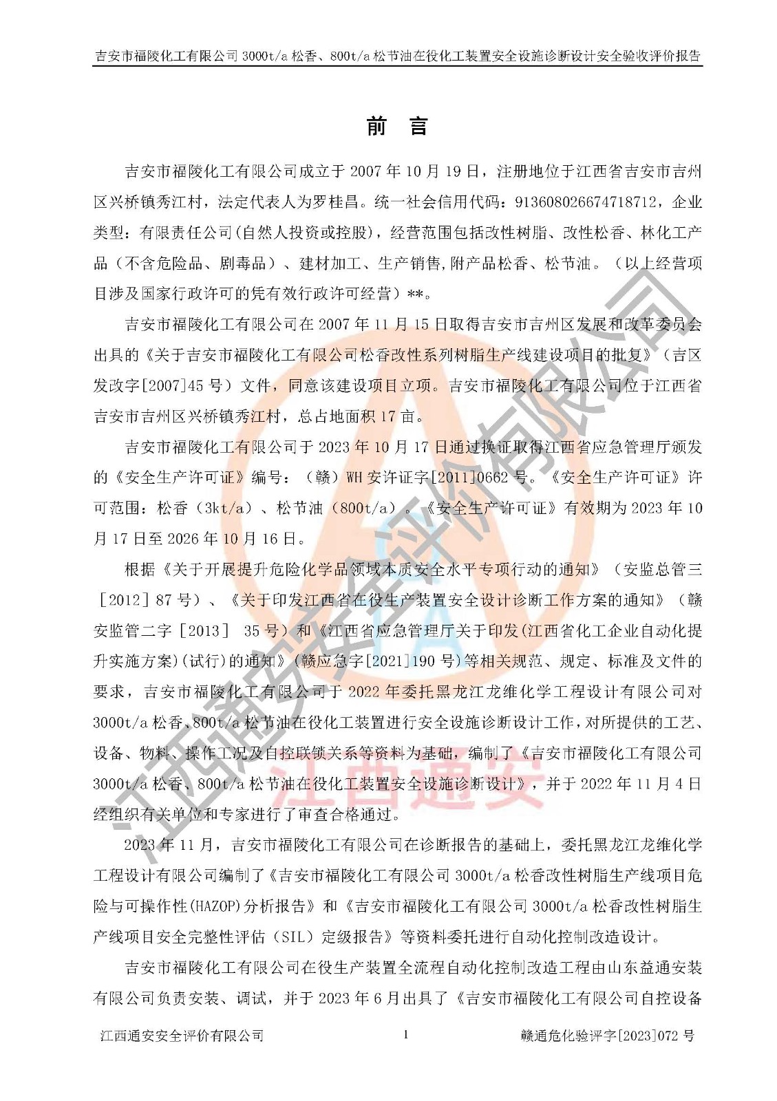 評價報告名稱 | 吉安市福陵化工有限公司3000ta松香、800ta松節(jié)油在役化工裝置安全設(shè)施診斷設(shè)計安全驗收評價報告 | |||