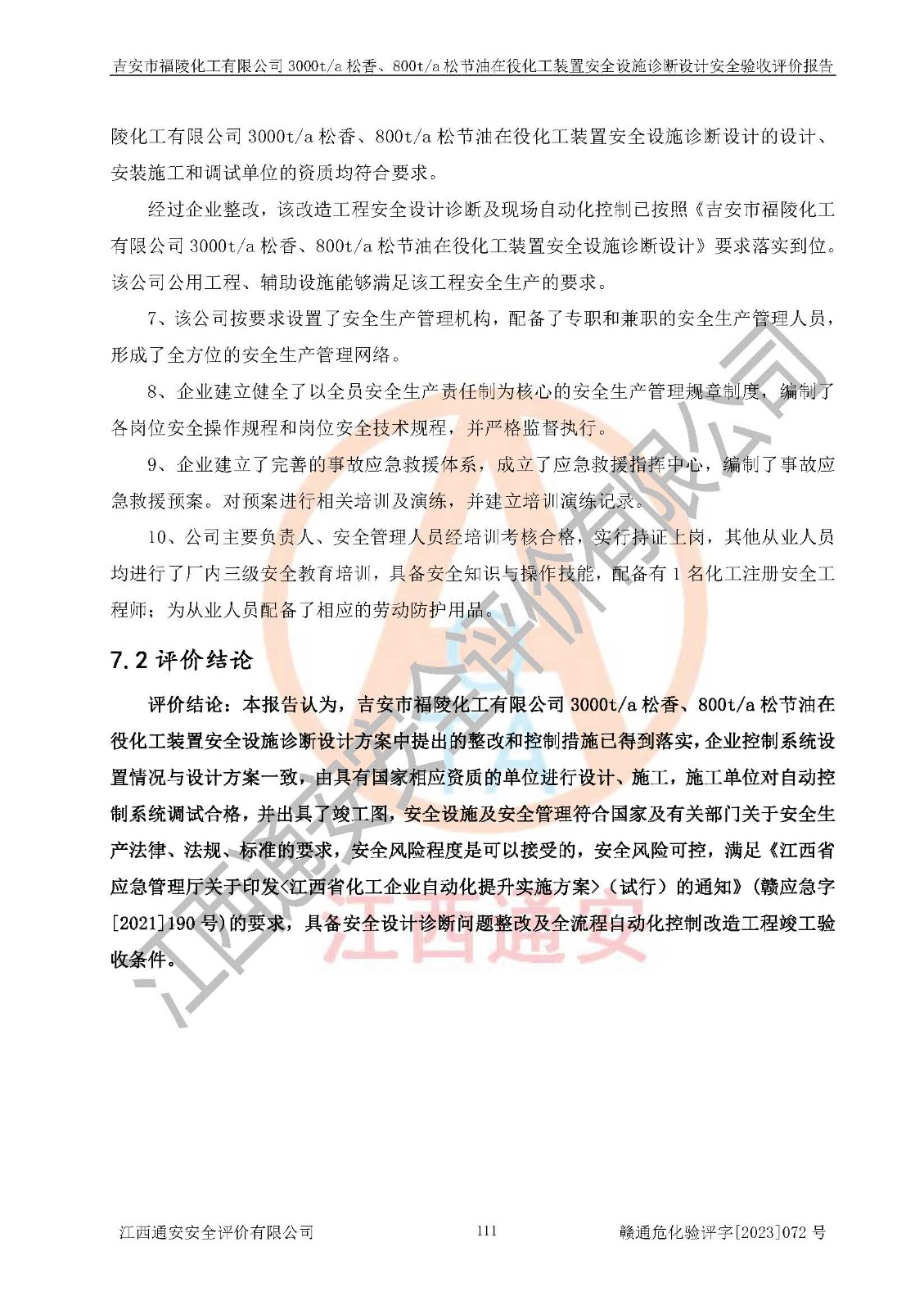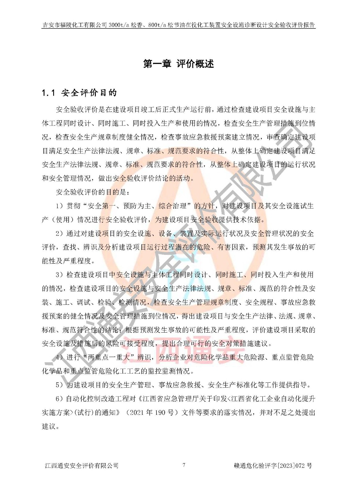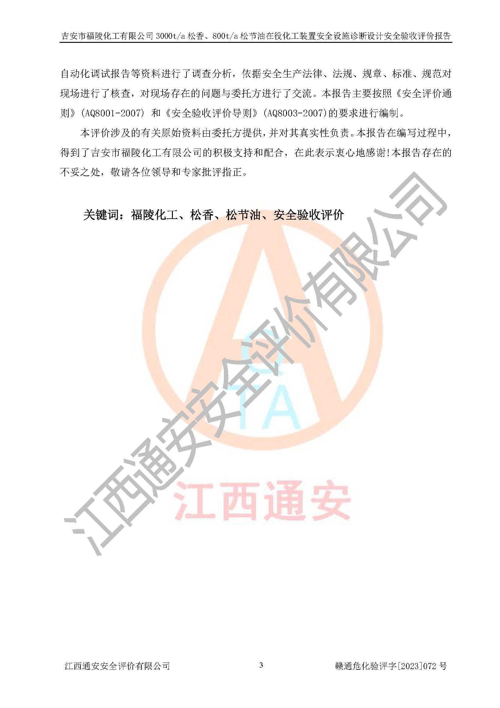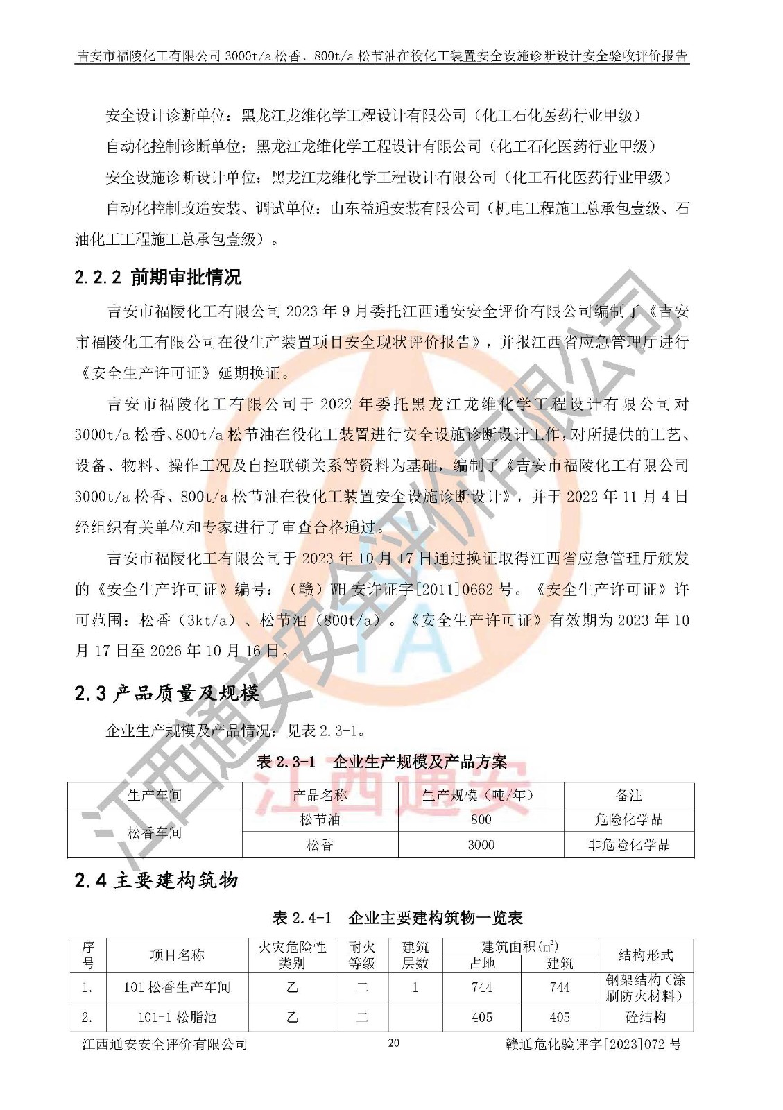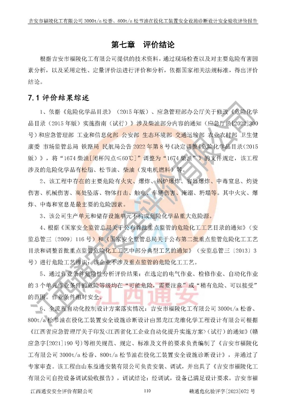 評價報告名稱 | 吉安市福陵化工有限公司3000ta松香、800ta松節(jié)油在役化工裝置安全設(shè)施診斷設(shè)計安全驗收評價報告 | |||