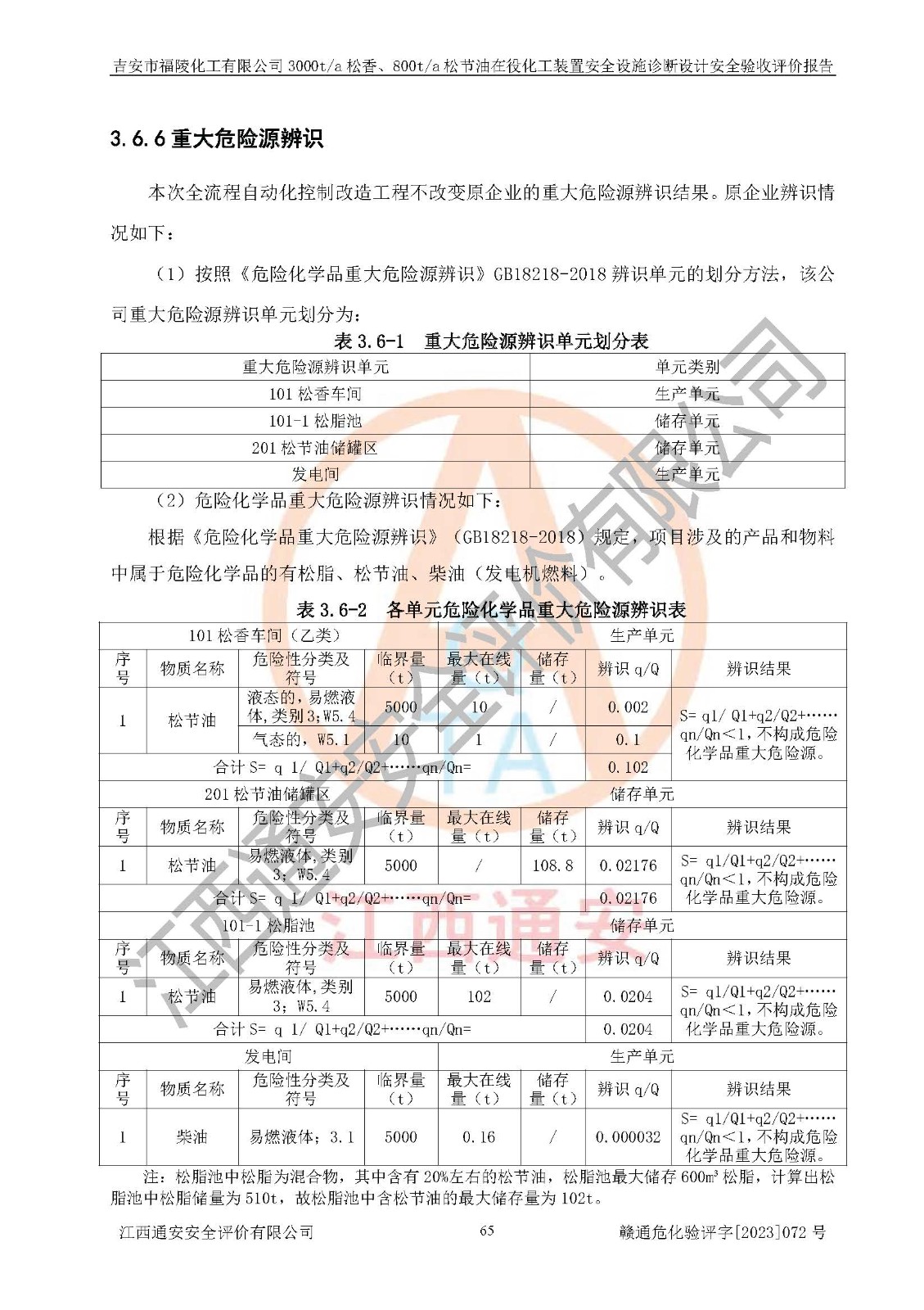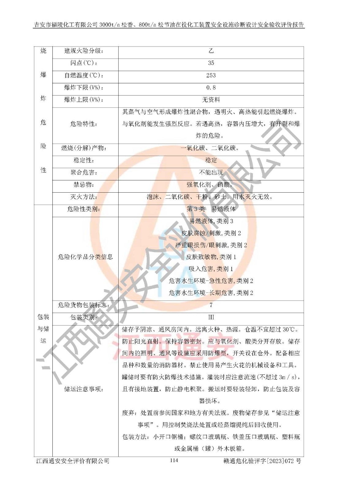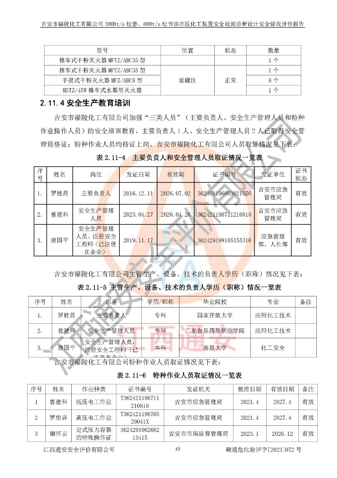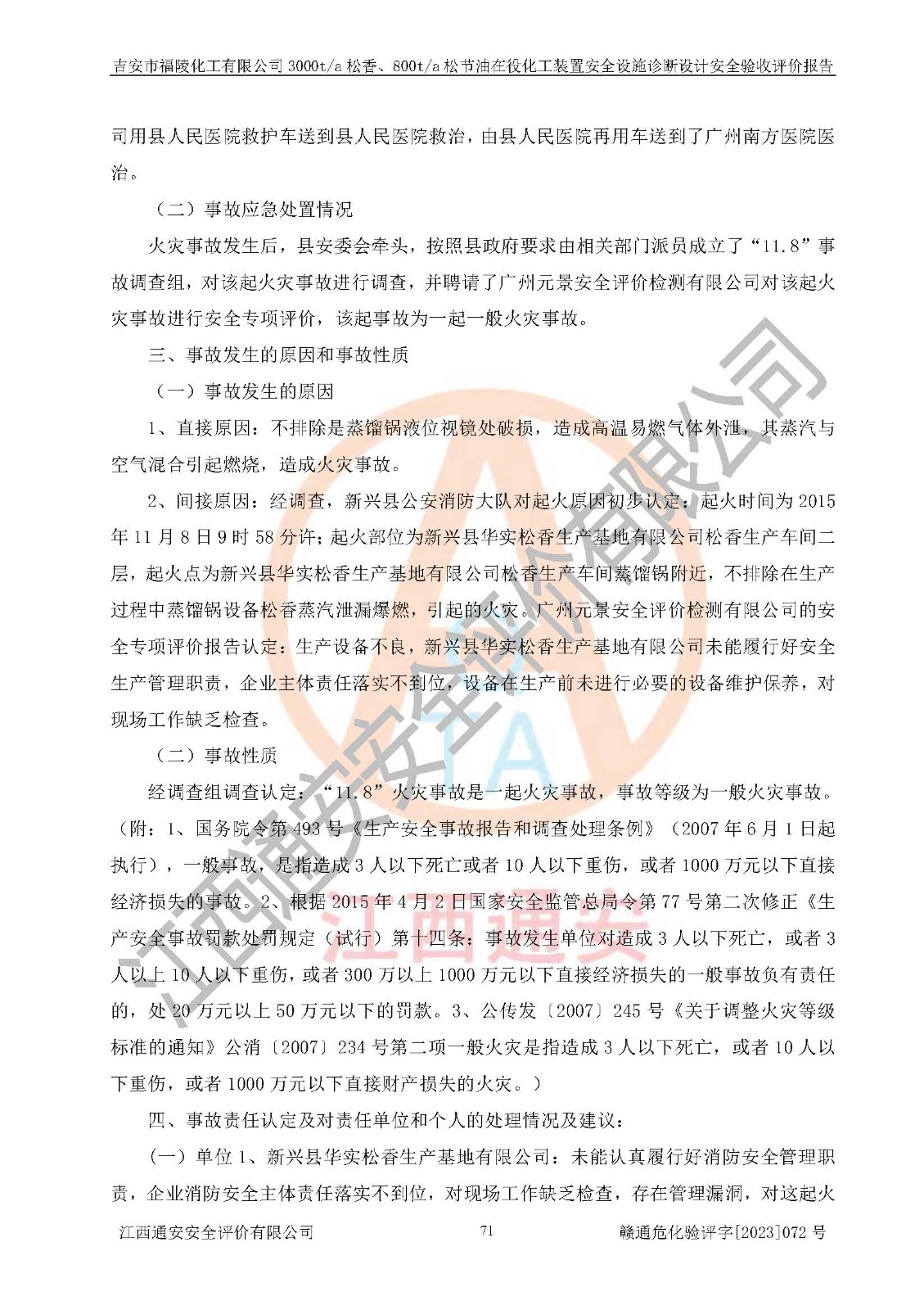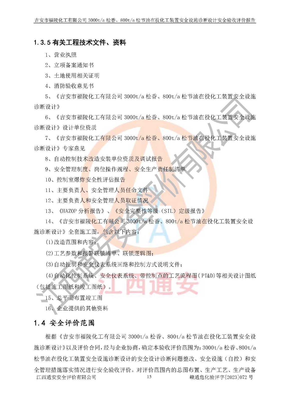 評價報告名稱 | 吉安市福陵化工有限公司3000ta松香、800ta松節(jié)油在役化工裝置安全設(shè)施診斷設(shè)計安全驗收評價報告 | |||
