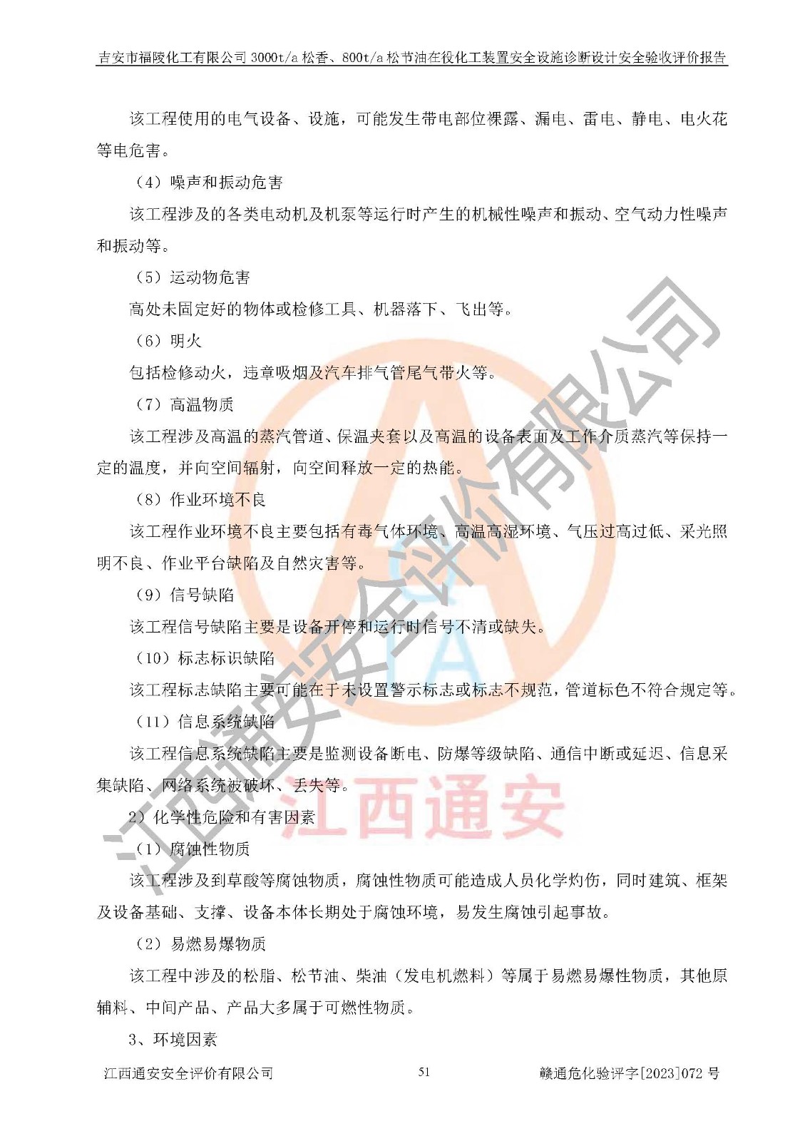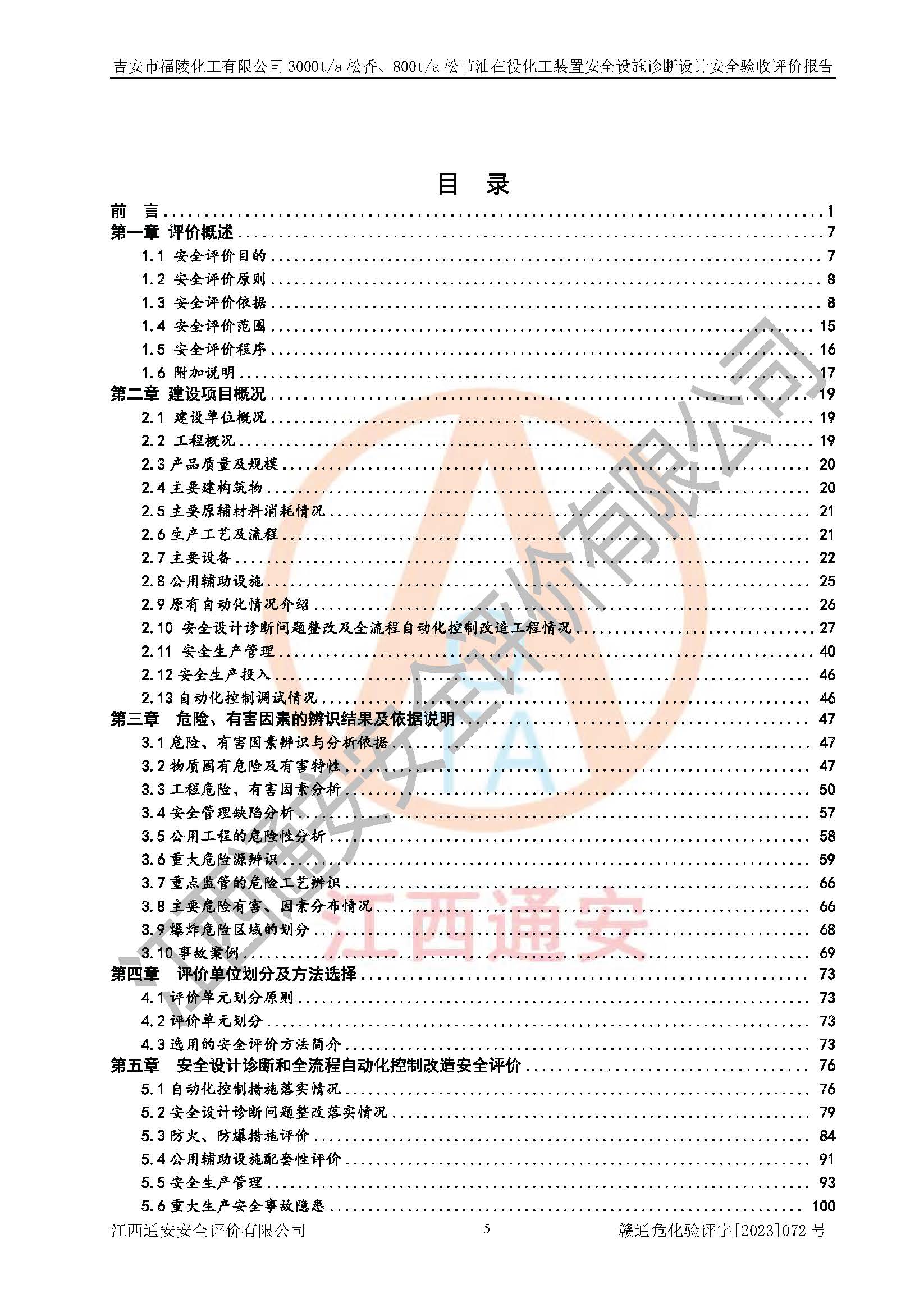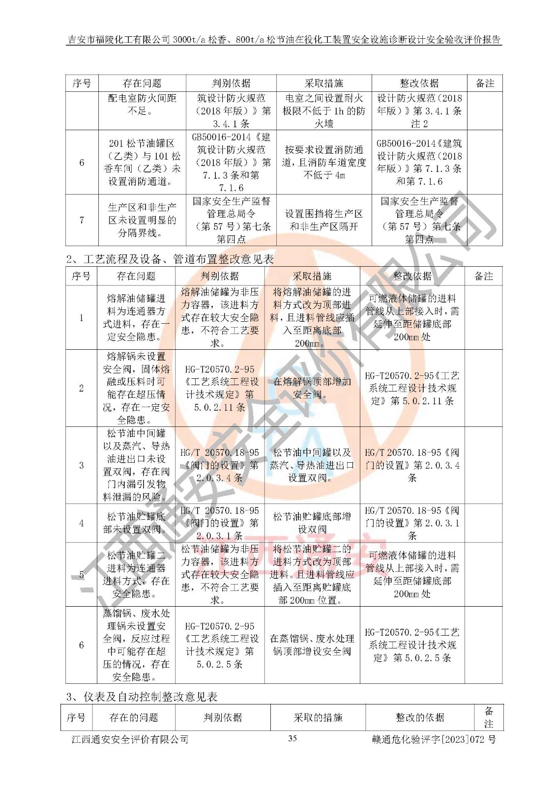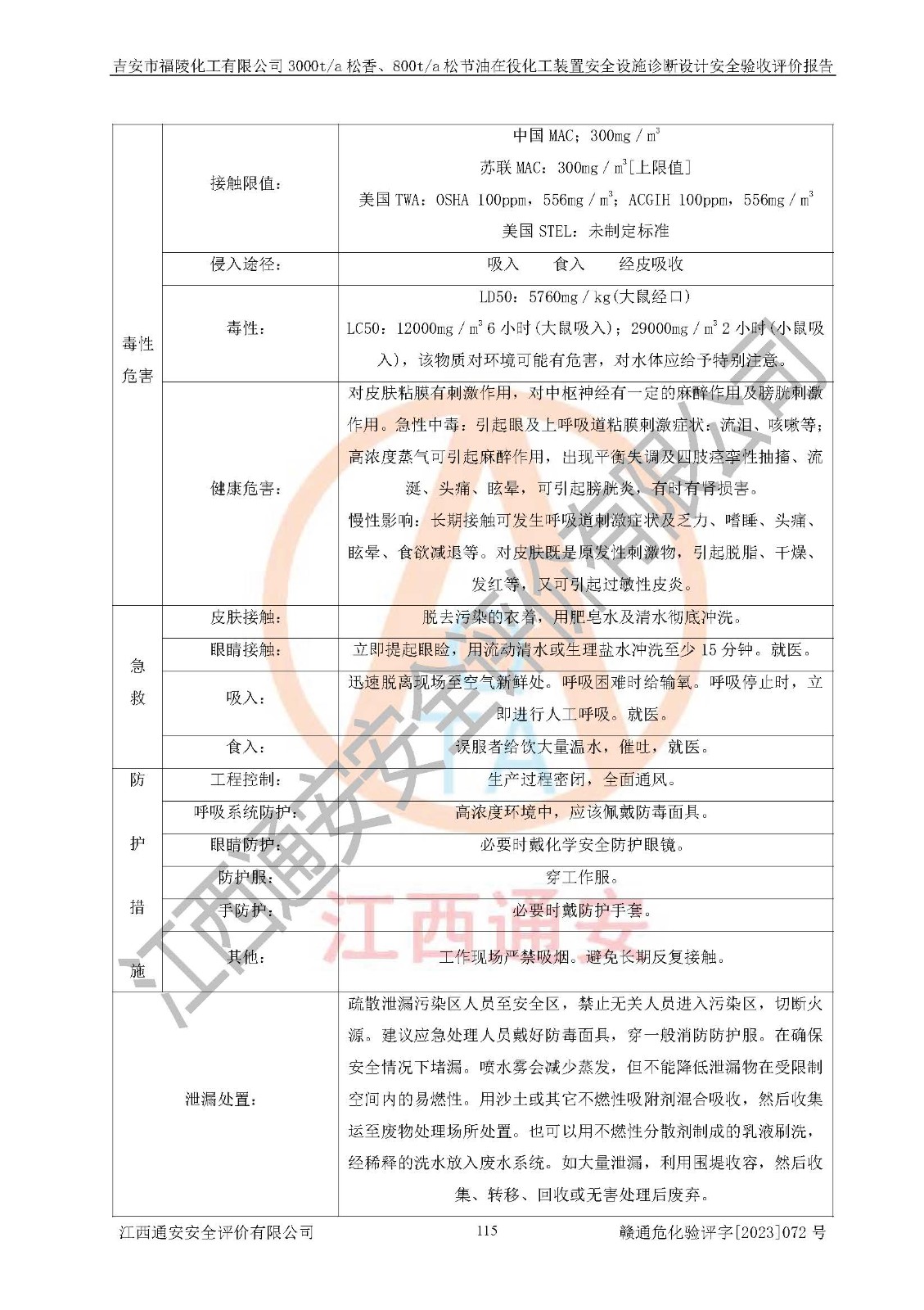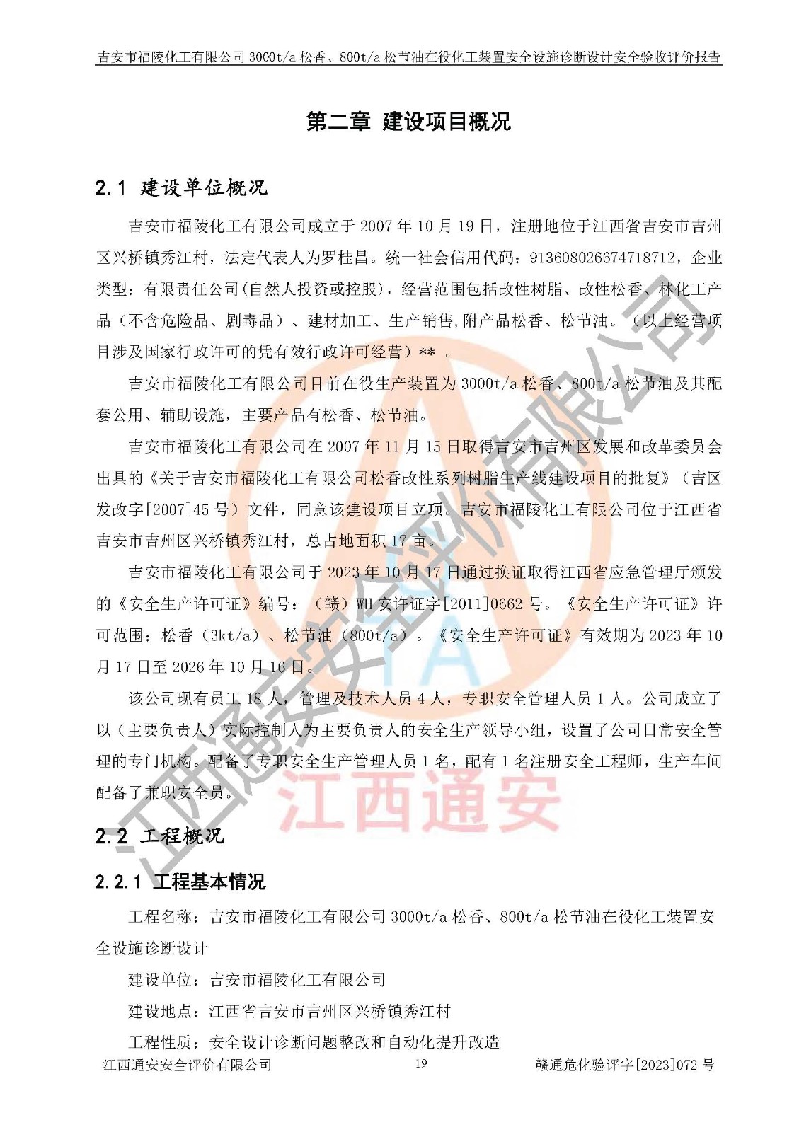 評價報告名稱 | 吉安市福陵化工有限公司3000ta松香、800ta松節(jié)油在役化工裝置安全設(shè)施診斷設(shè)計安全驗收評價報告 | |||