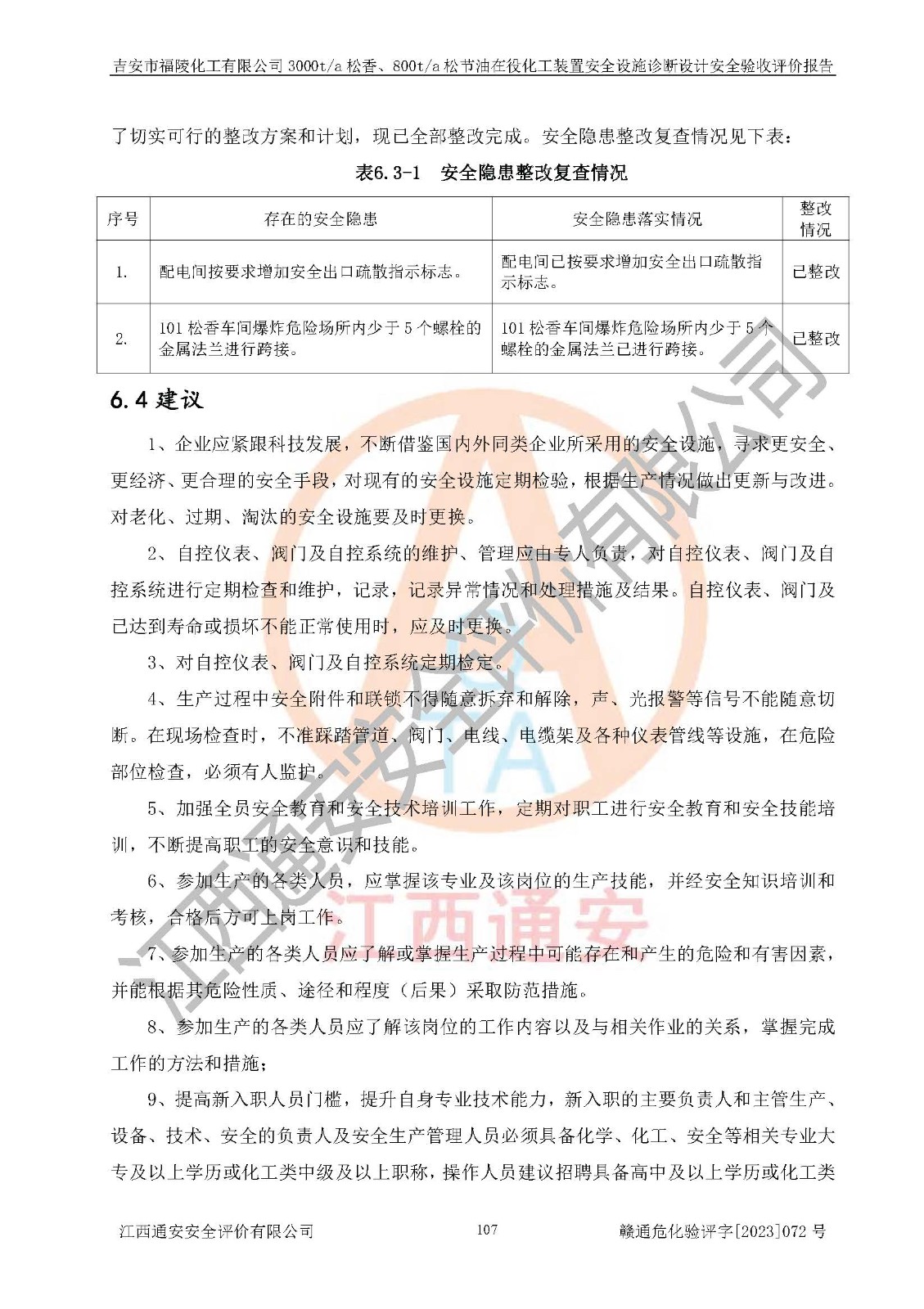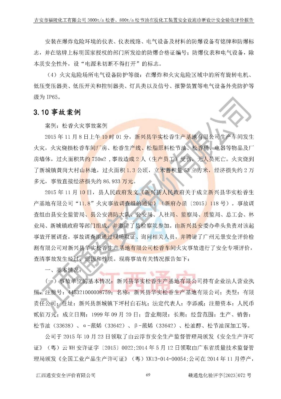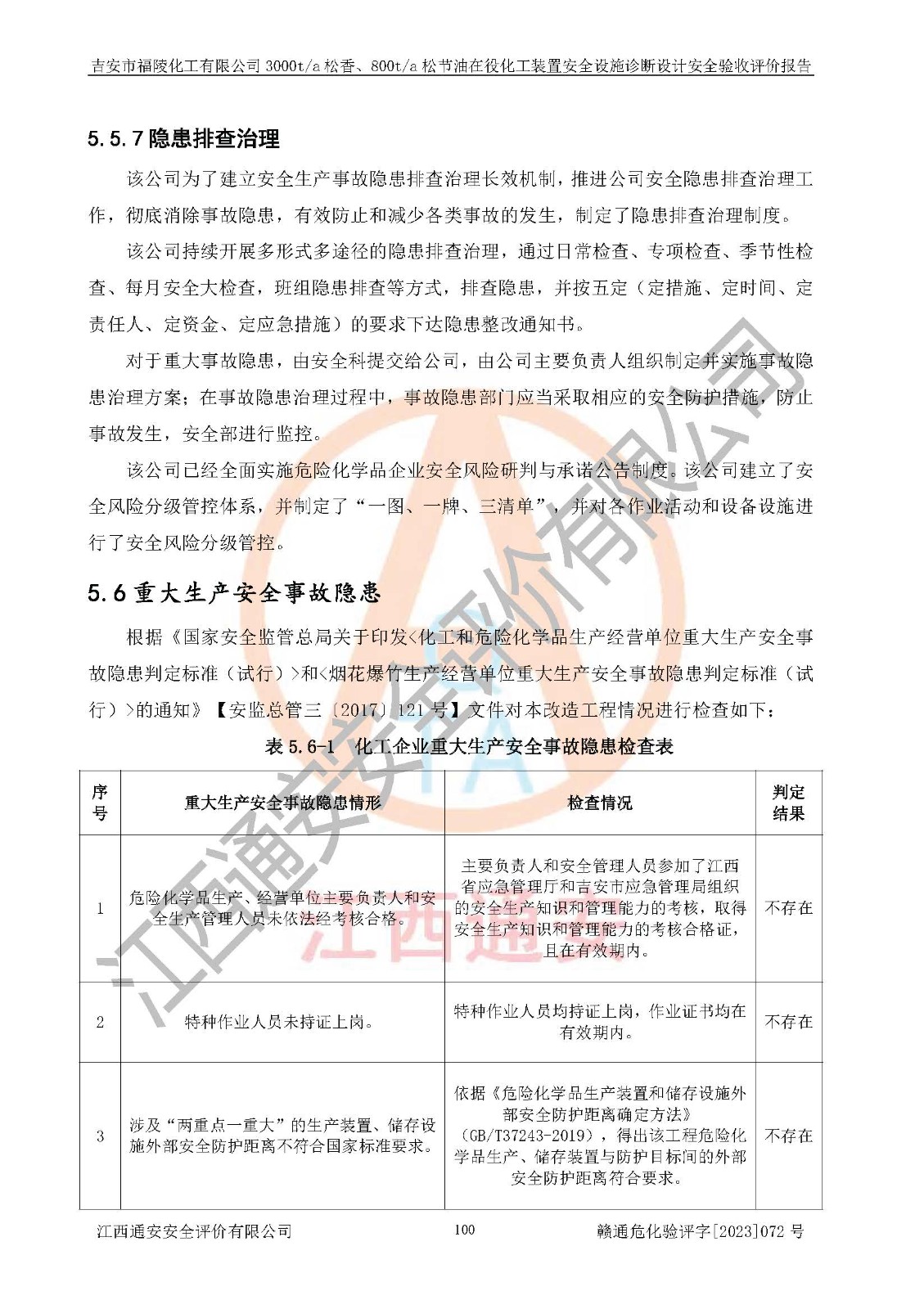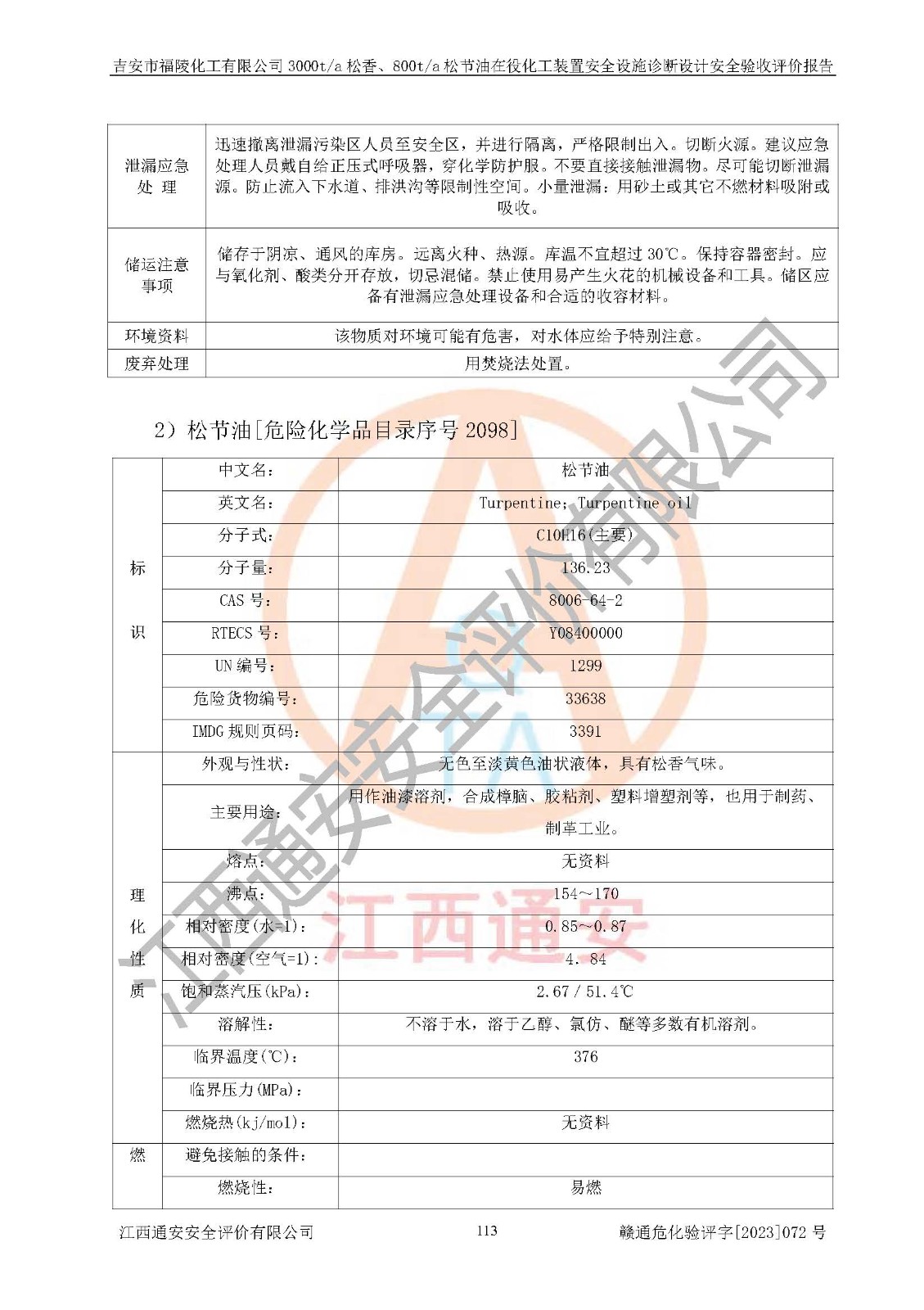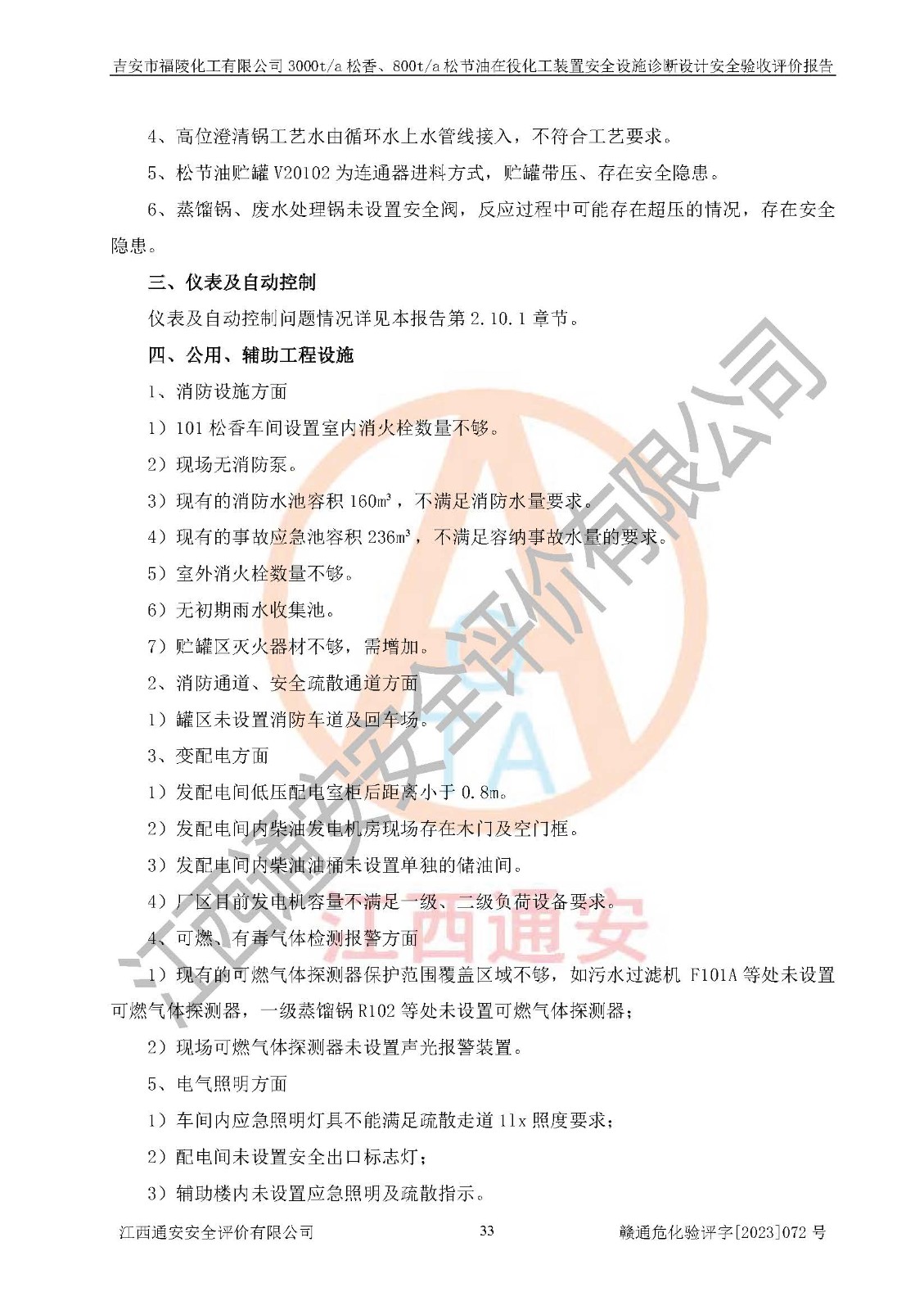 評價報告名稱 | 吉安市福陵化工有限公司3000ta松香、800ta松節(jié)油在役化工裝置安全設(shè)施診斷設(shè)計安全驗收評價報告 | |||